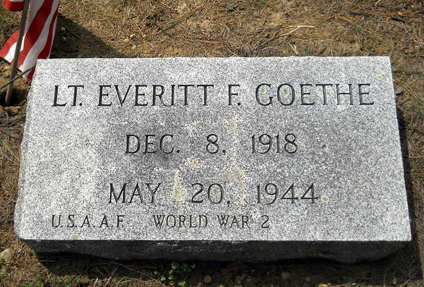 2nd Lt Everitt F. Goethe, 837th Squadron, KIA 20-May-44 Hillside Cemetery, Cortlandt Manor, Westchester County, NY Plot: Oak Knoll, Section 3, Lot 19, Grave 1 (photo provided by Gene Baumwoll)