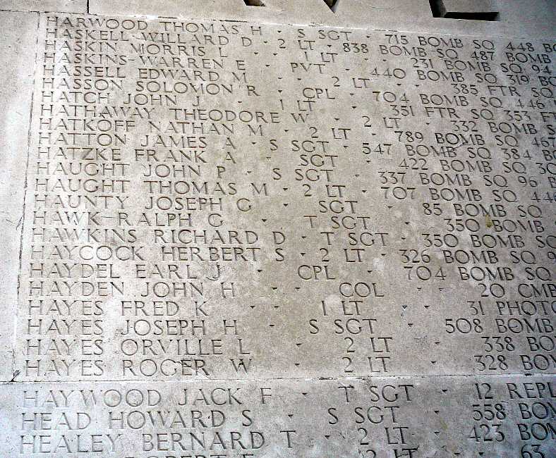 2nd Lt Willard D. Haskell, 838th Squadron, MIA 6-Jun-1944 Commemorated on the Wall of the Missing, Cambridge American Cemetery (photo provided by Paul Webber)