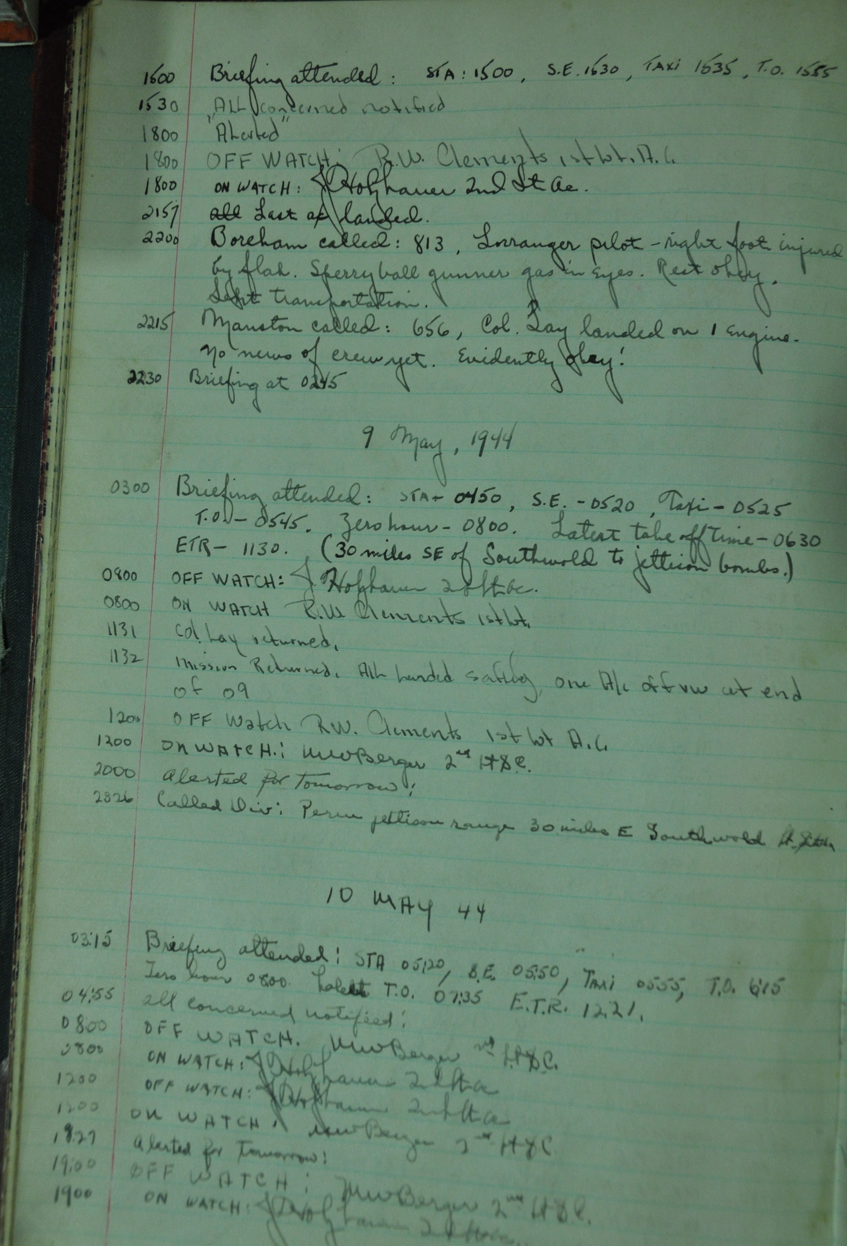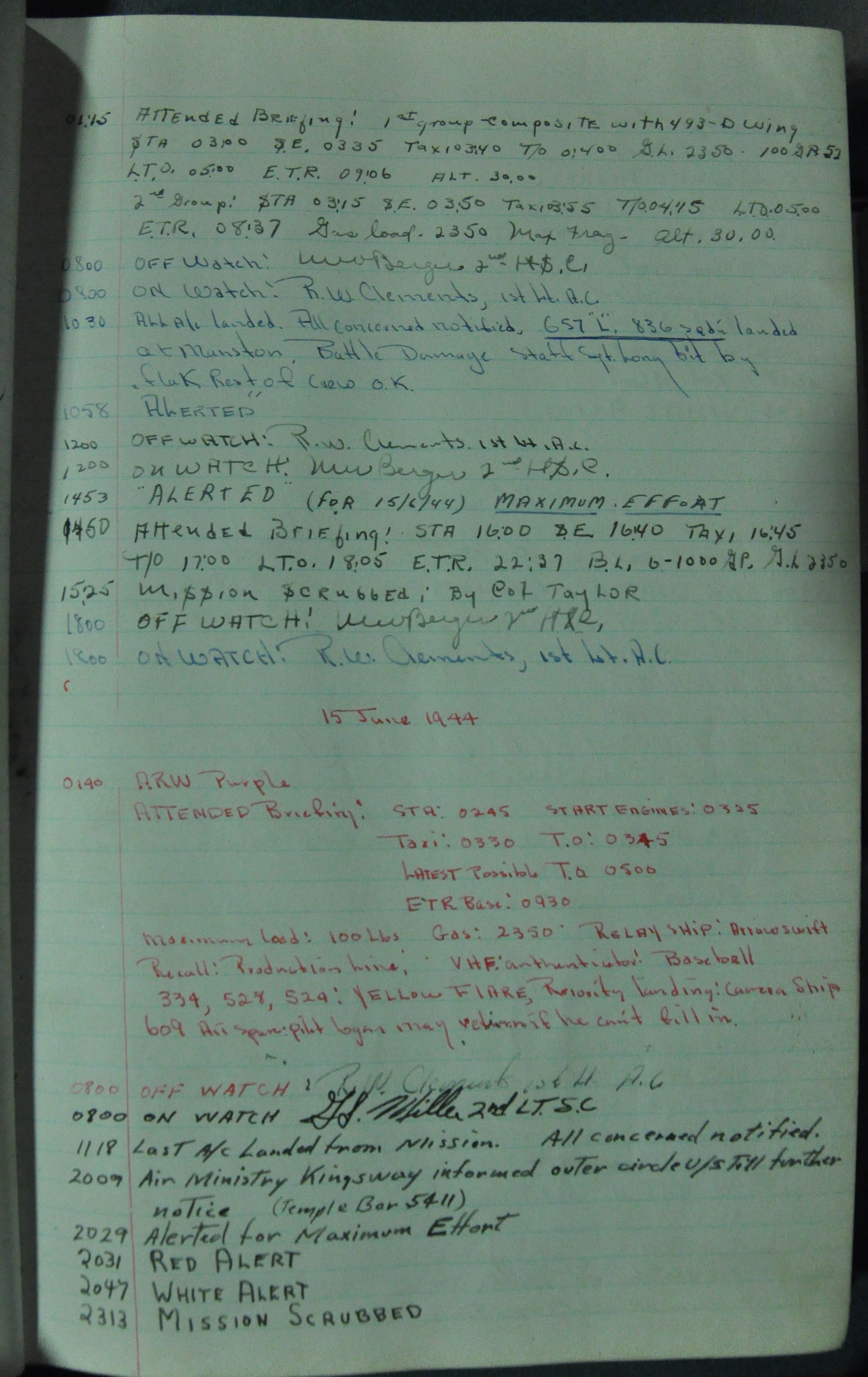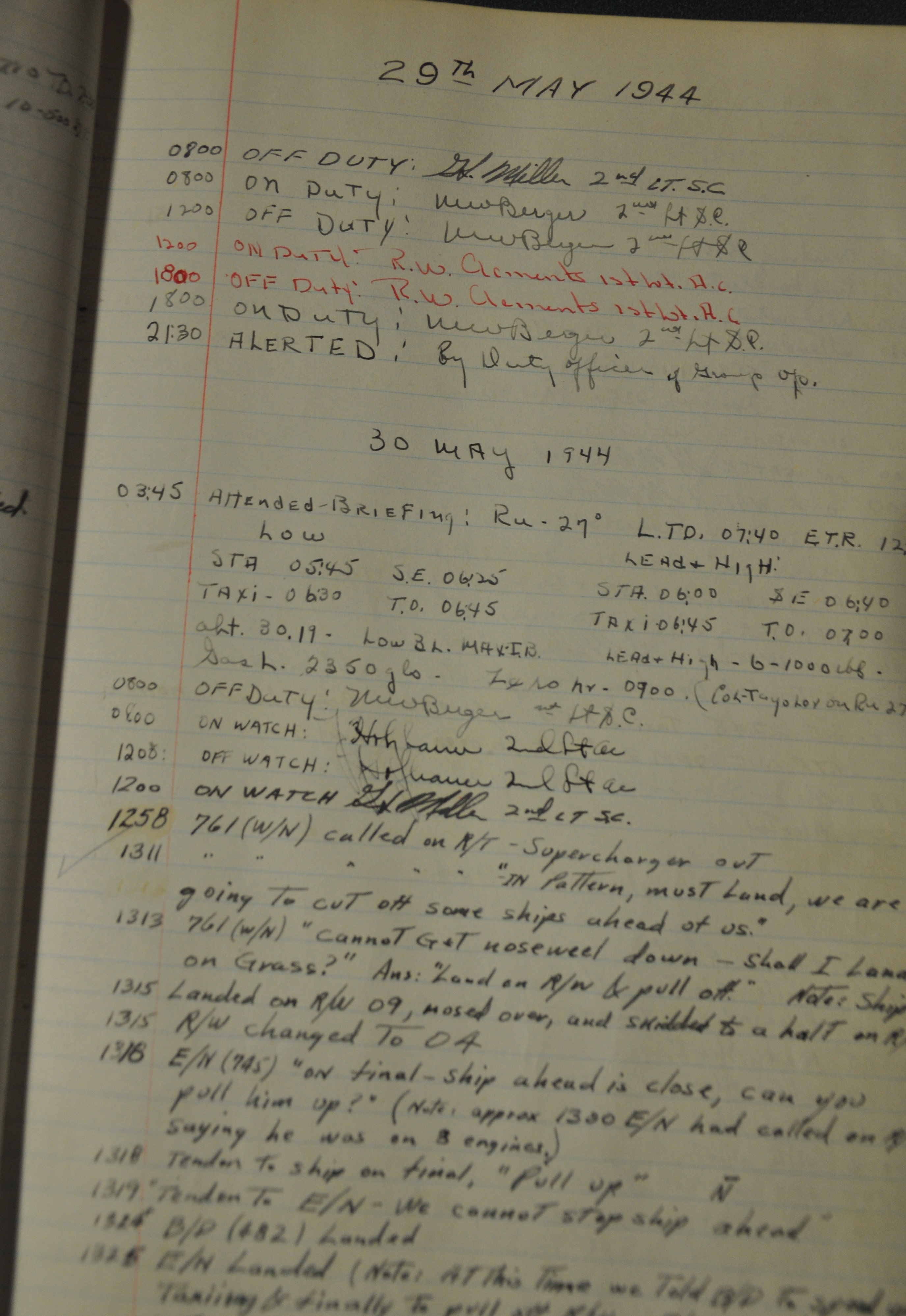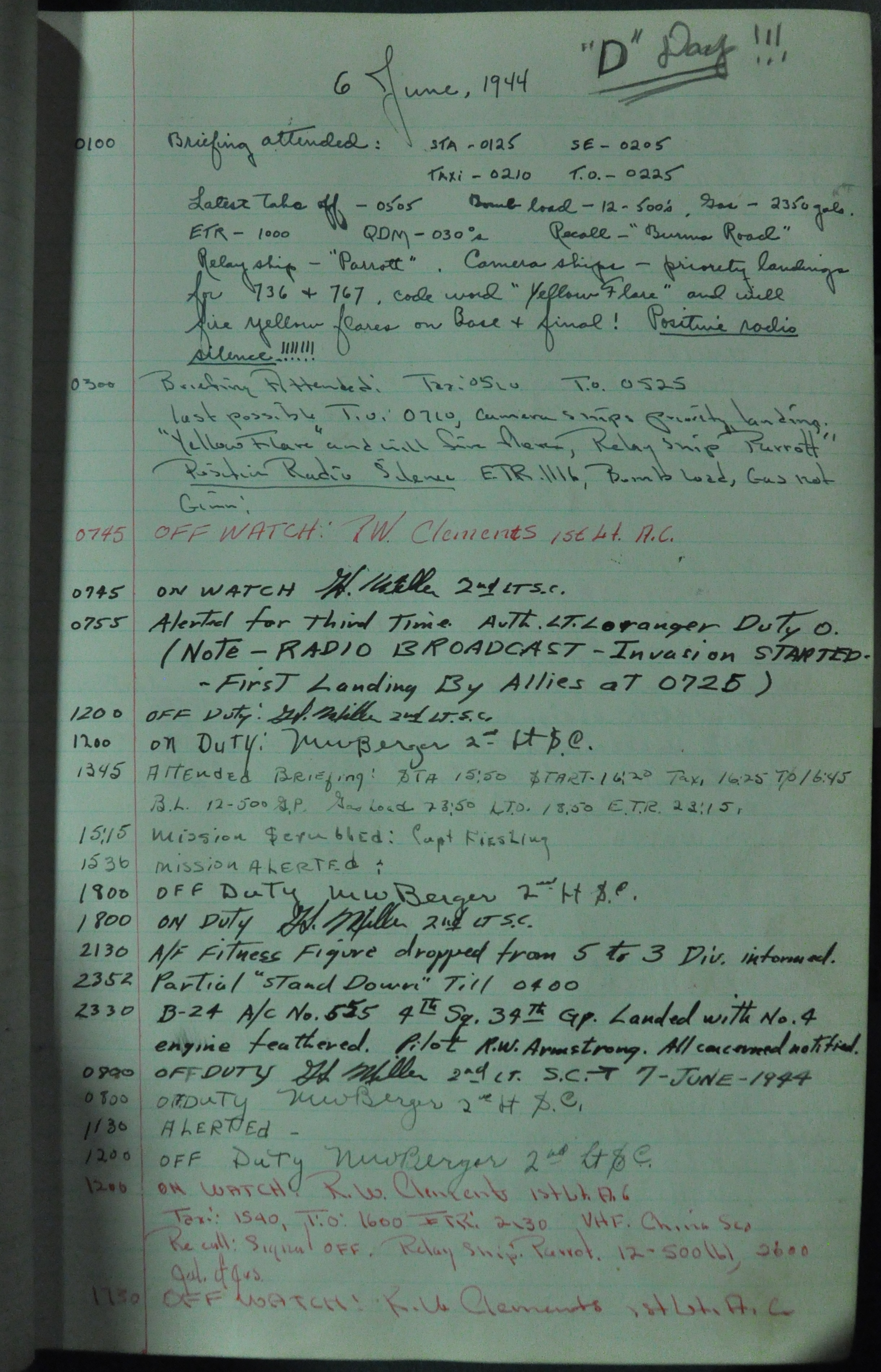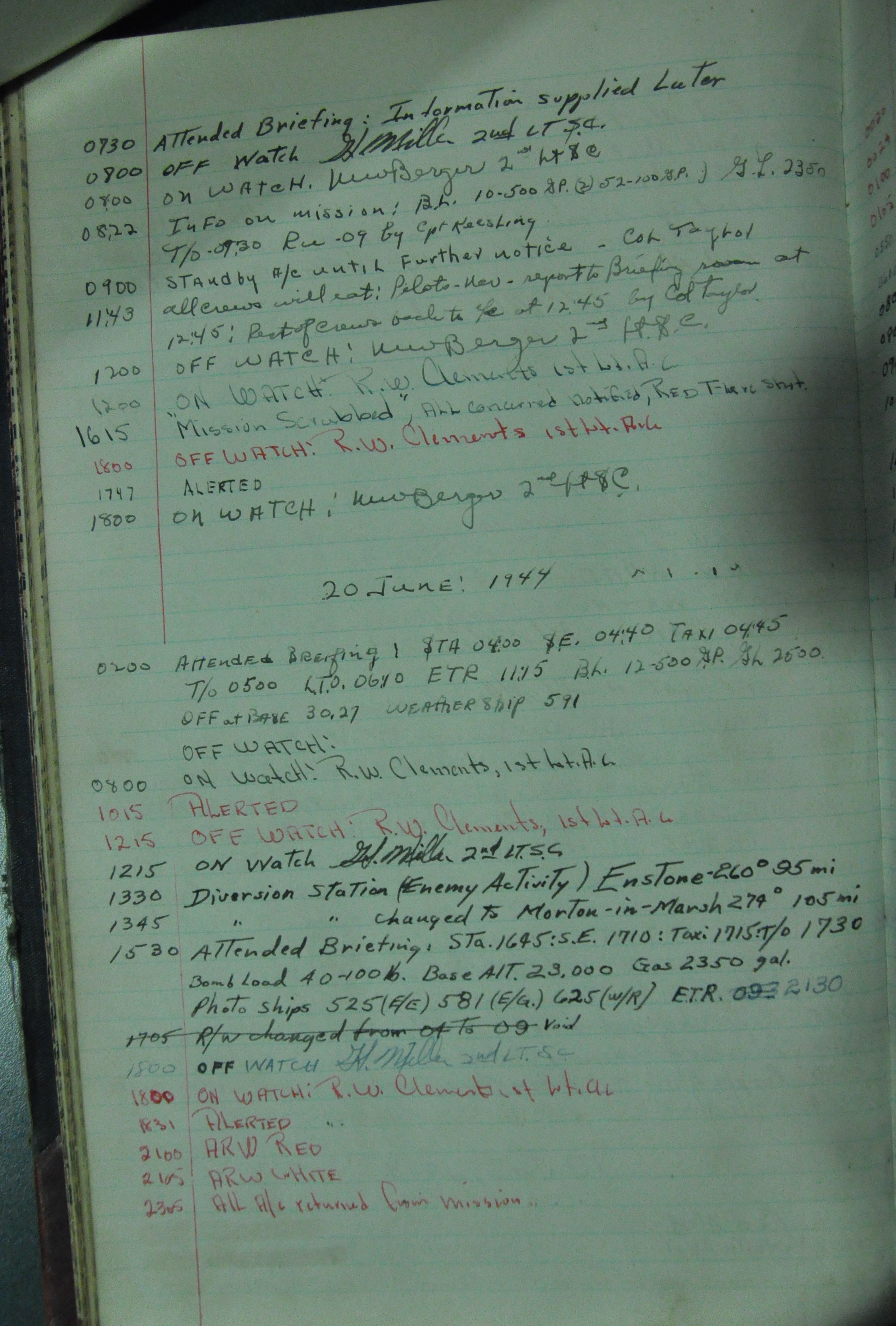 the pages of the 487th Tower Log book that is at the museum. It contains notes by the control tower officers relative to operations