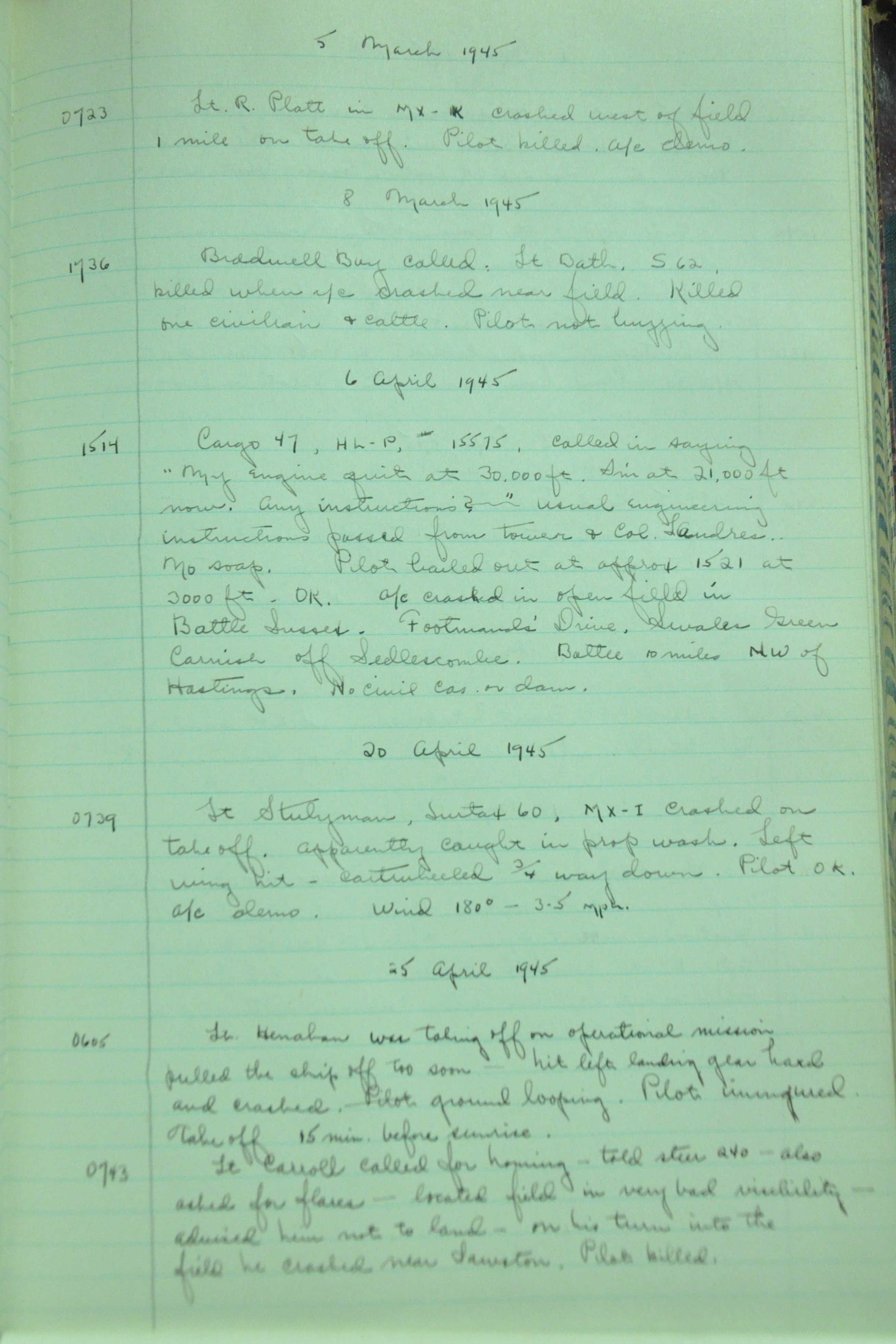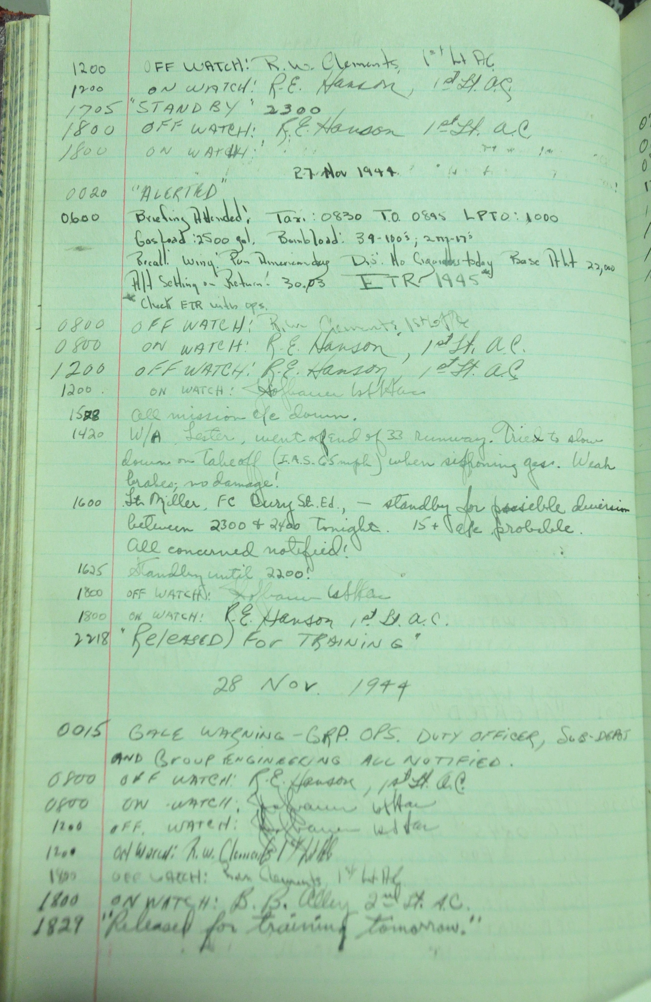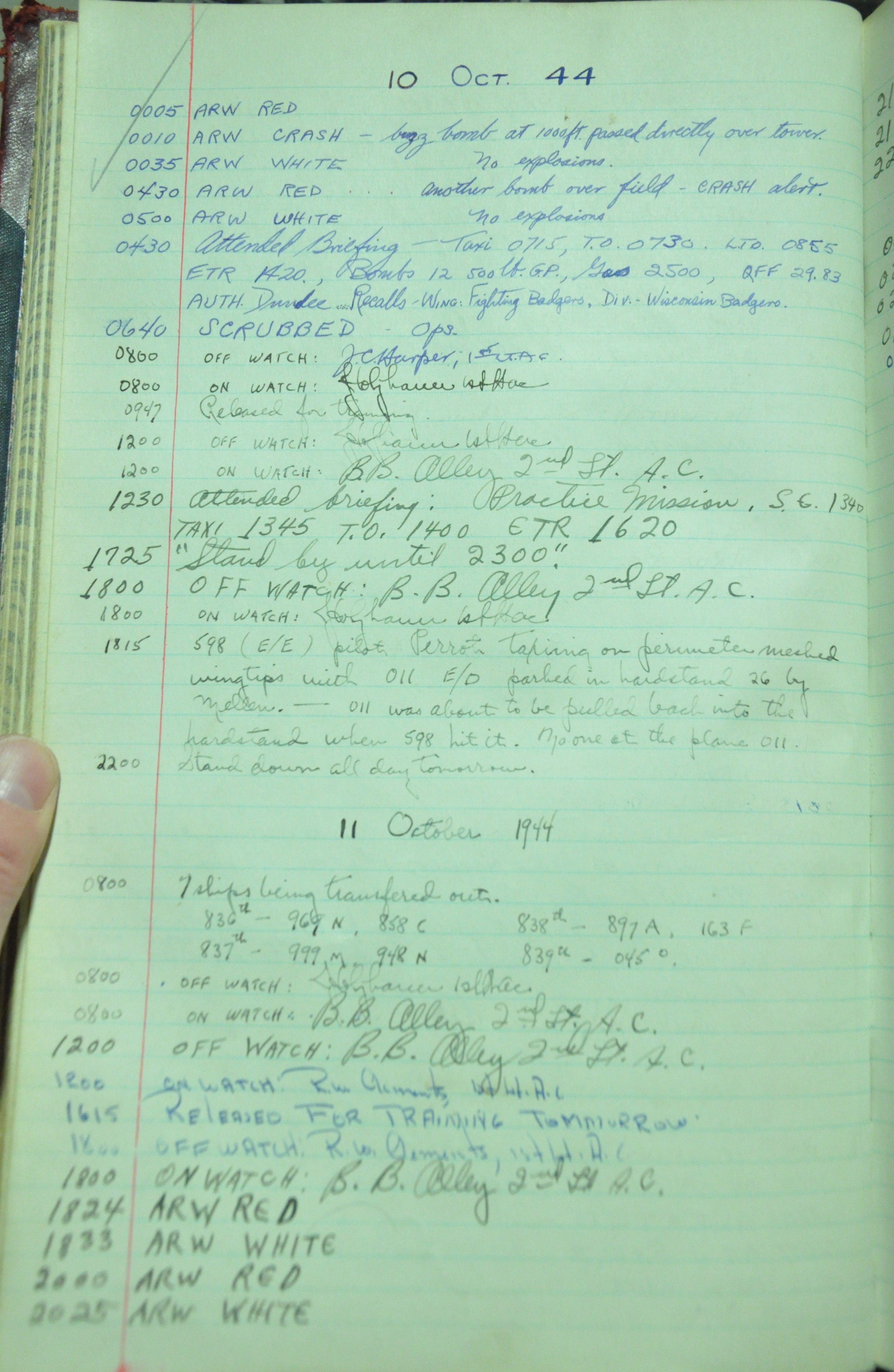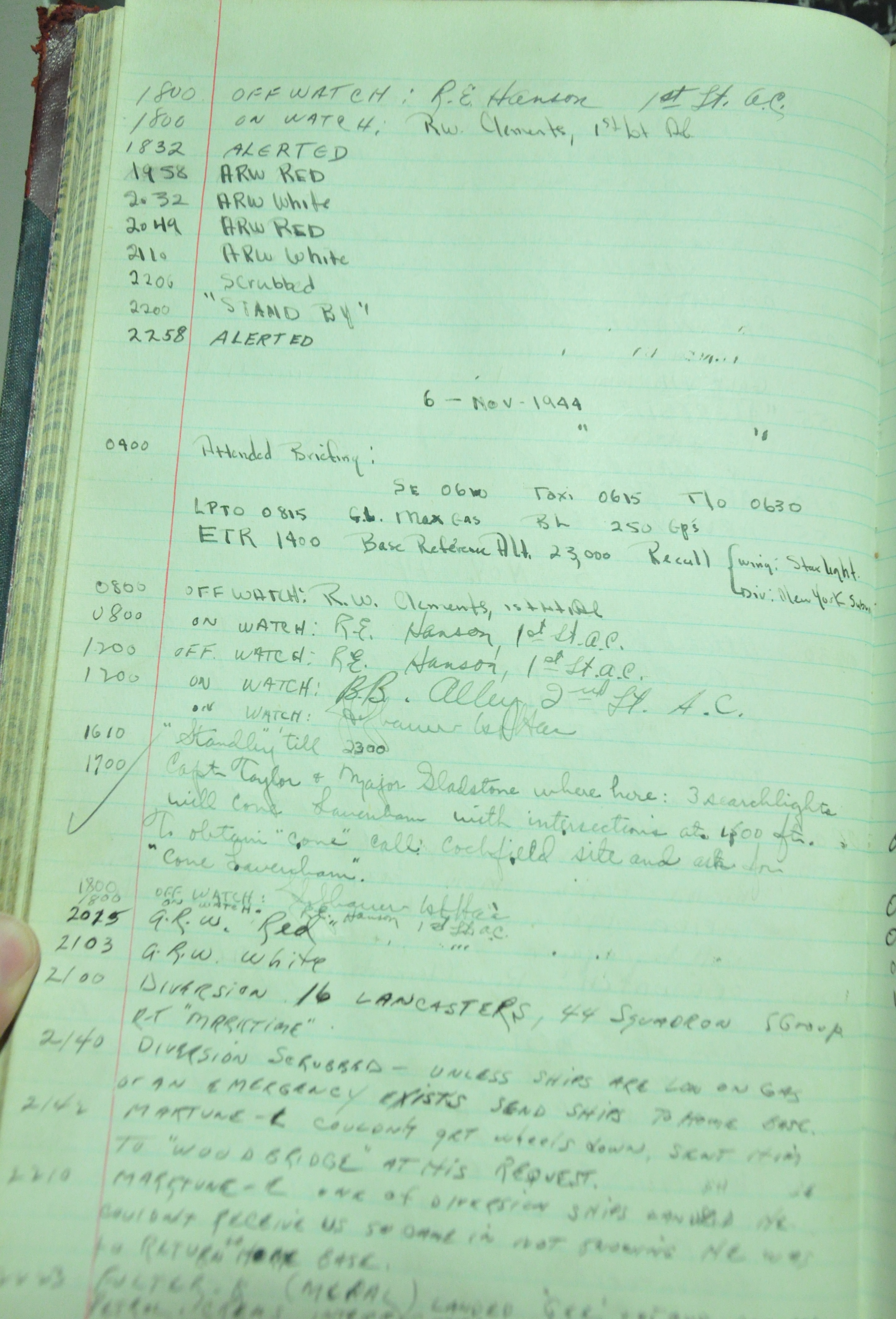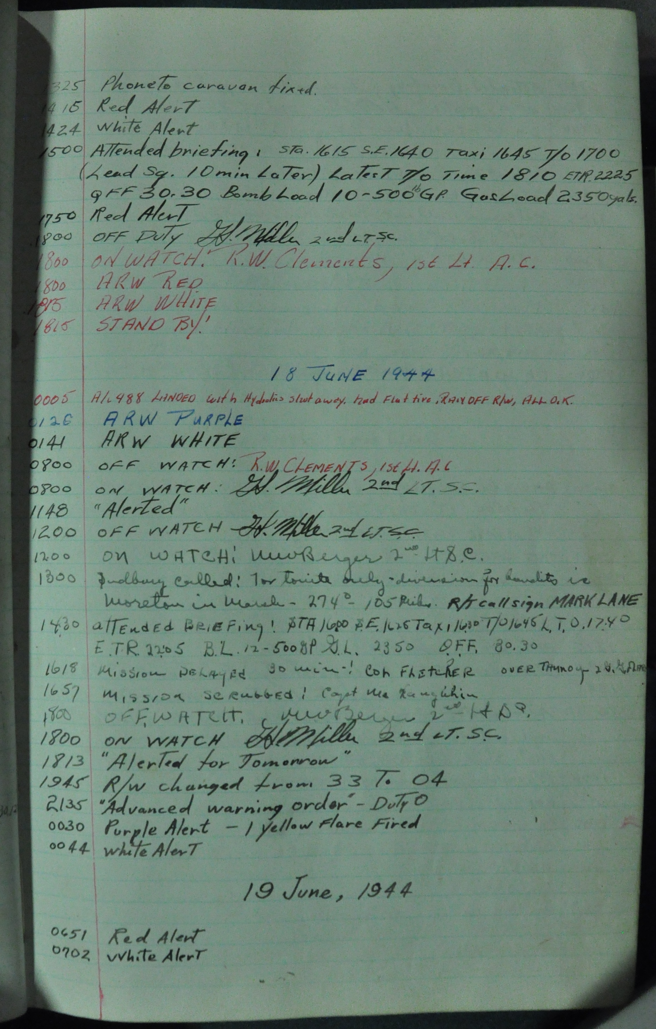 the pages of the 487th Tower Log book that is at the museum. It contains notes by the control tower officers relative to operations