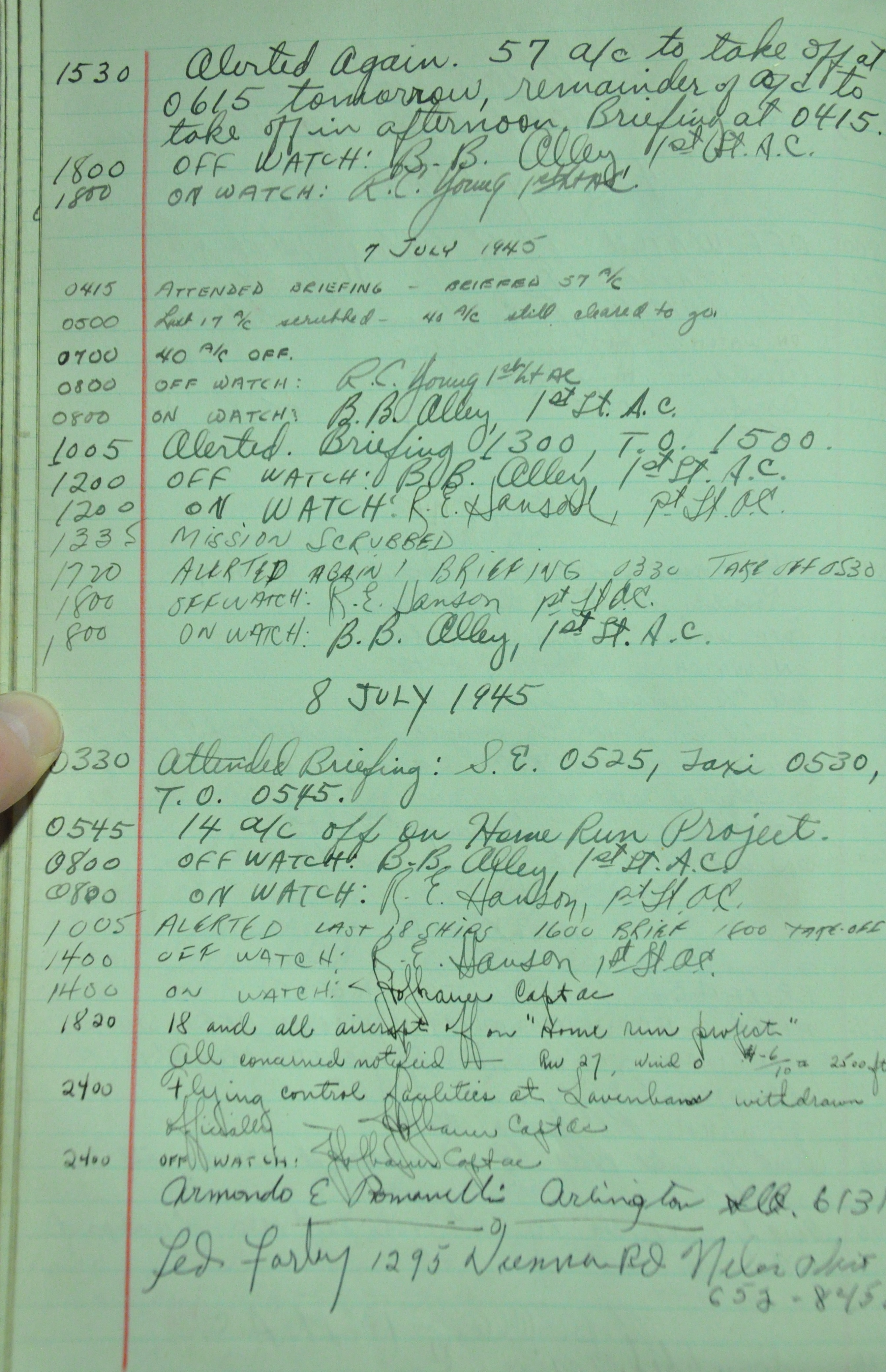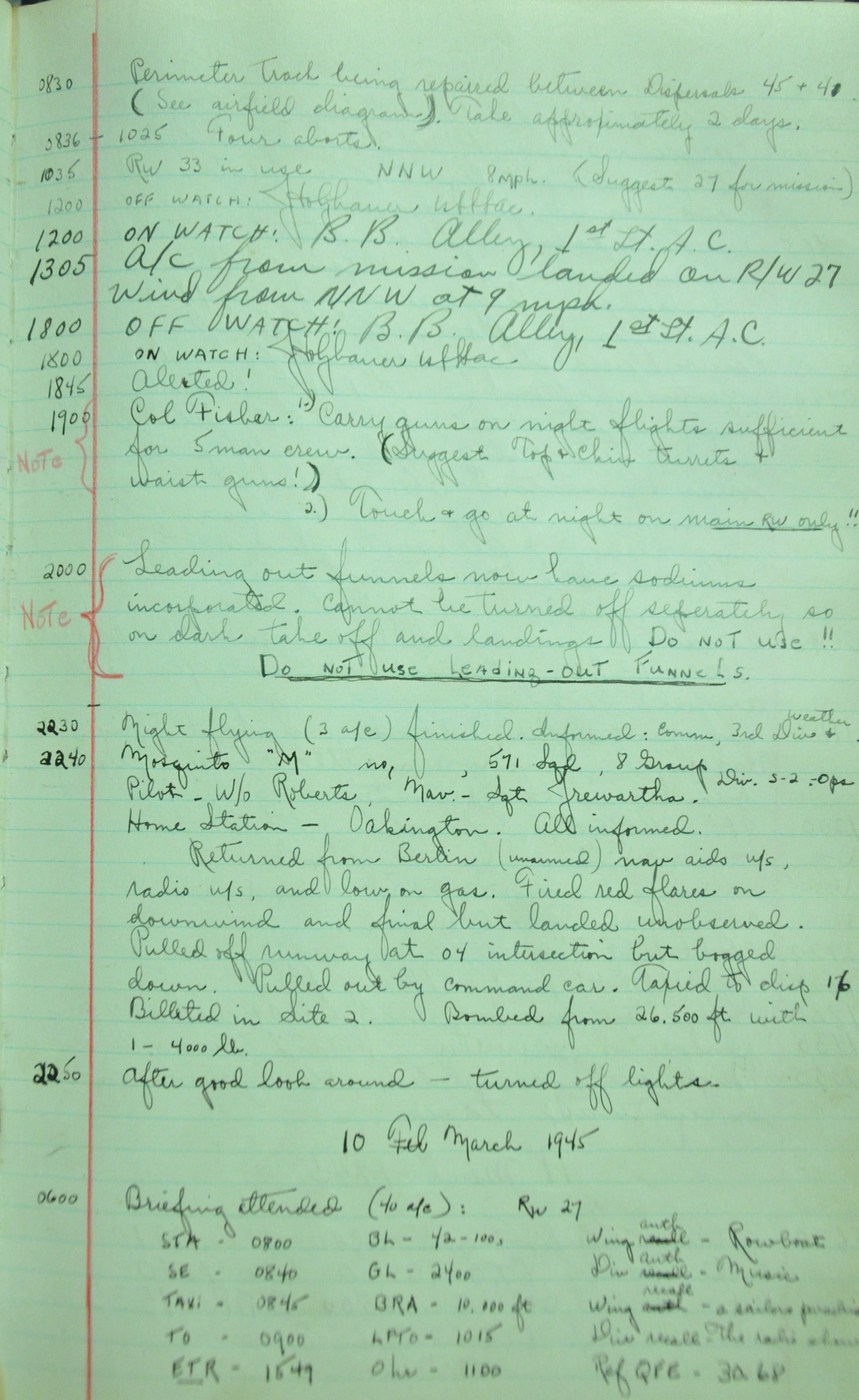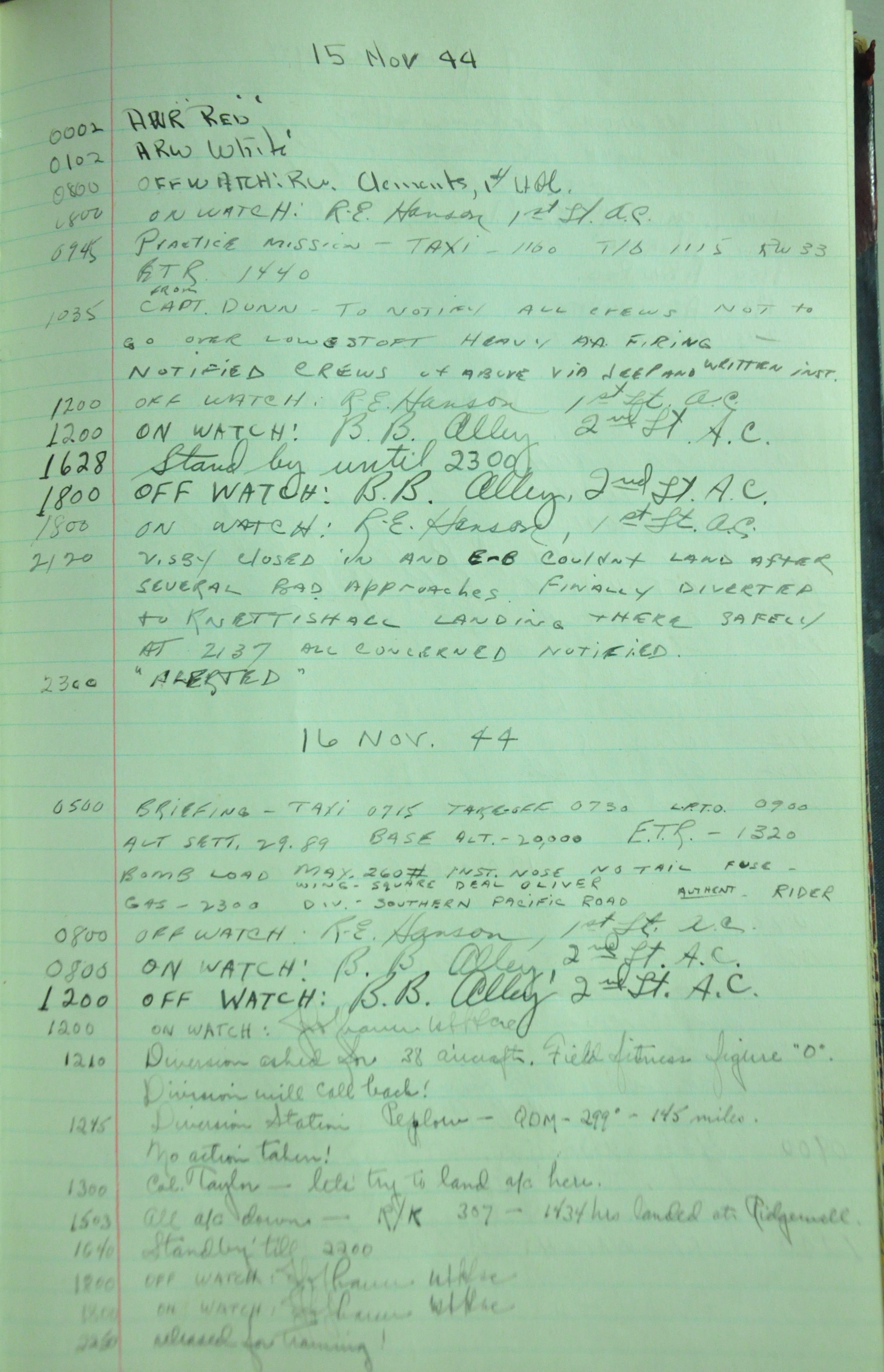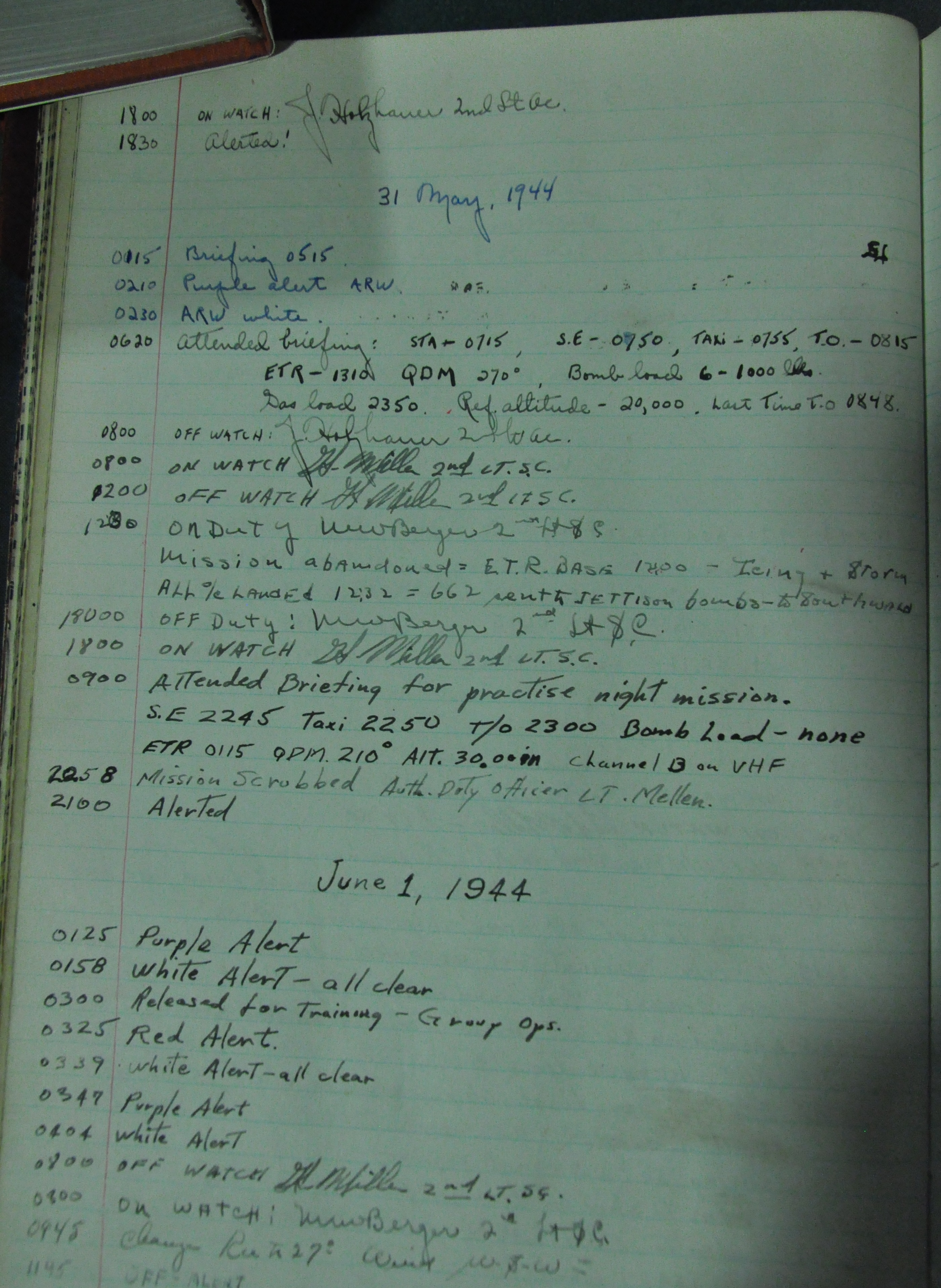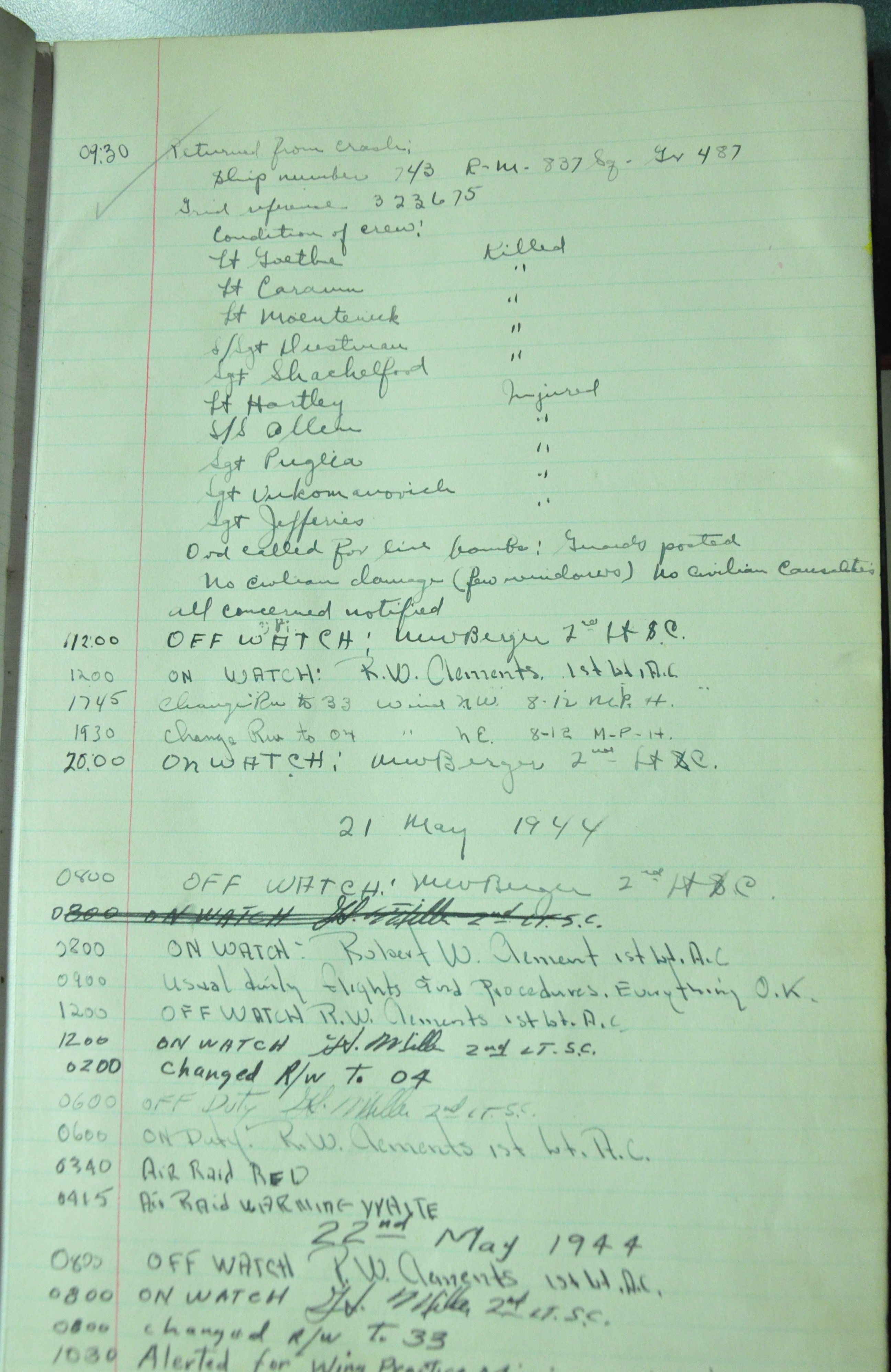 the pages of the 487th Tower Log book that is at the museum. It contains notes by the control tower officers relative to operations