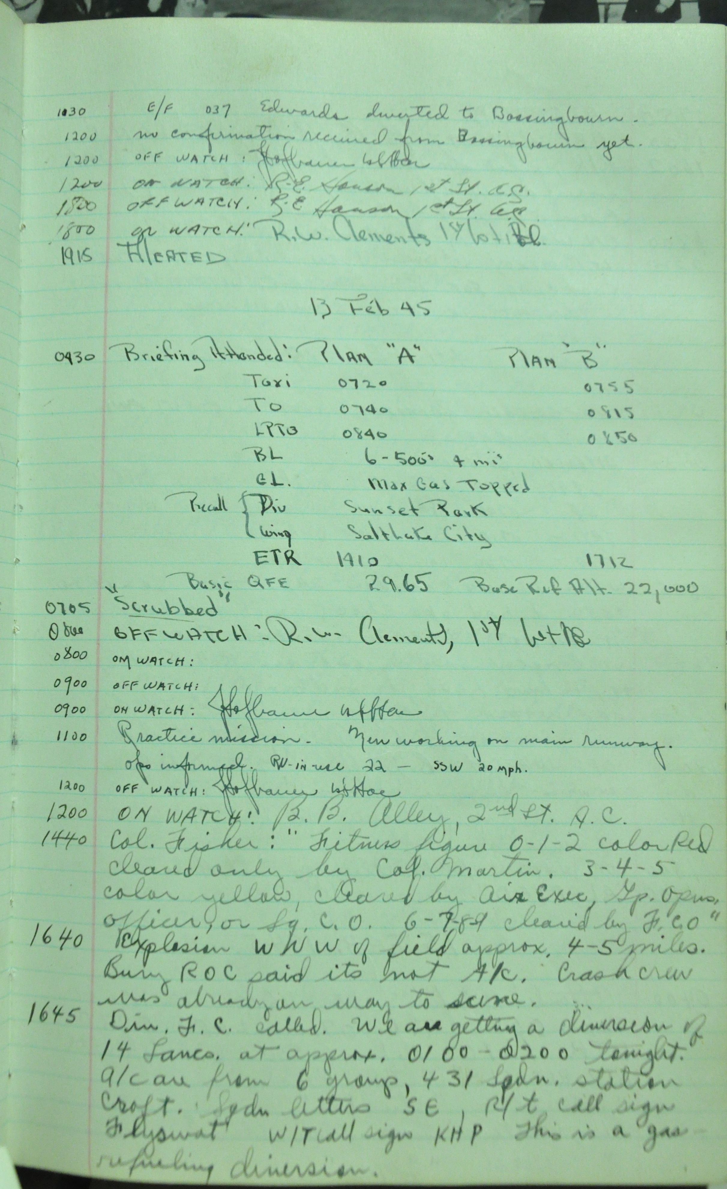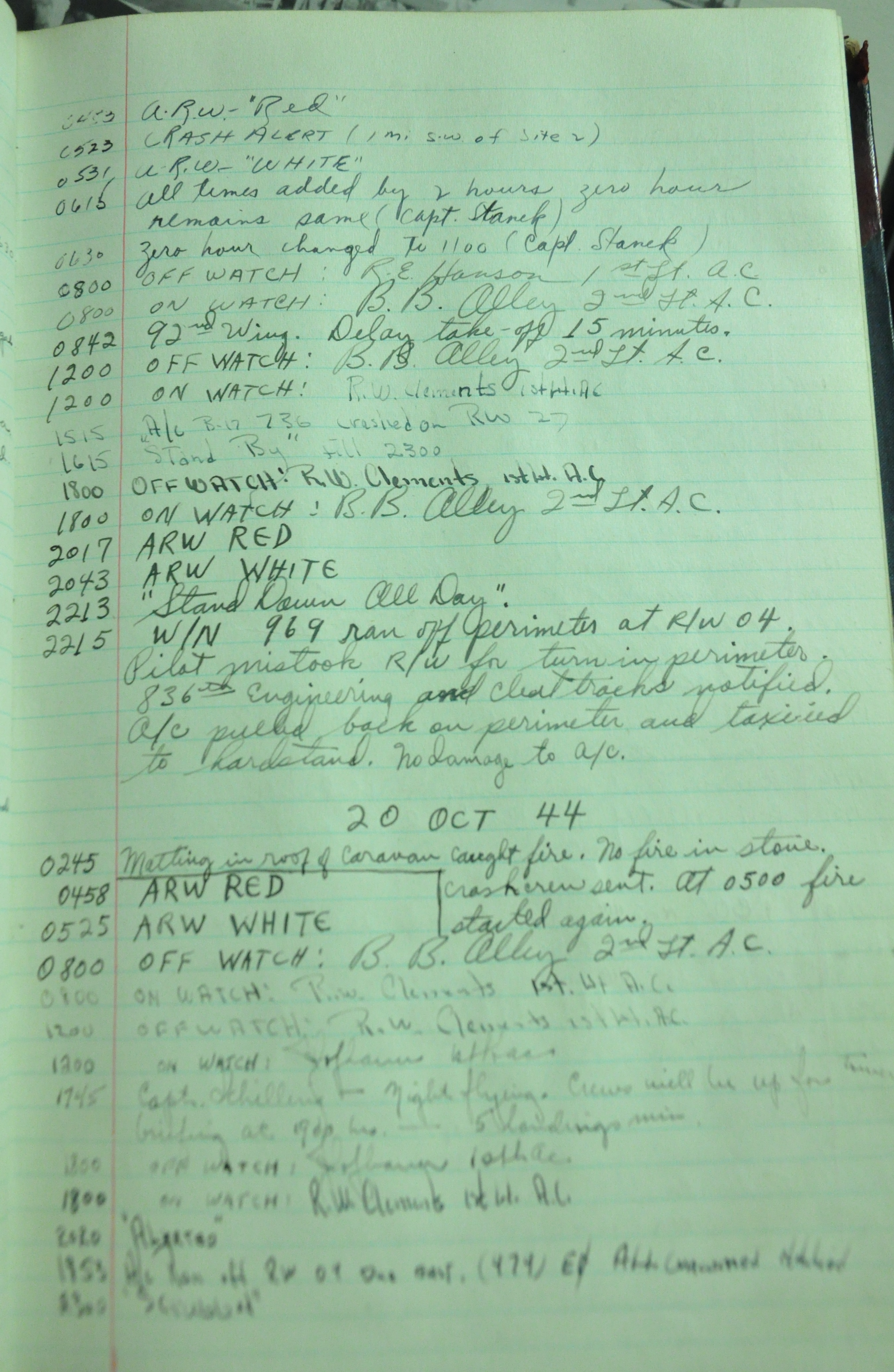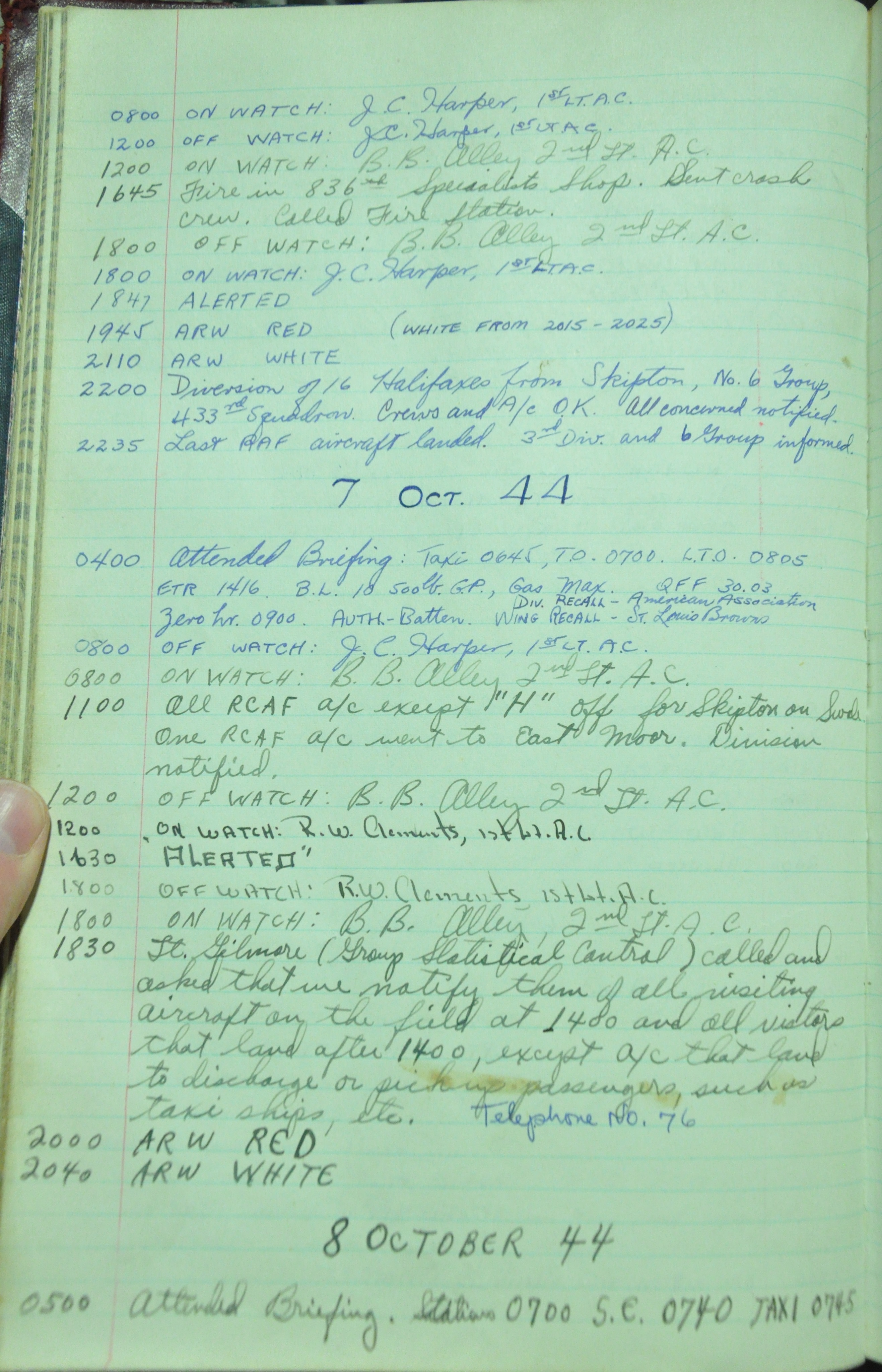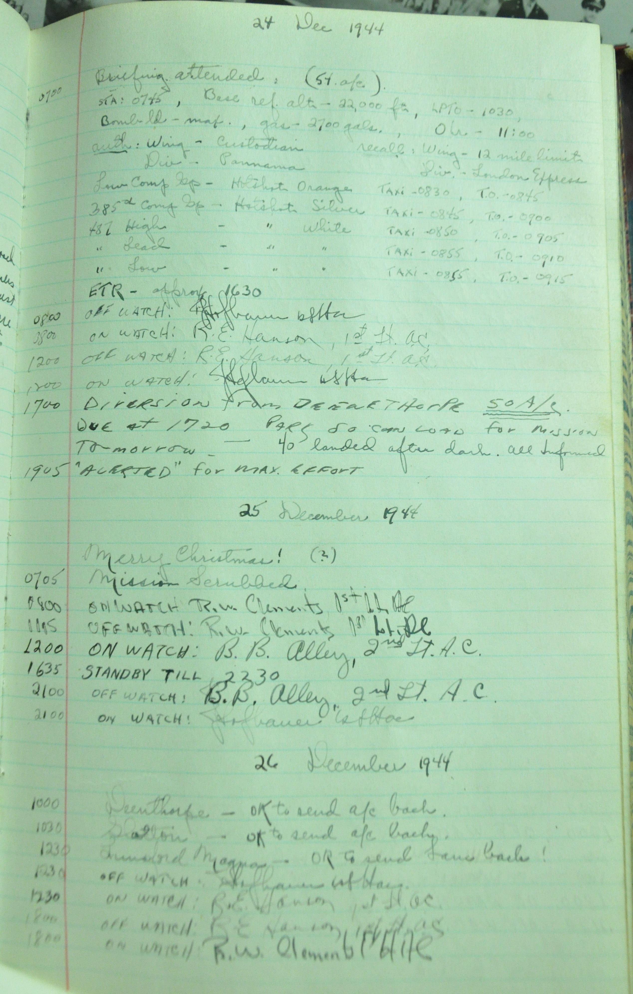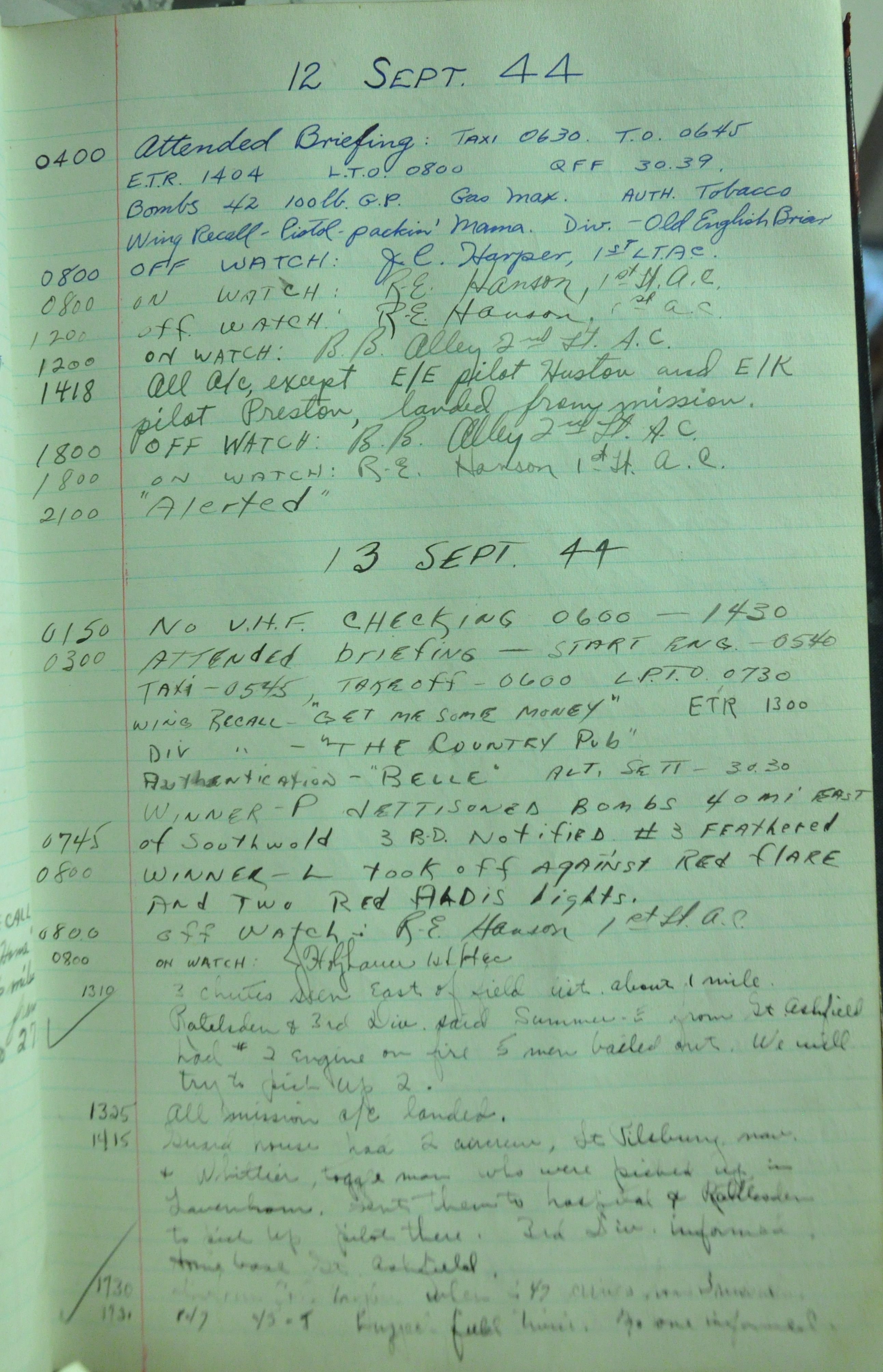 the pages of the 487th Tower Log book that is at the museum. It contains notes by the control tower officers relative to operations