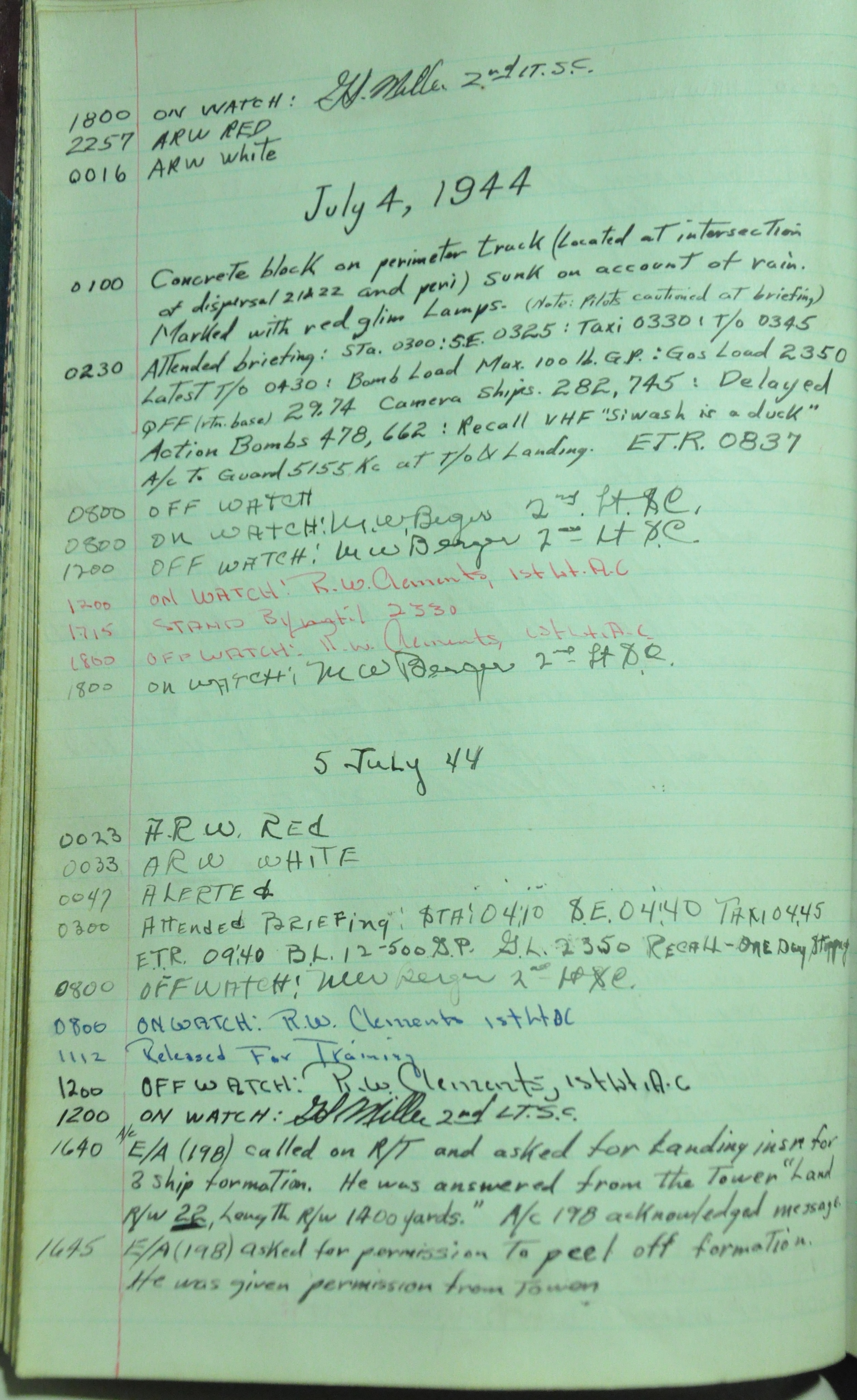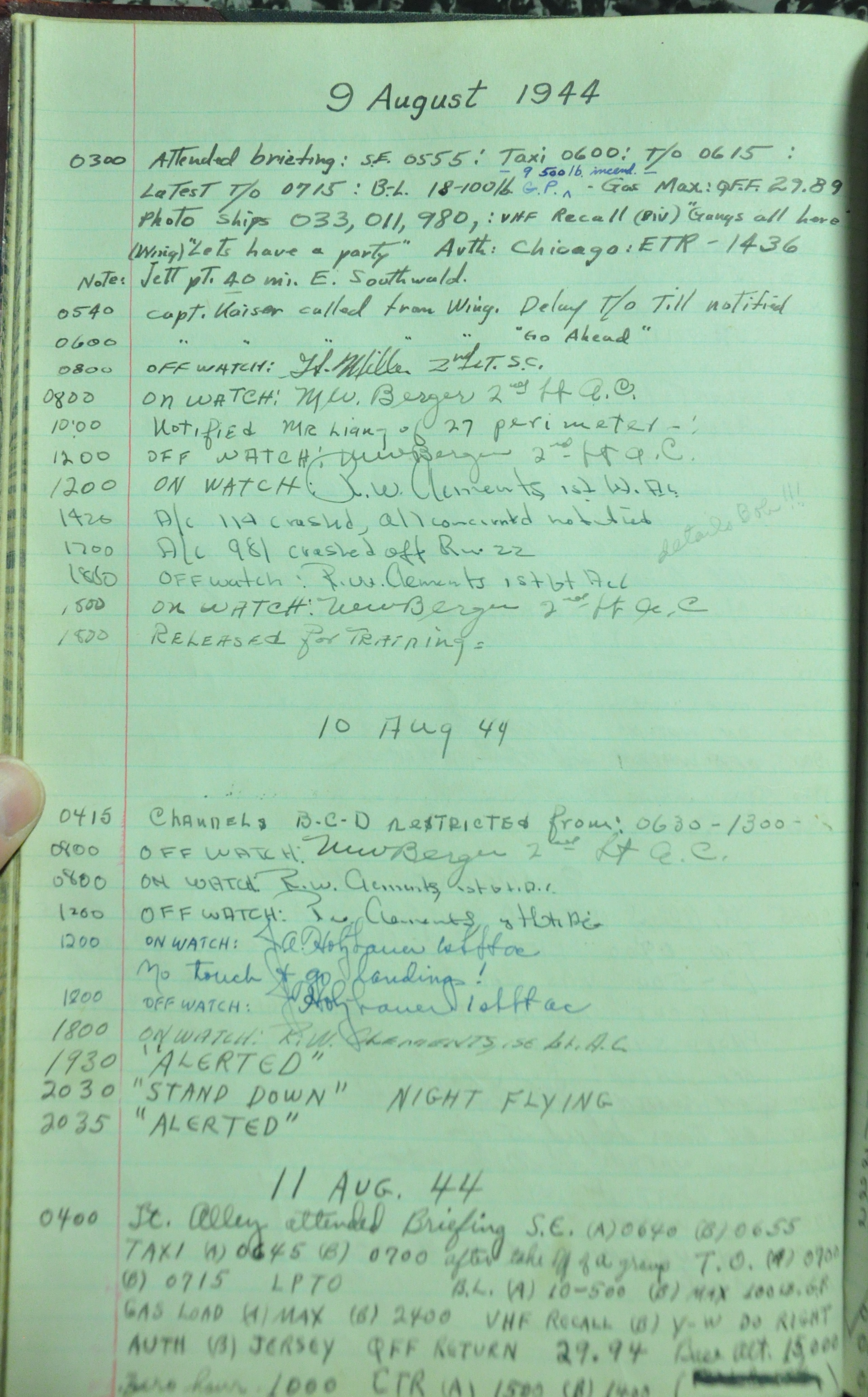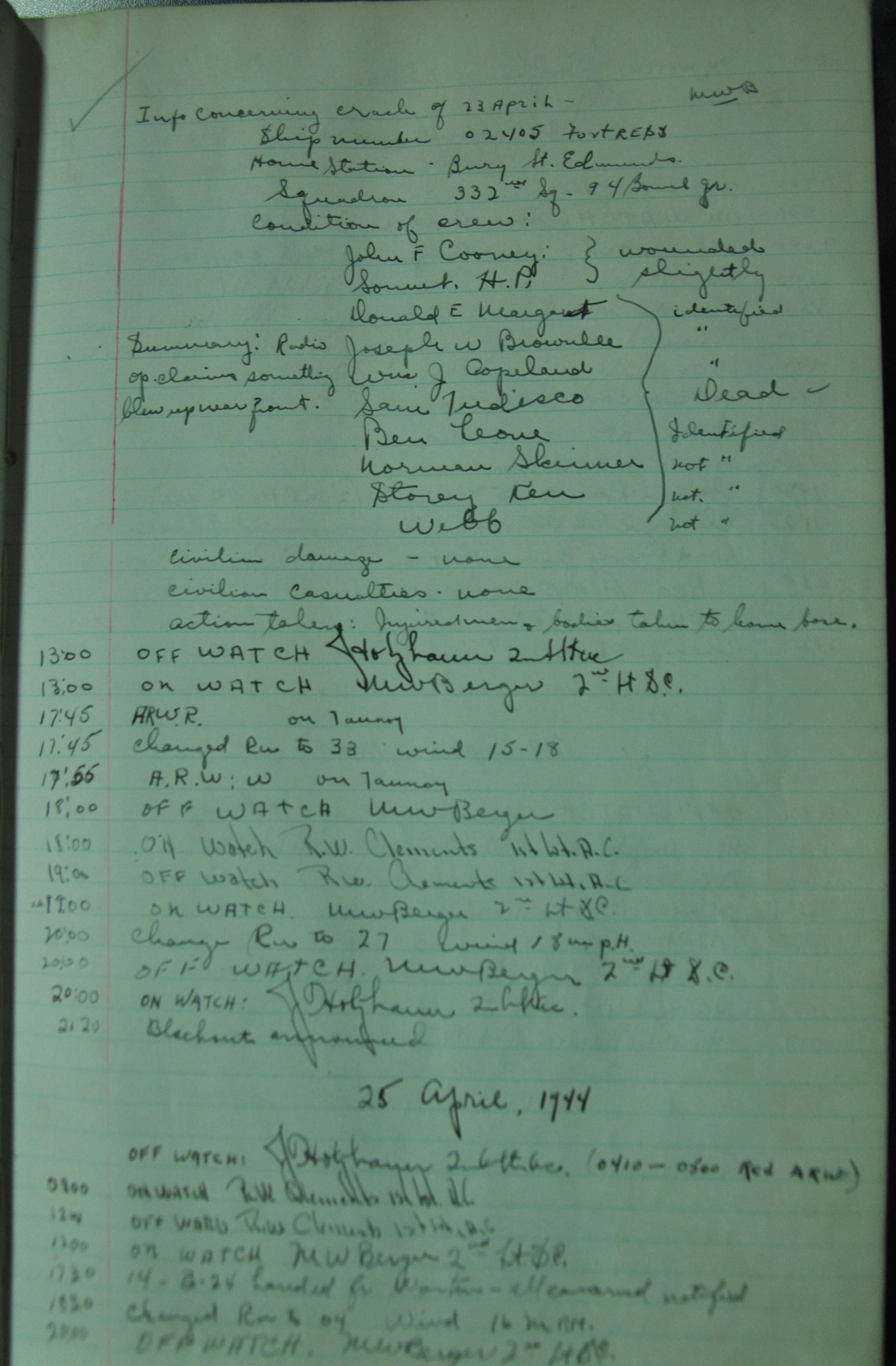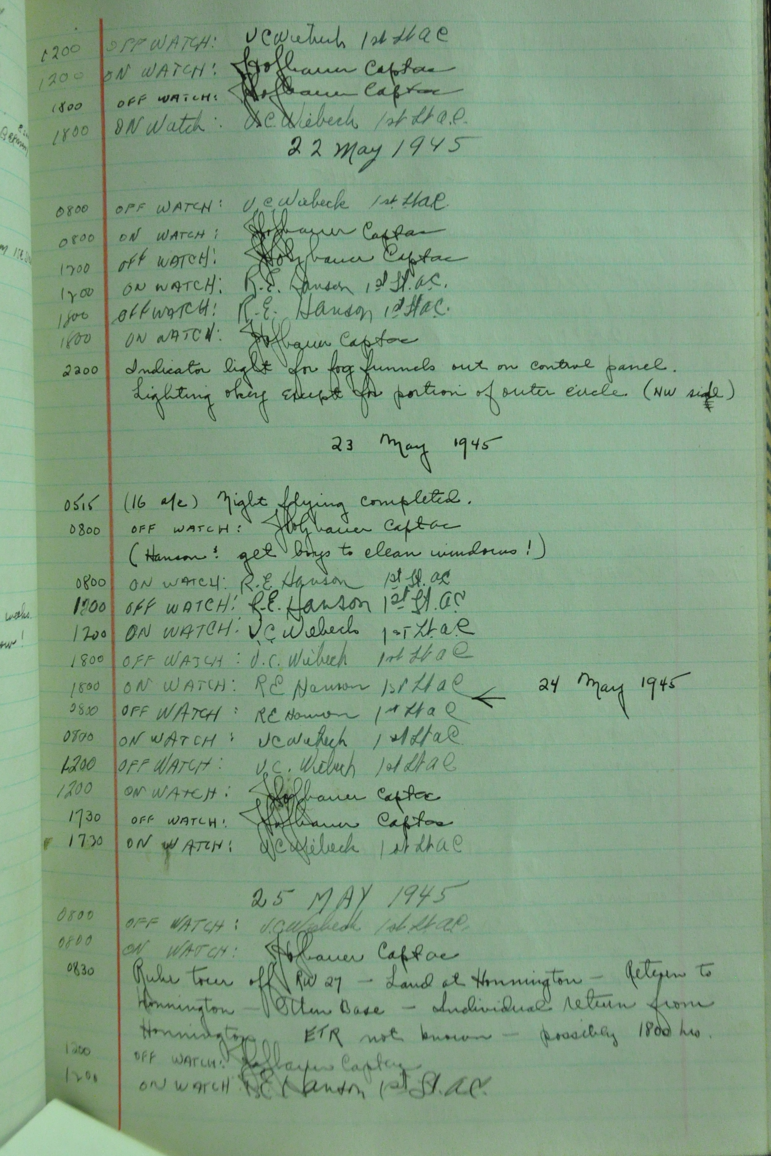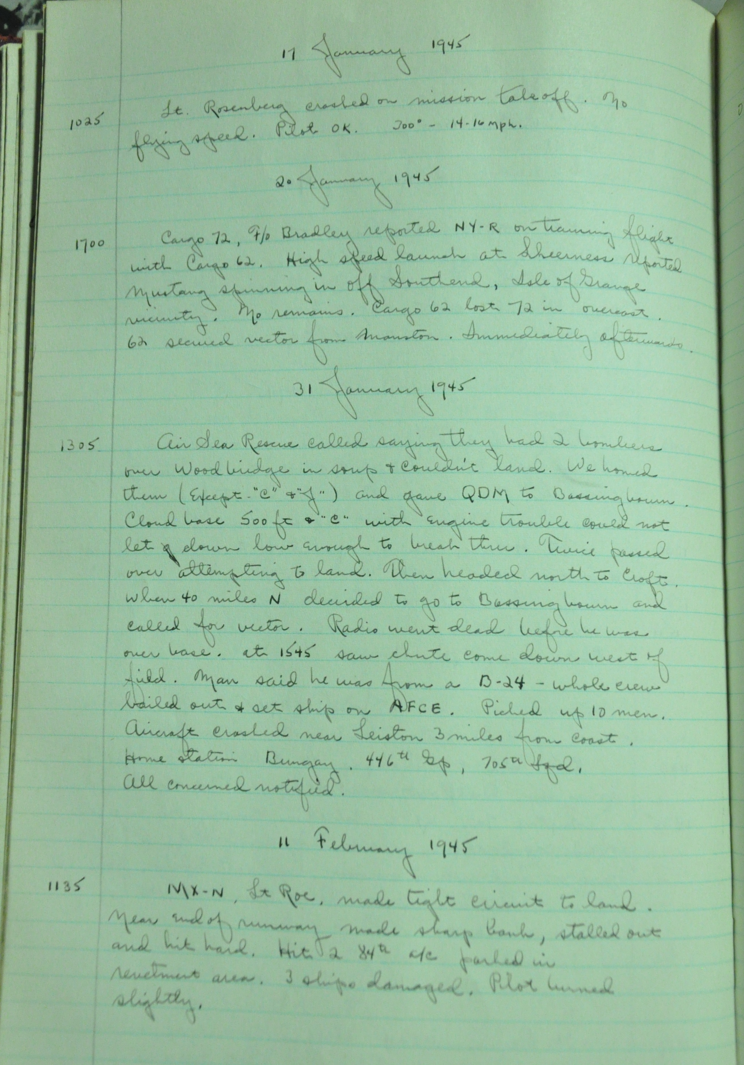 the pages of the 487th Tower Log book that is at the museum. It contains notes by the control tower officers relative to operations