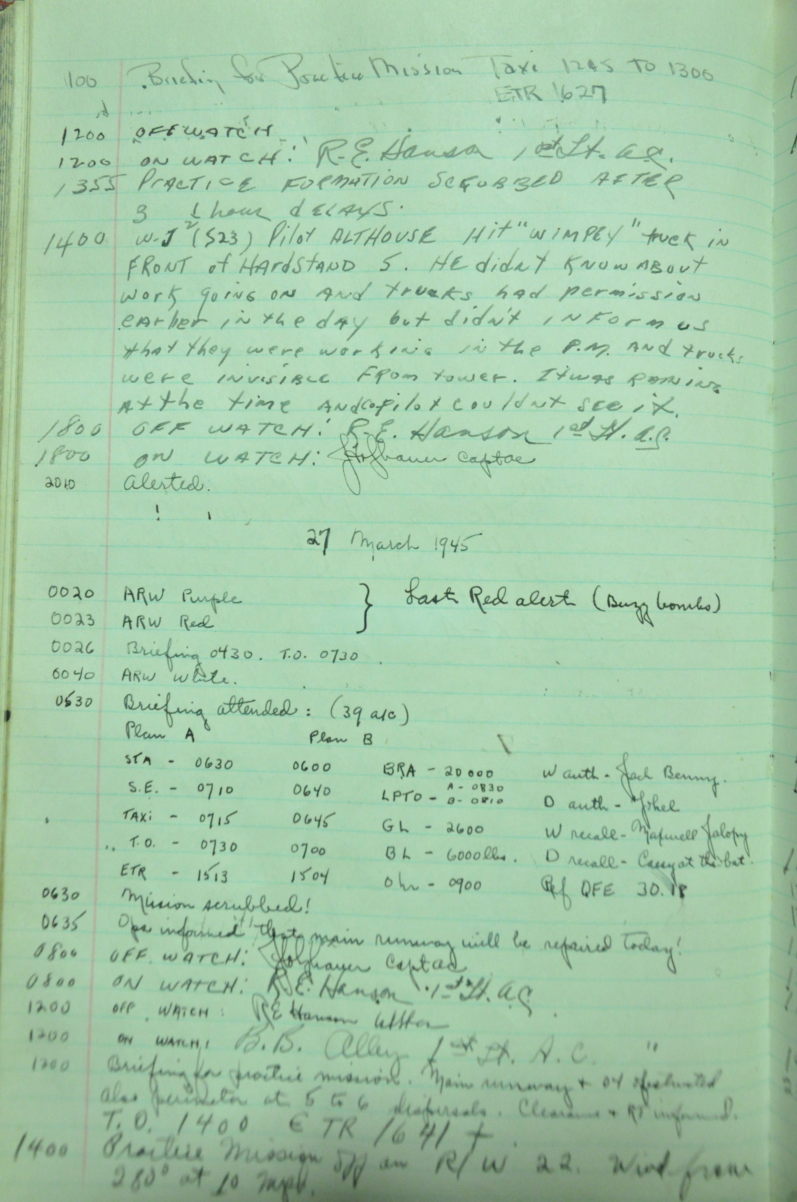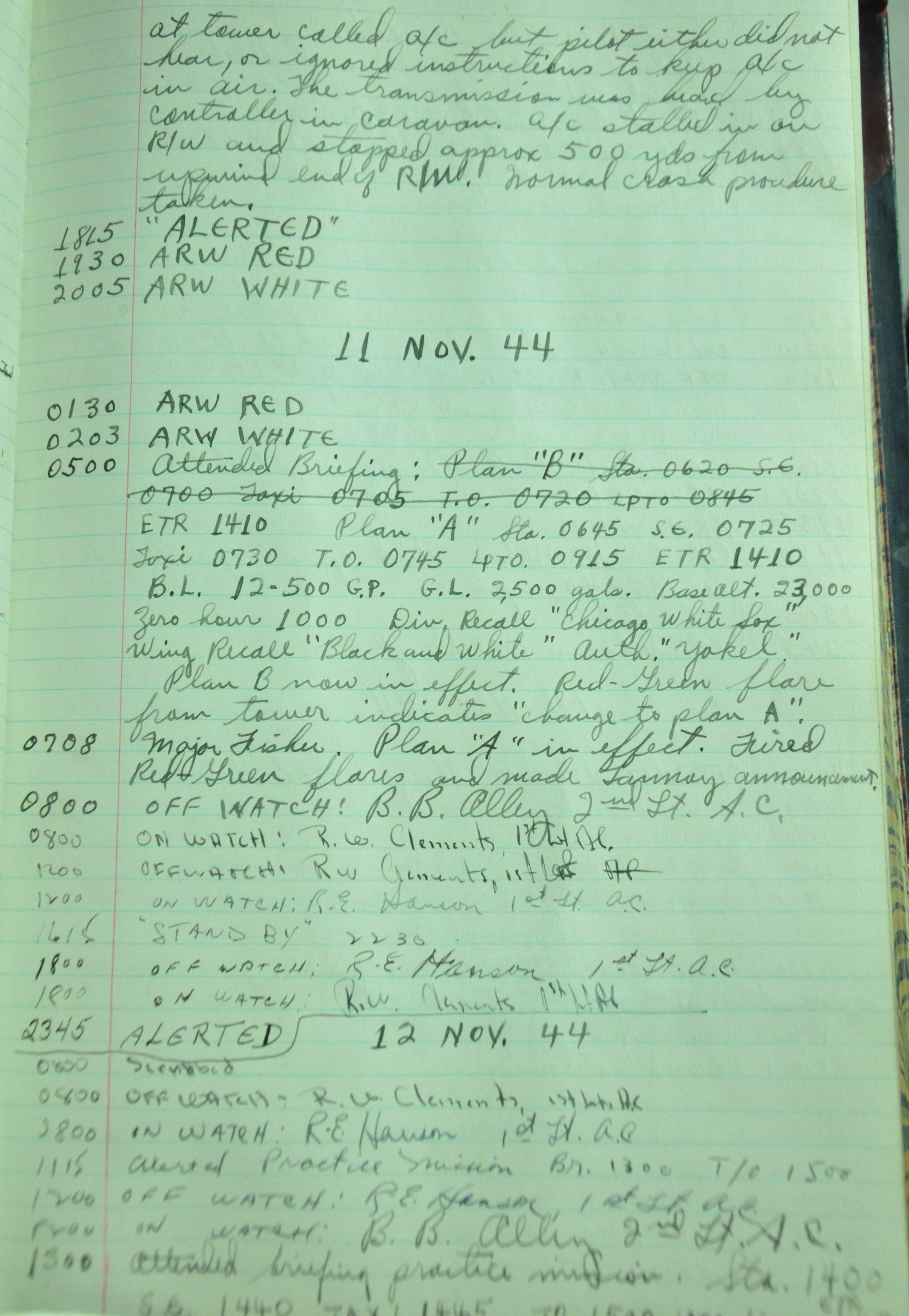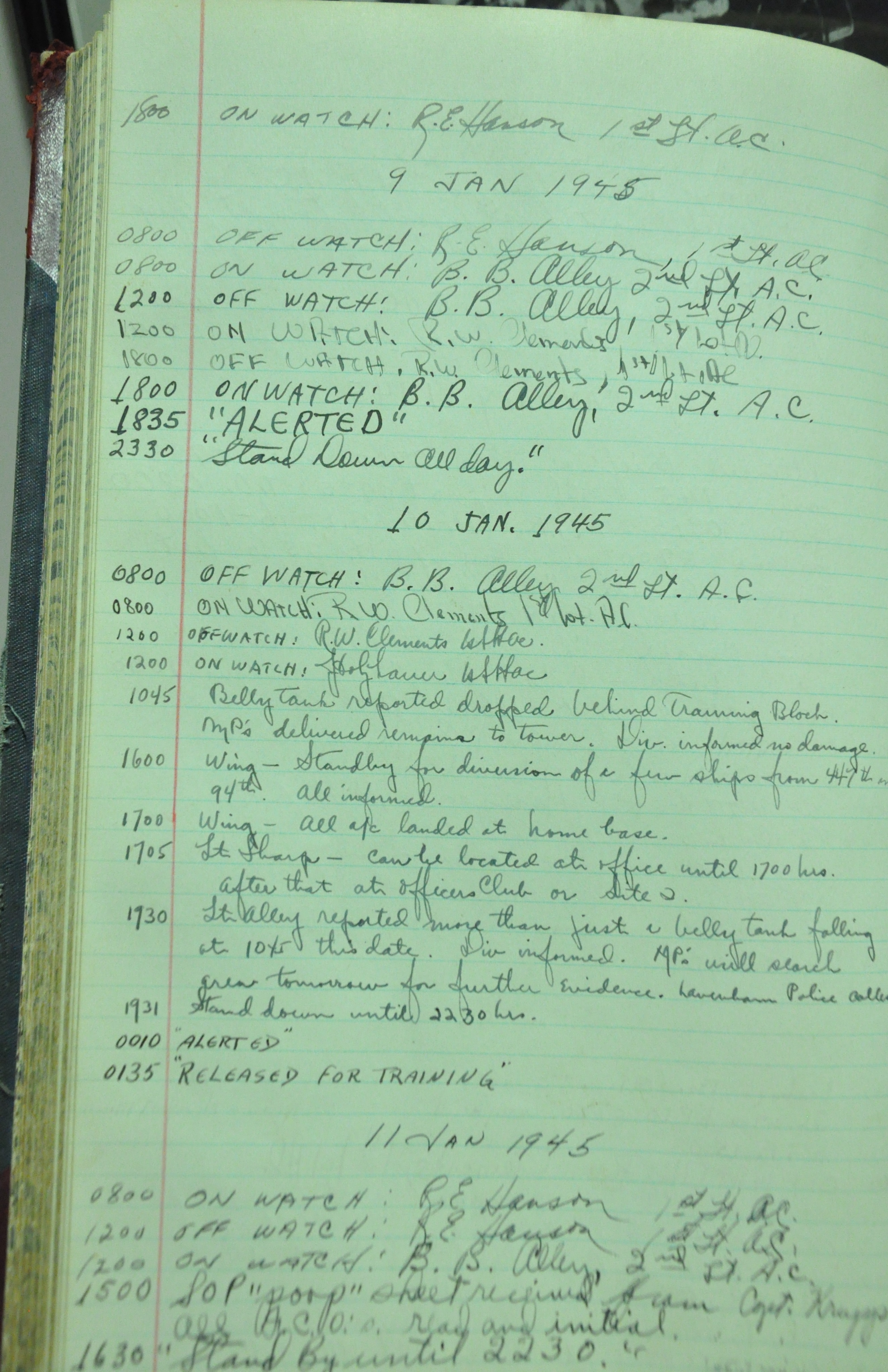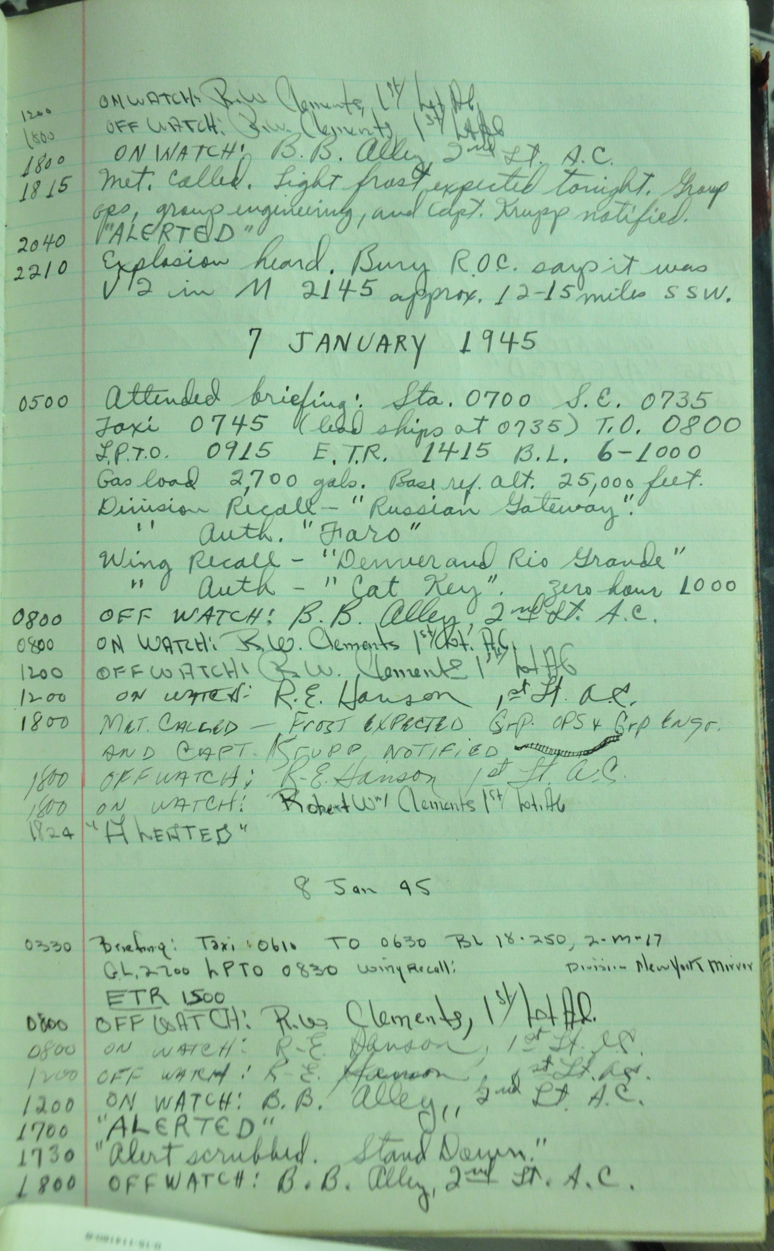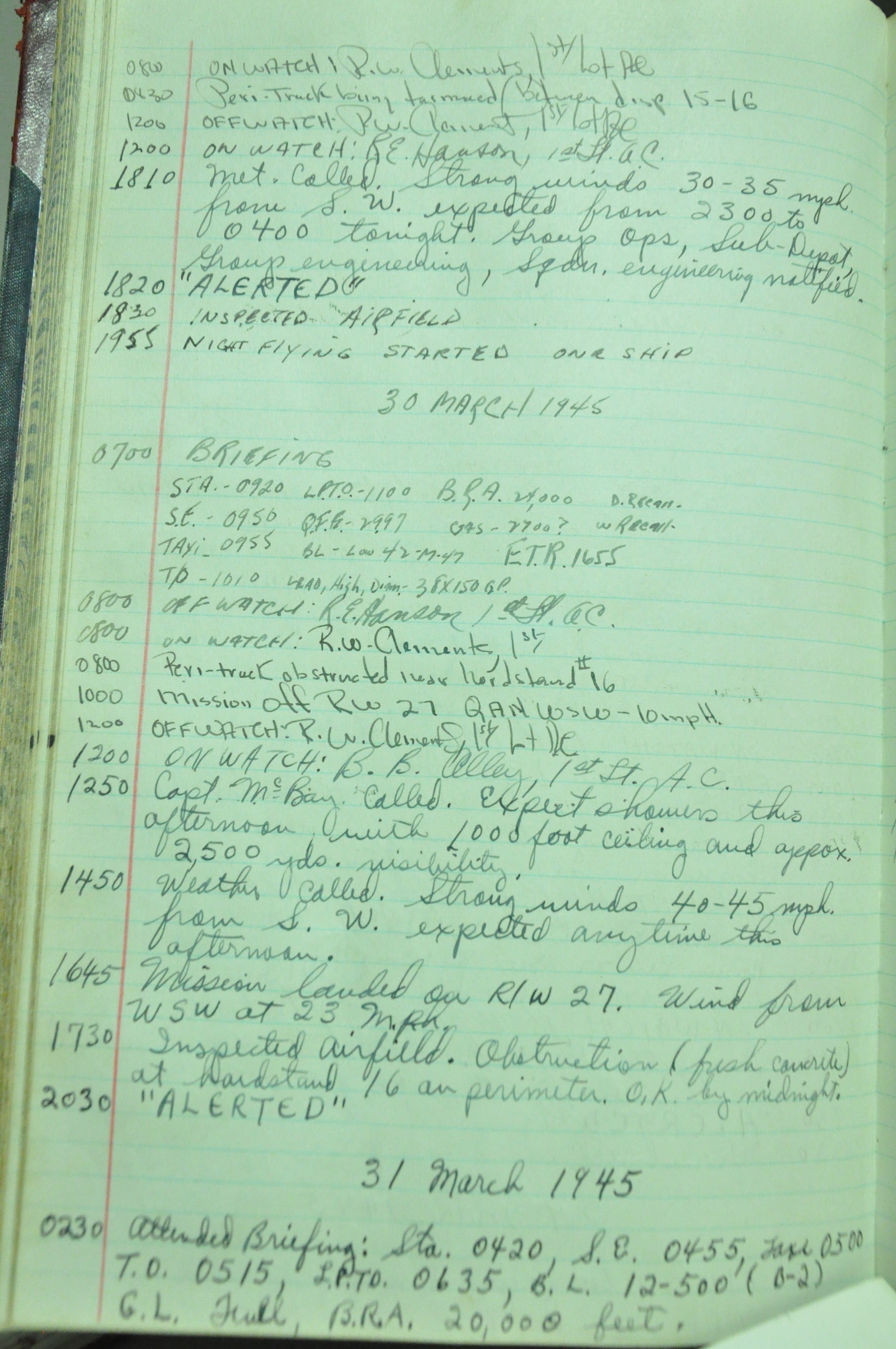 the pages of the 487th Tower Log book that is at the museum. It contains notes by the control tower officers relative to operations