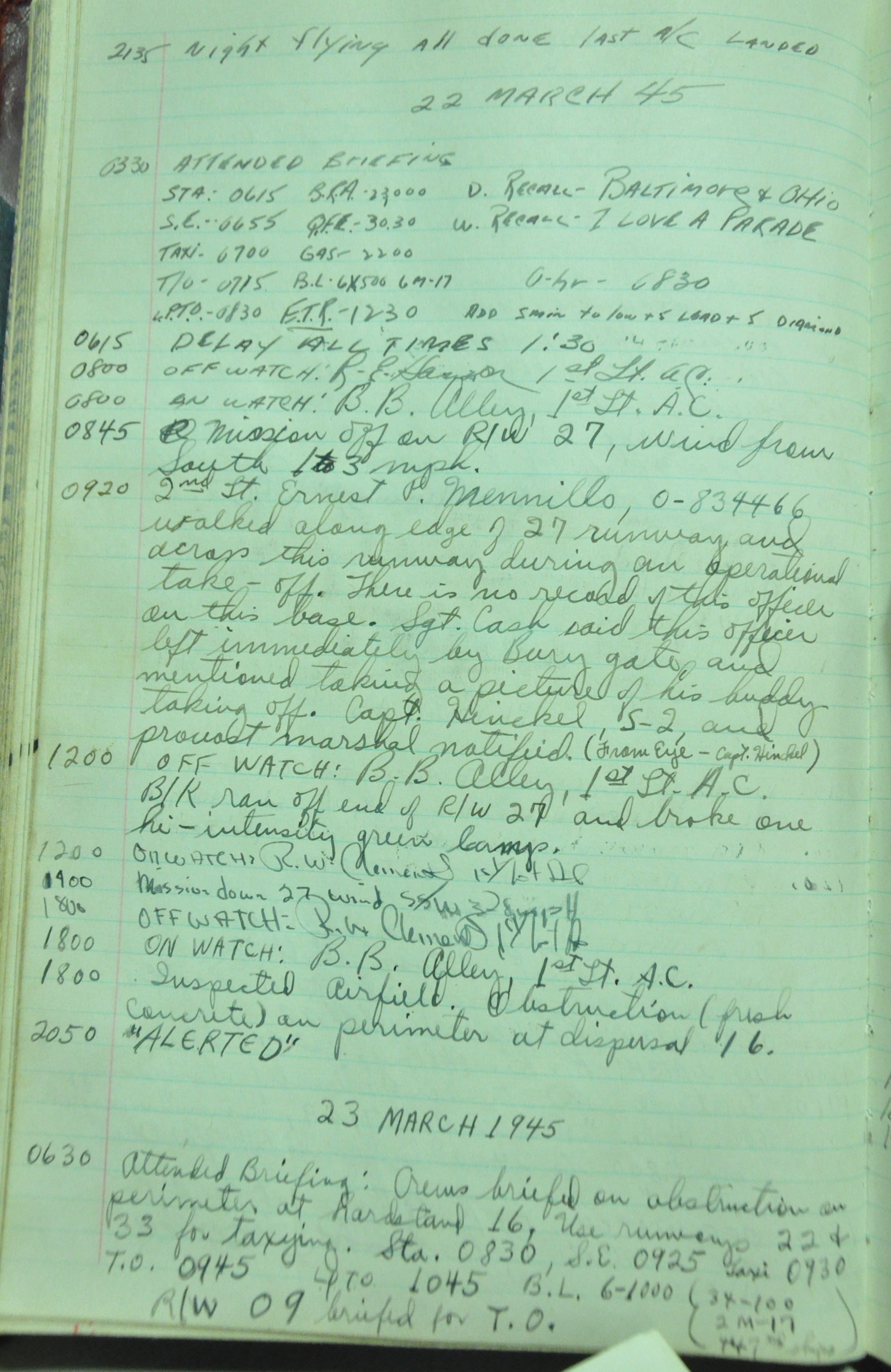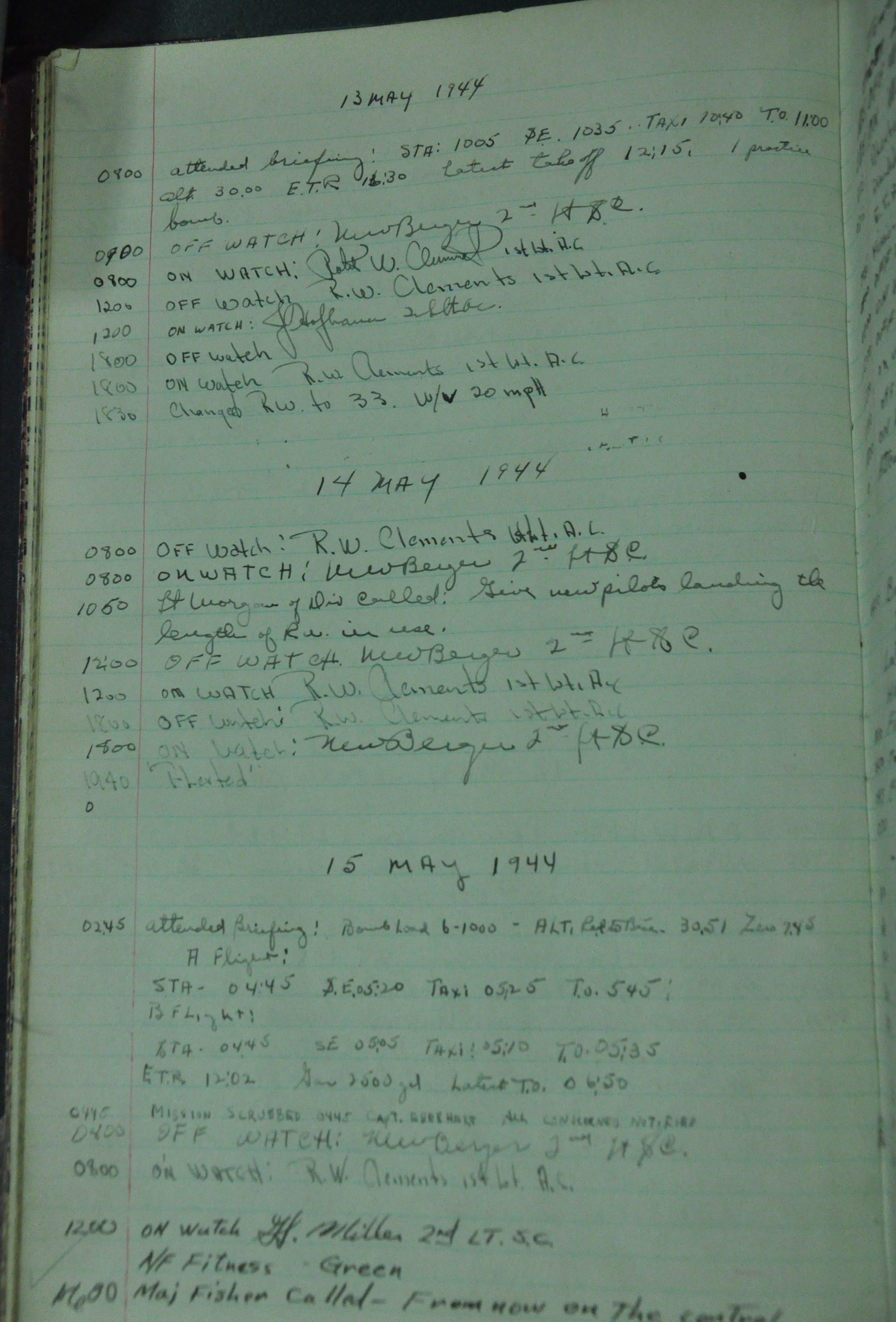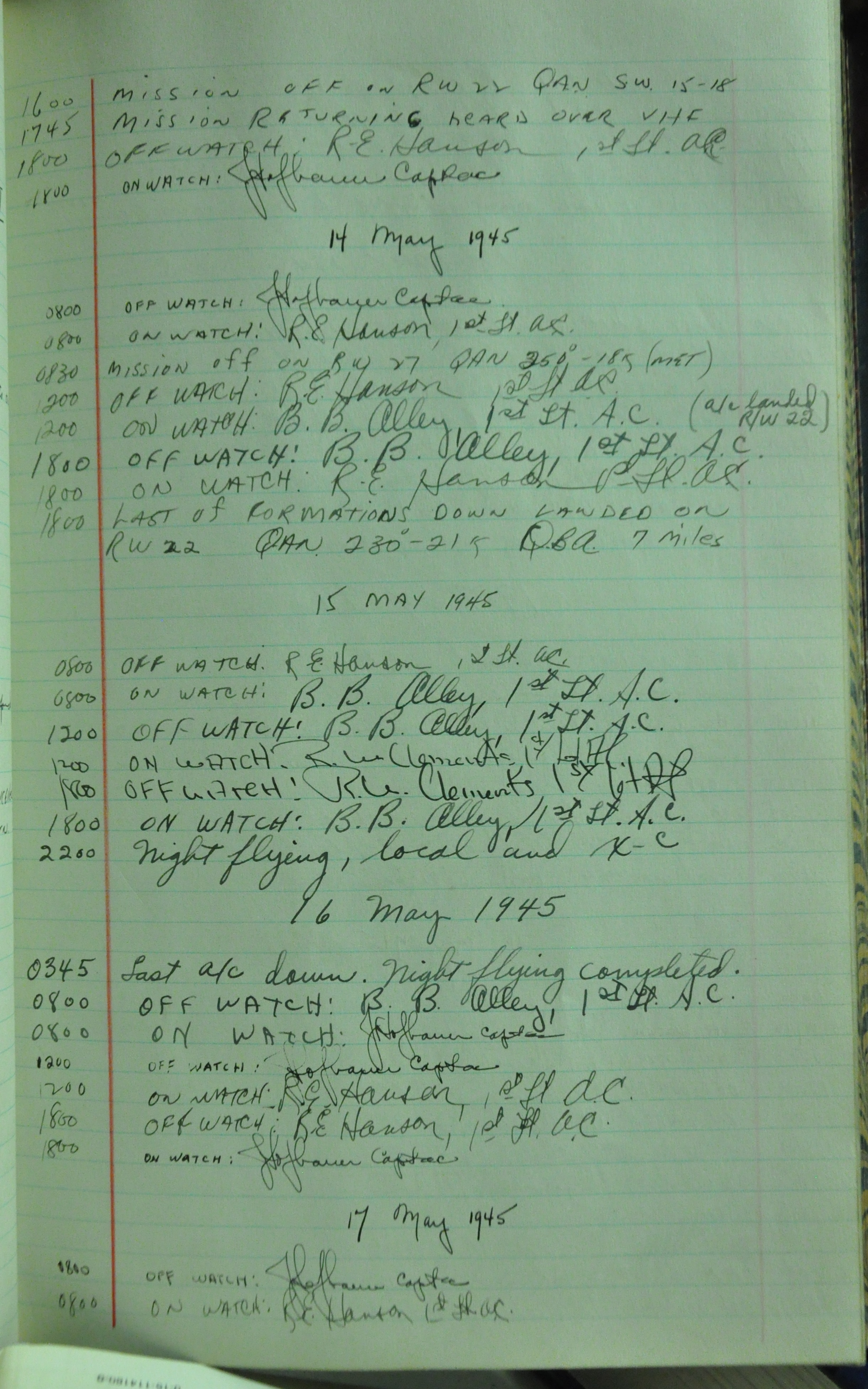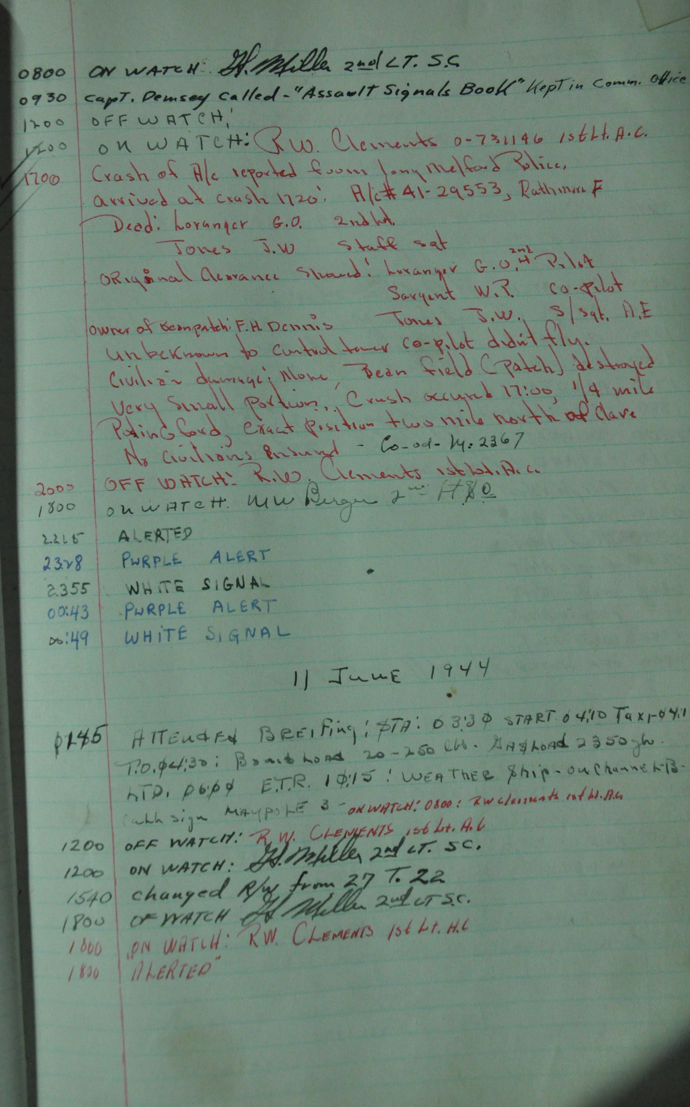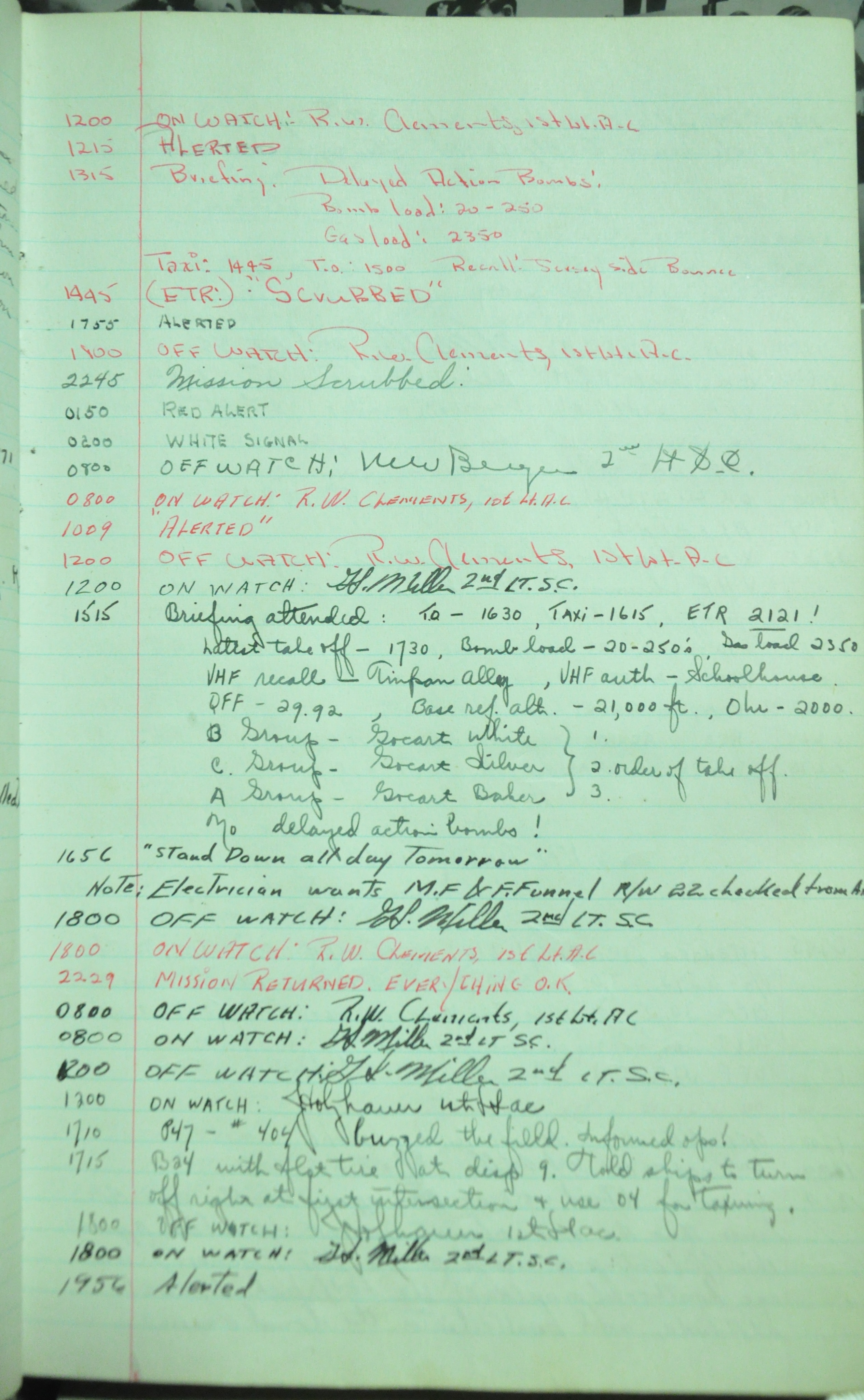 the pages of the 487th Tower Log book that is at the museum. It contains notes by the control tower officers relative to operations