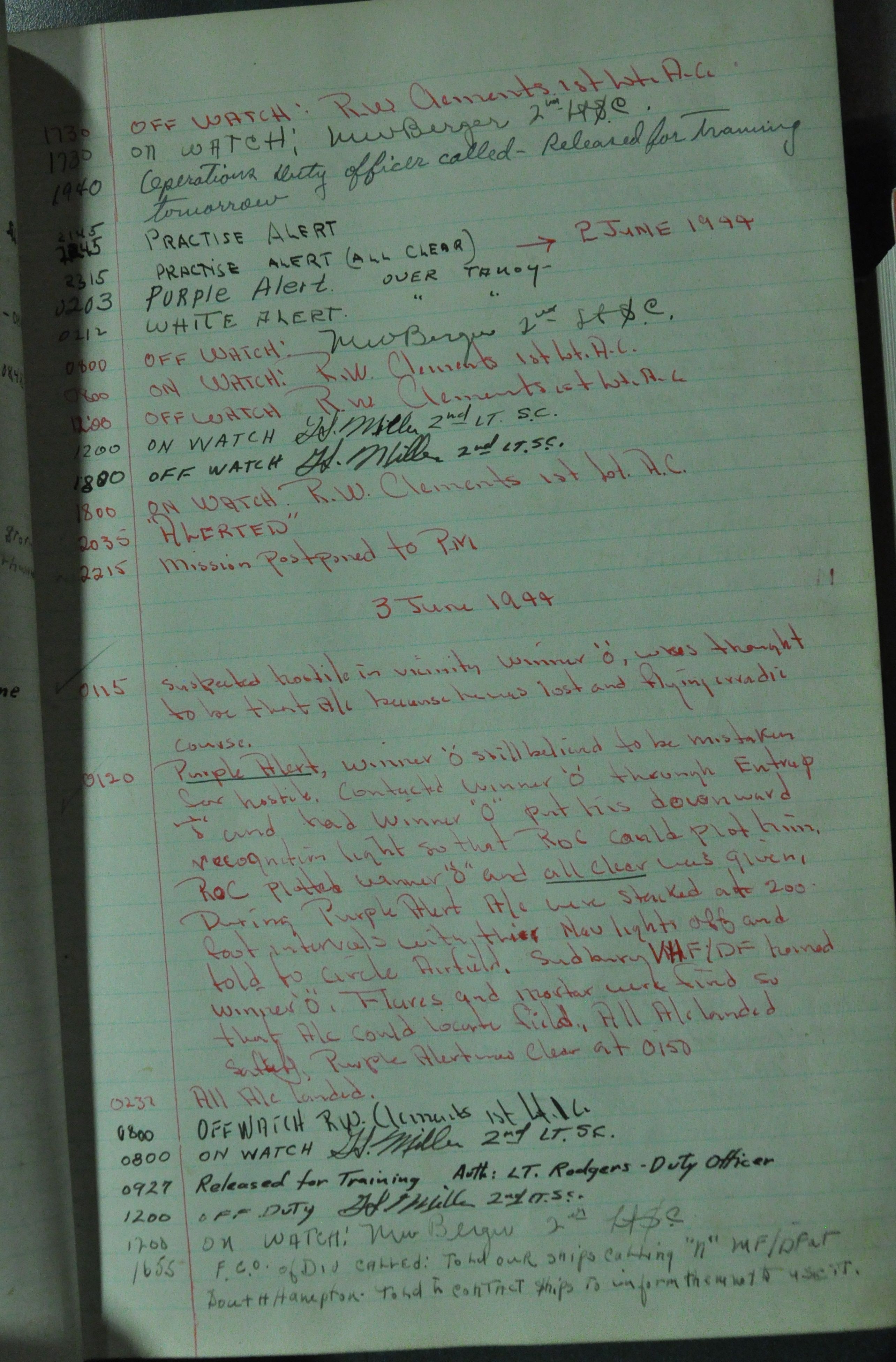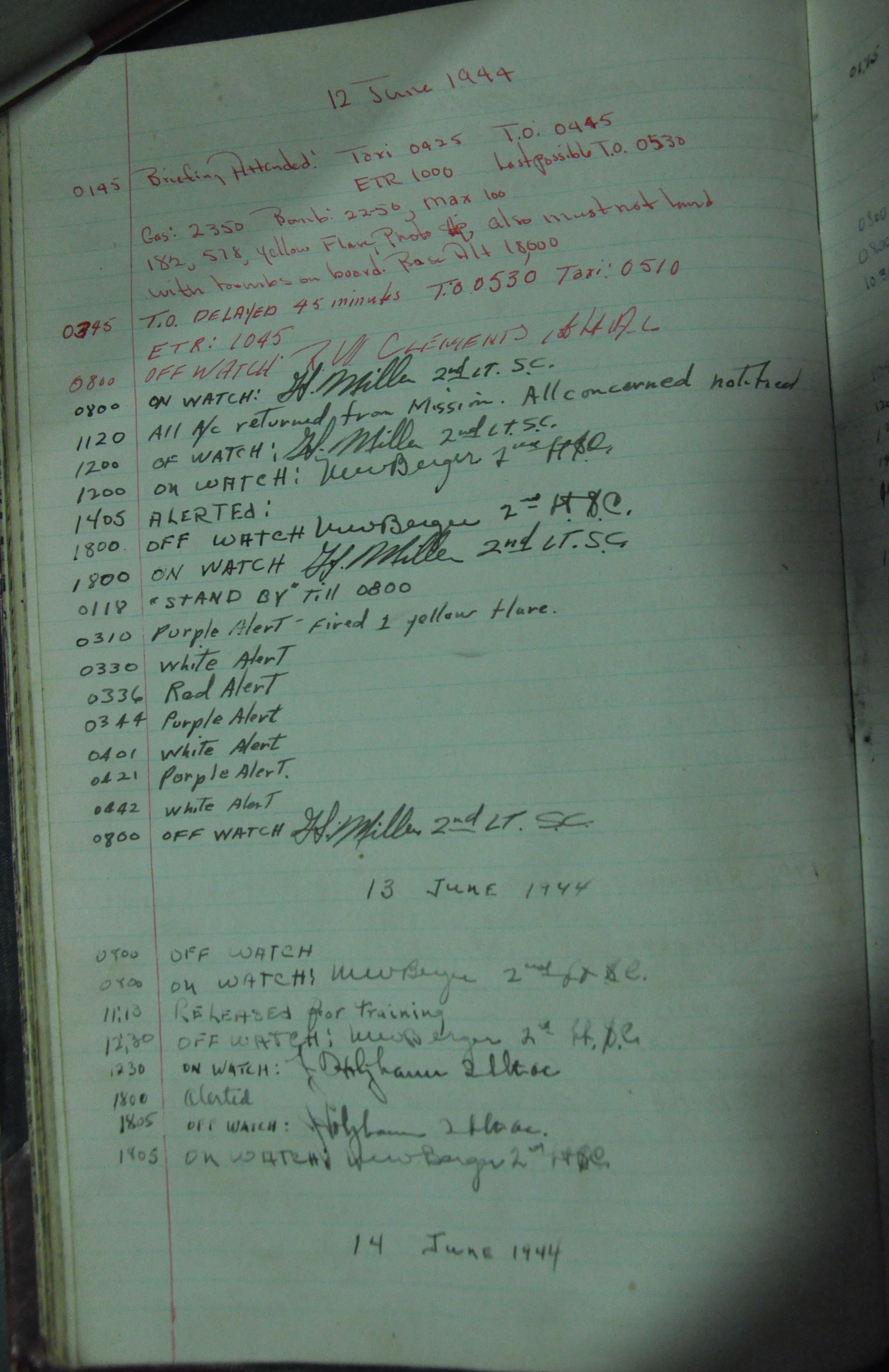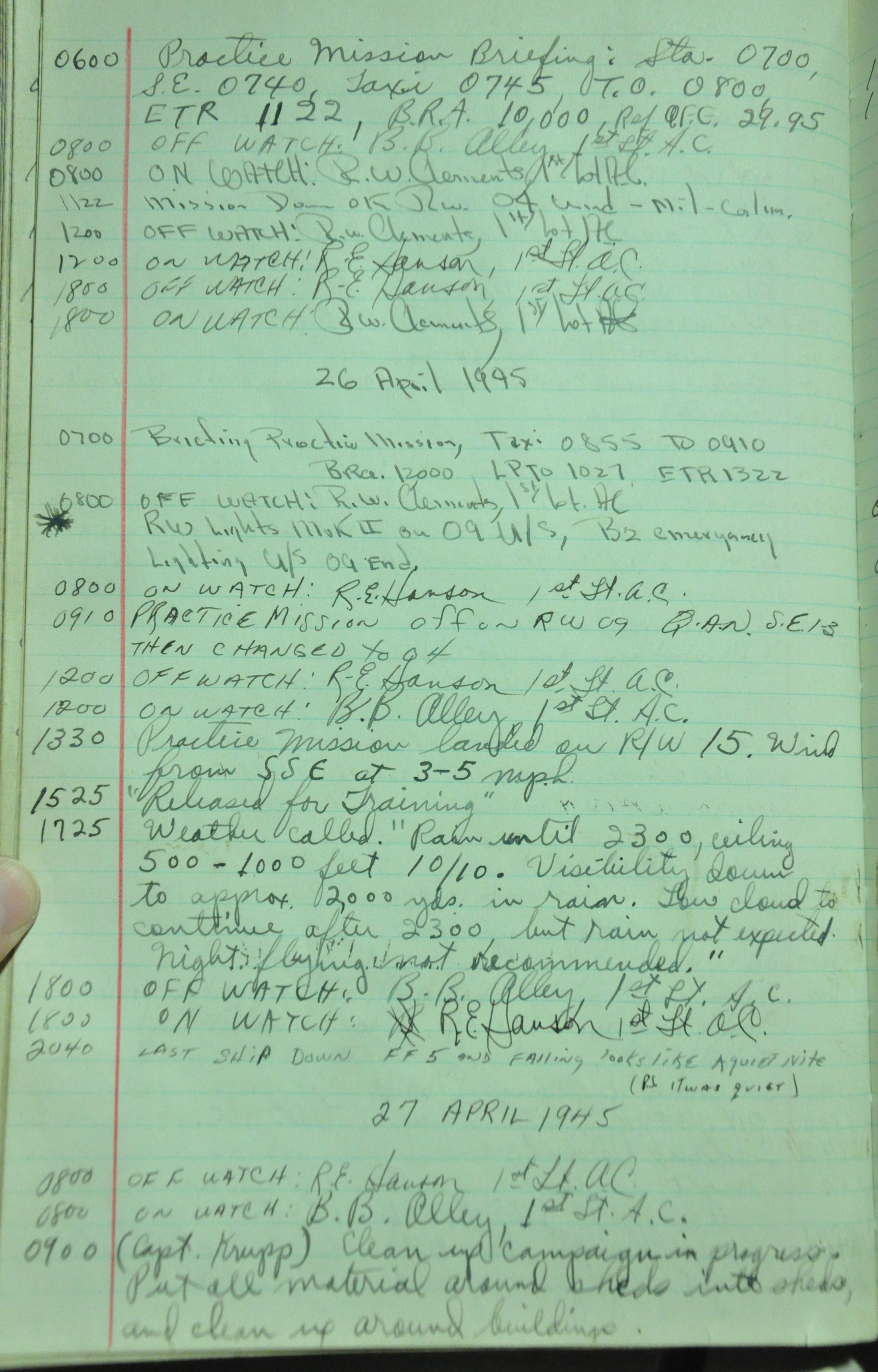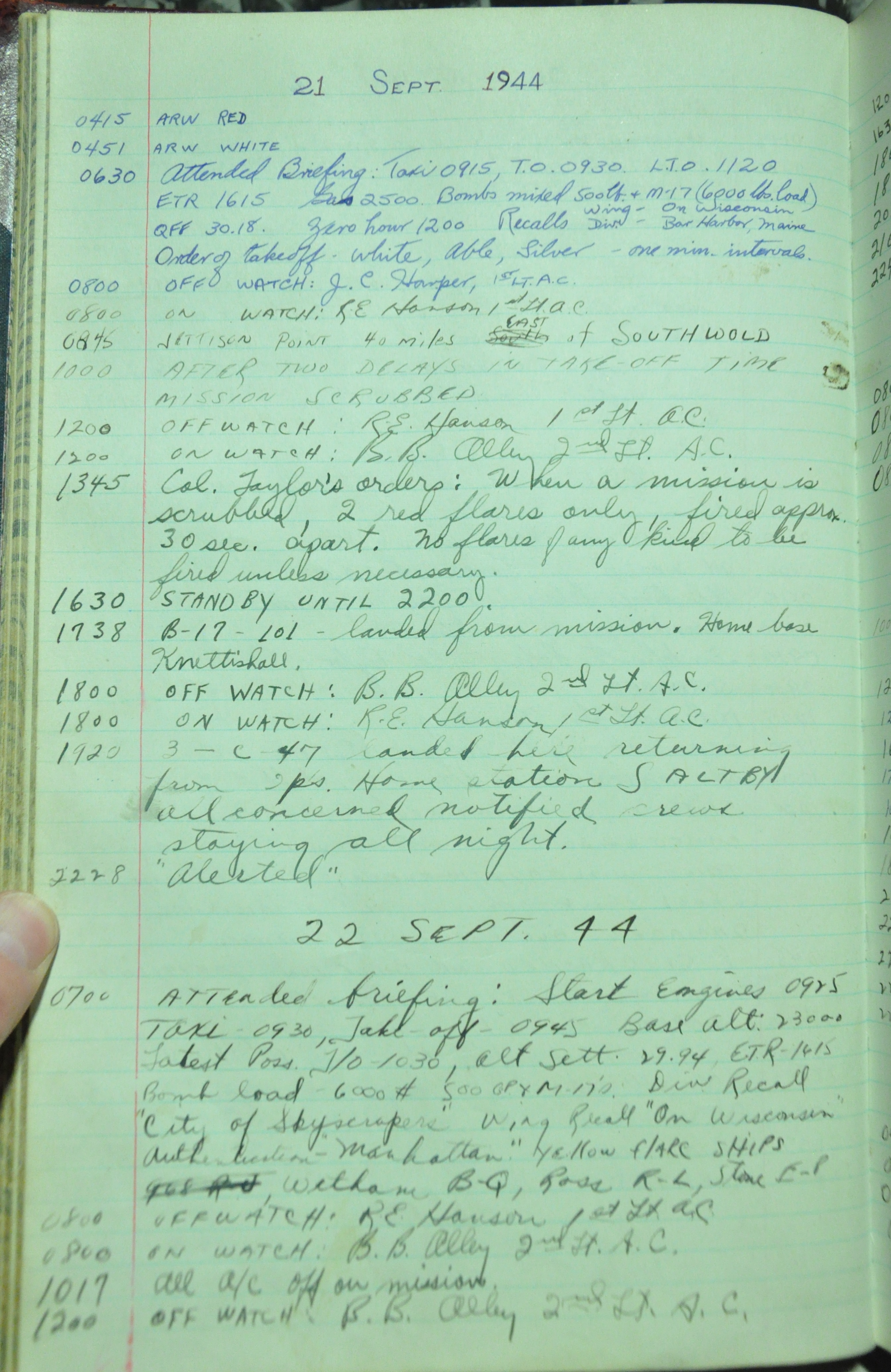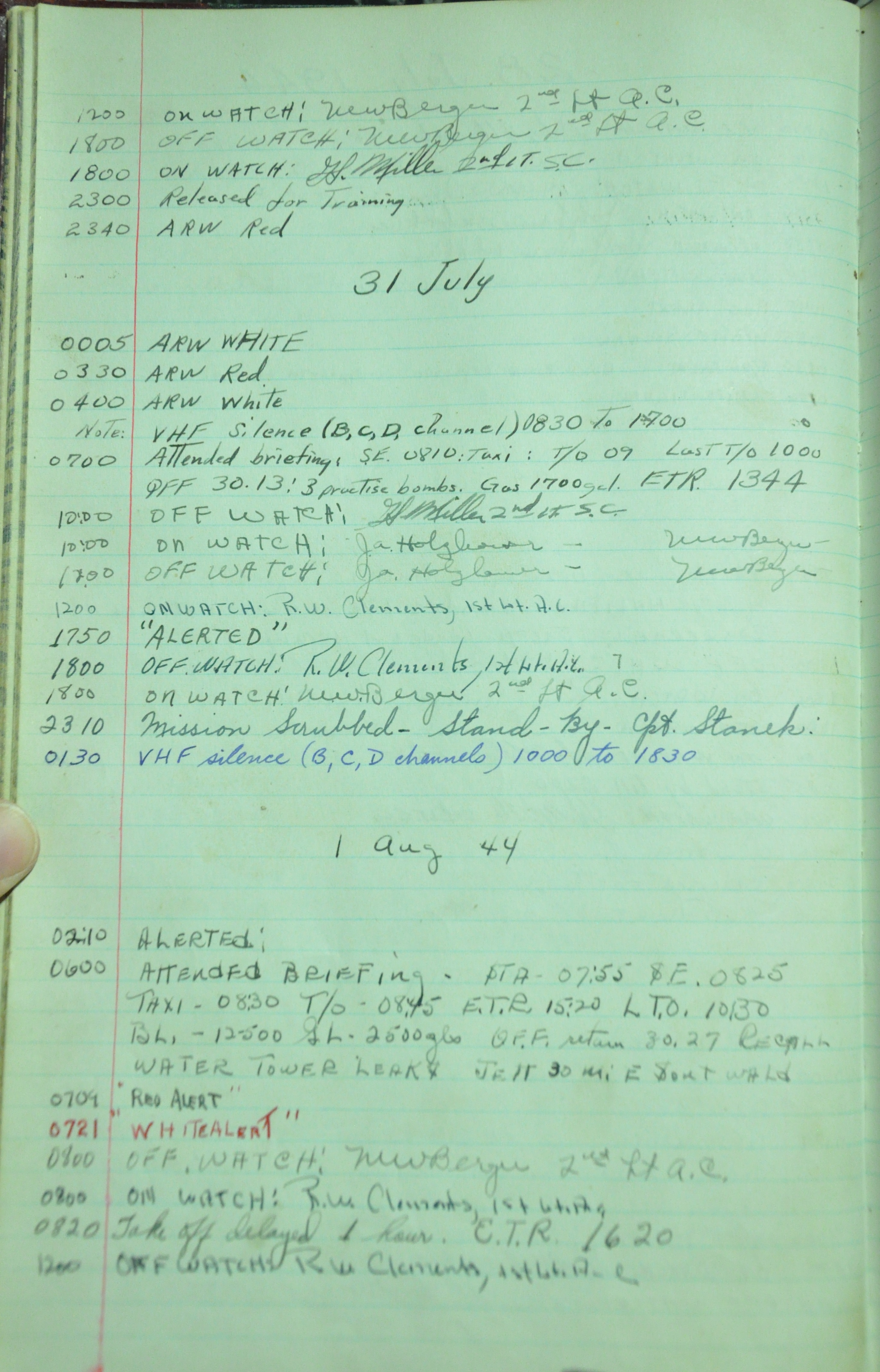 the pages of the 487th Tower Log book that is at the museum. It contains notes by the control tower officers relative to operations