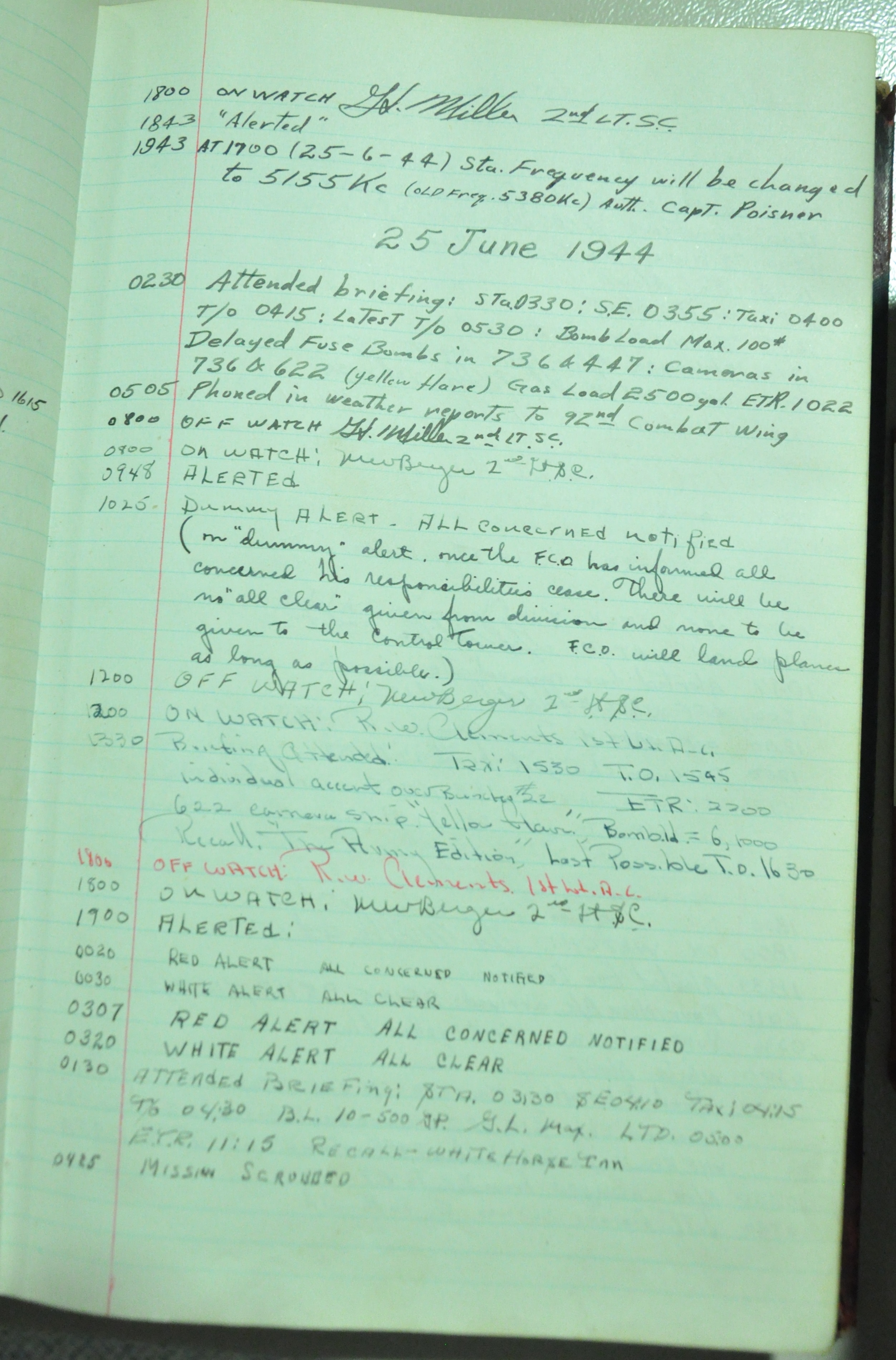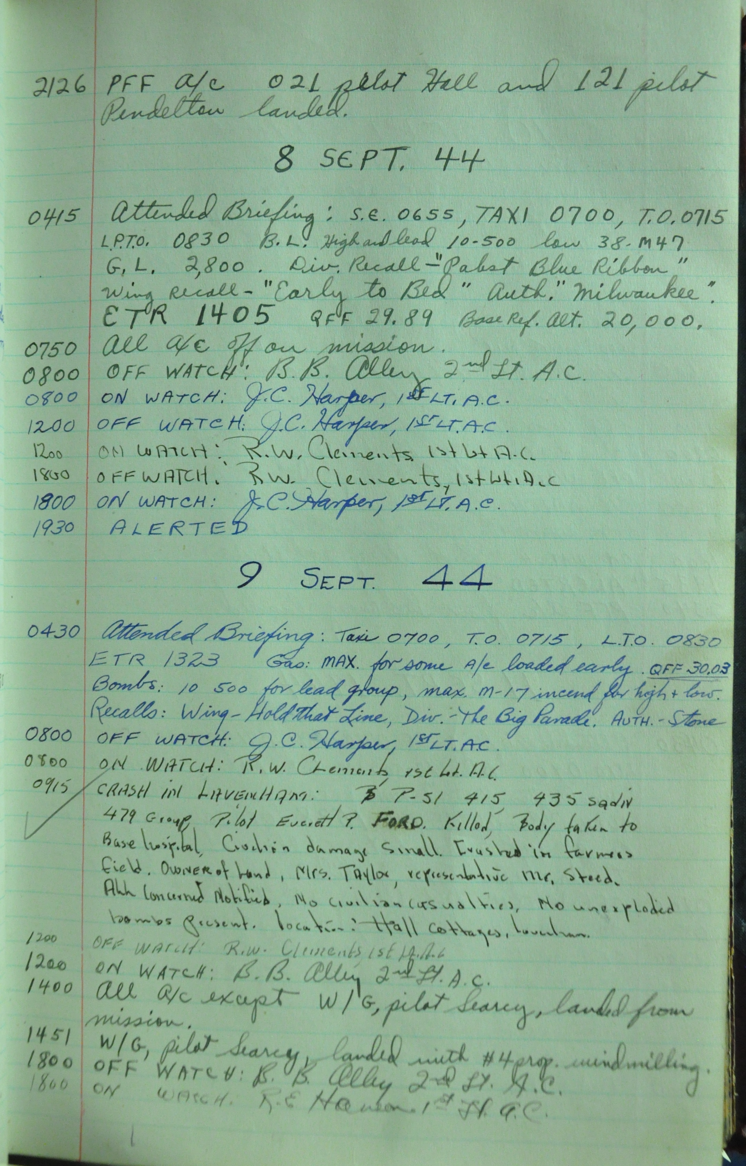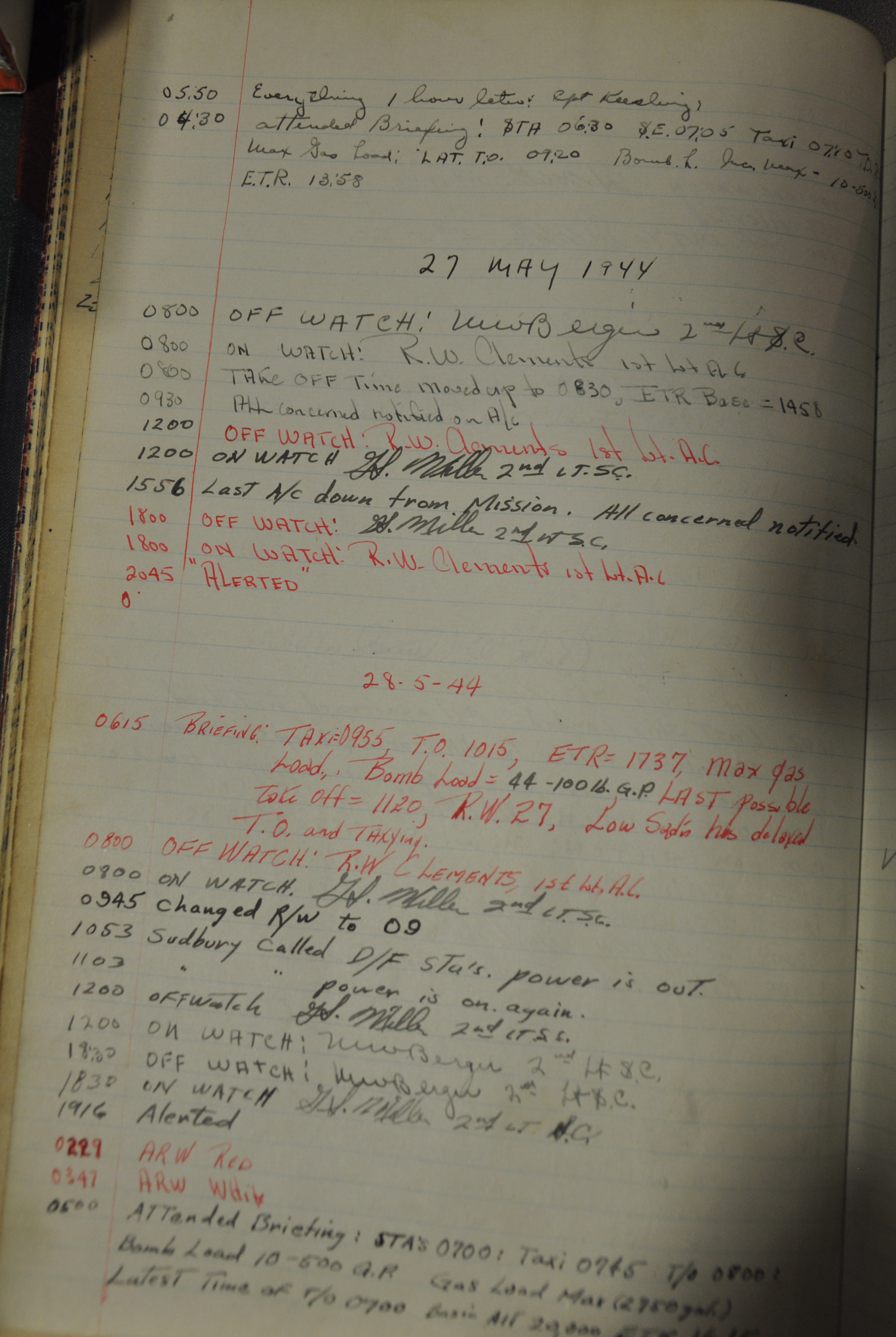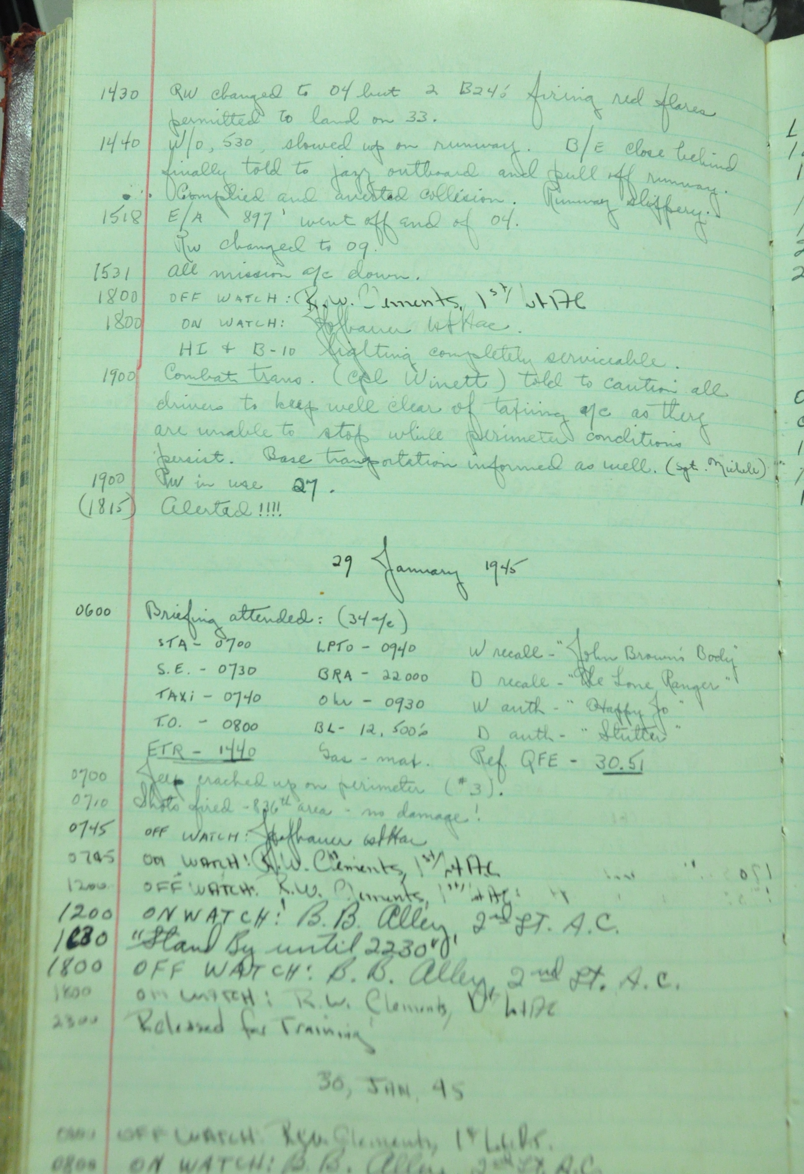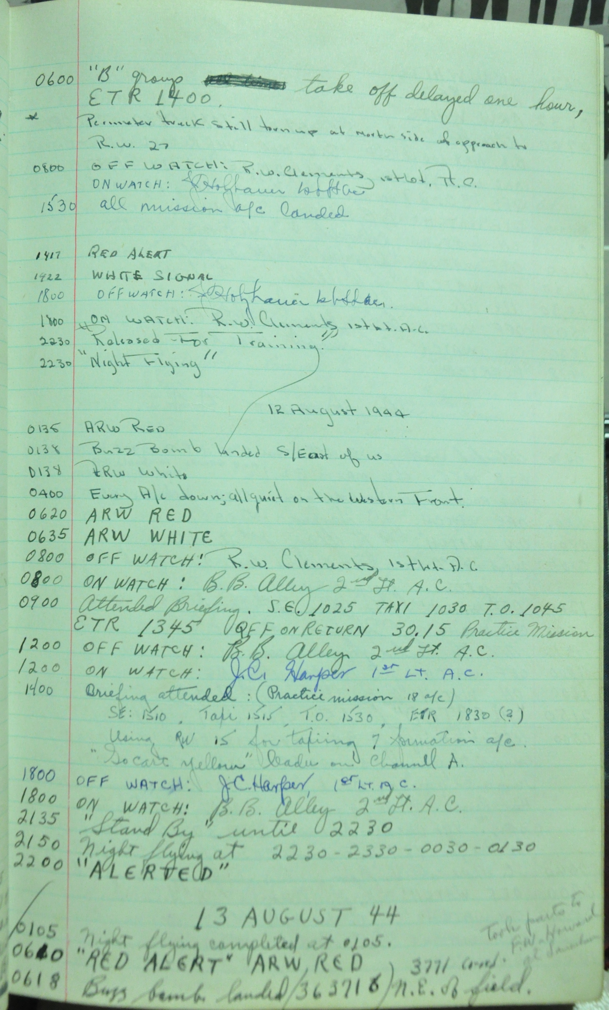 the pages of the 487th Tower Log book that is at the museum. It contains notes by the control tower officers relative to operations