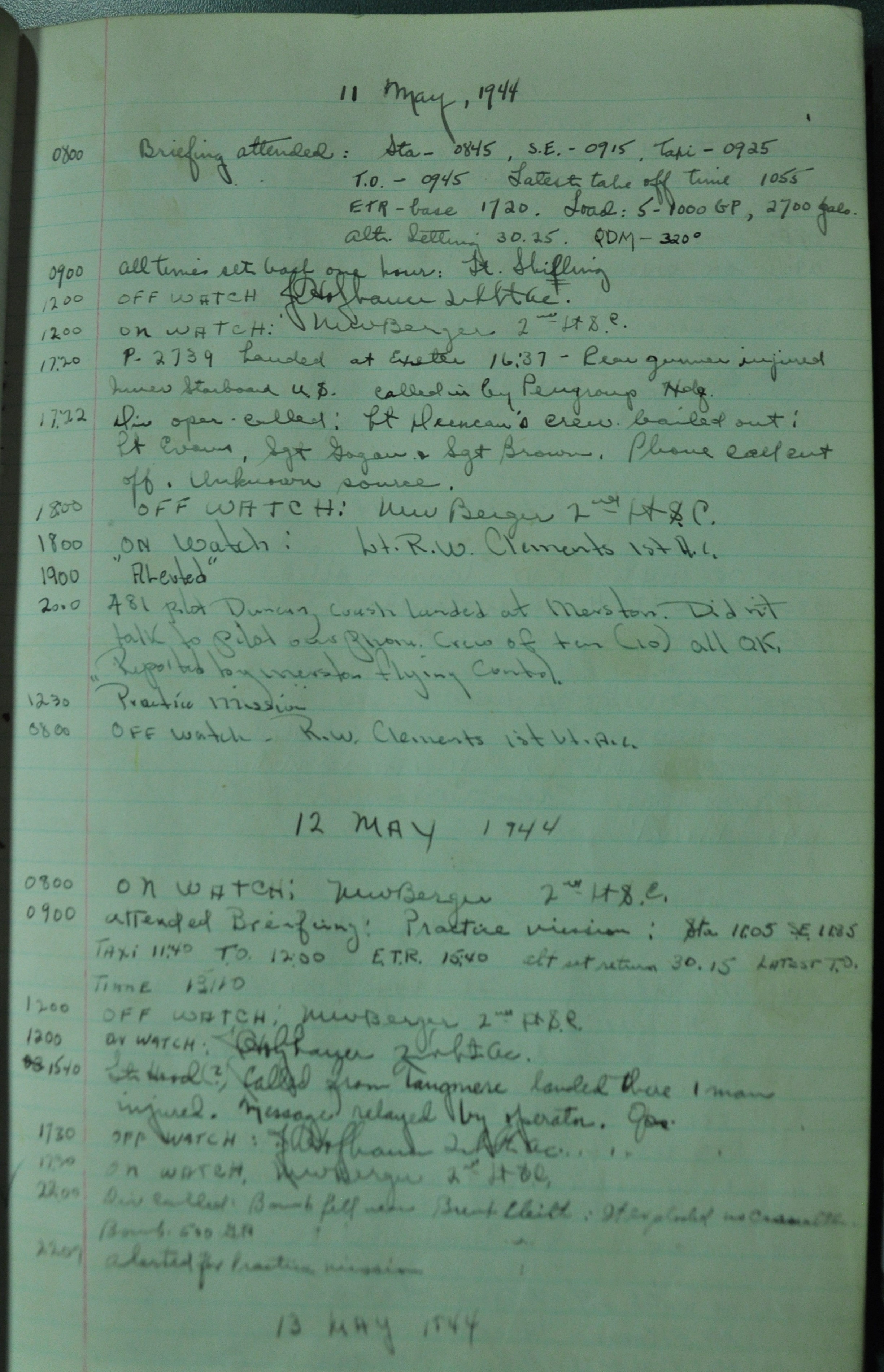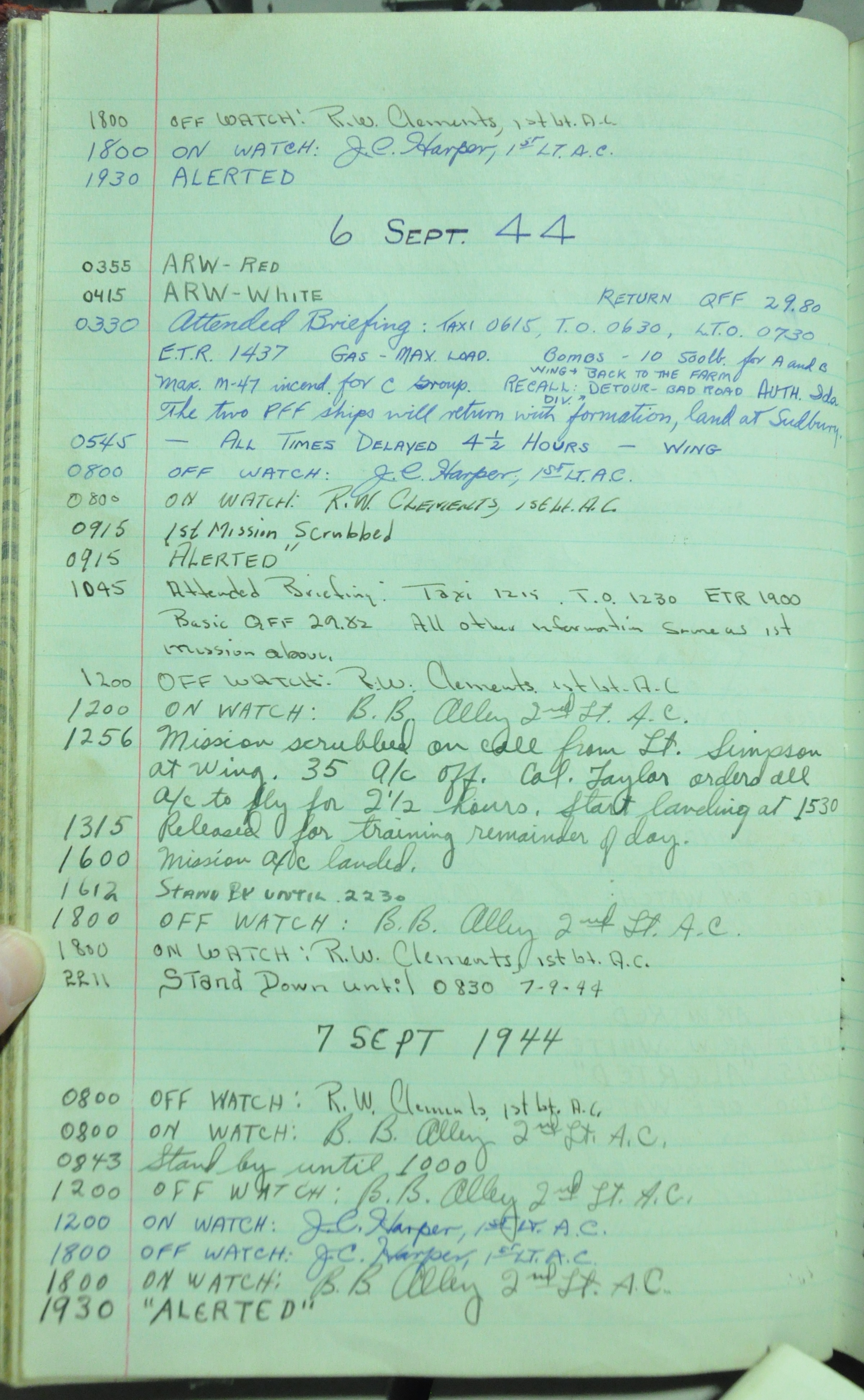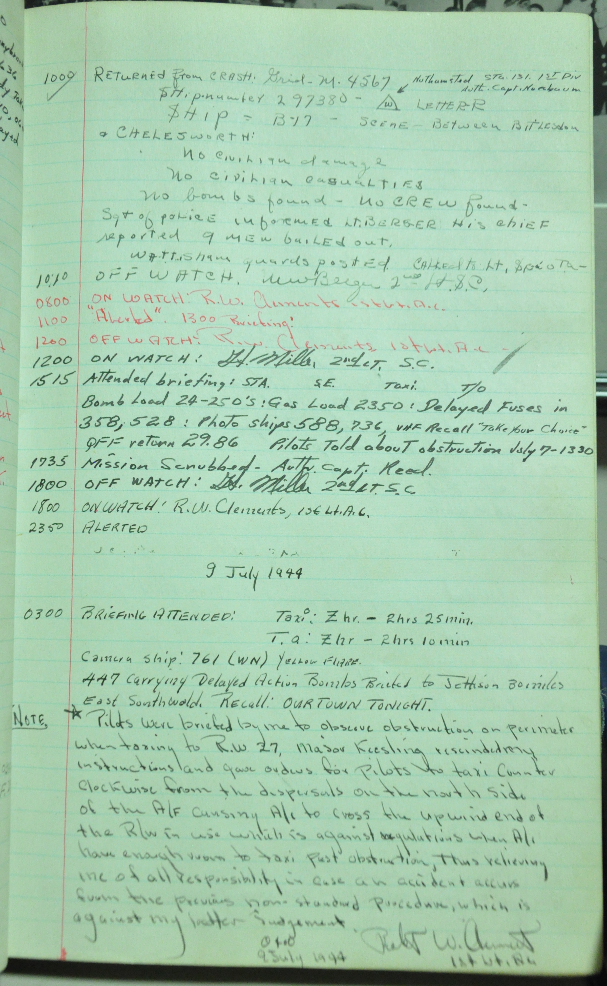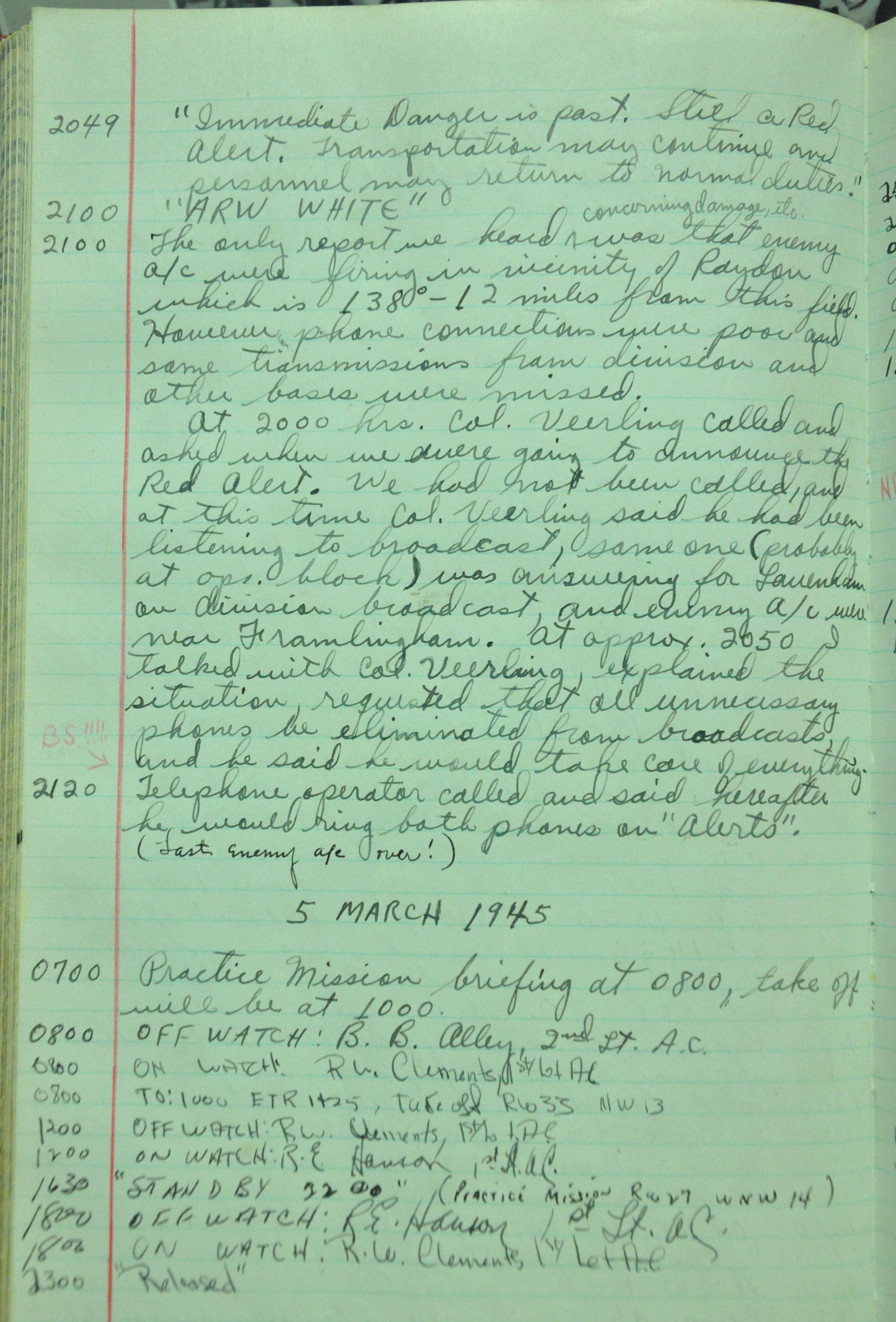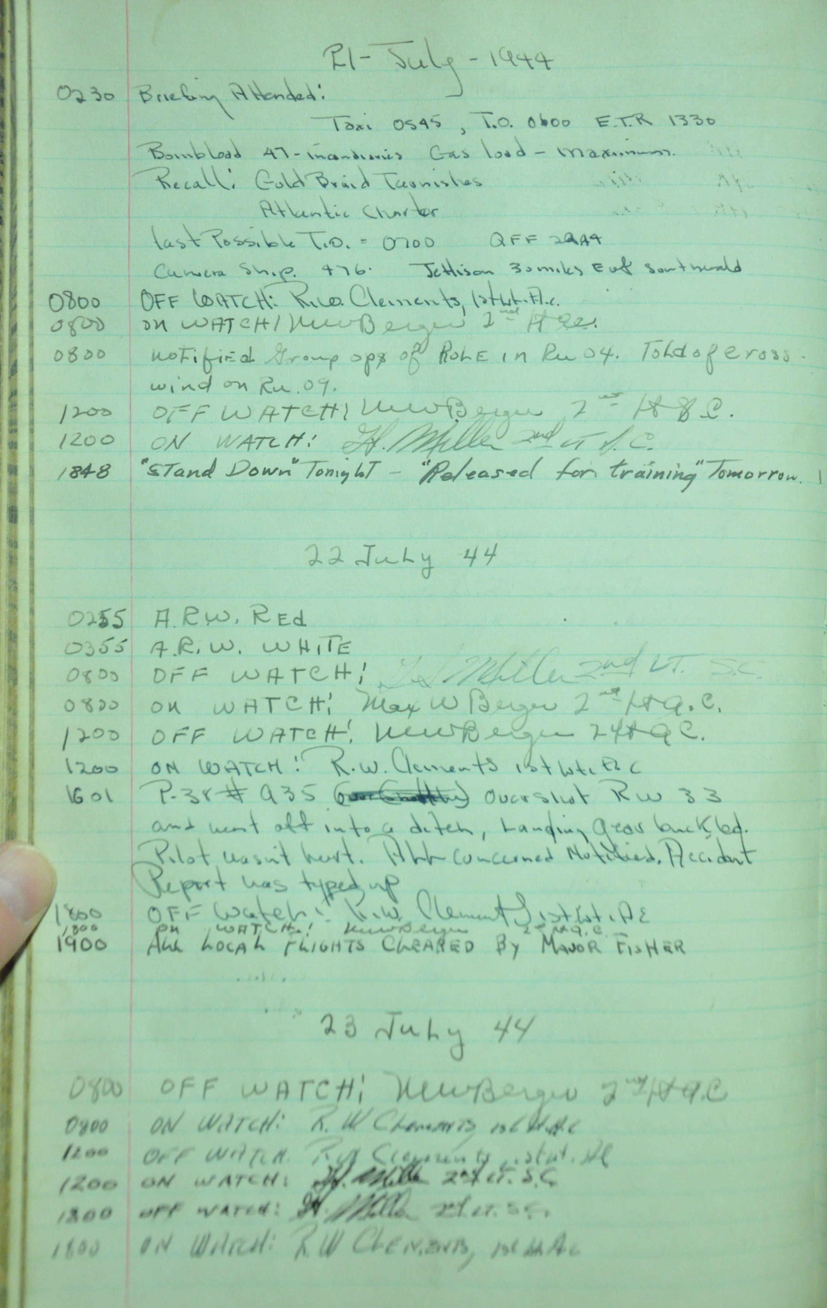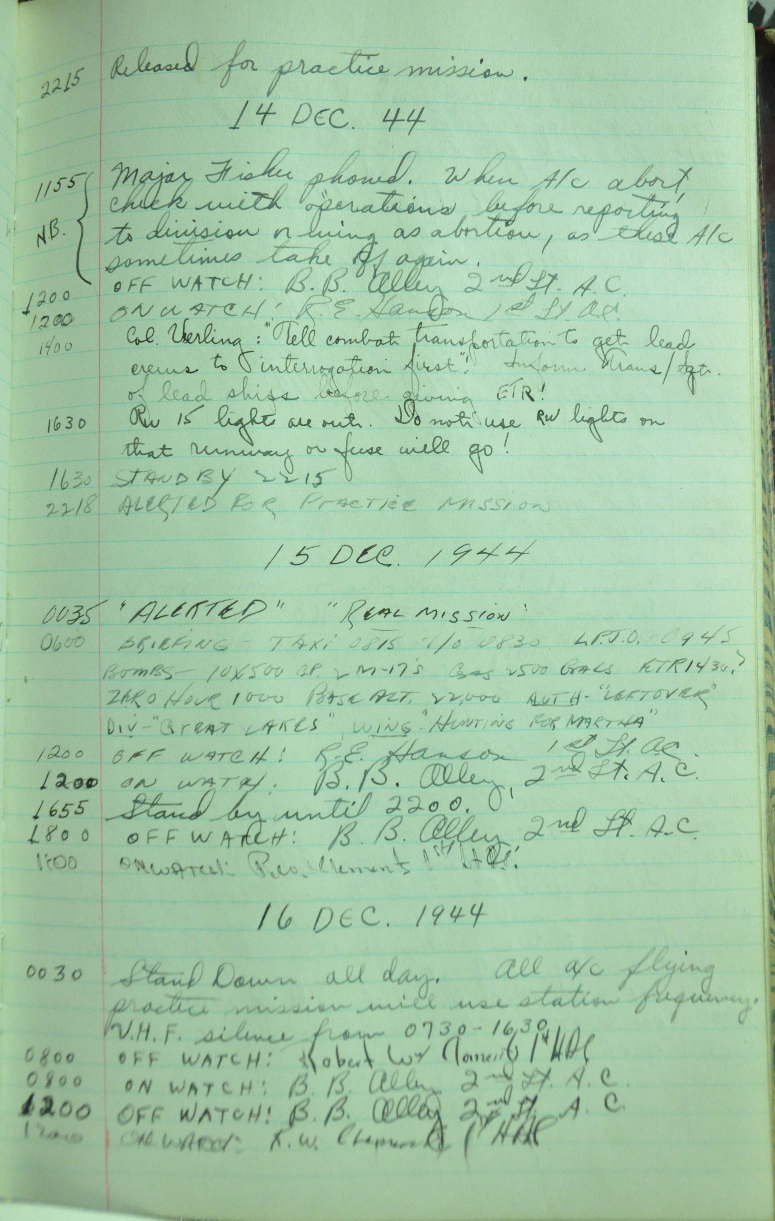 the pages of the 487th Tower Log book that is at the museum. It contains notes by the control tower officers relative to operations