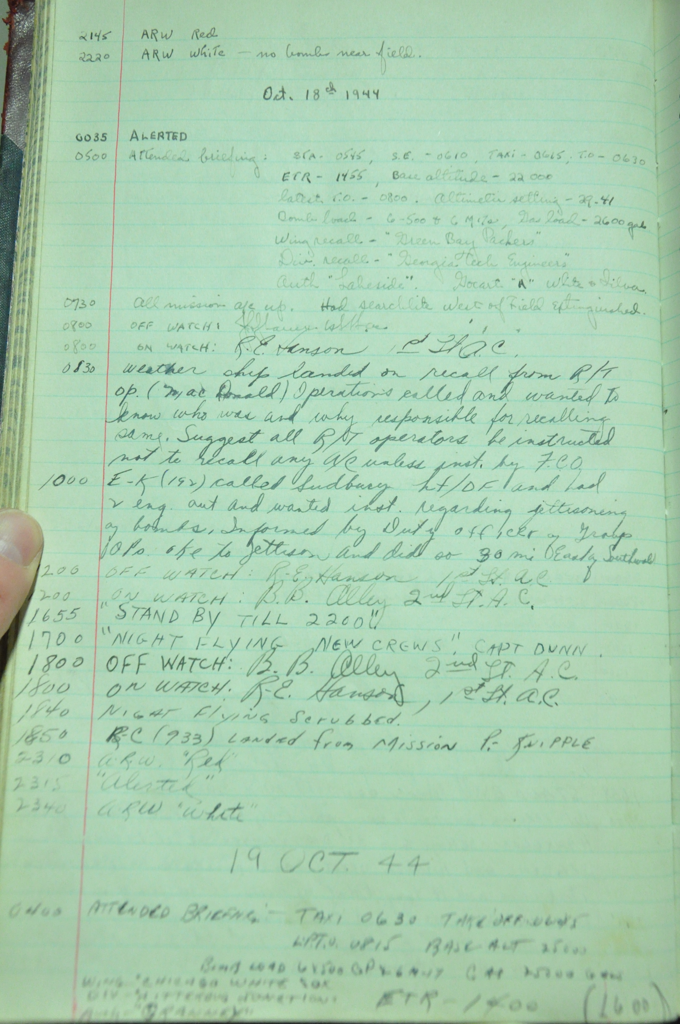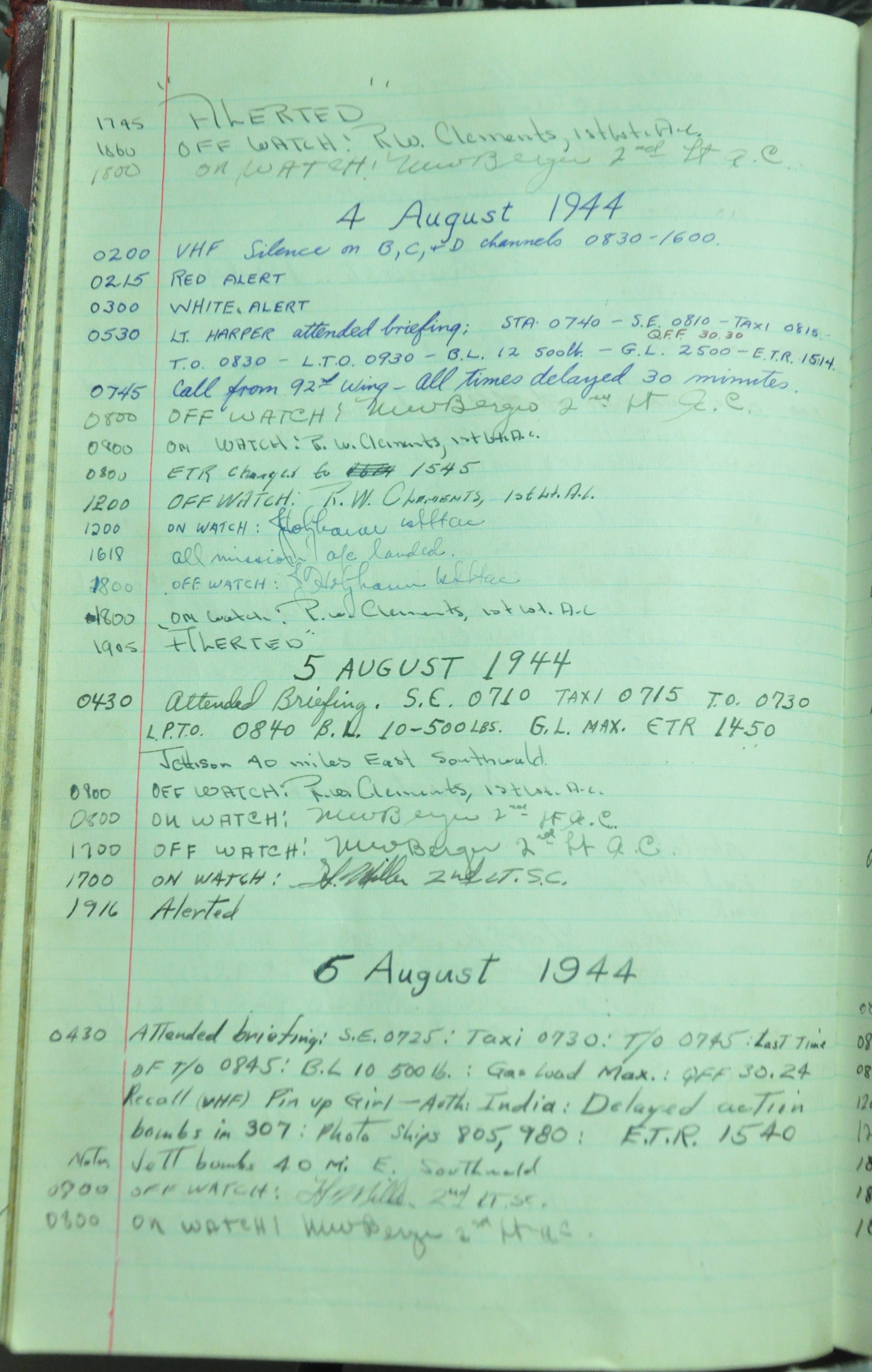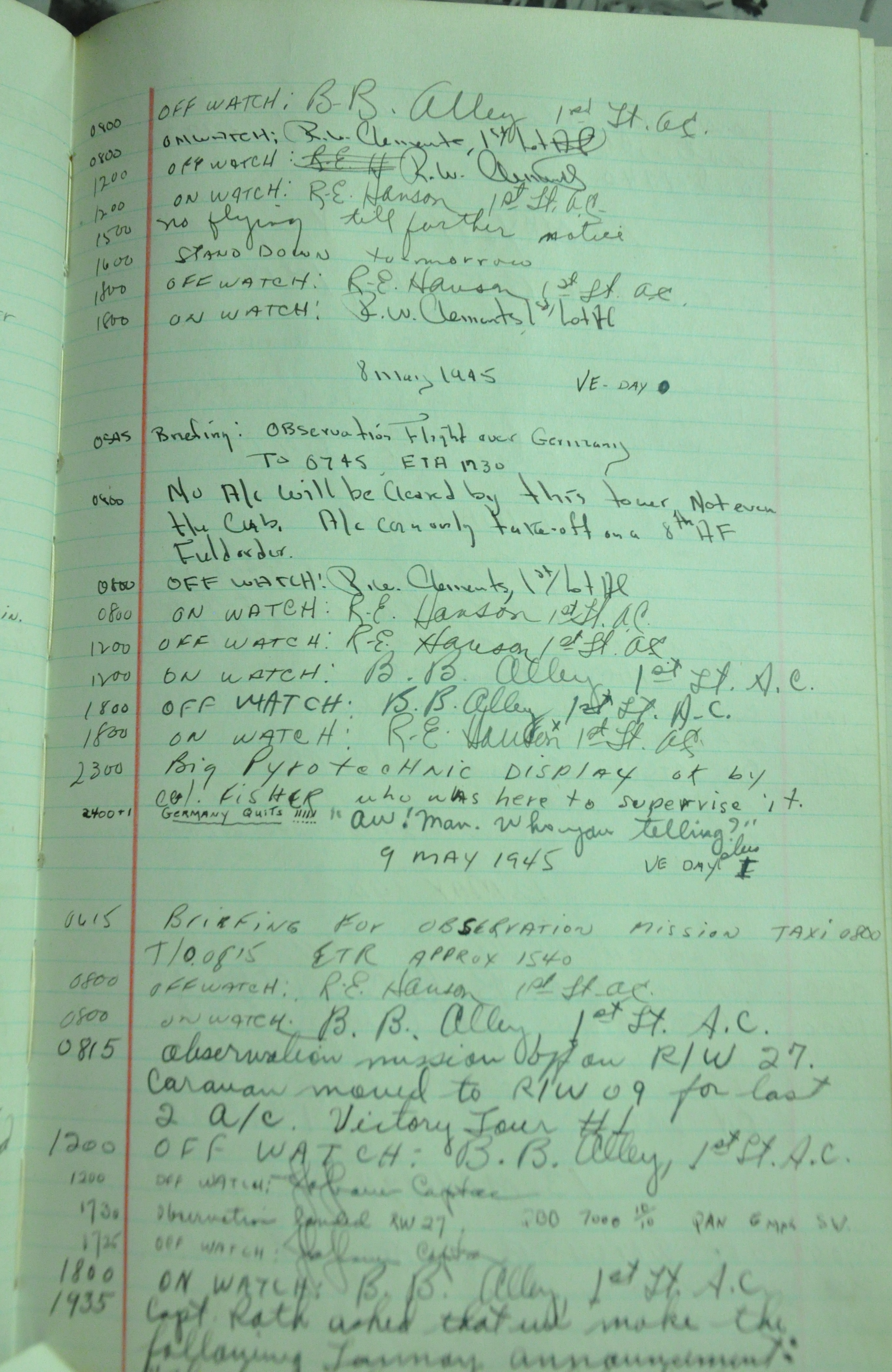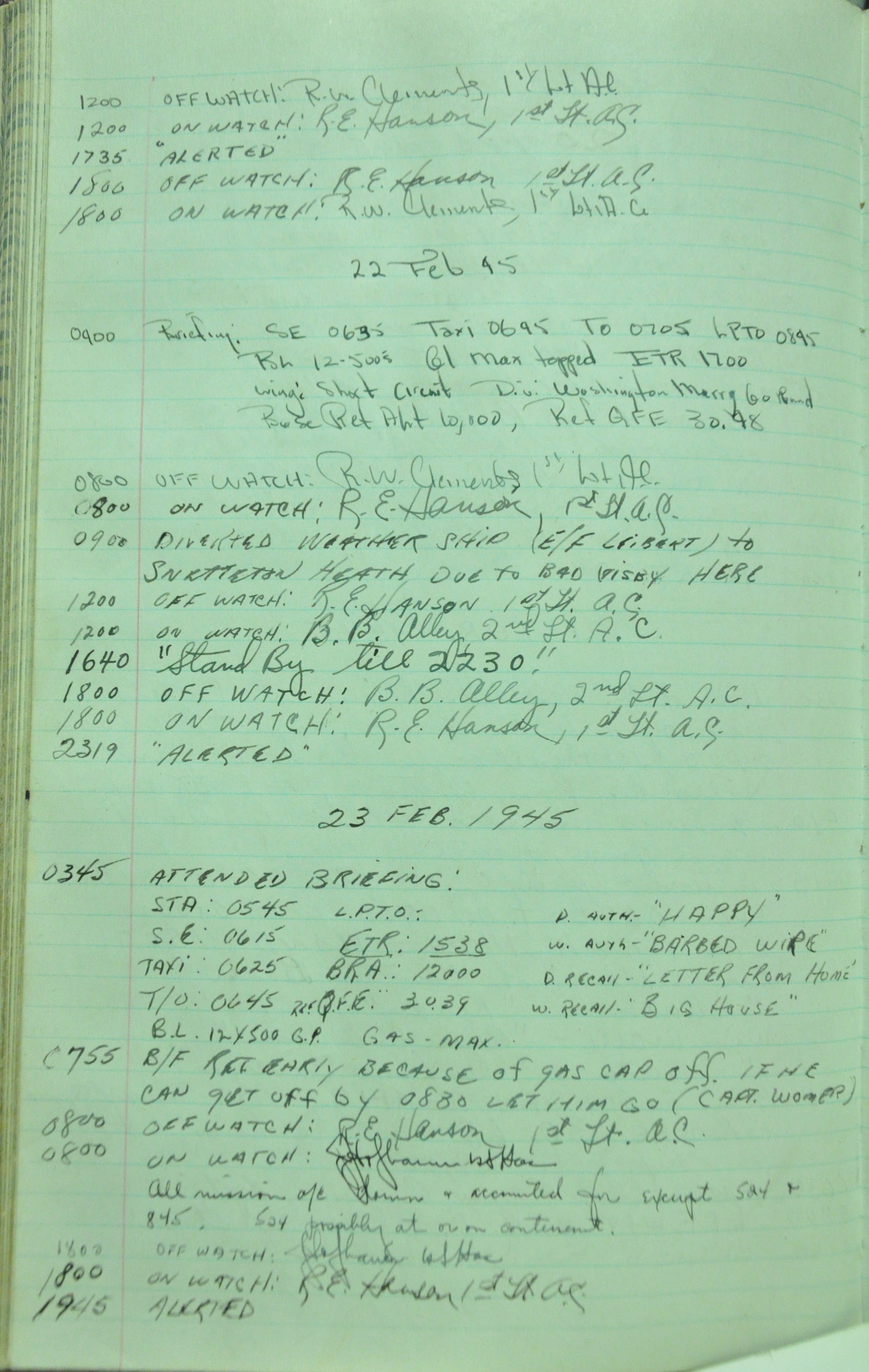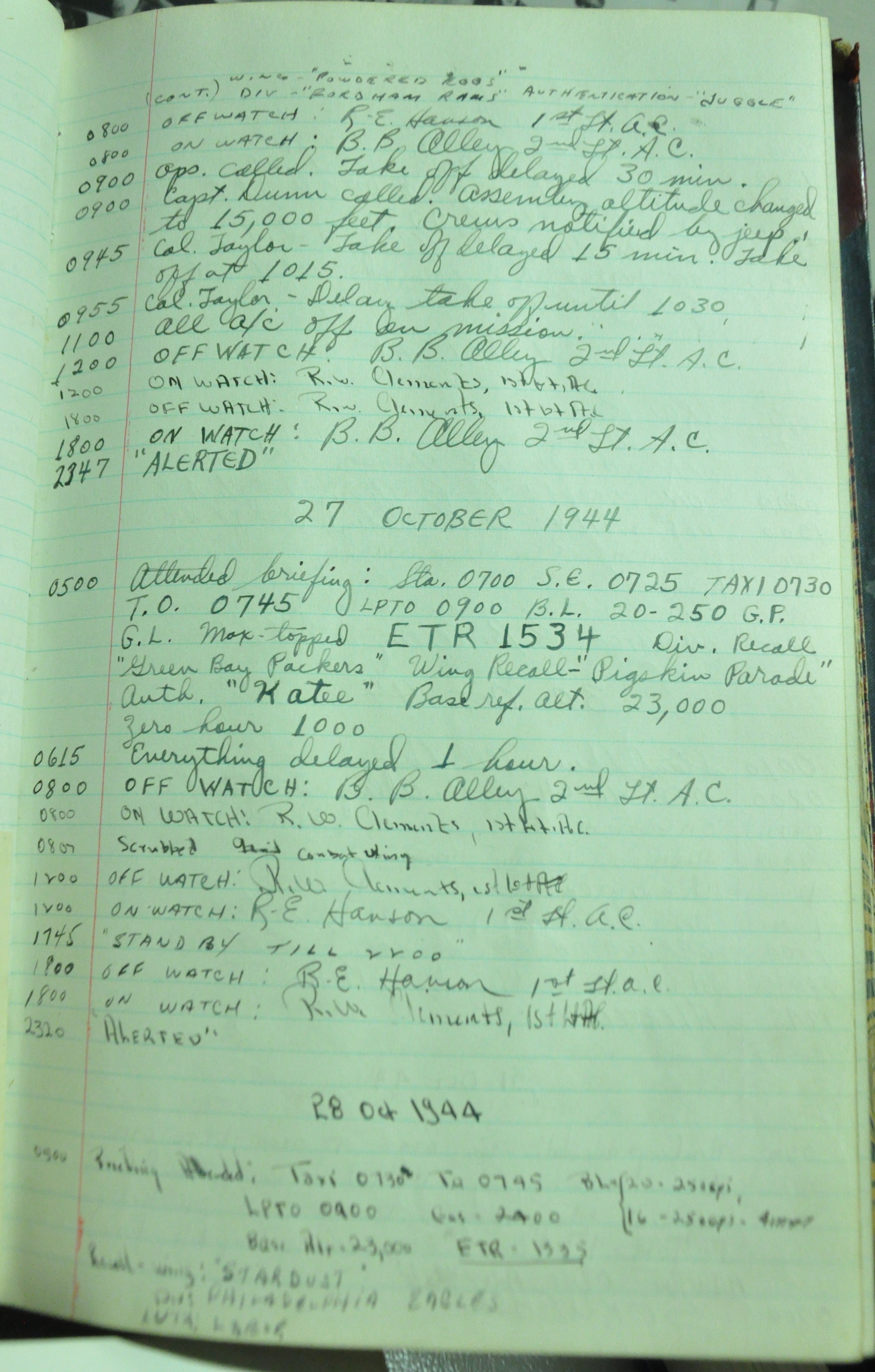 the pages of the 487th Tower Log book that is at the museum. It contains notes by the control tower officers relative to operations
