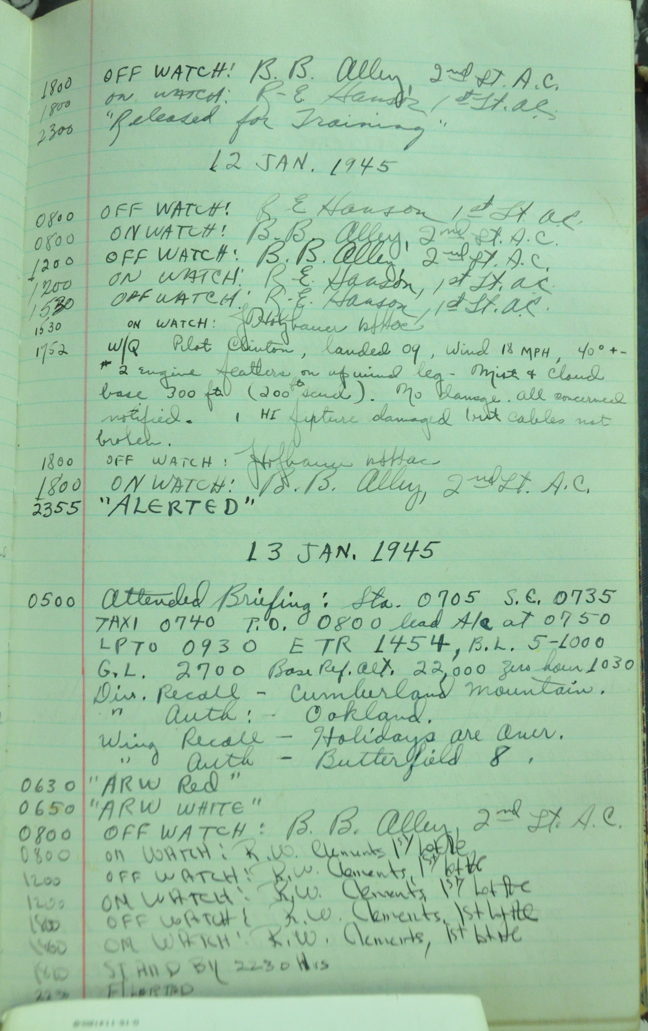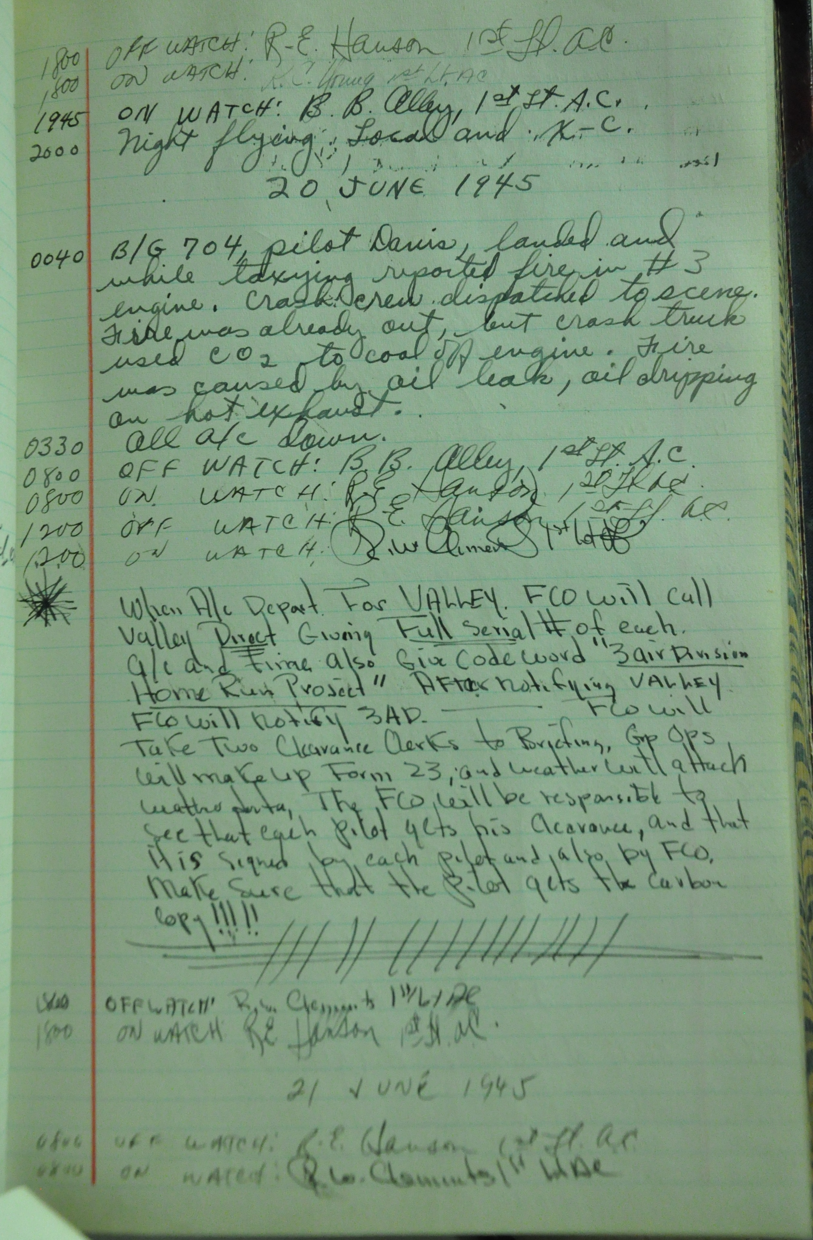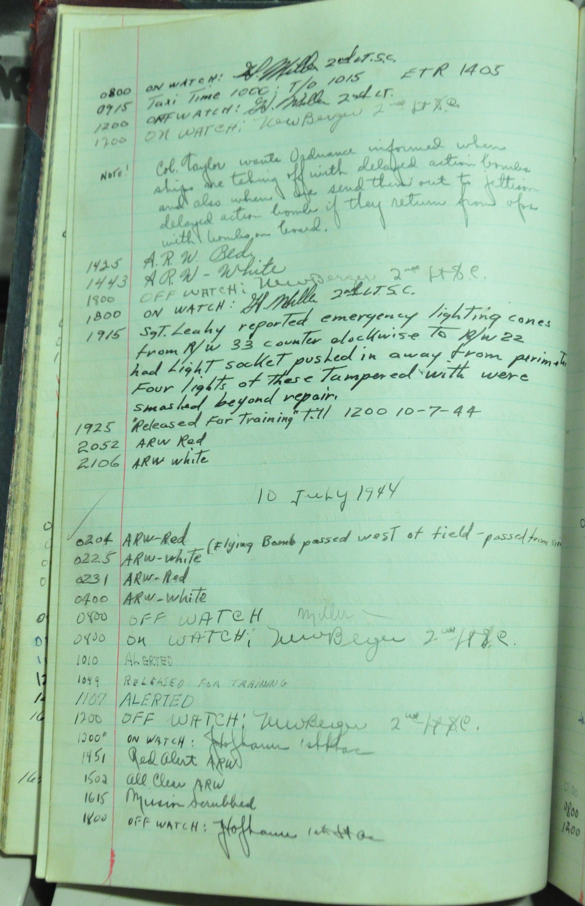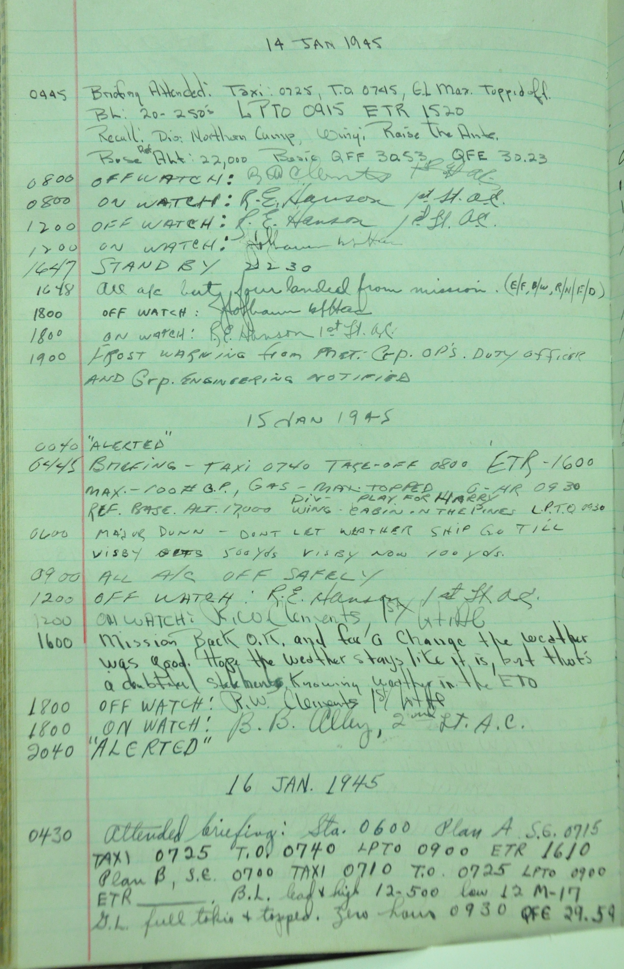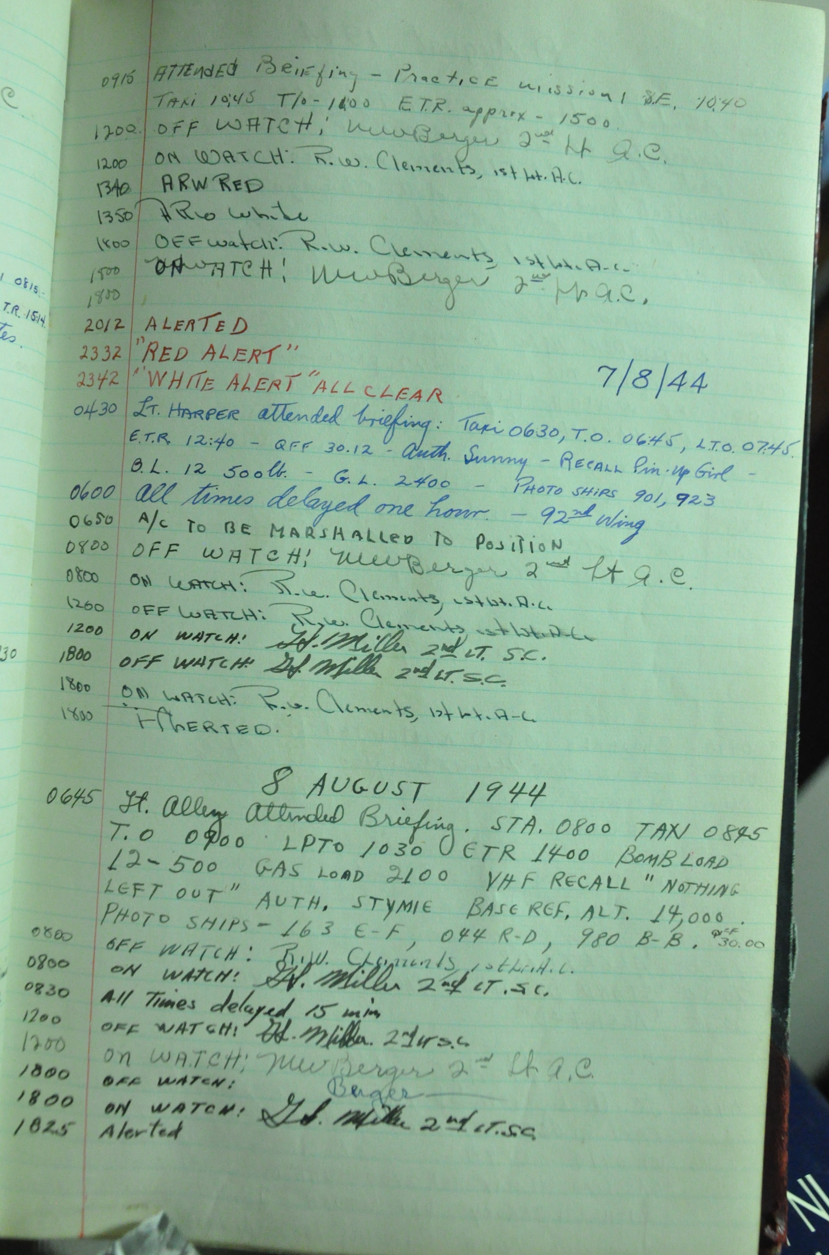 the pages of the 487th Tower Log book that is at the museum. It contains notes by the control tower officers relative to operations