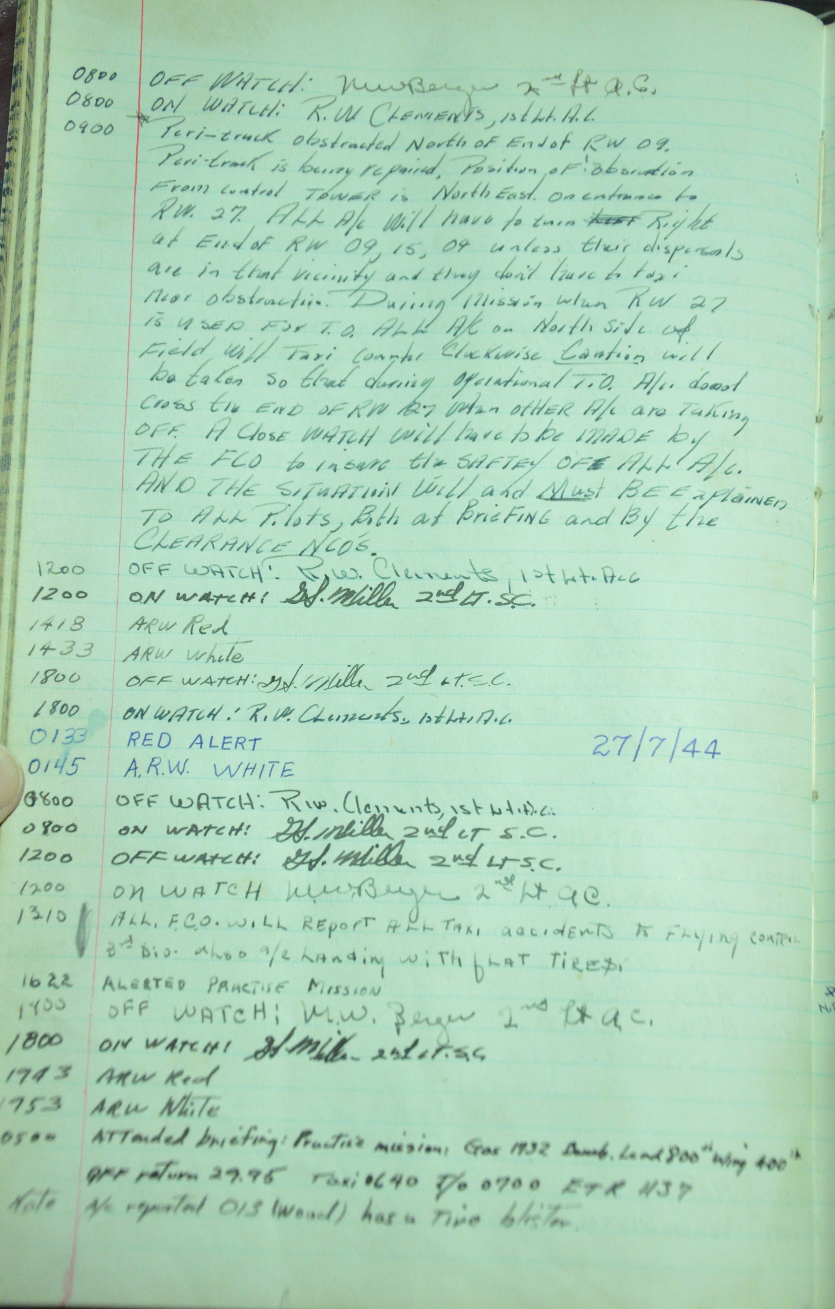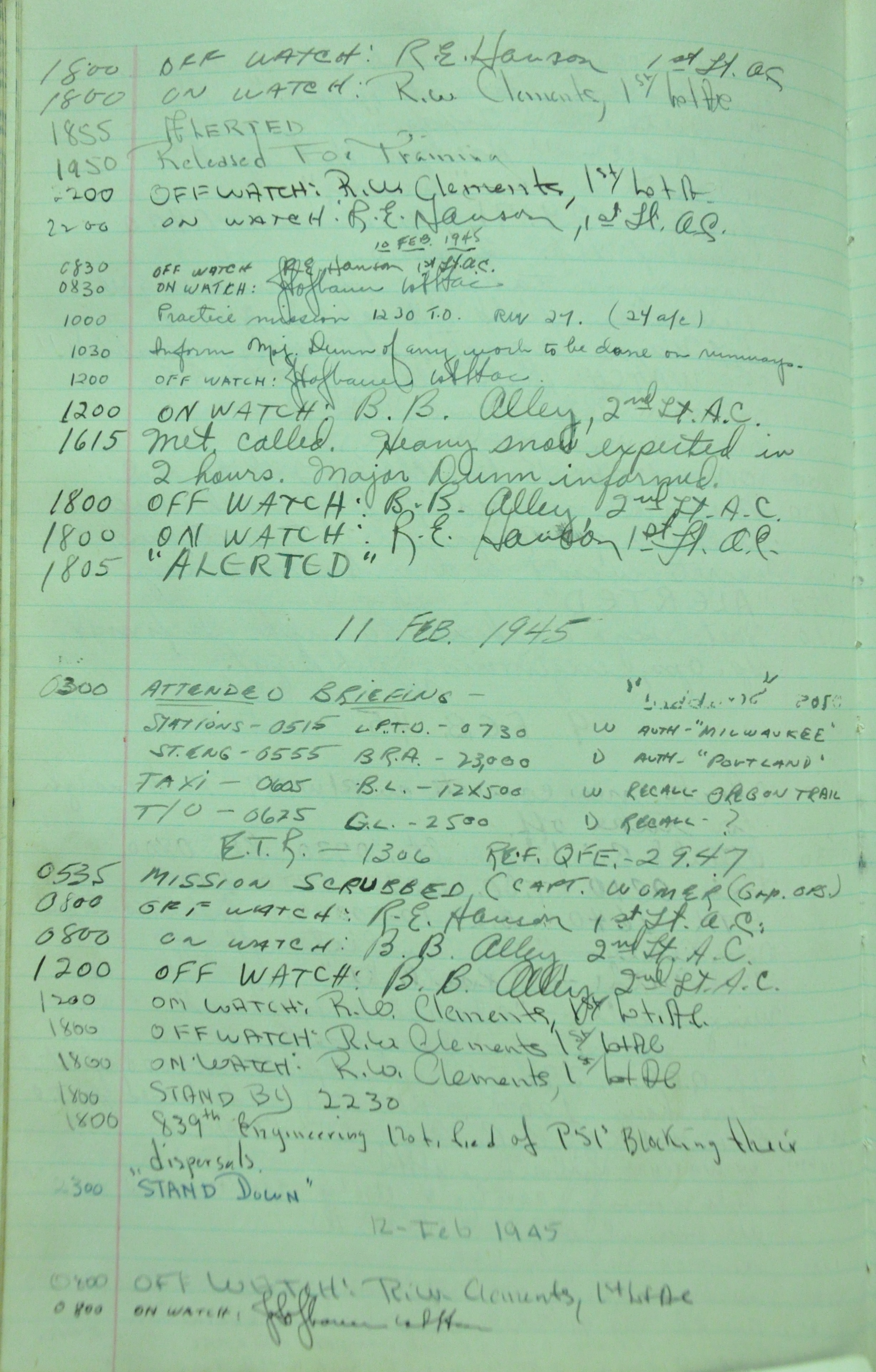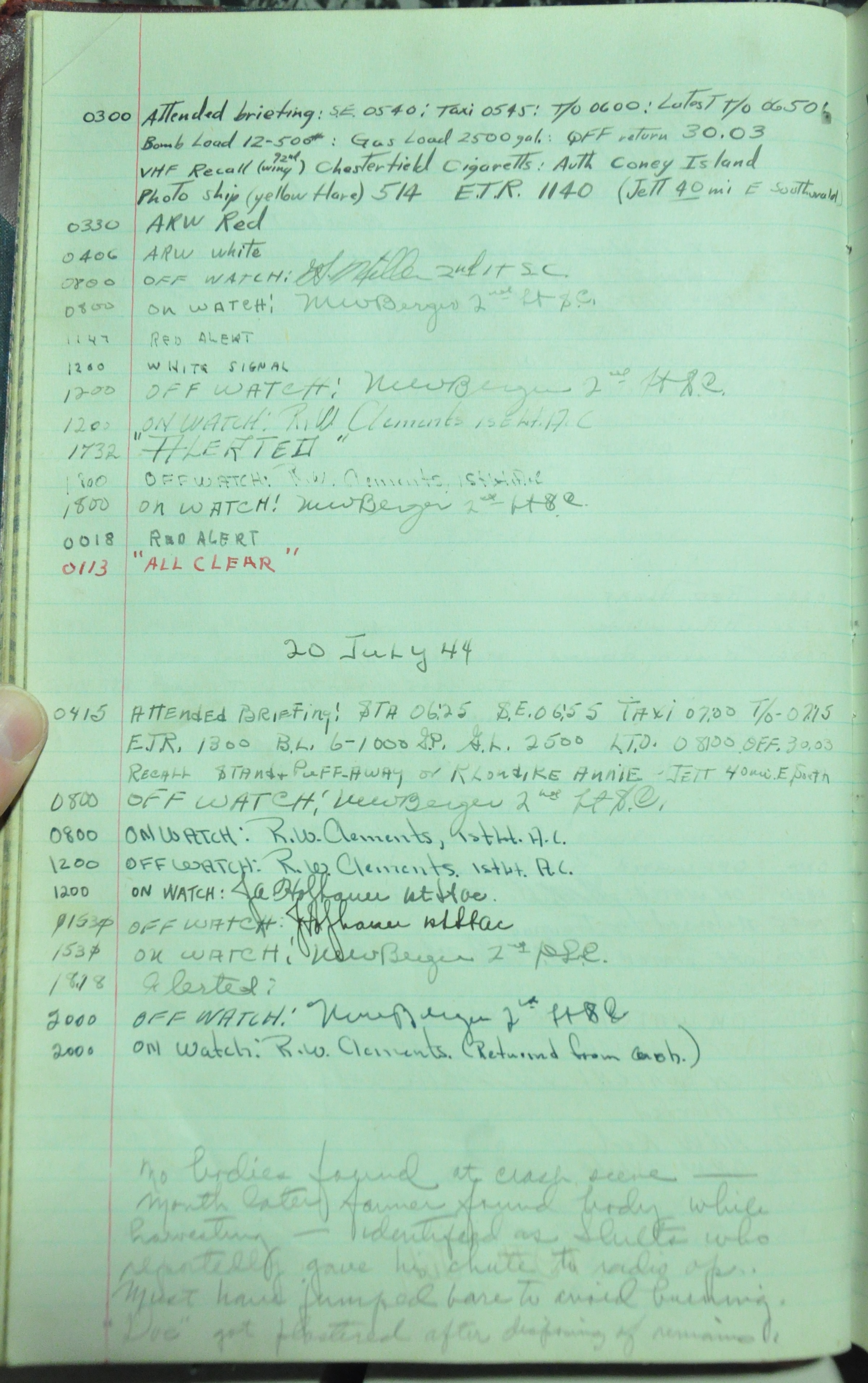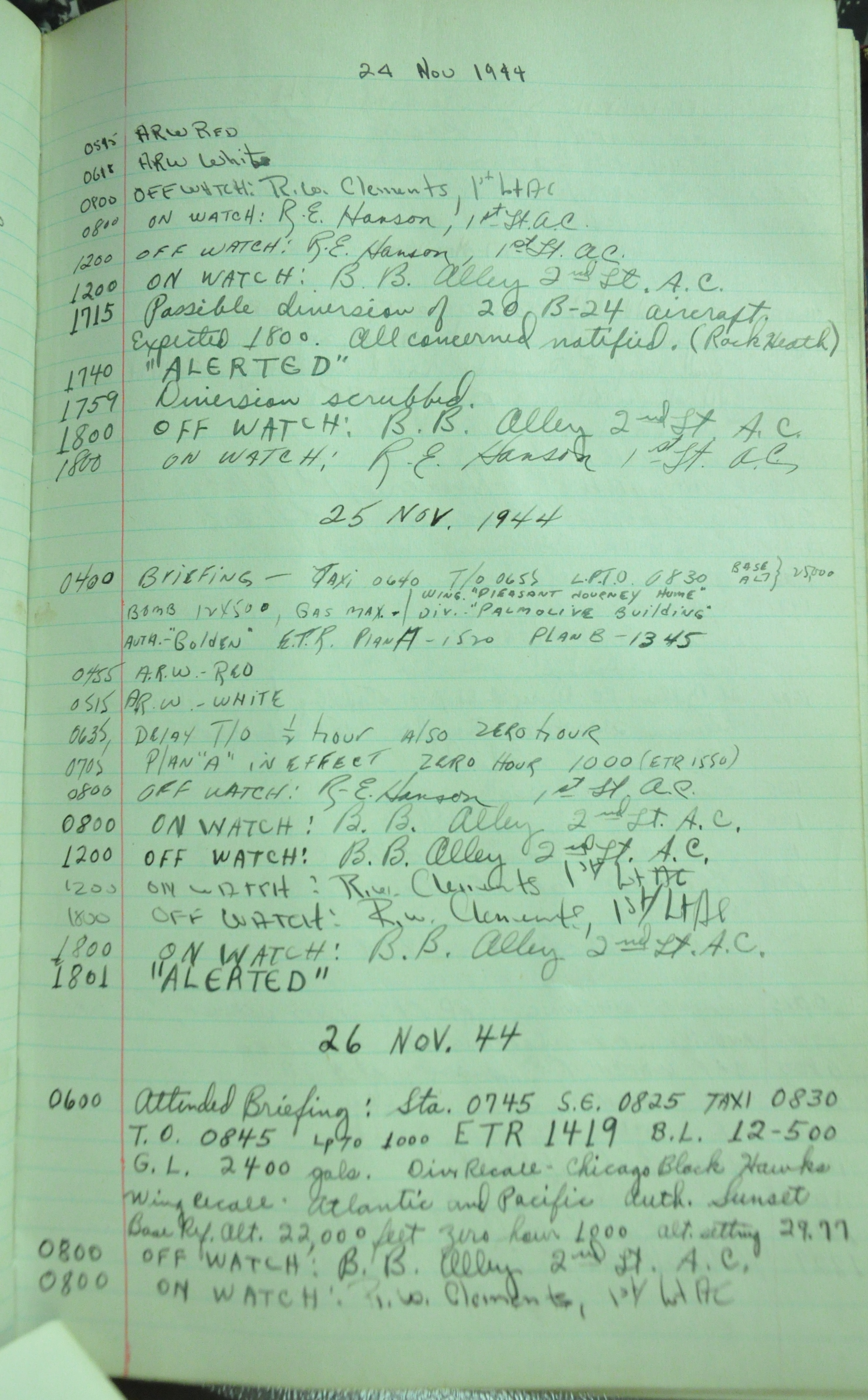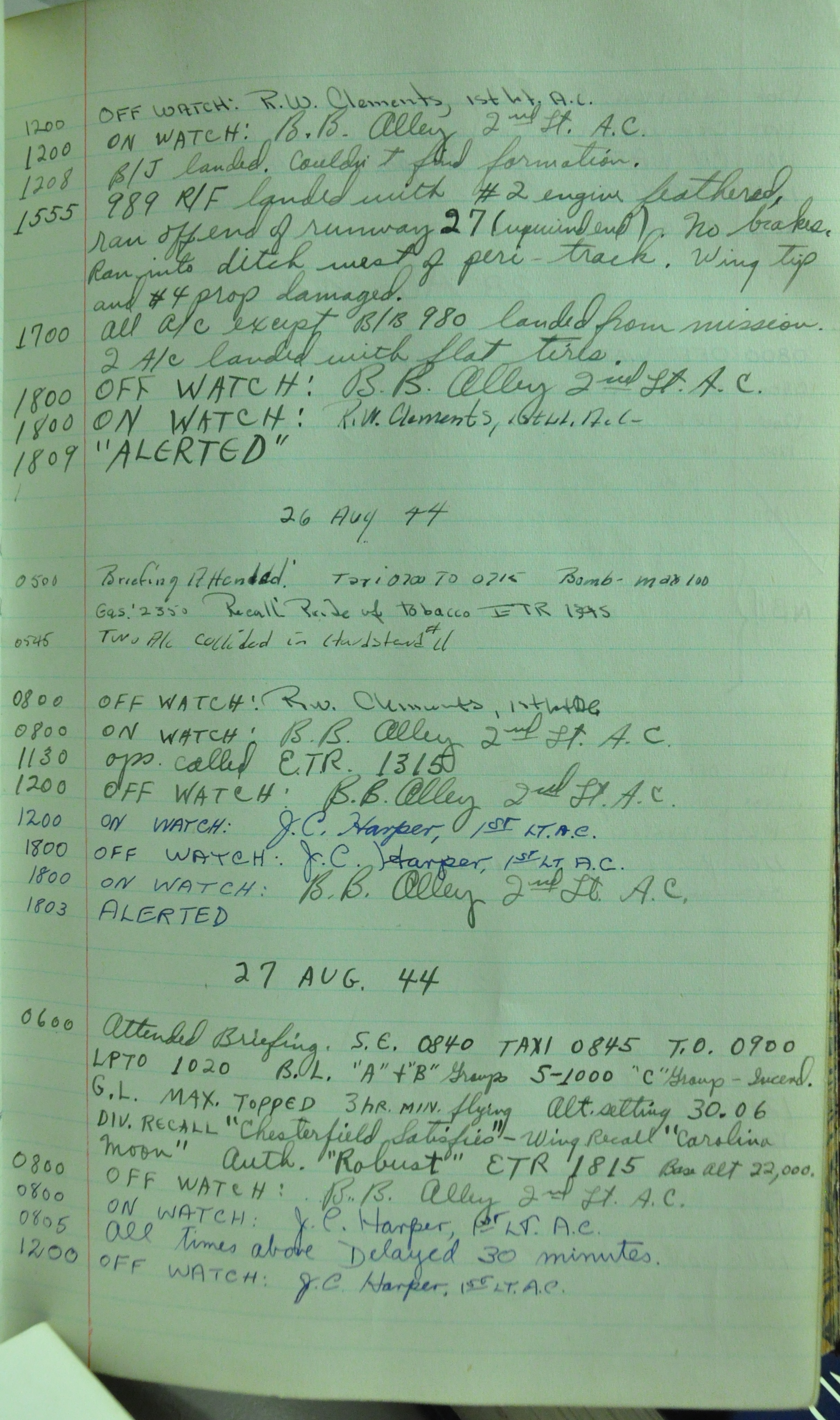 the pages of the 487th Tower Log book that is at the museum. It contains notes by the control tower officers relative to operations