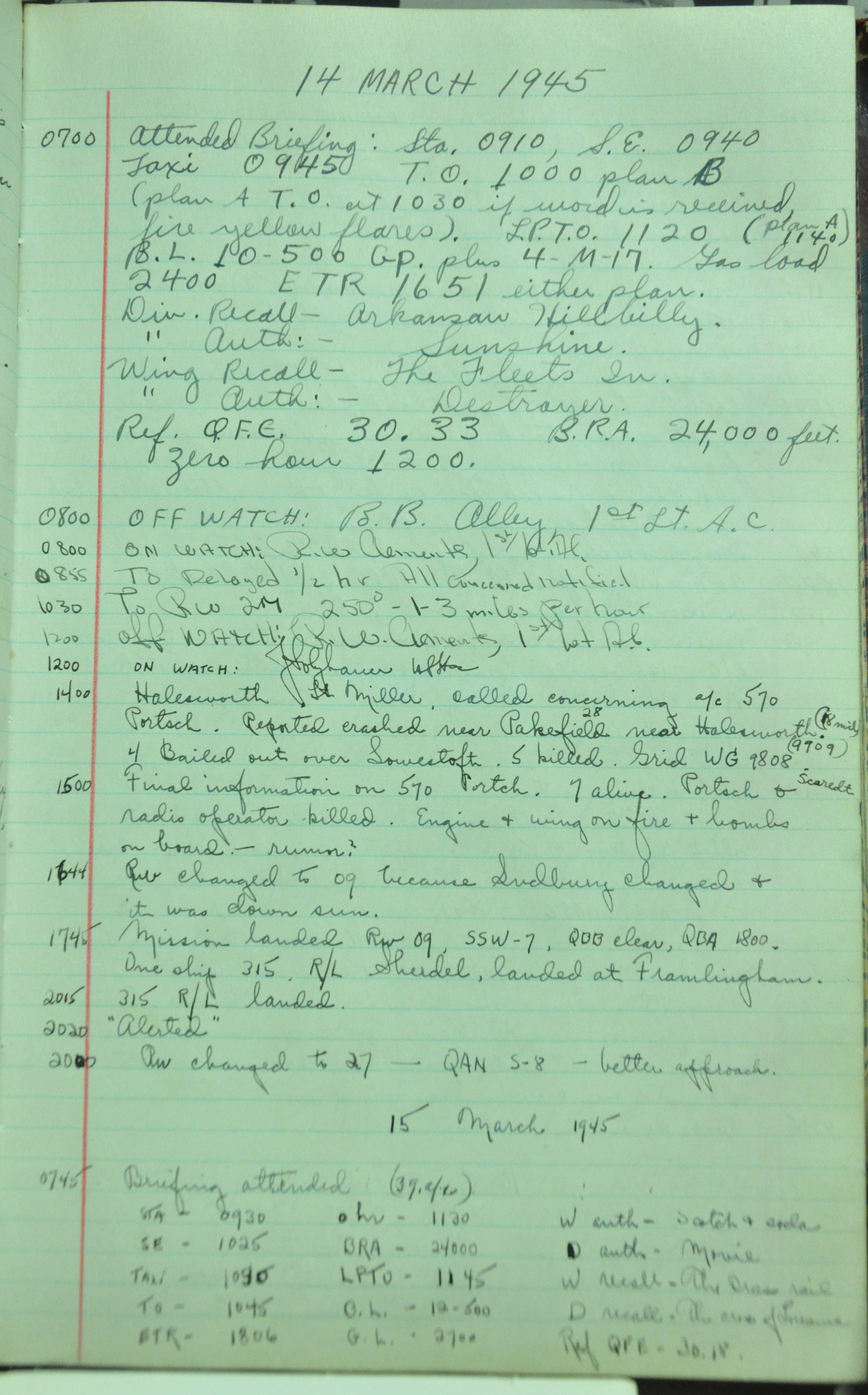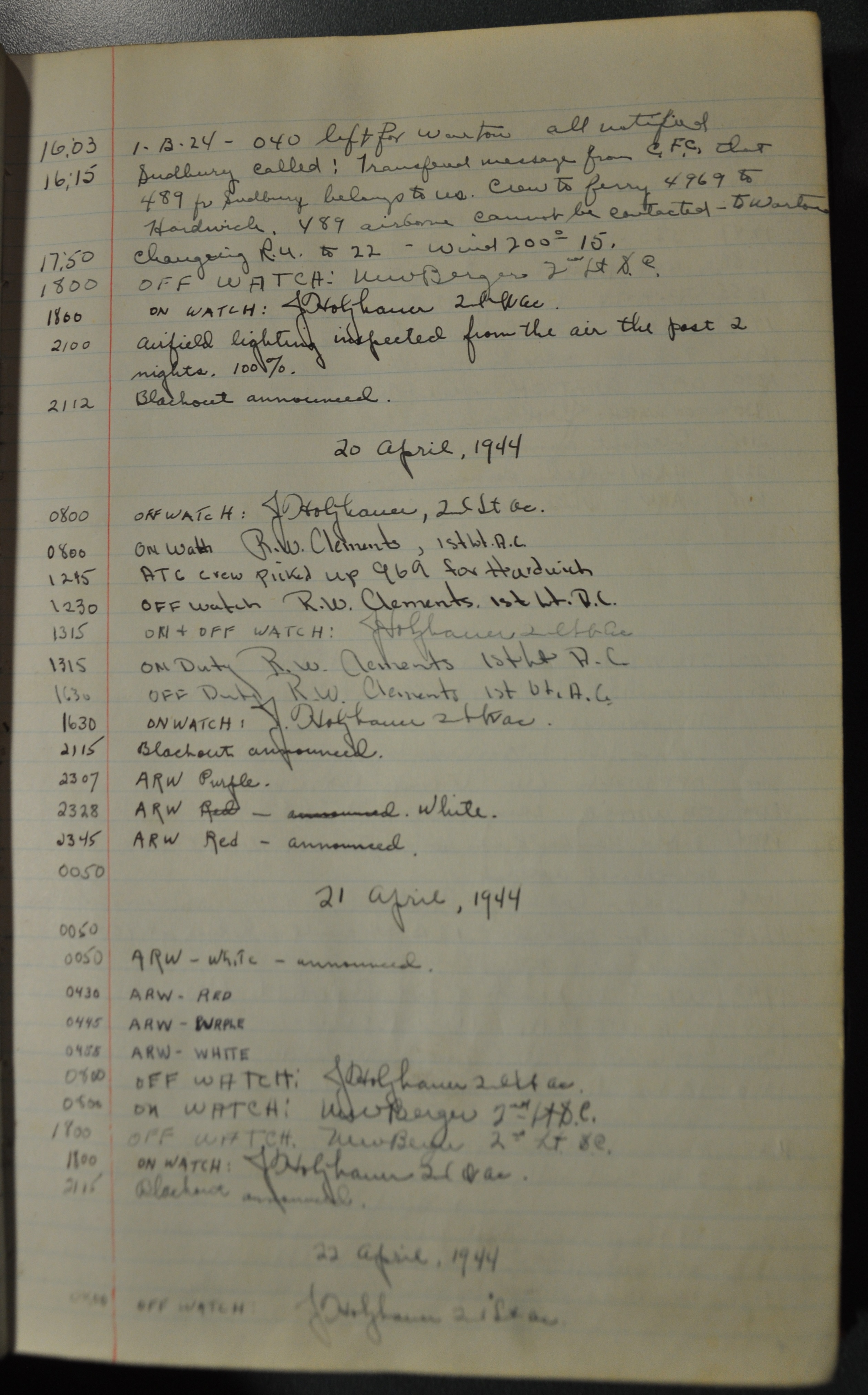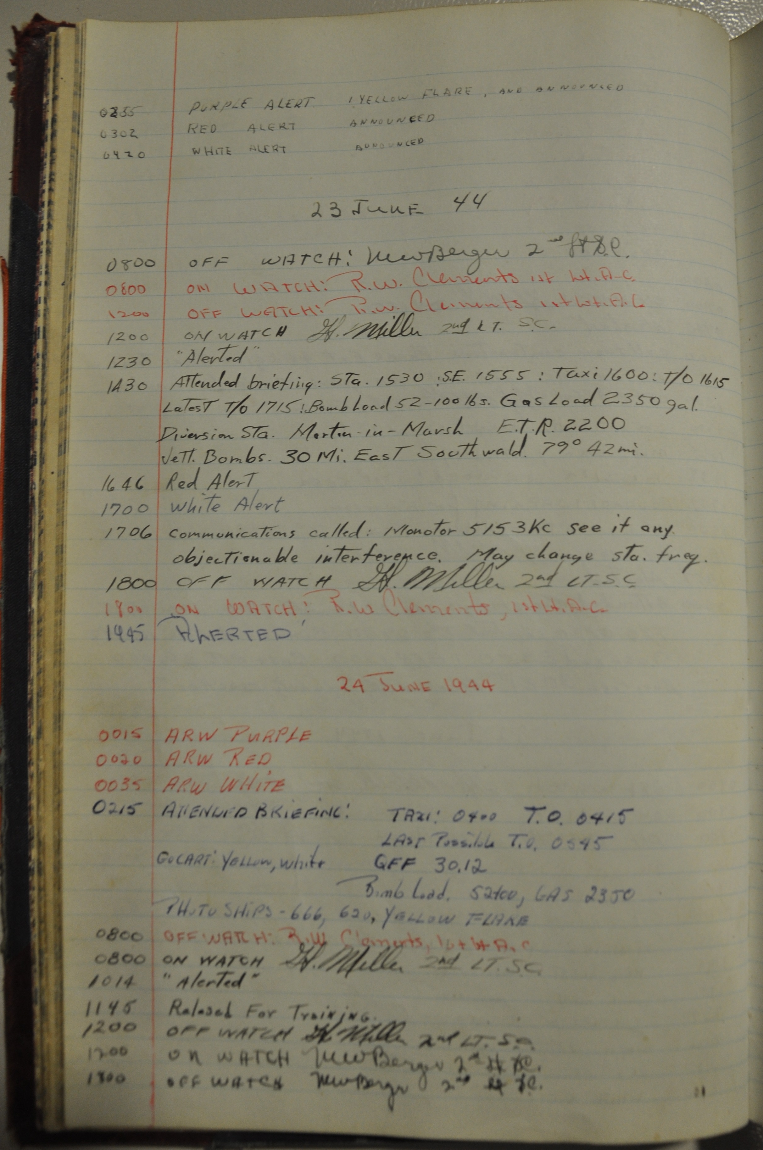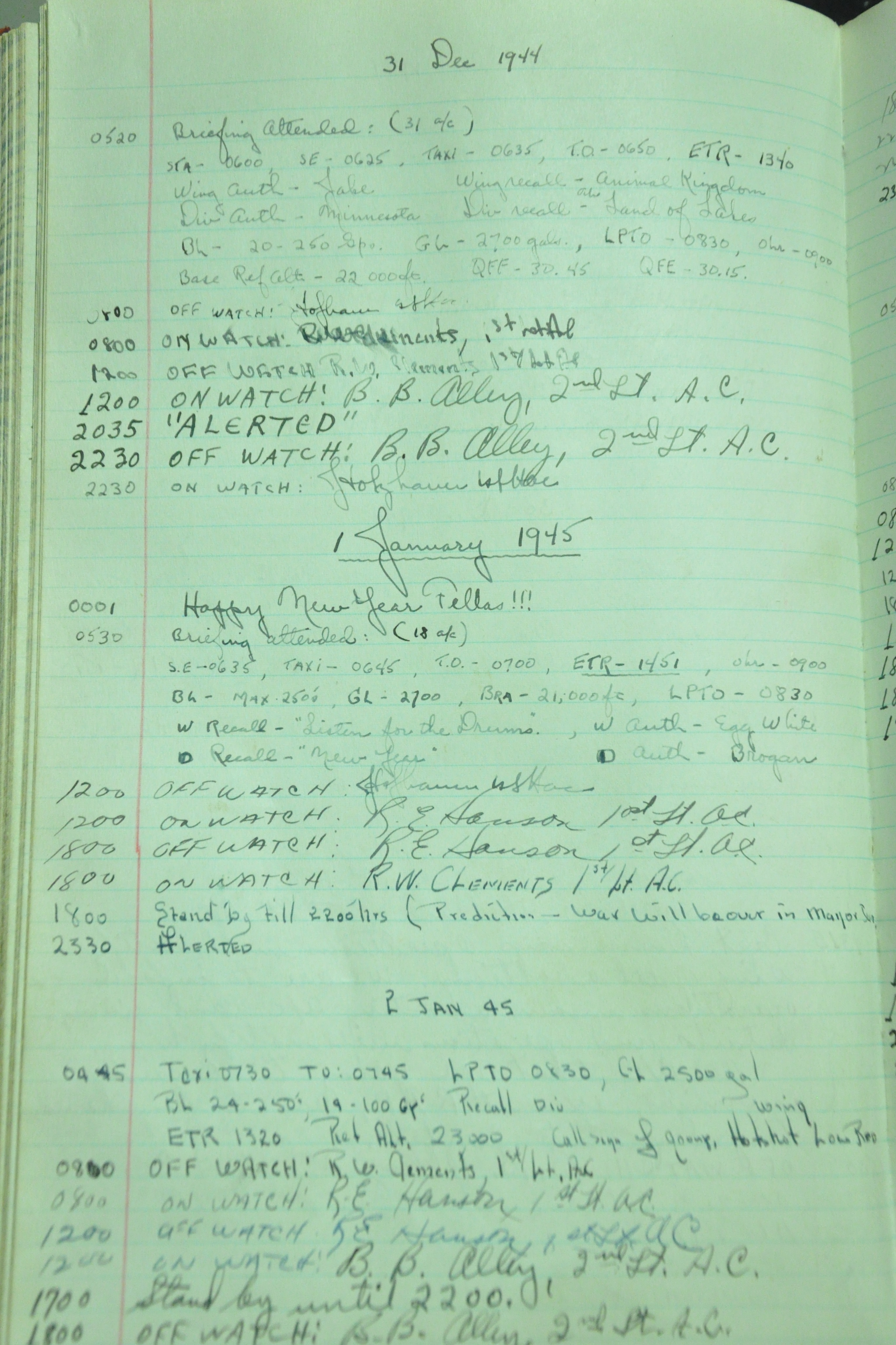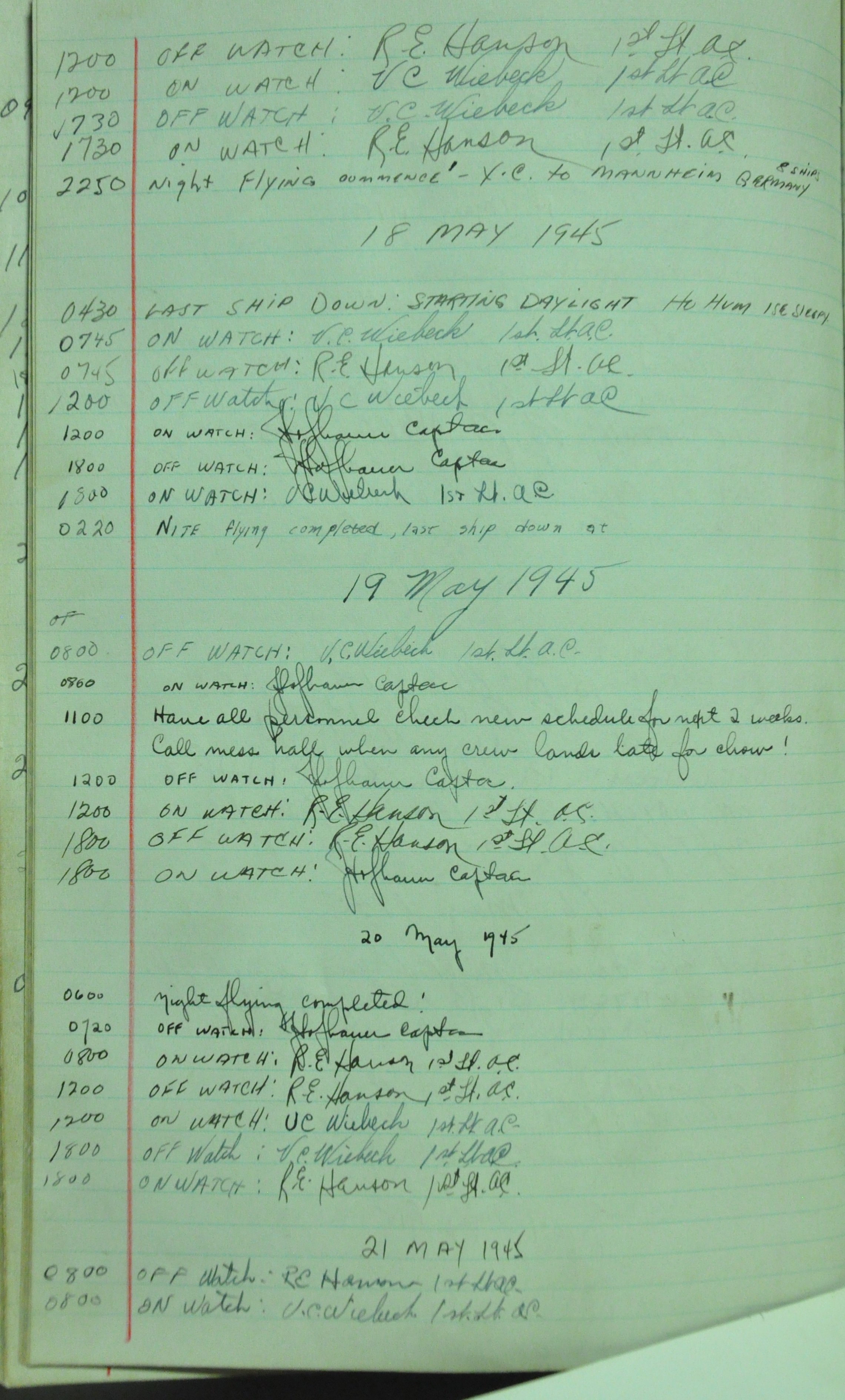 the pages of the 487th Tower Log book that is at the museum. It contains notes by the control tower officers relative to operations