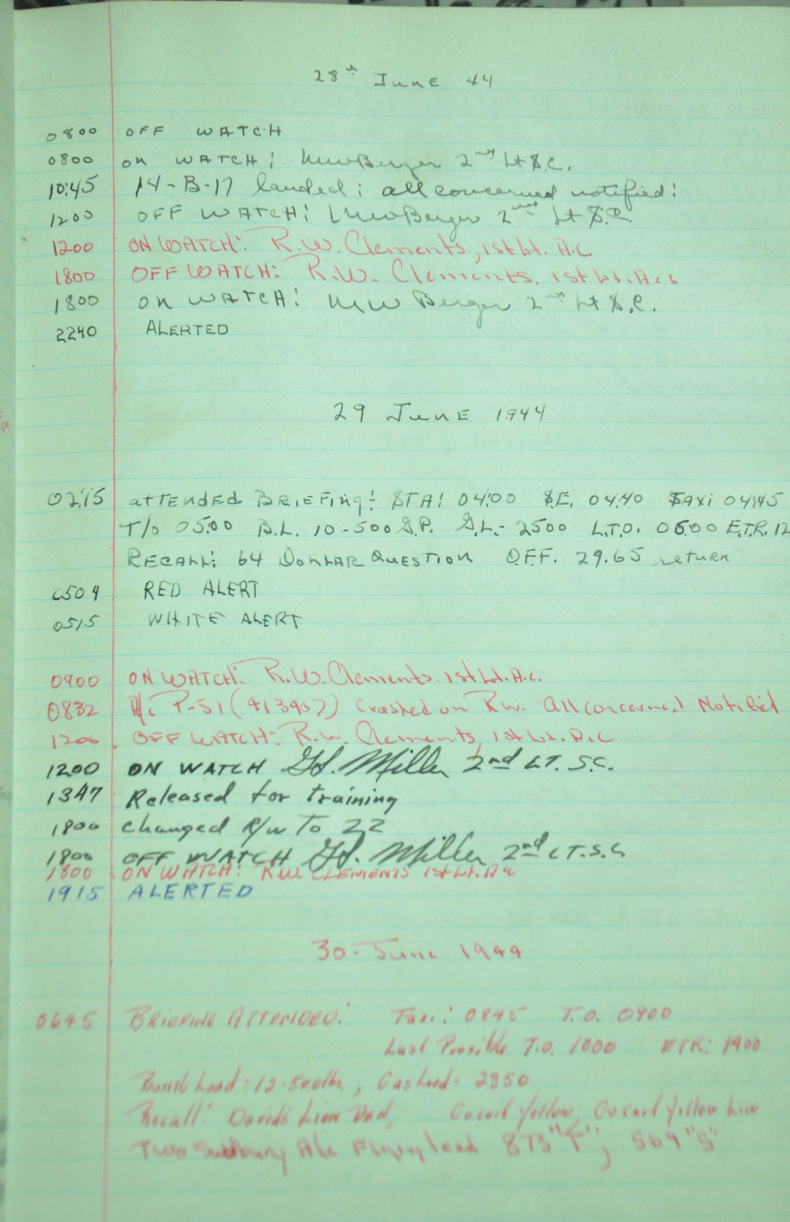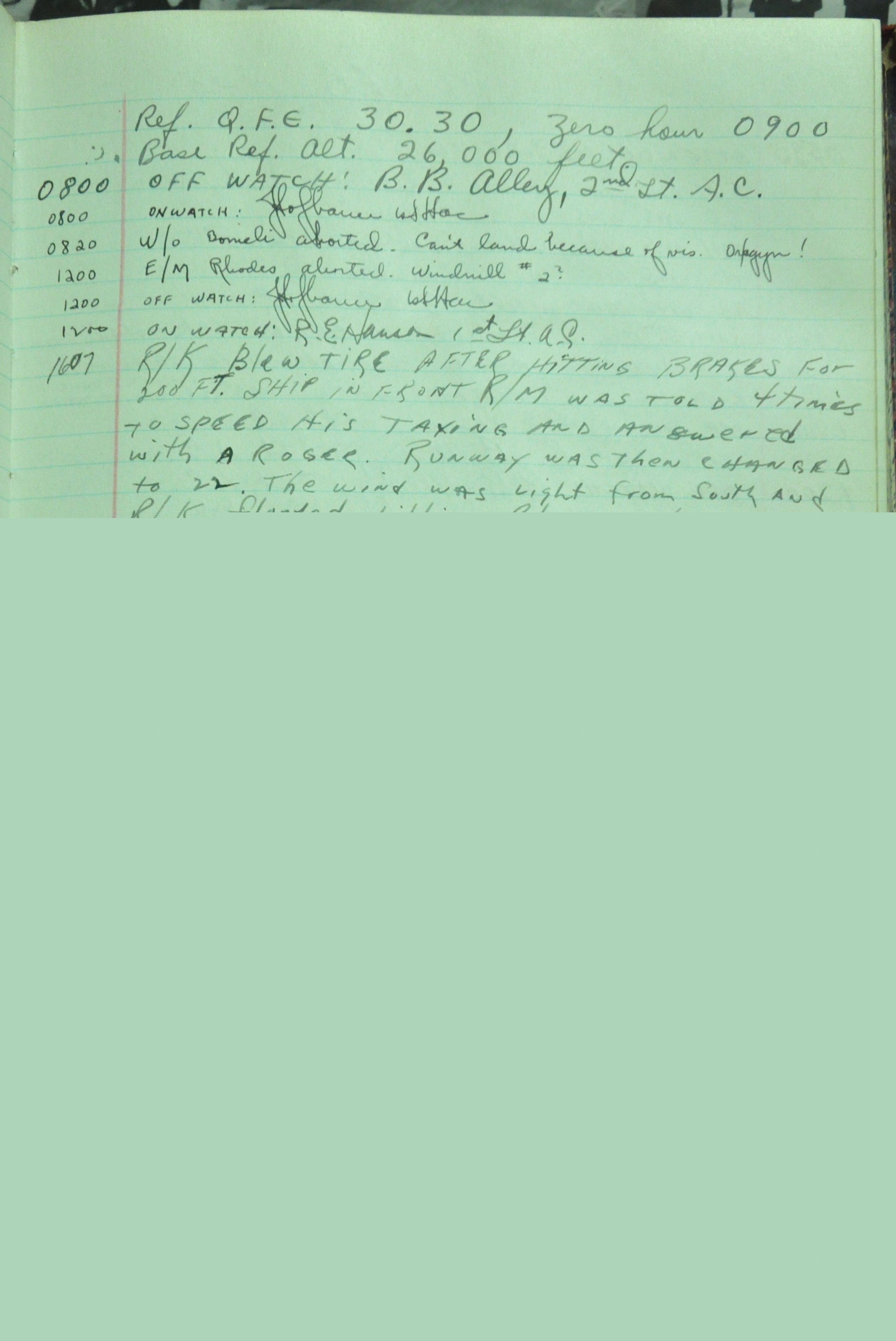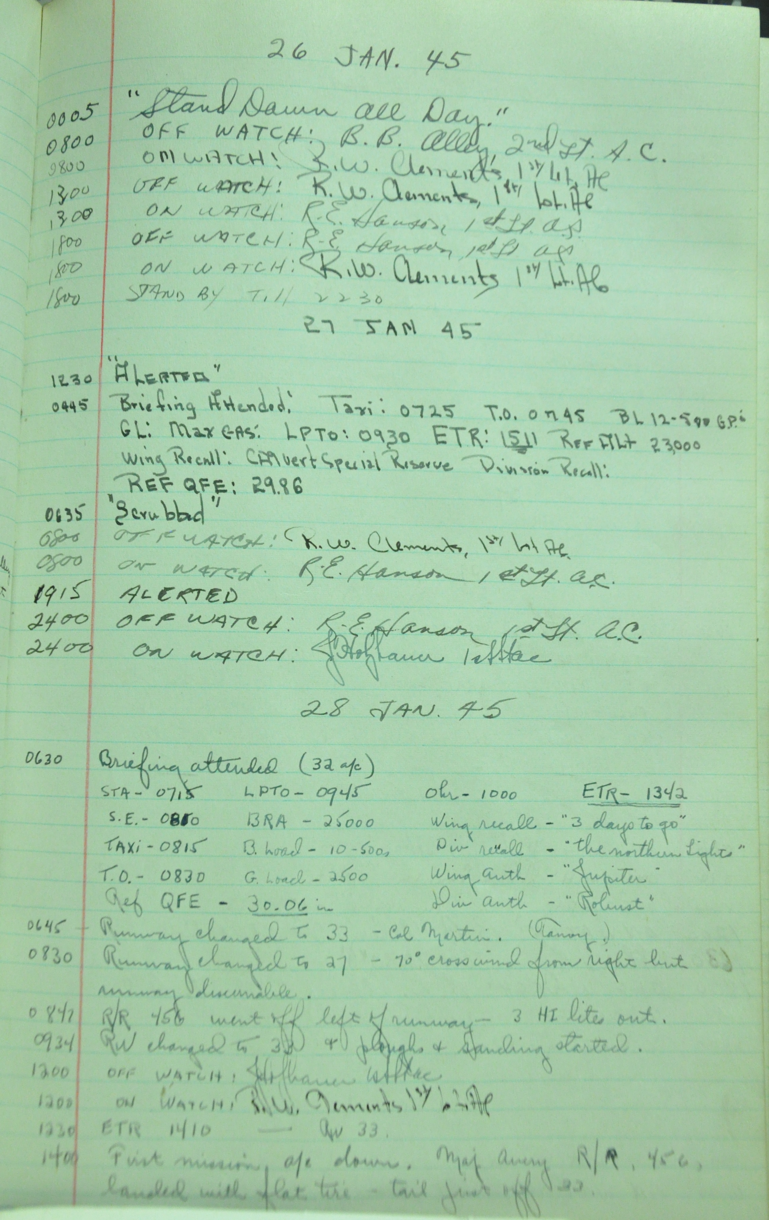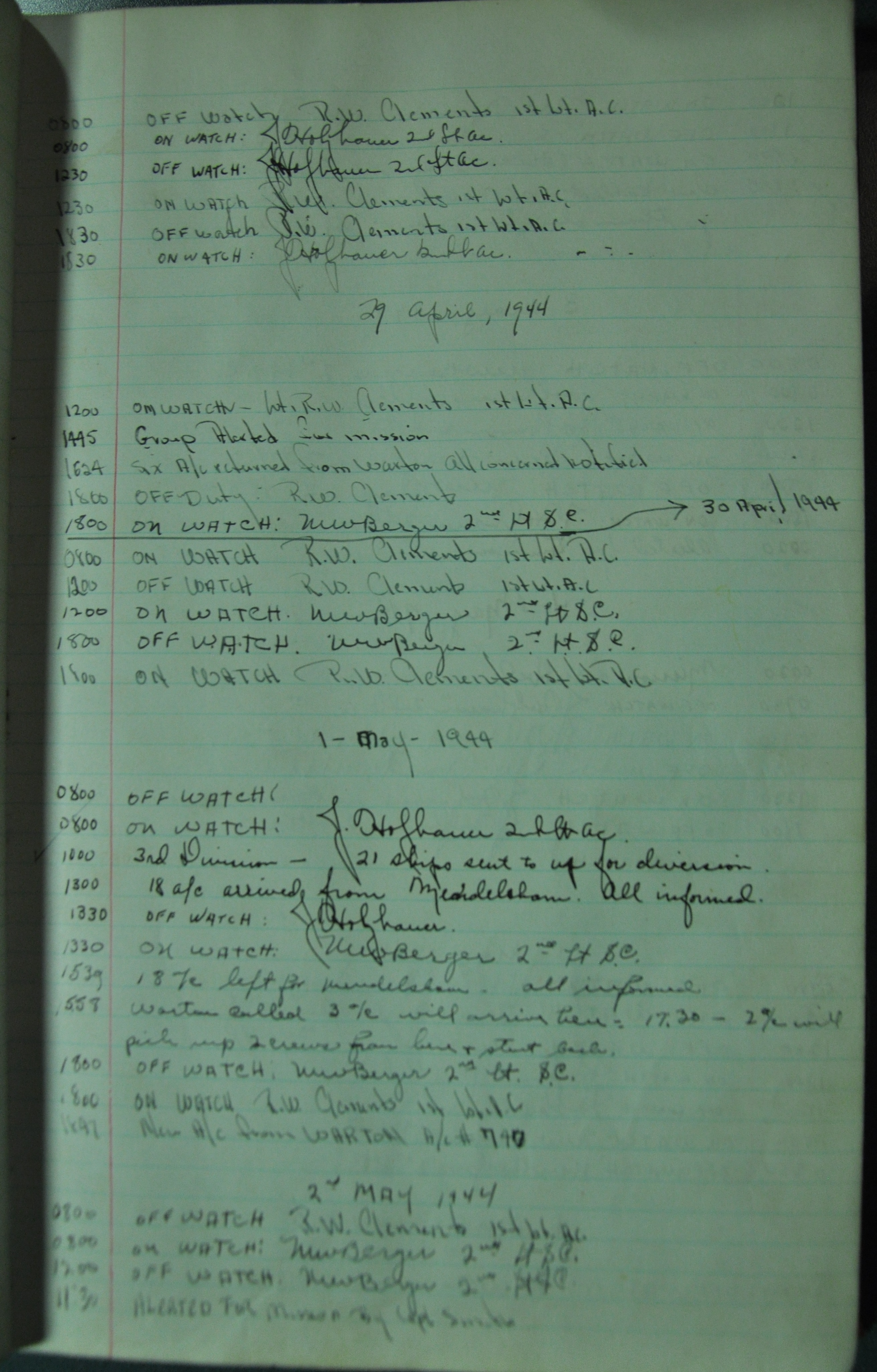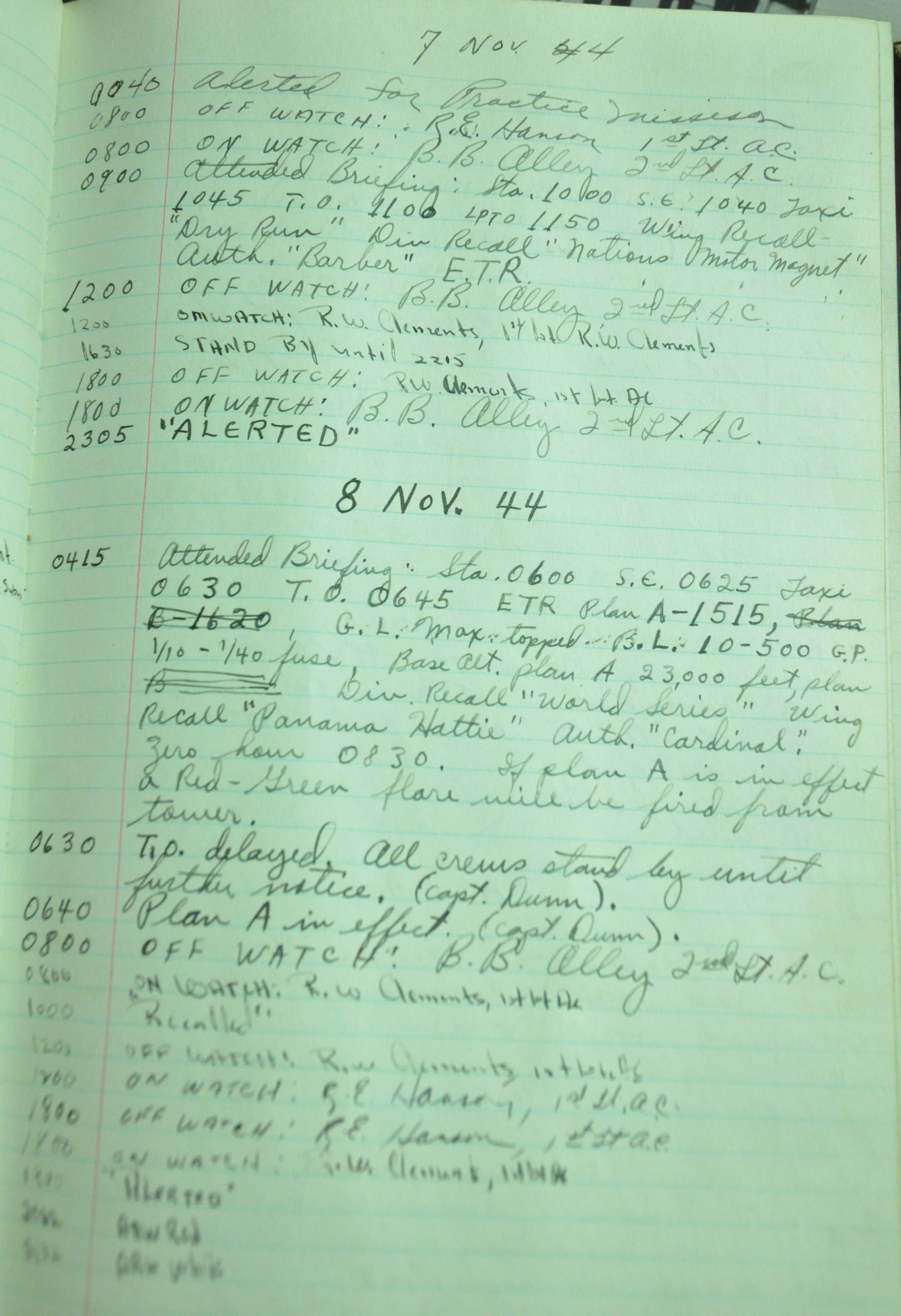 the pages of the 487th Tower Log book that is at the museum. It contains notes by the control tower officers relative to operations