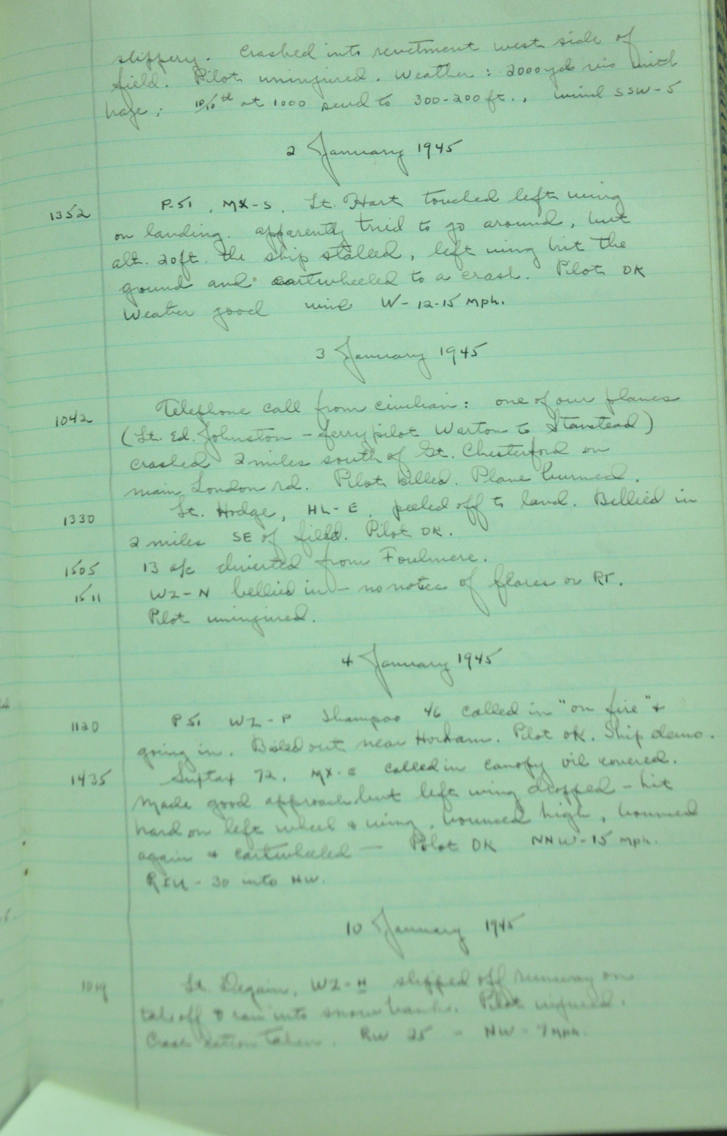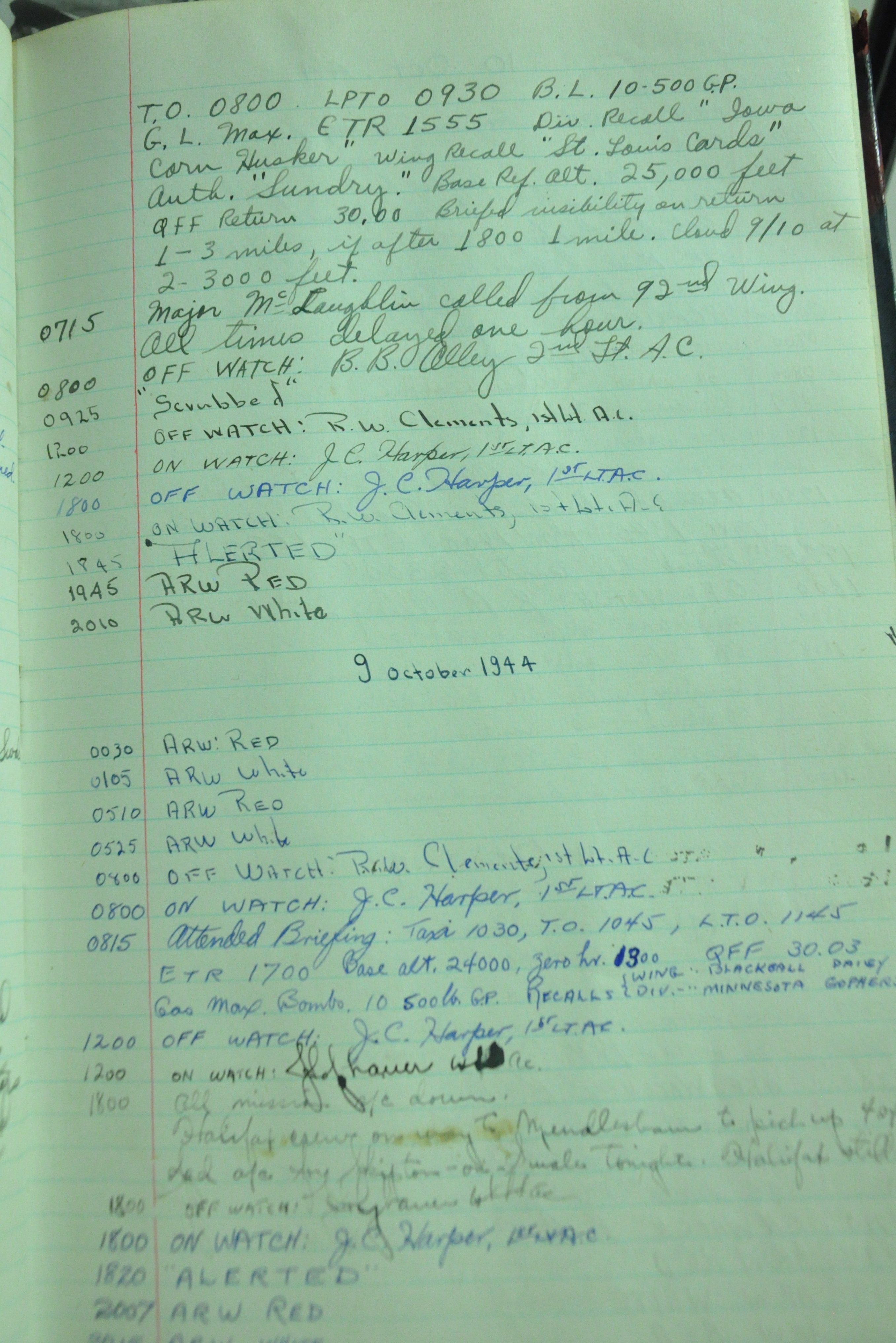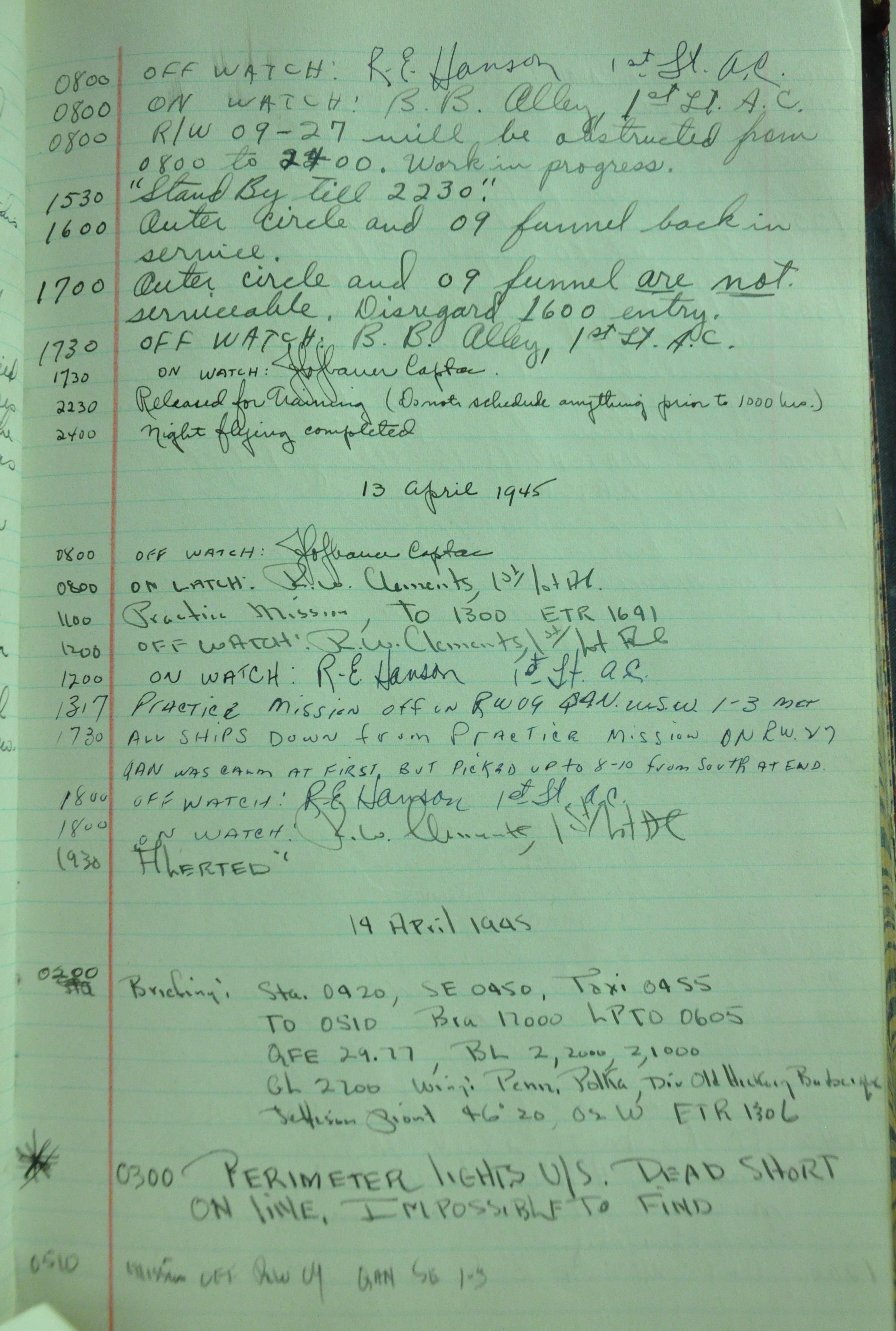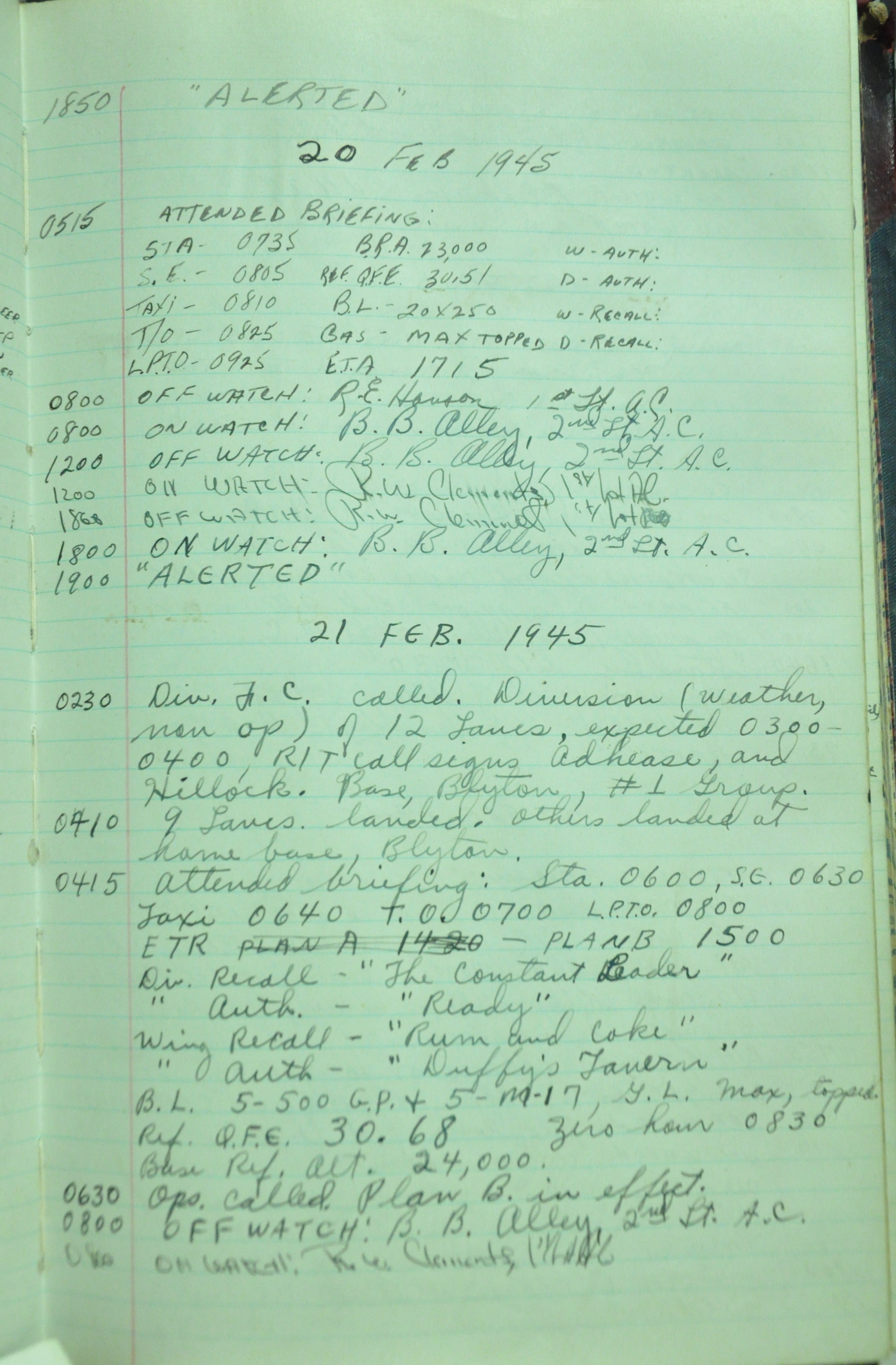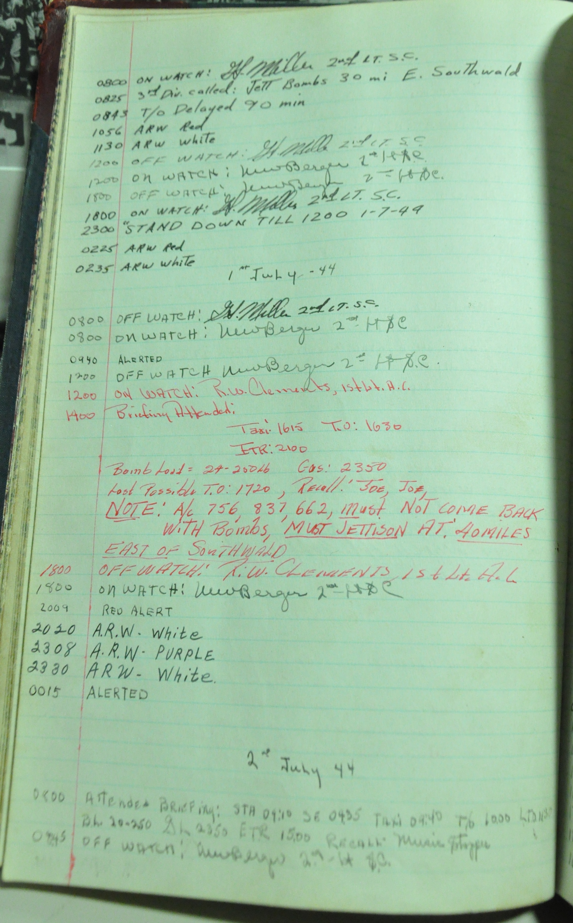 the pages of the 487th Tower Log book that is at the museum. It contains notes by the control tower officers relative to operations