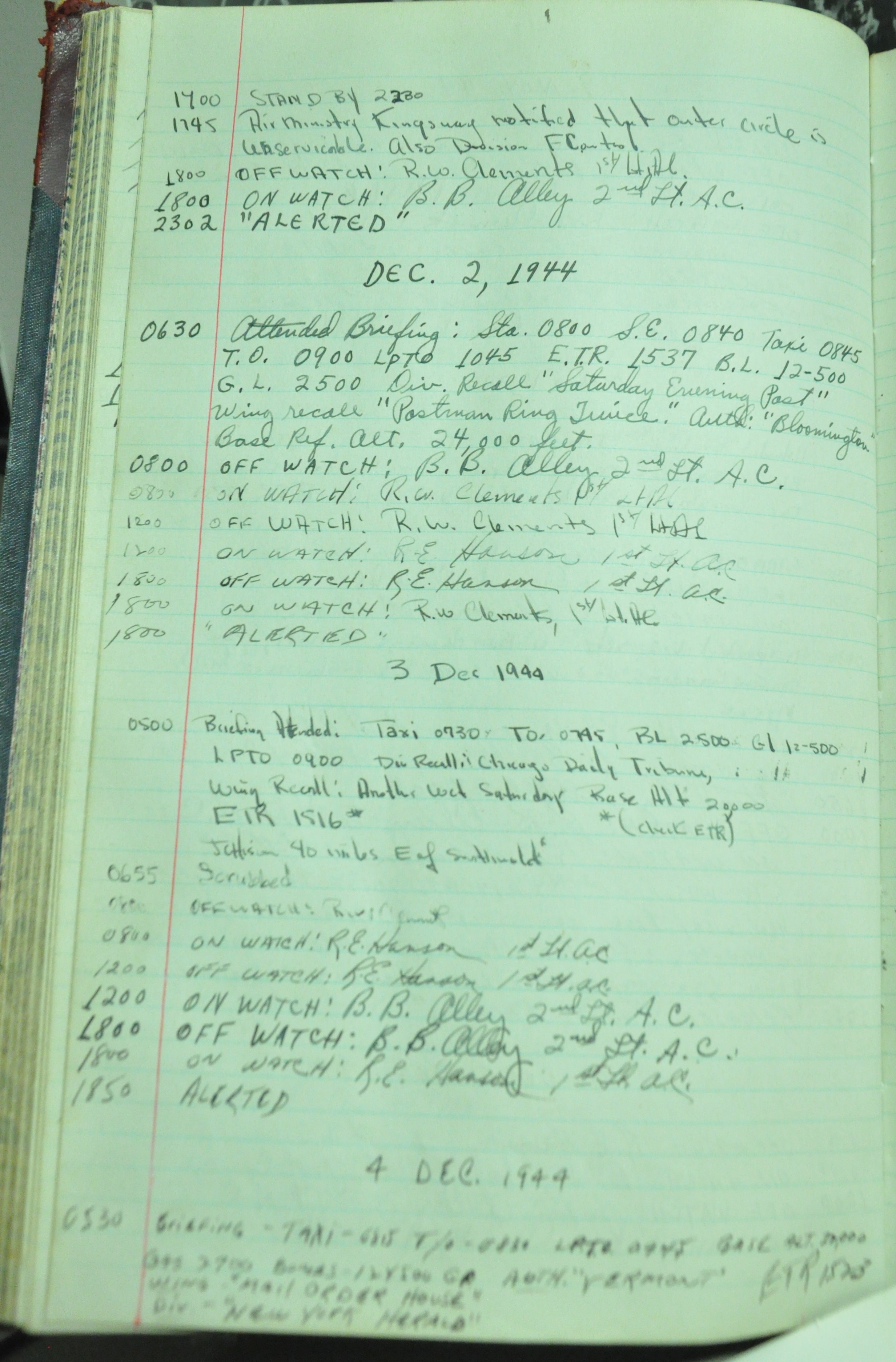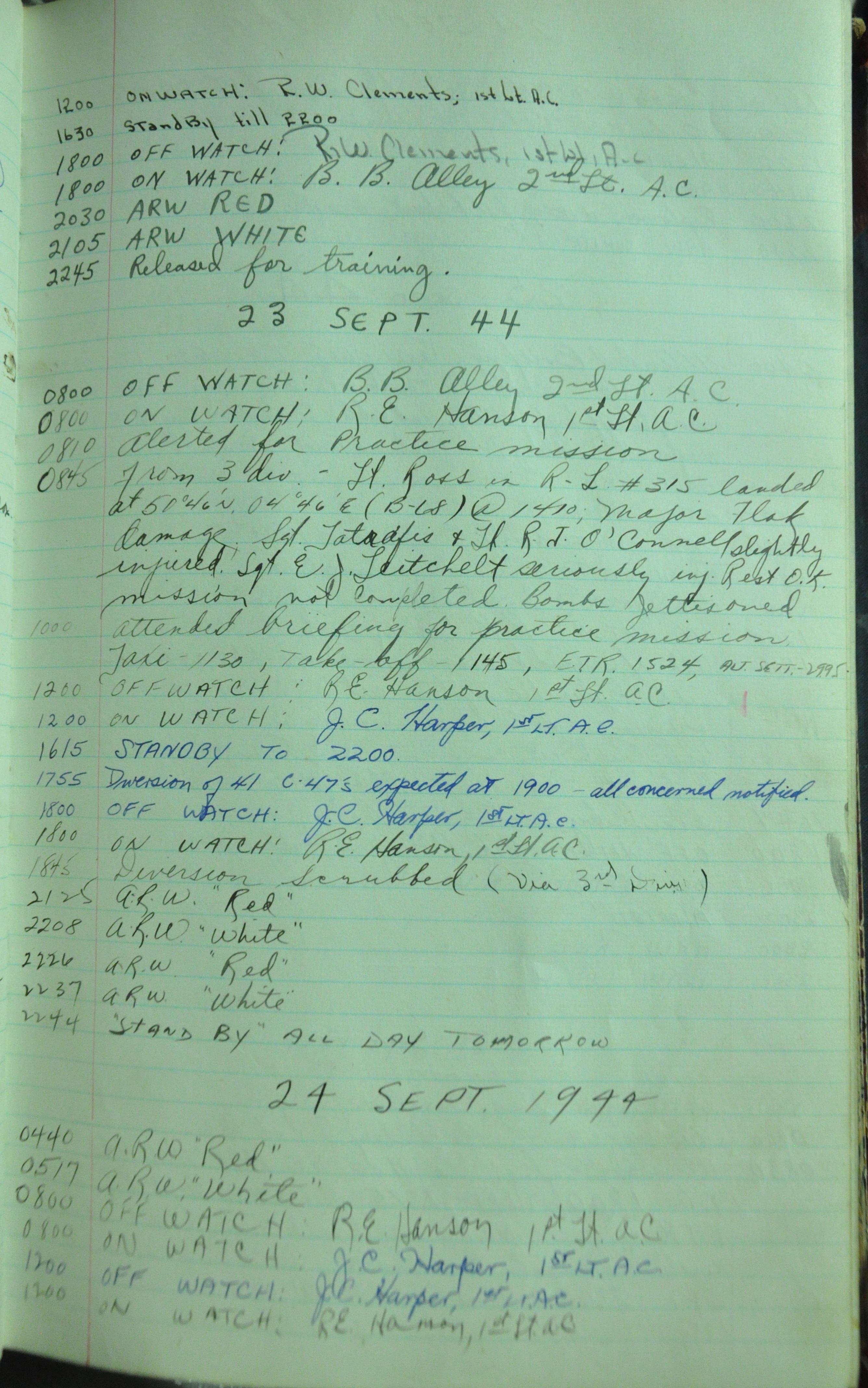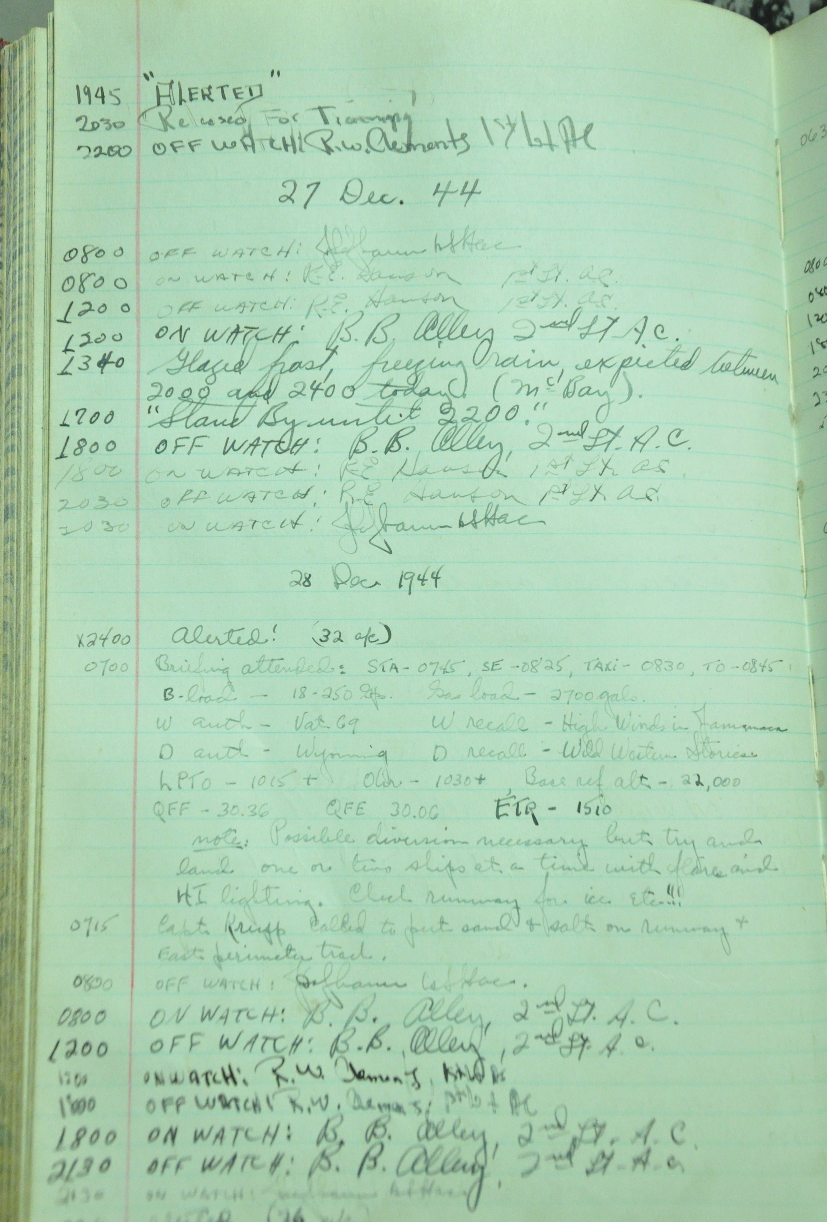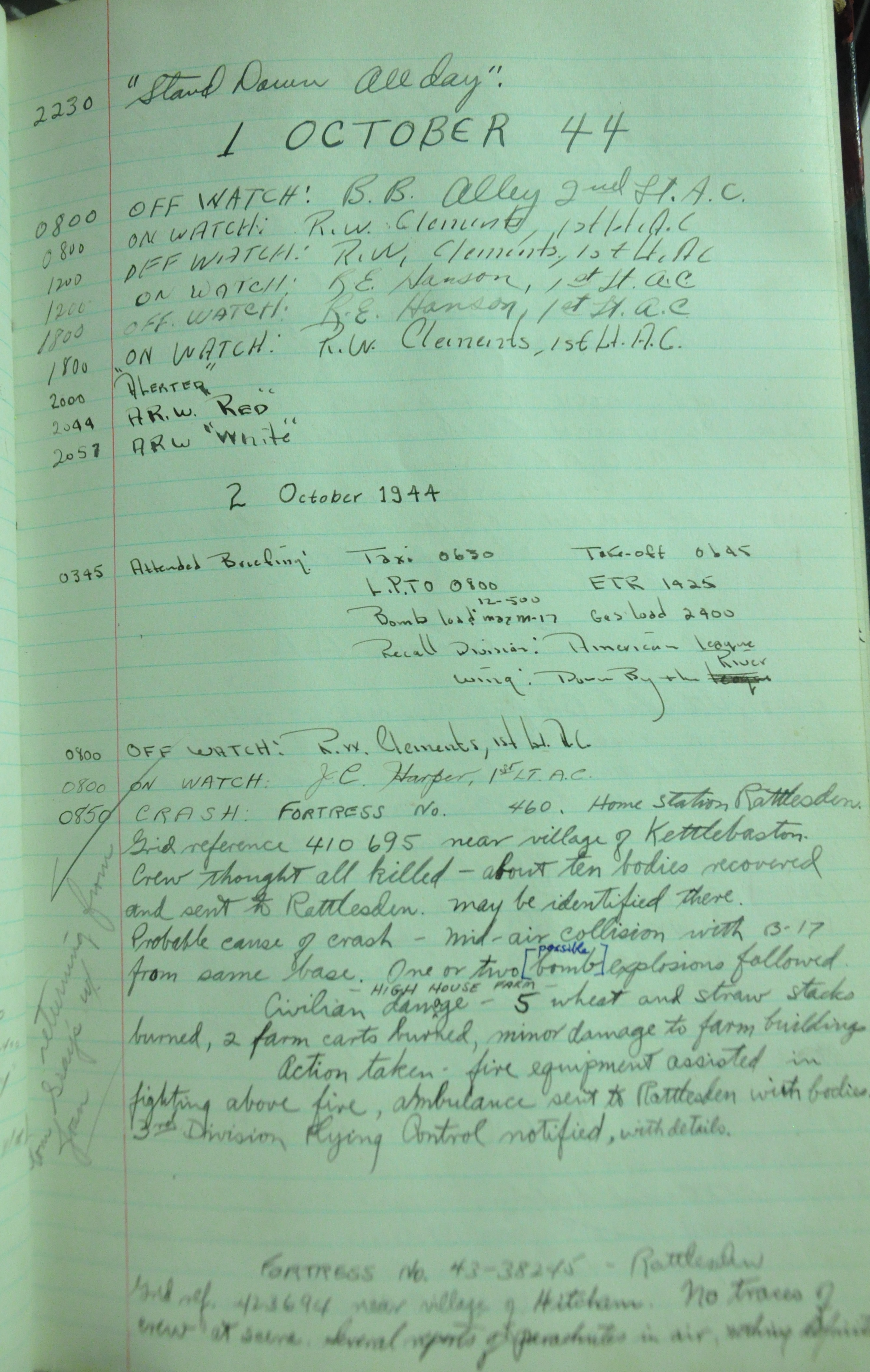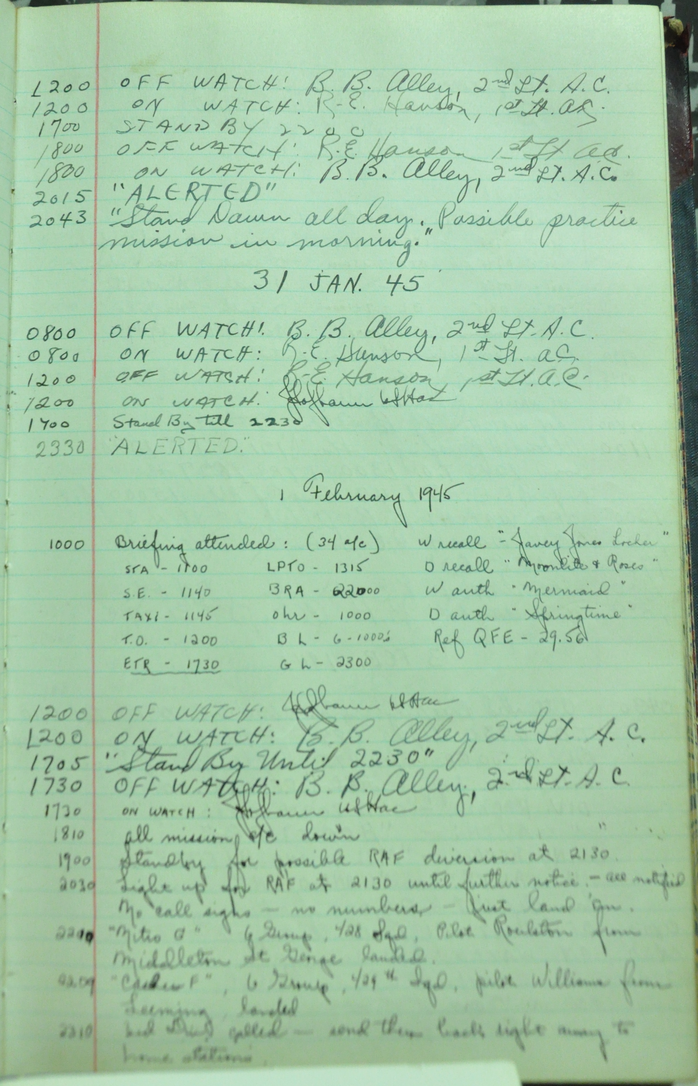 the pages of the 487th Tower Log book that is at the museum. It contains notes by the control tower officers relative to operations