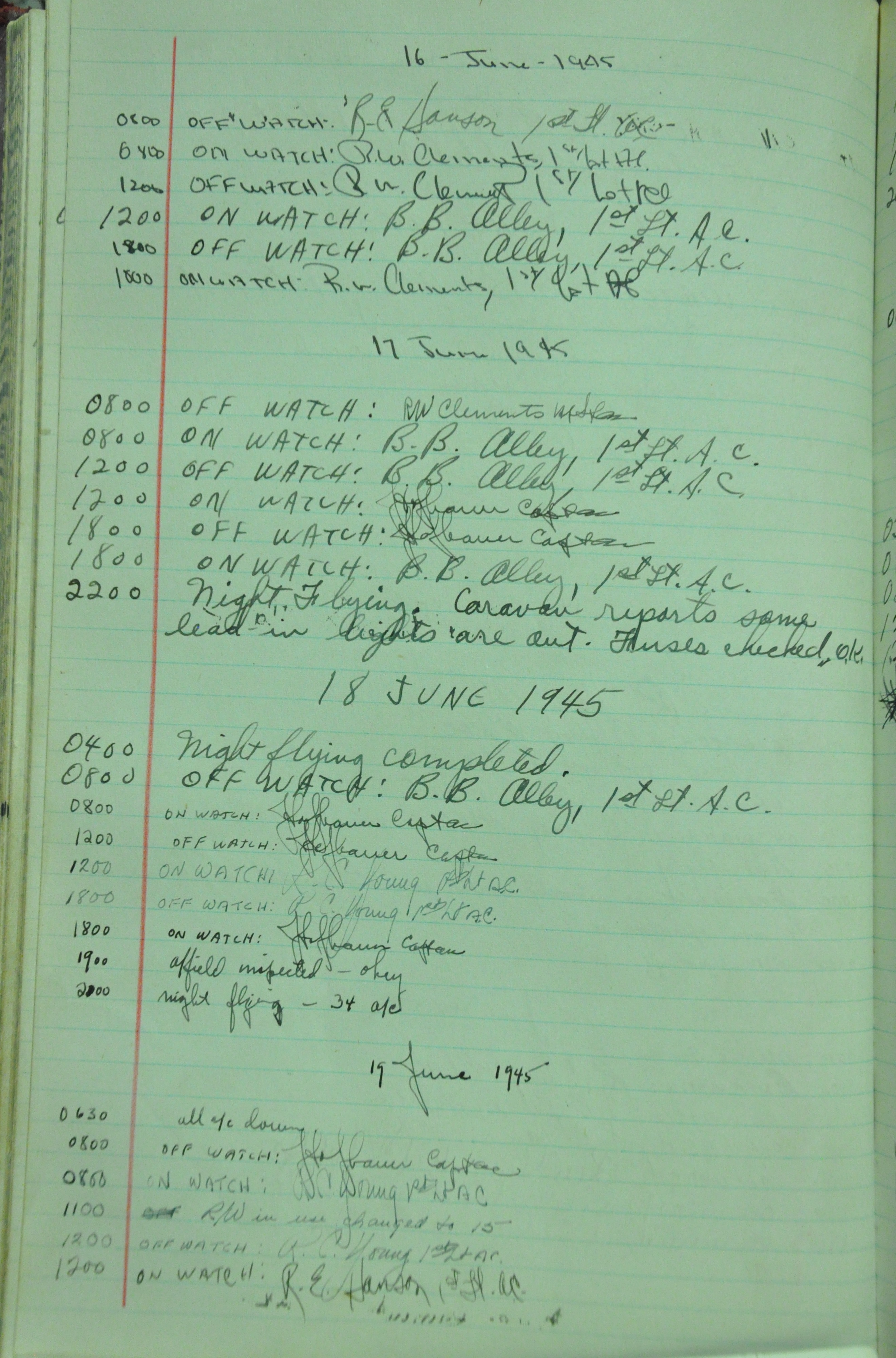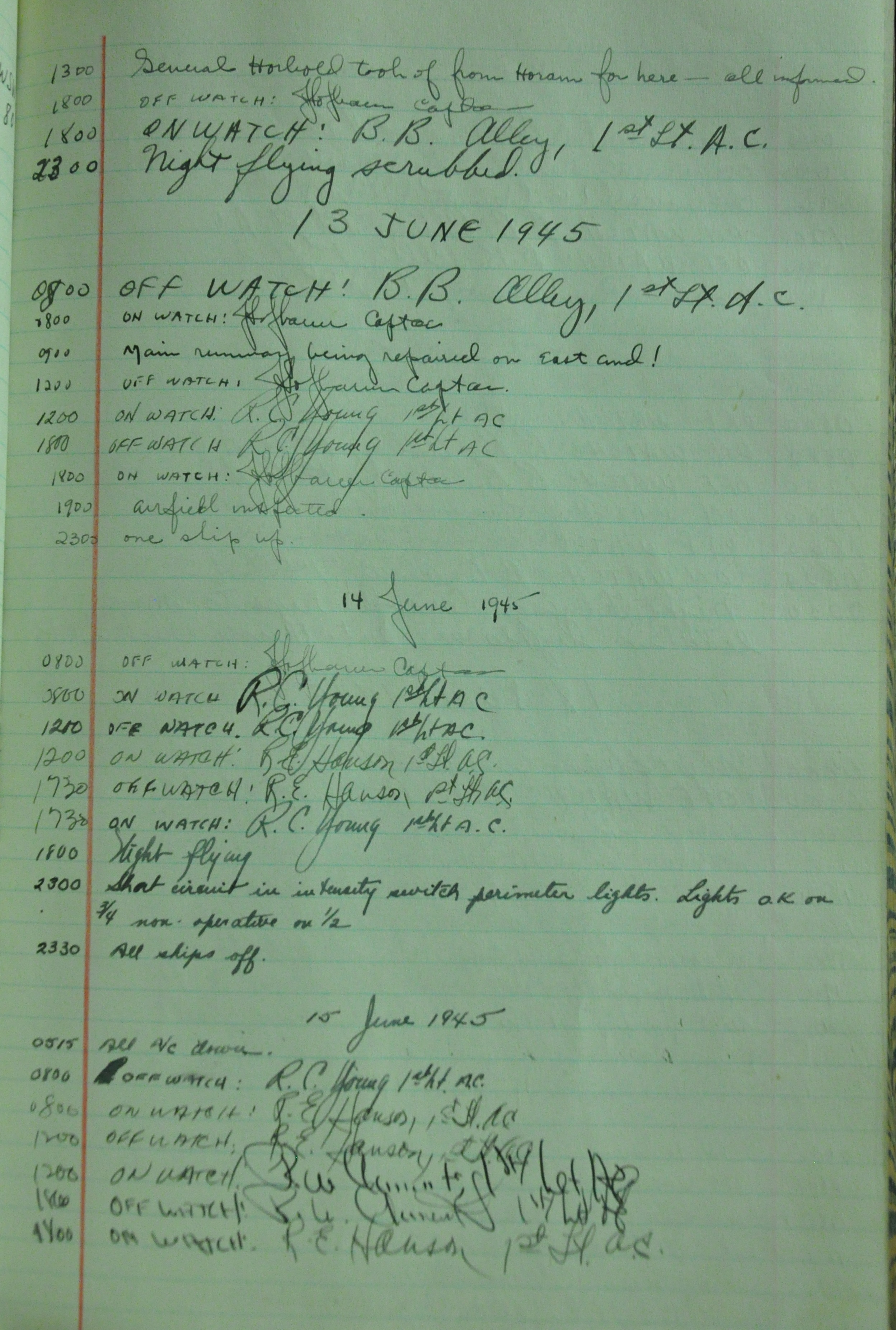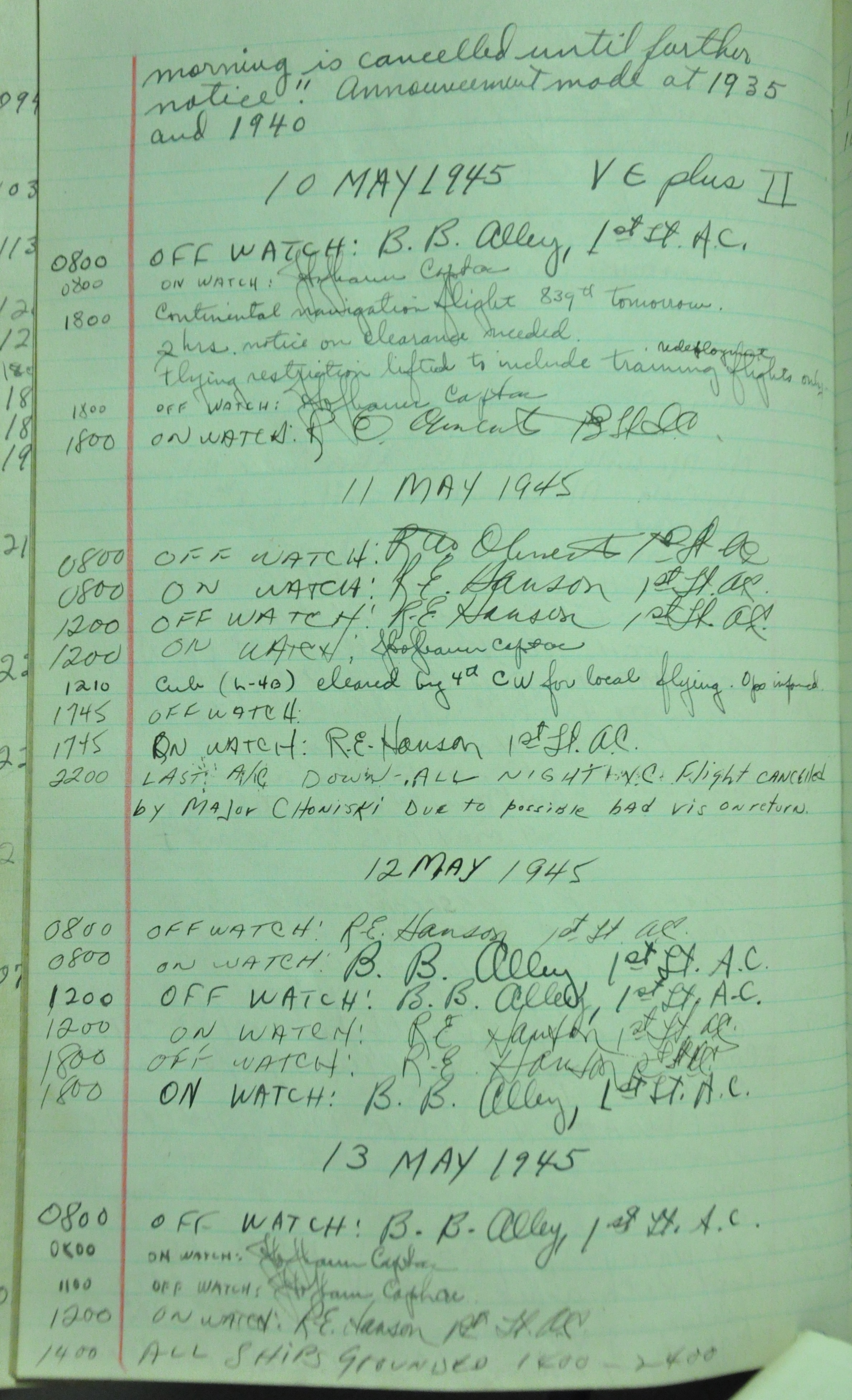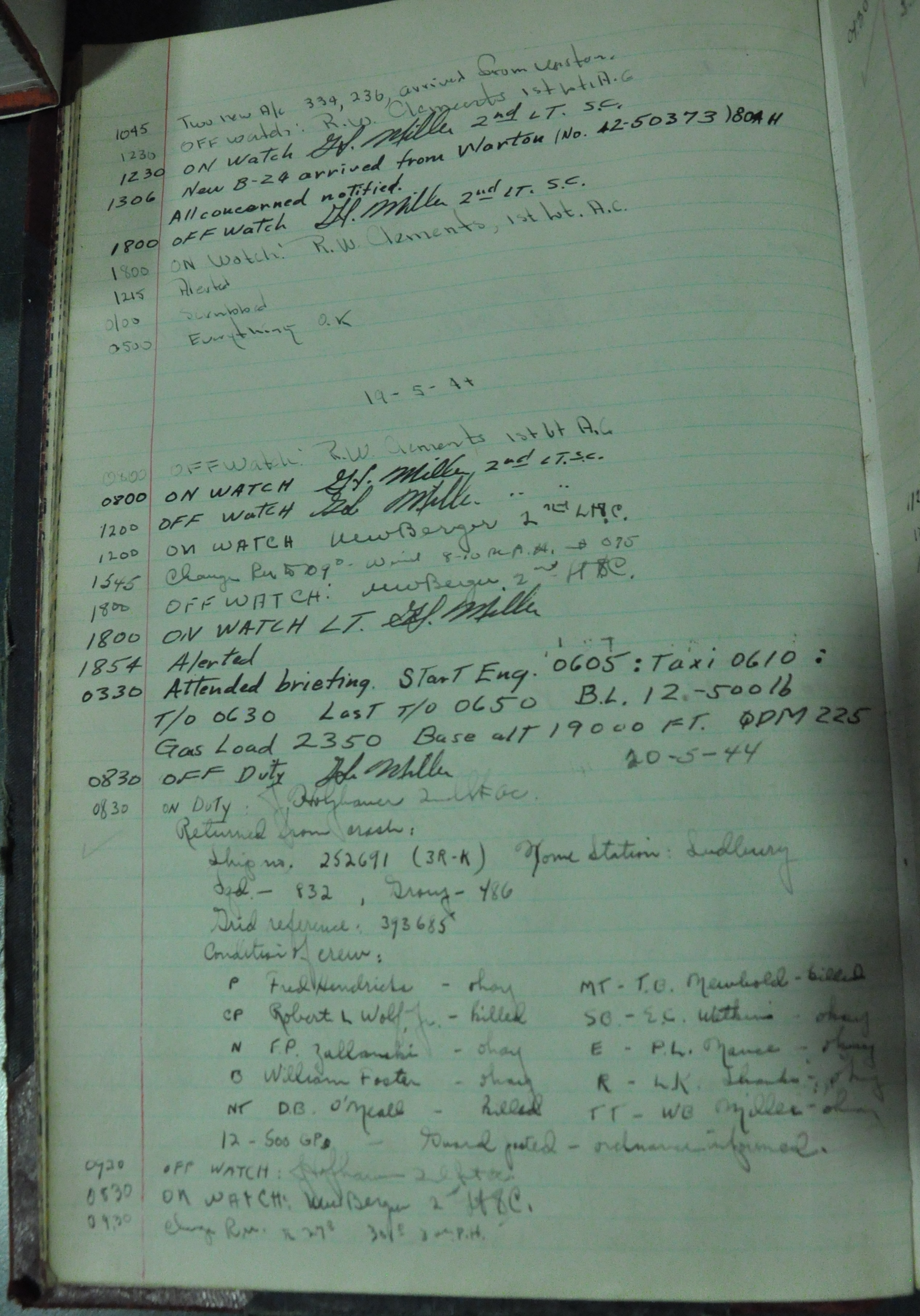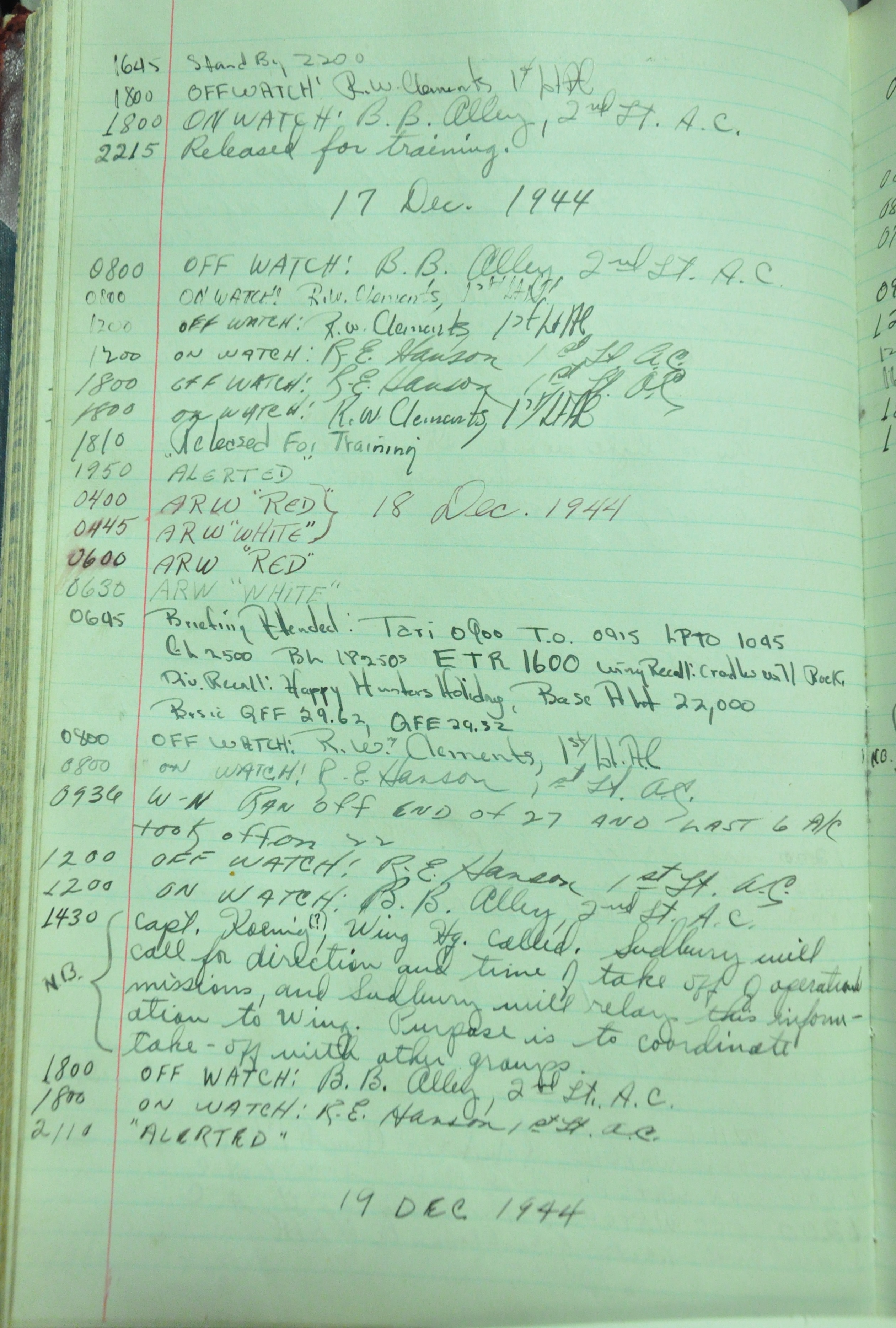 the pages of the 487th Tower Log book that is at the museum. It contains notes by the control tower officers relative to operations