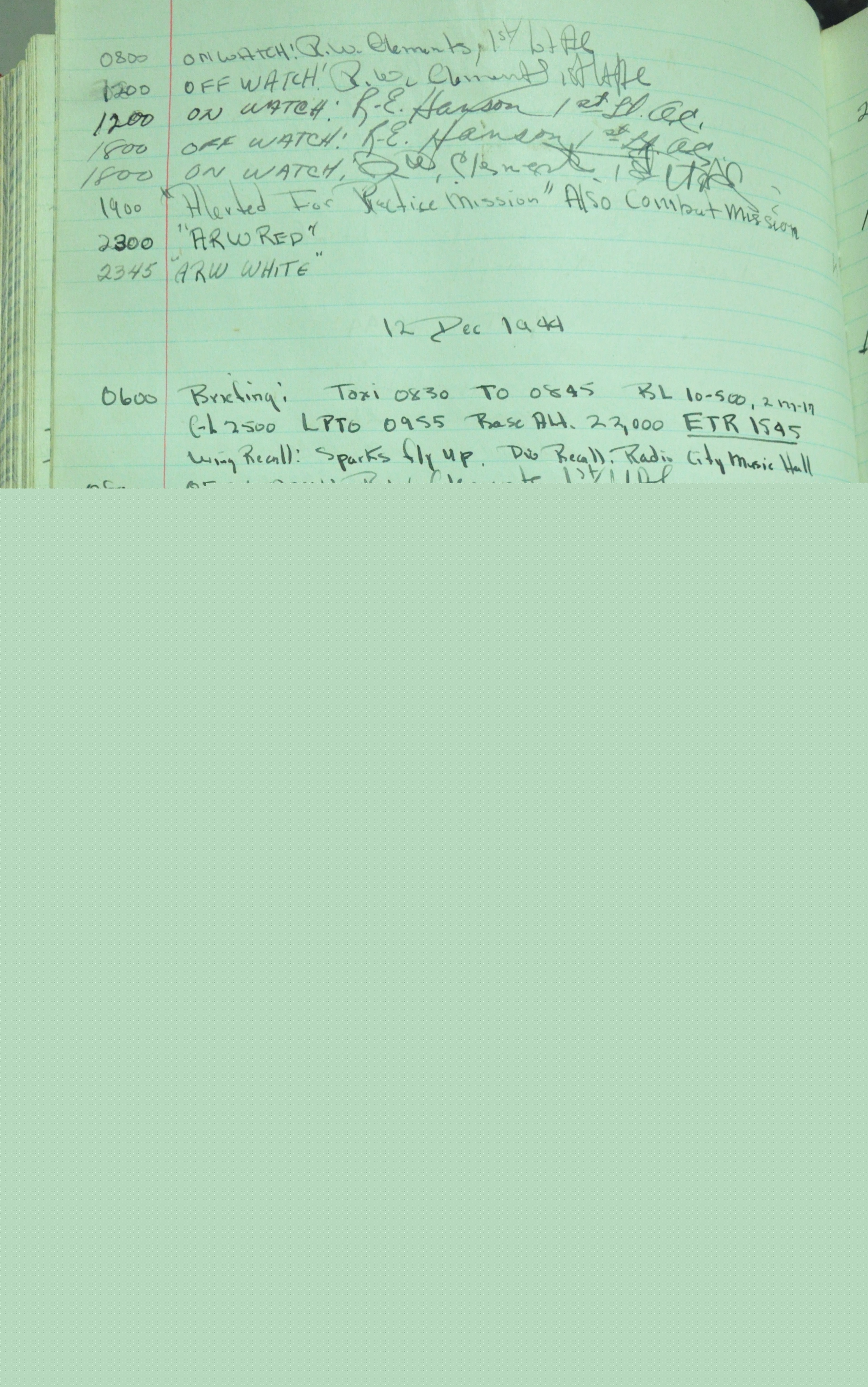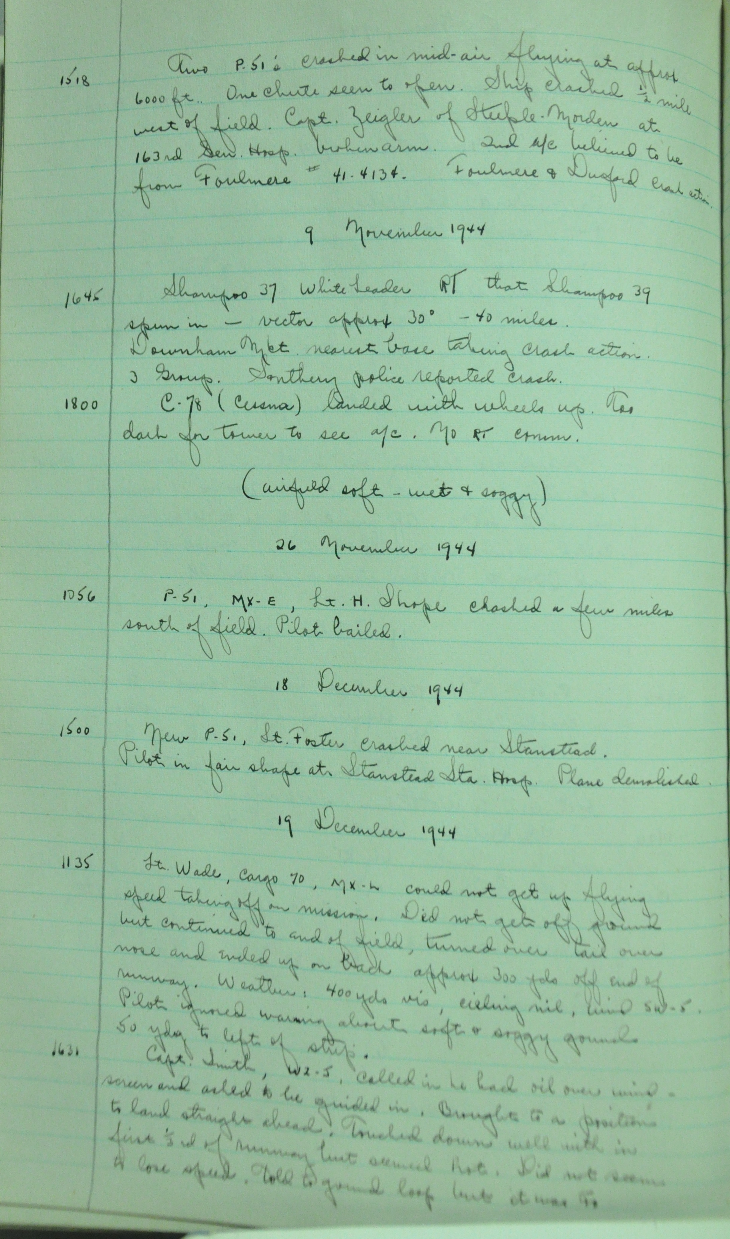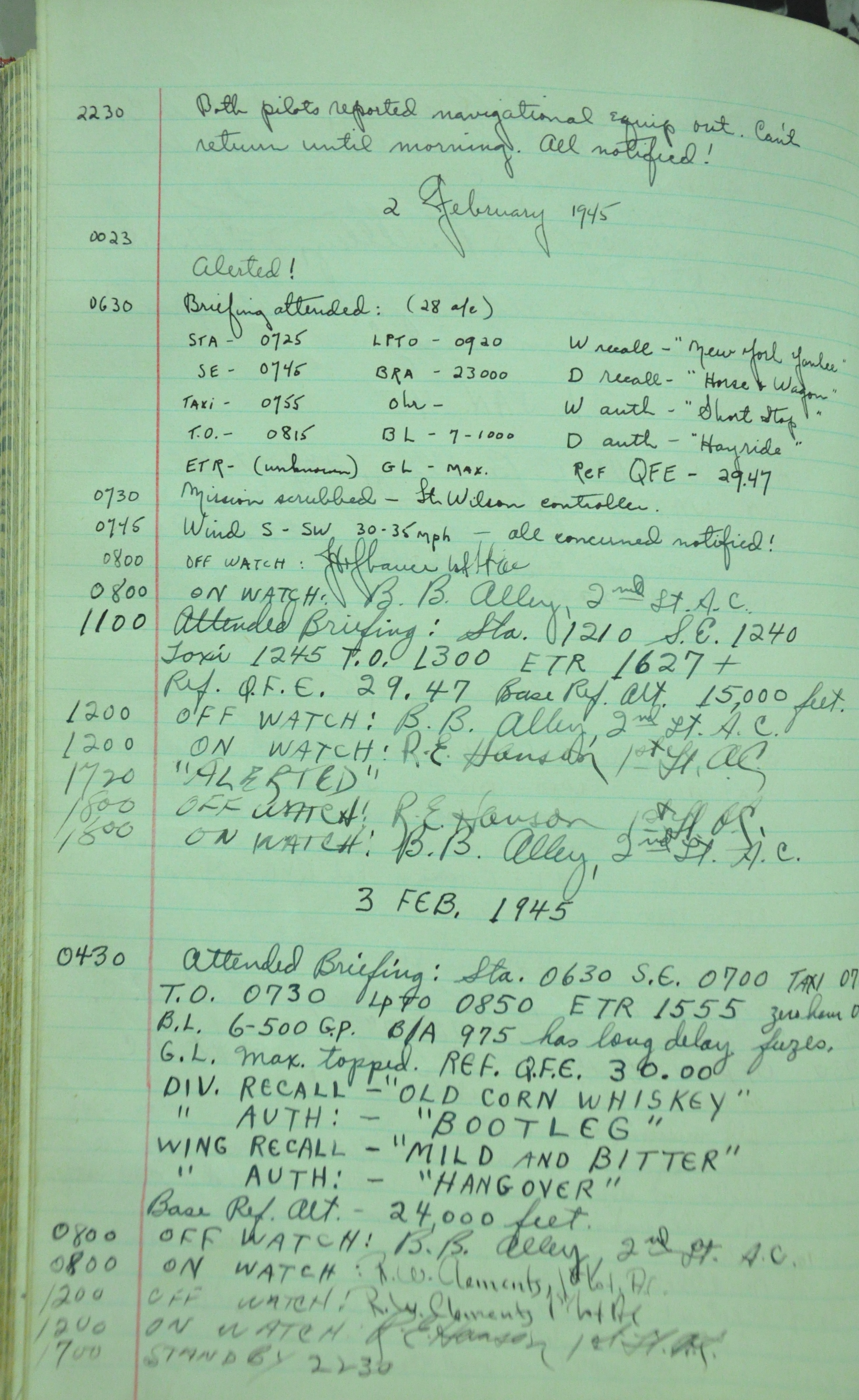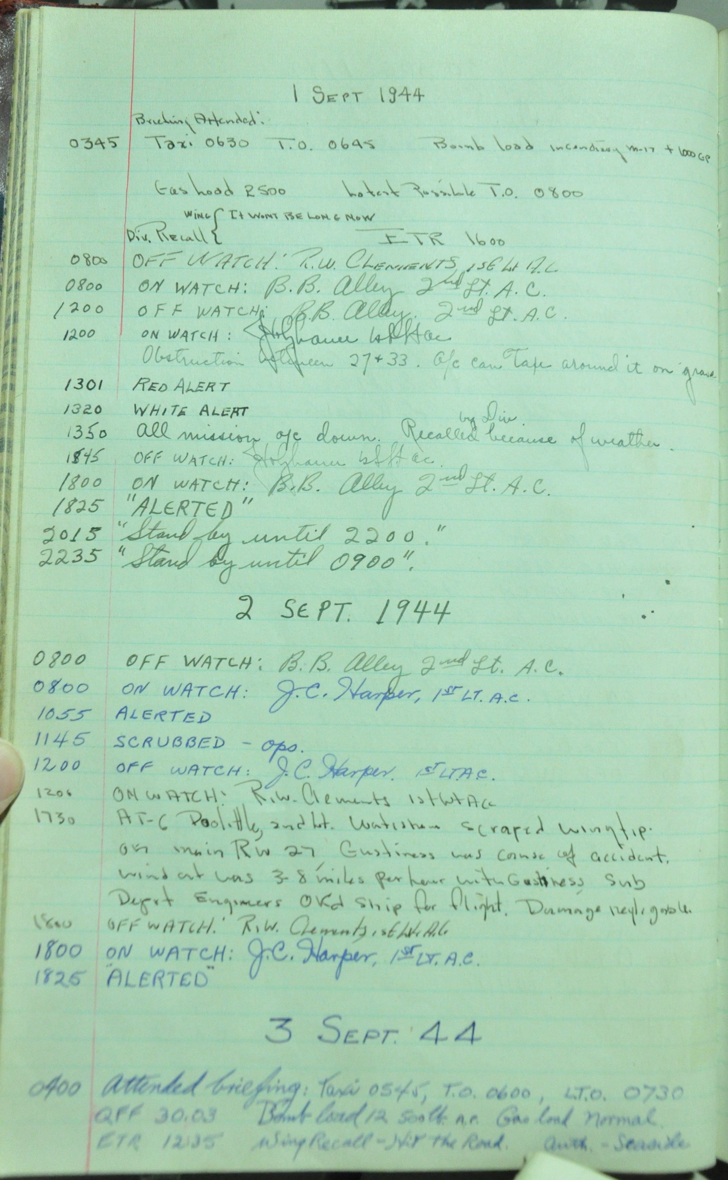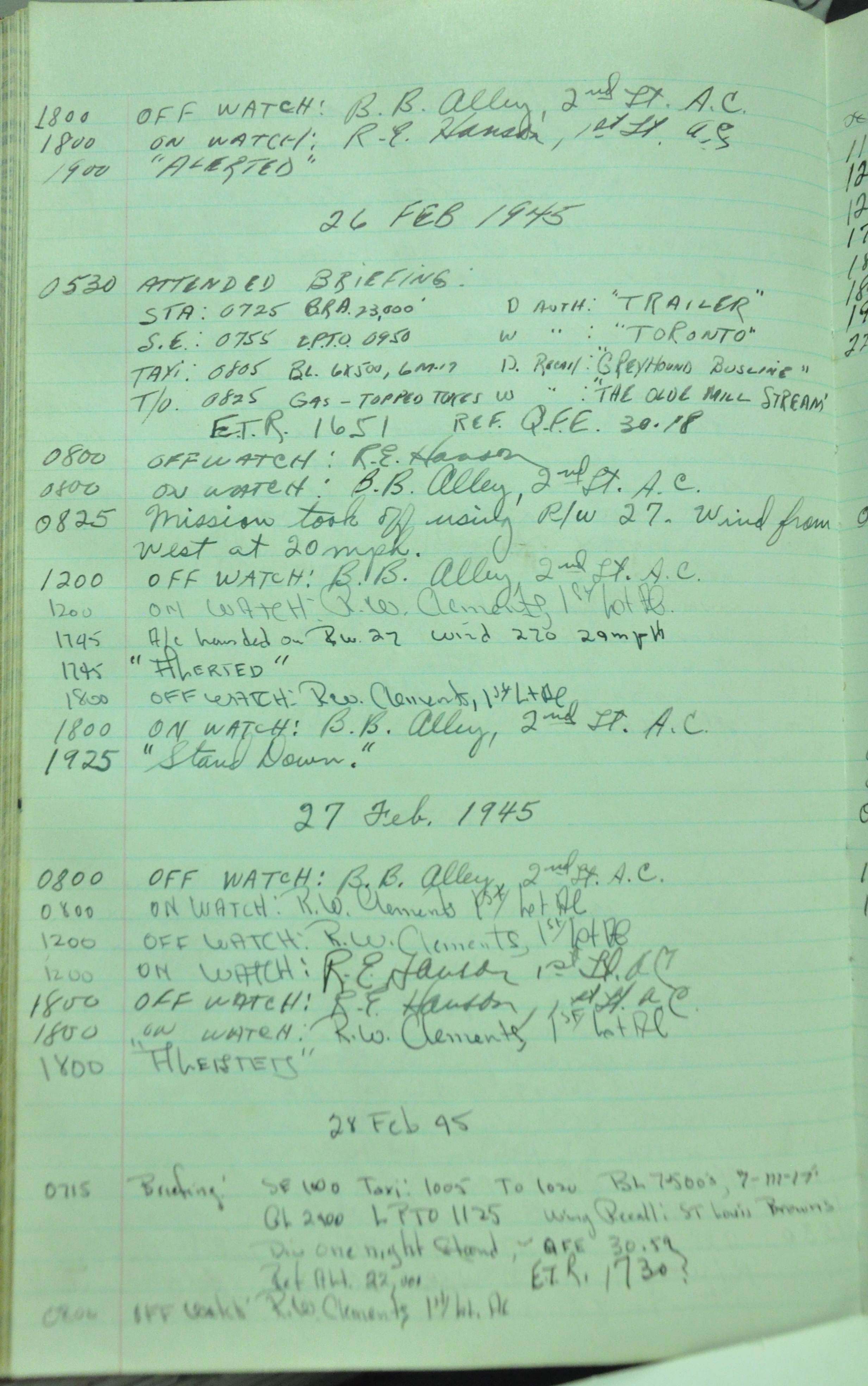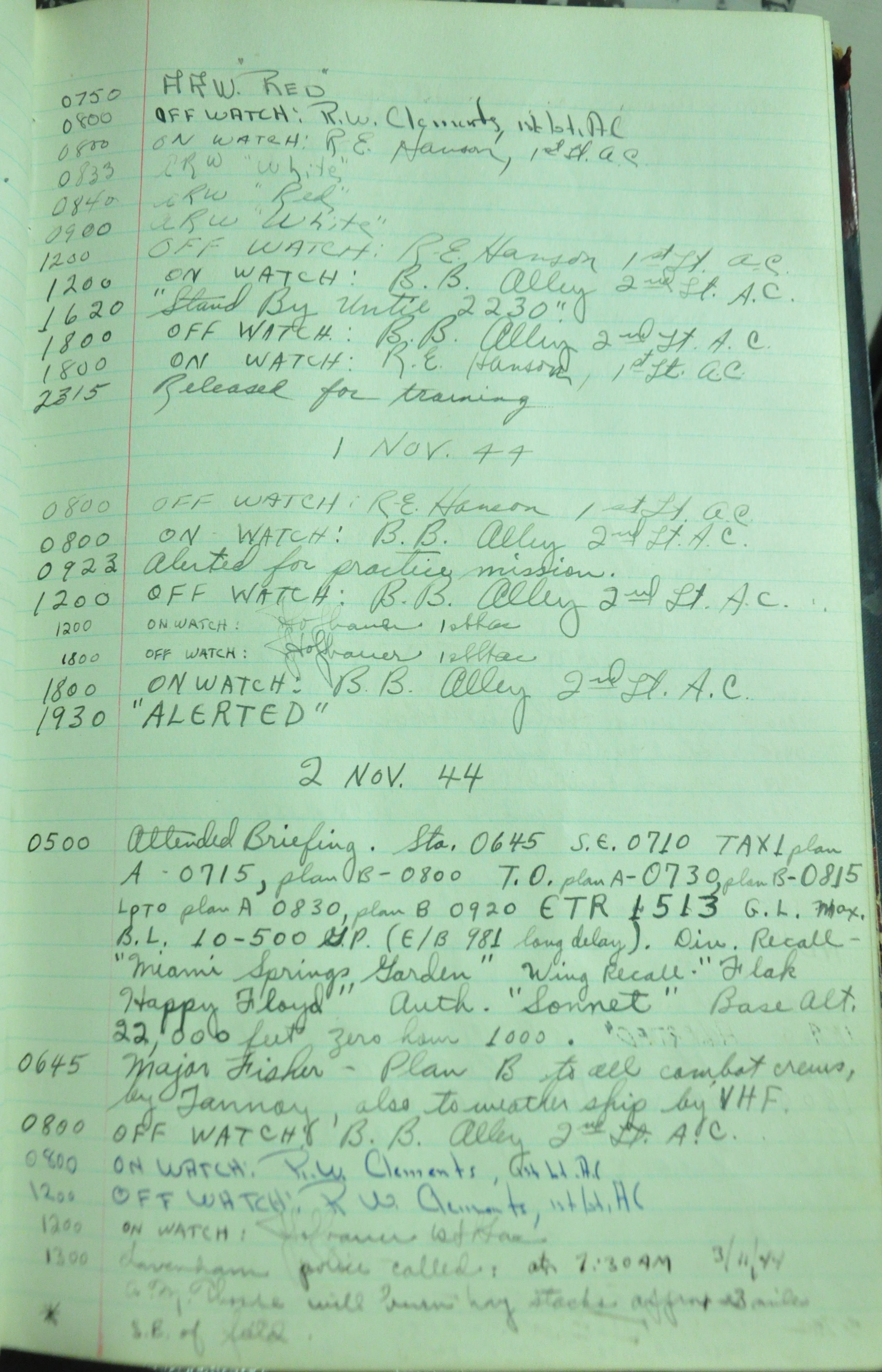 the pages of the 487th Tower Log book that is at the museum. It contains notes by the control tower officers relative to operations