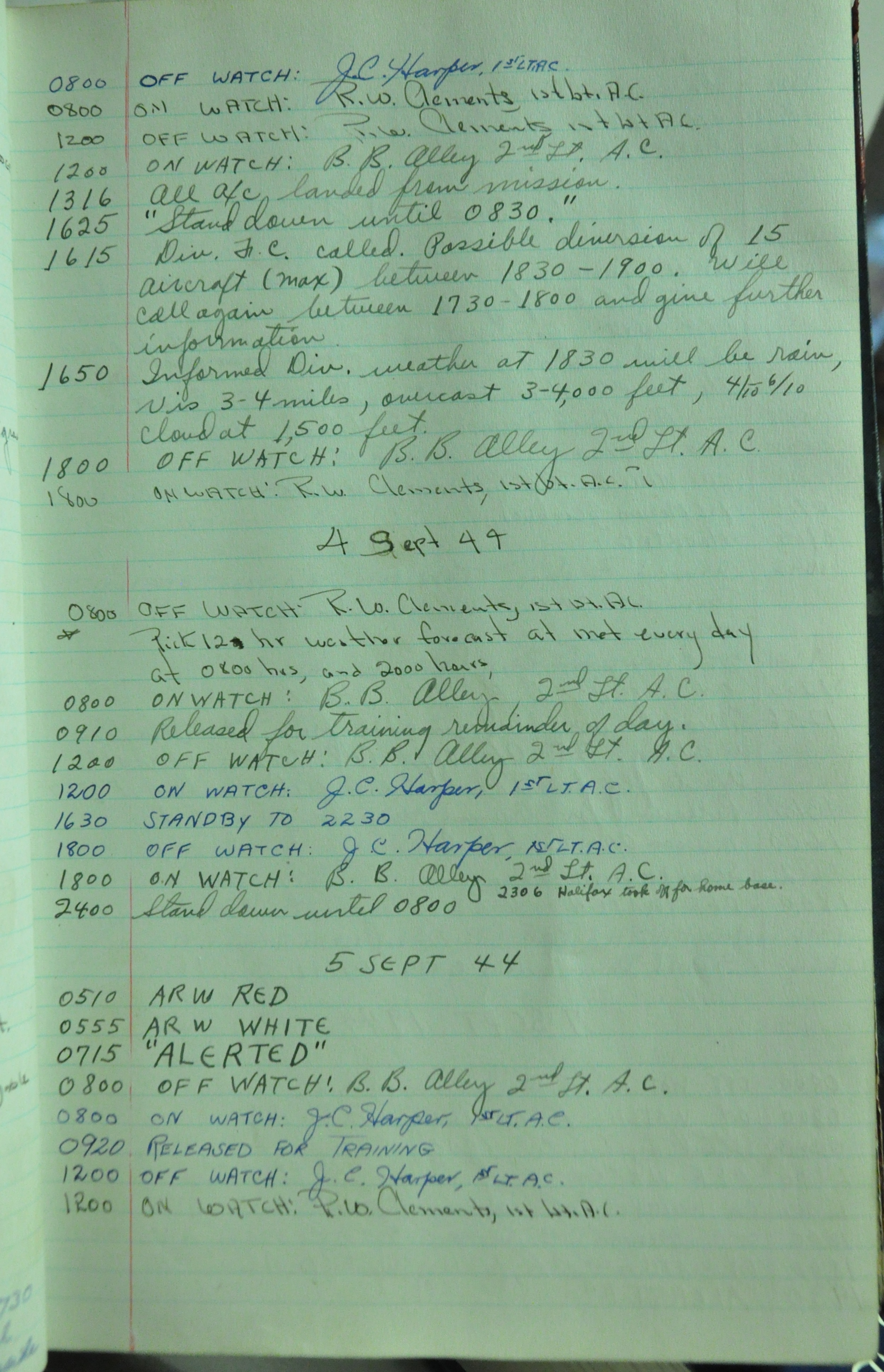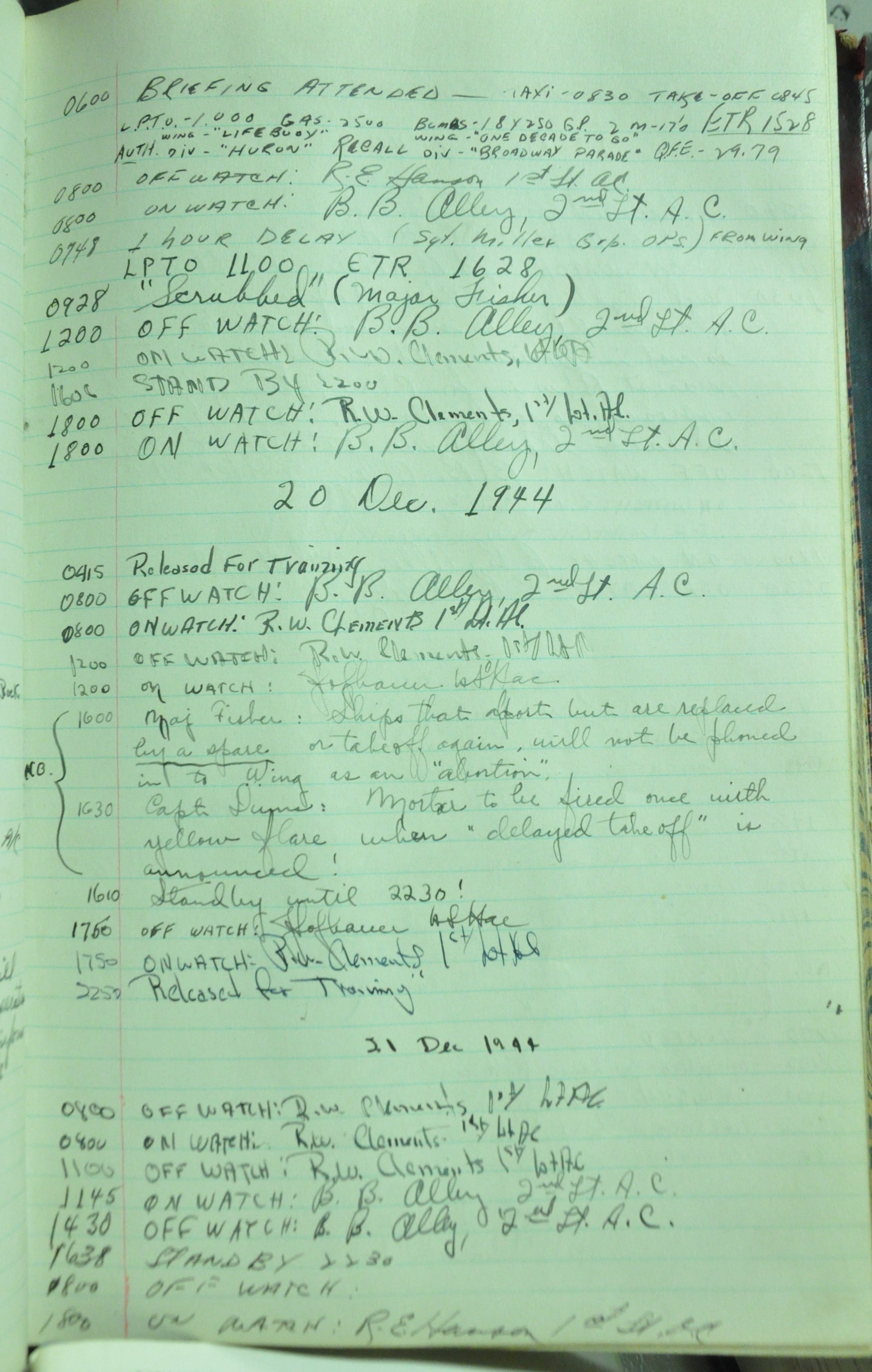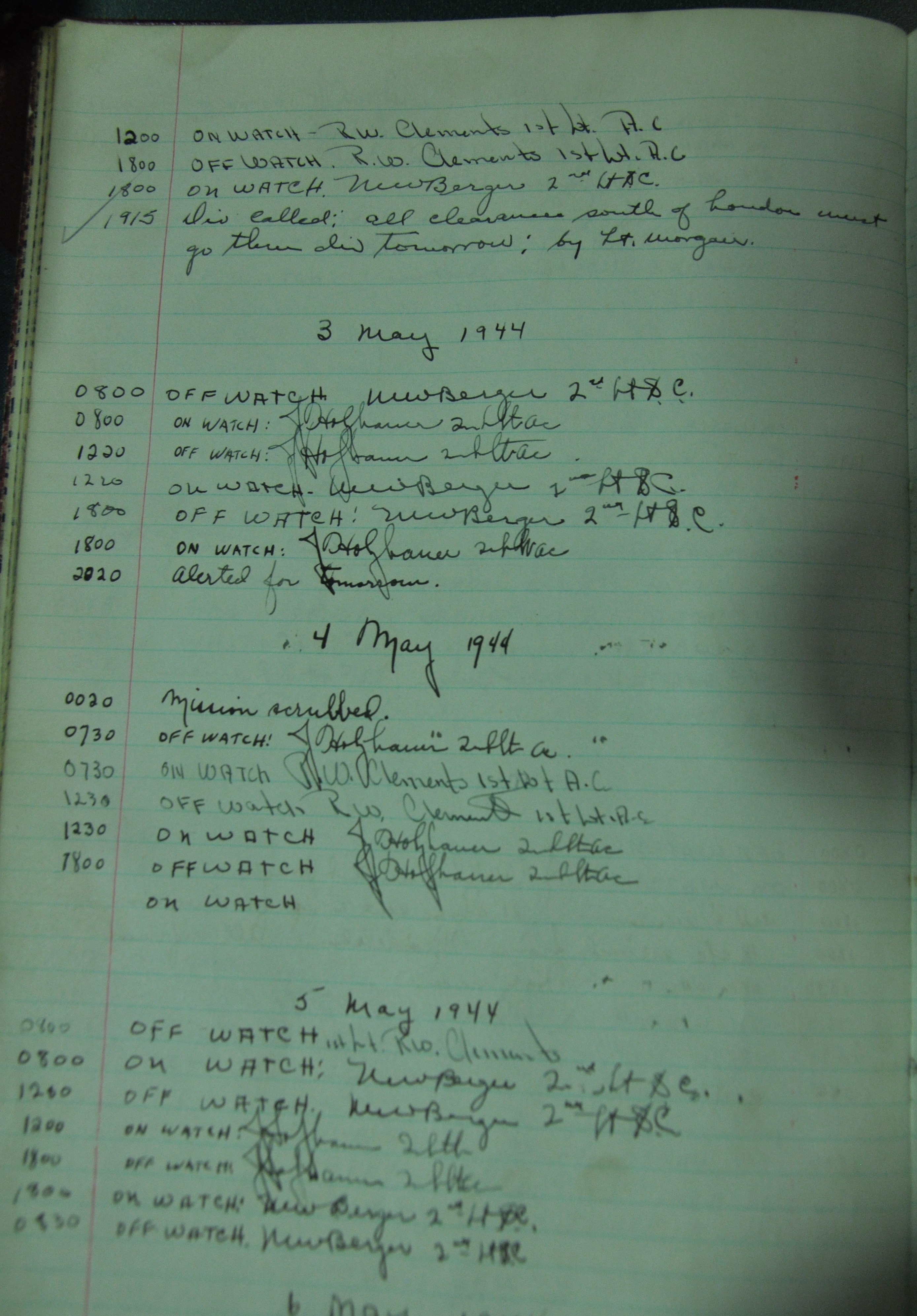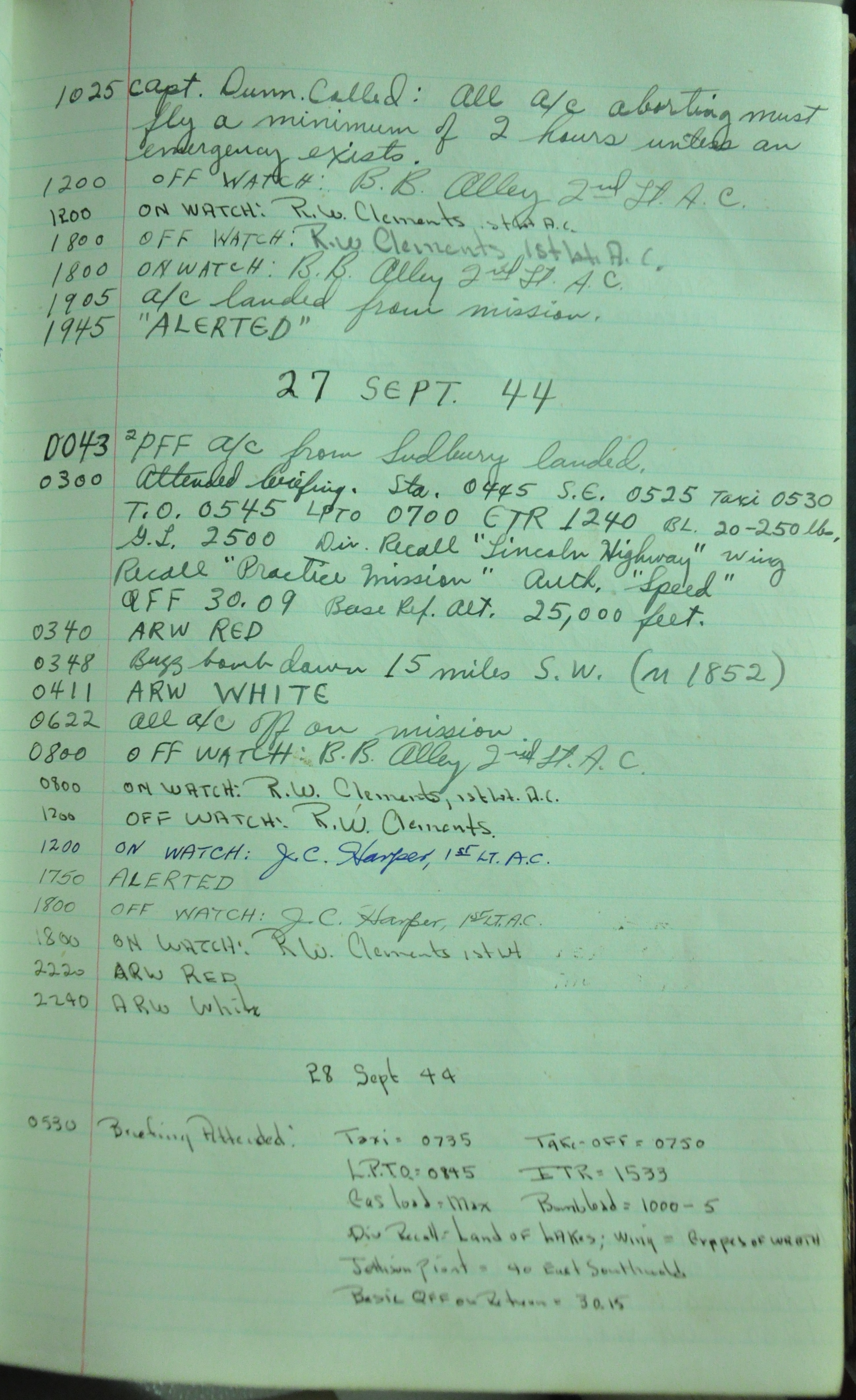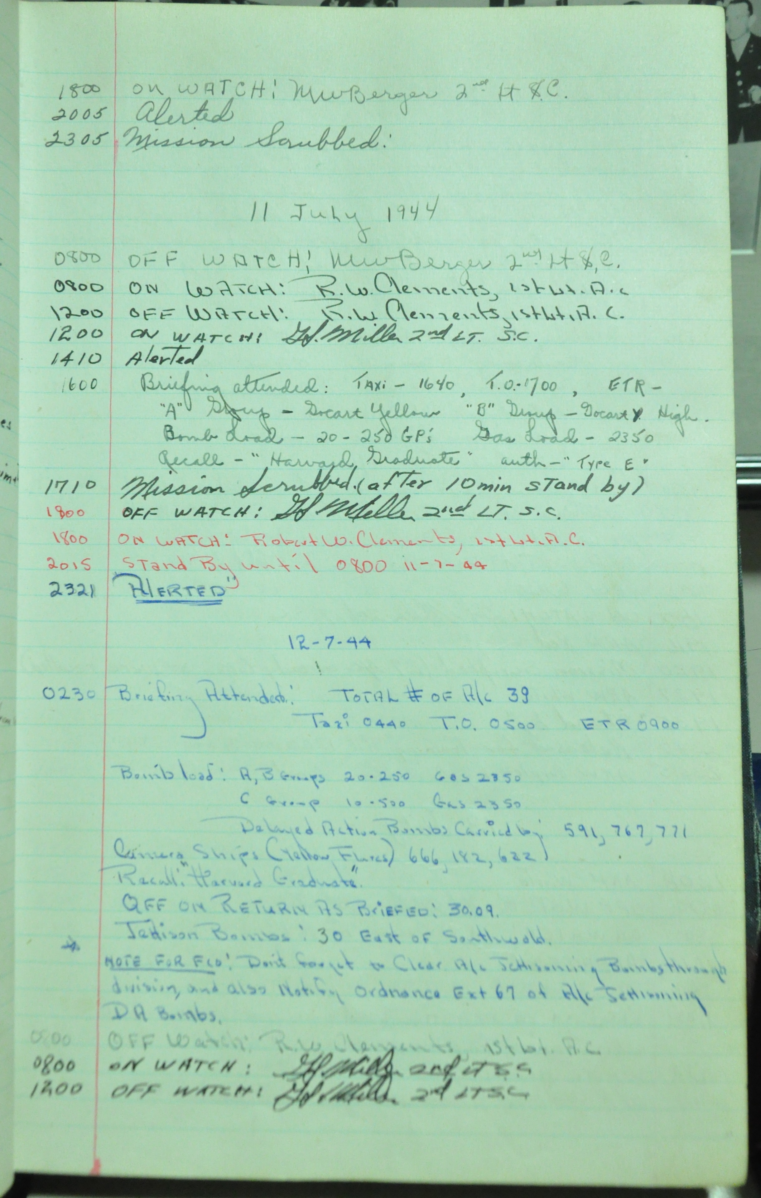the pages of the 487th Tower Log book that is at the museum. It contains notes by the control tower officers relative to operations