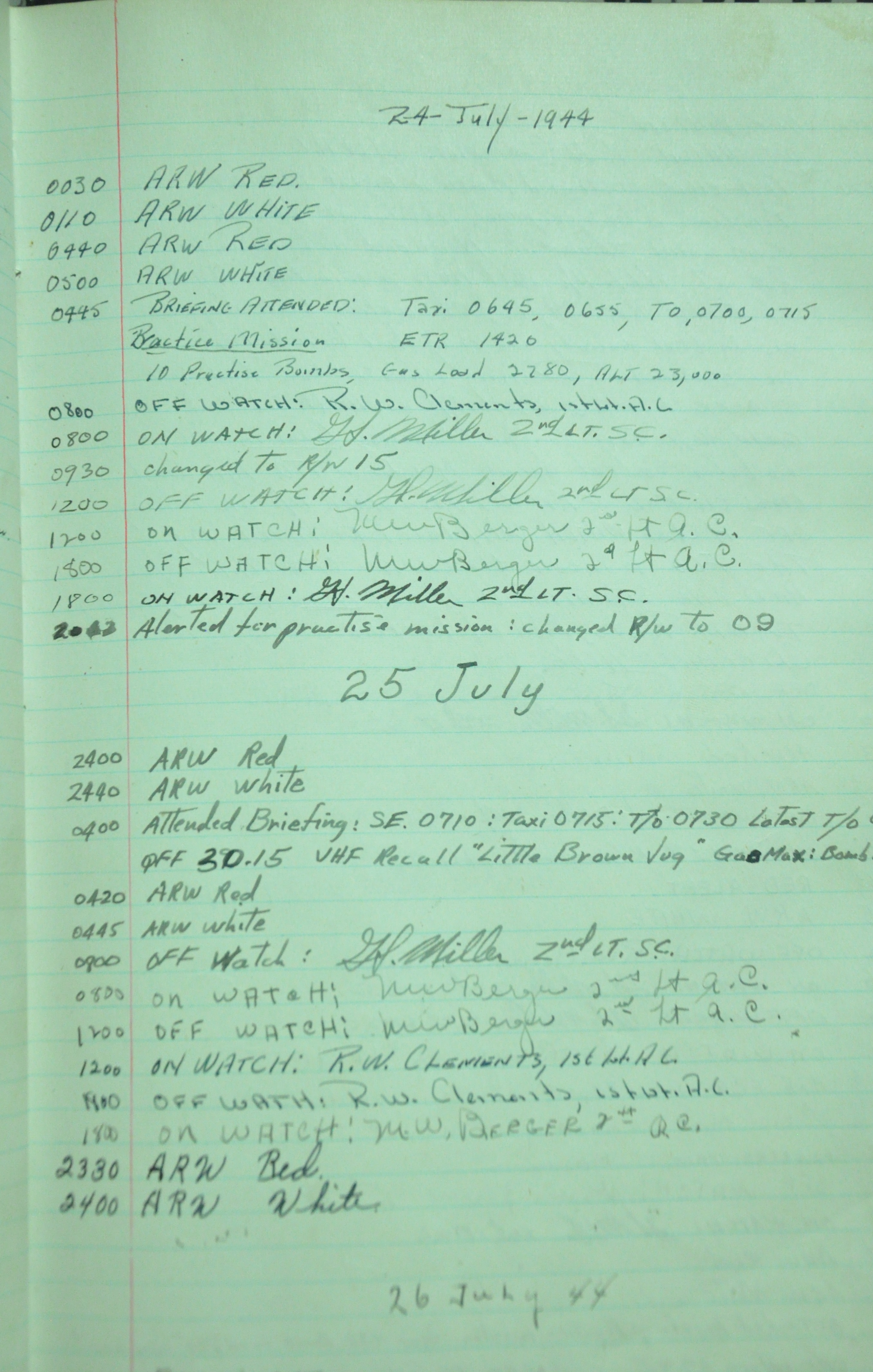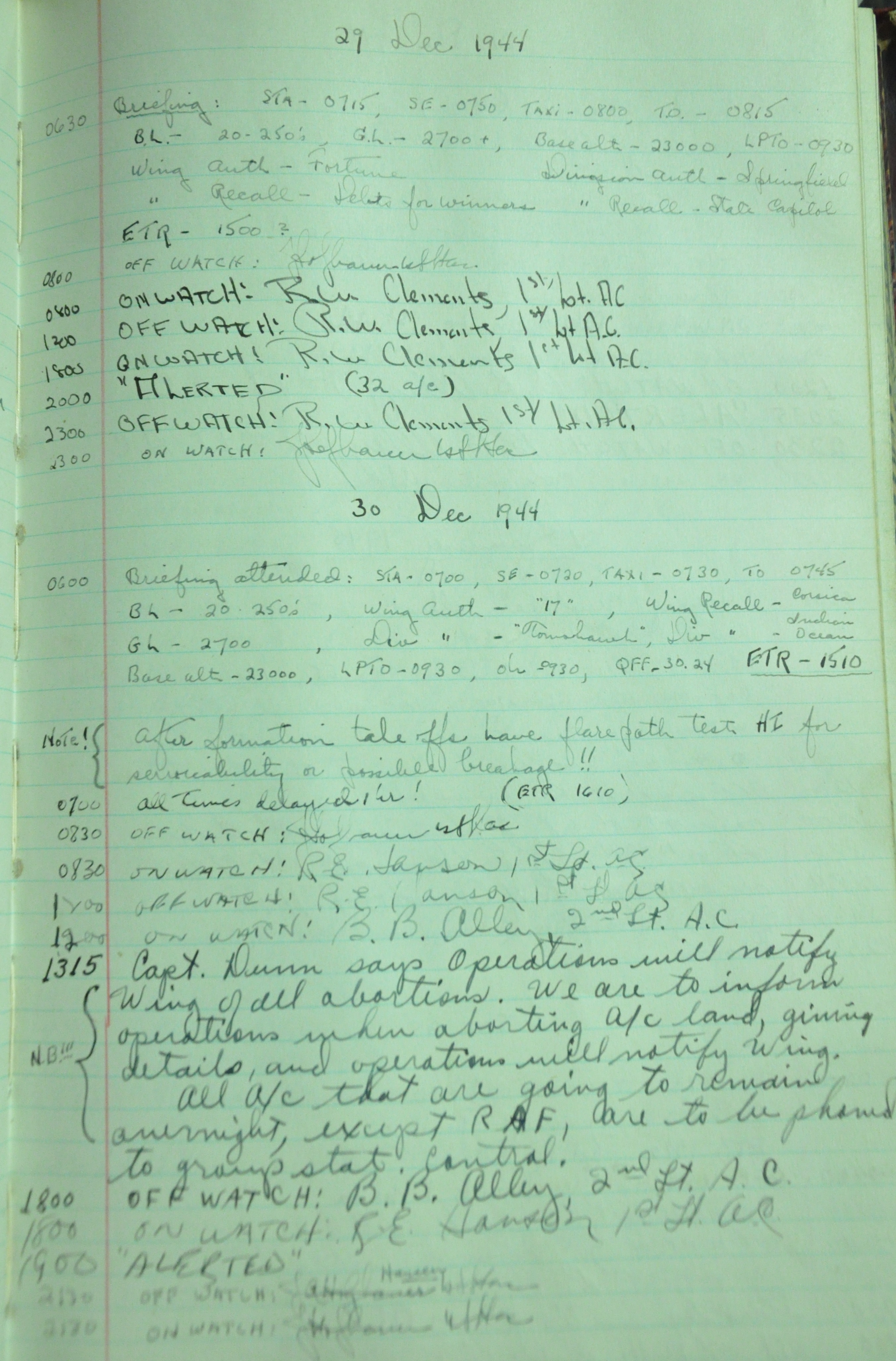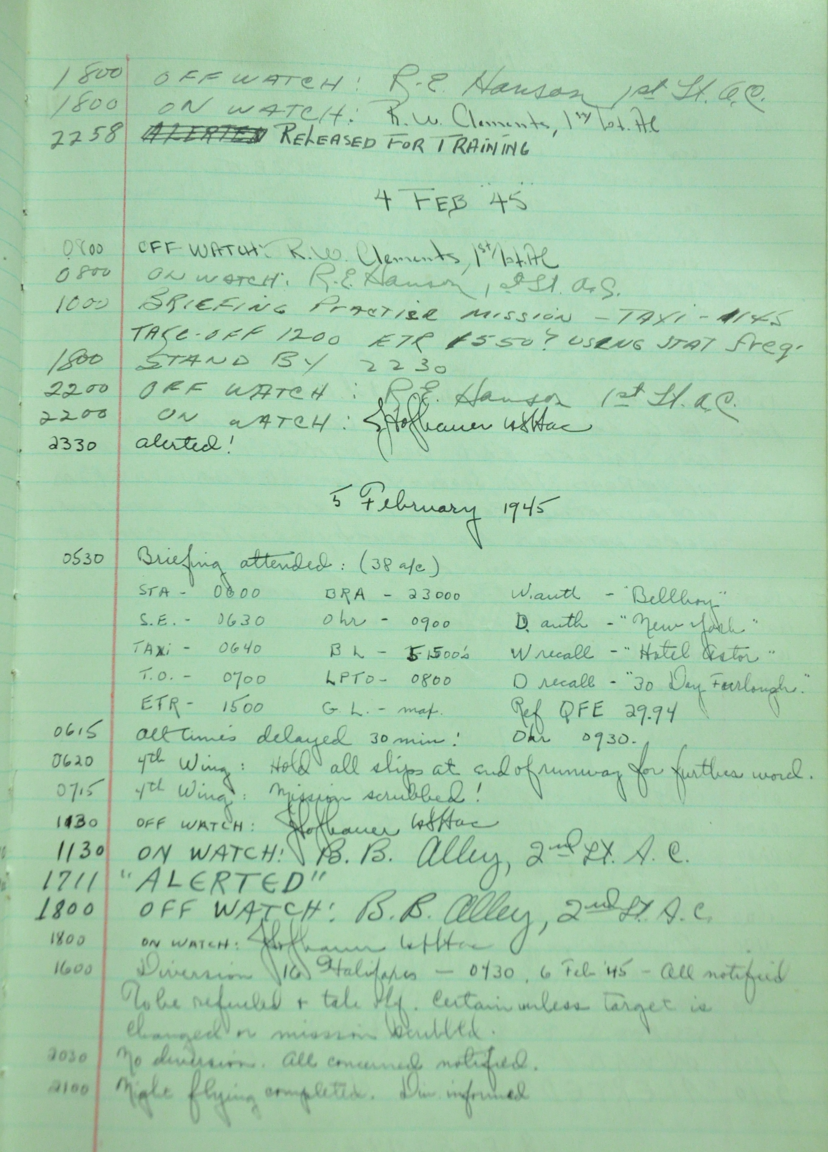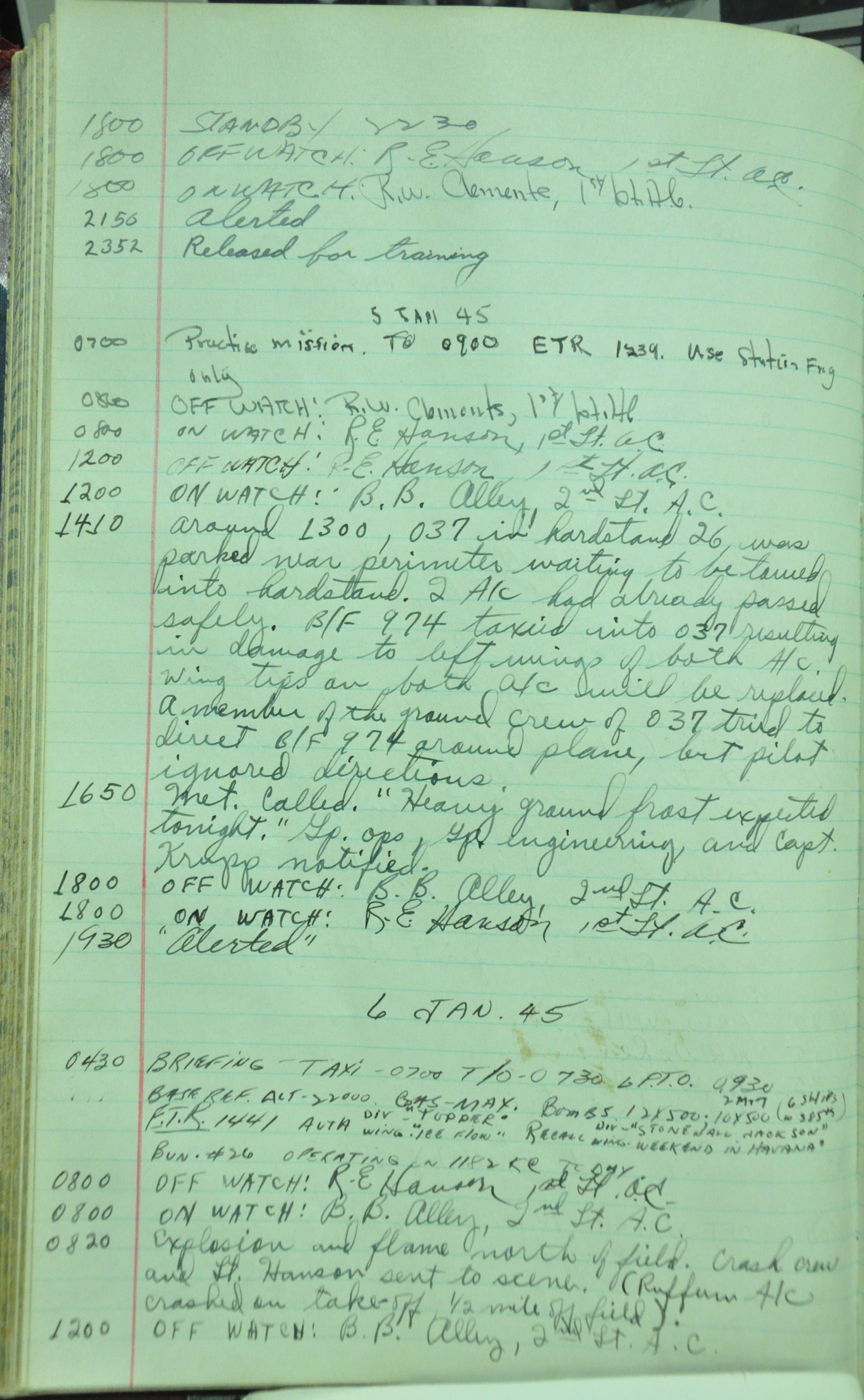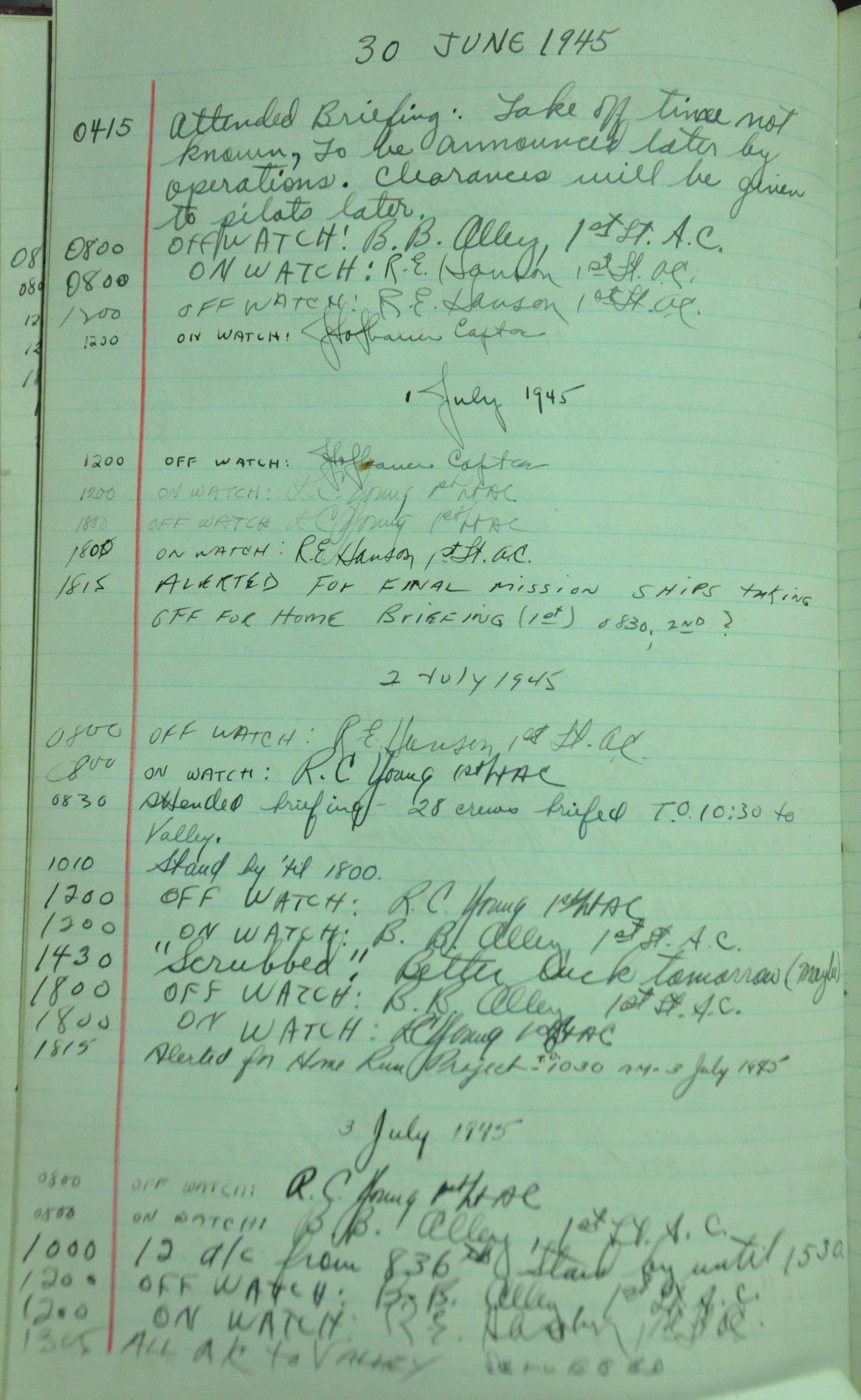the pages of the 487th Tower Log book that is at the museum. It contains notes by the control tower officers relative to operations