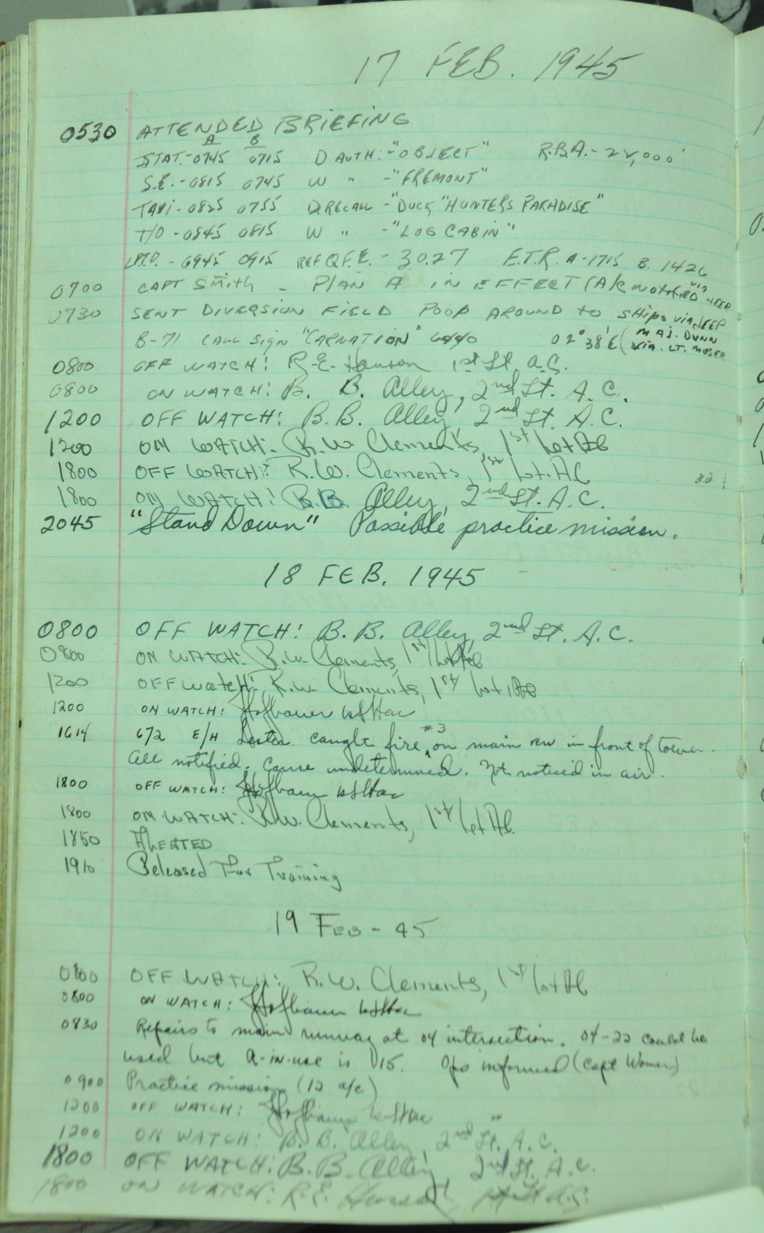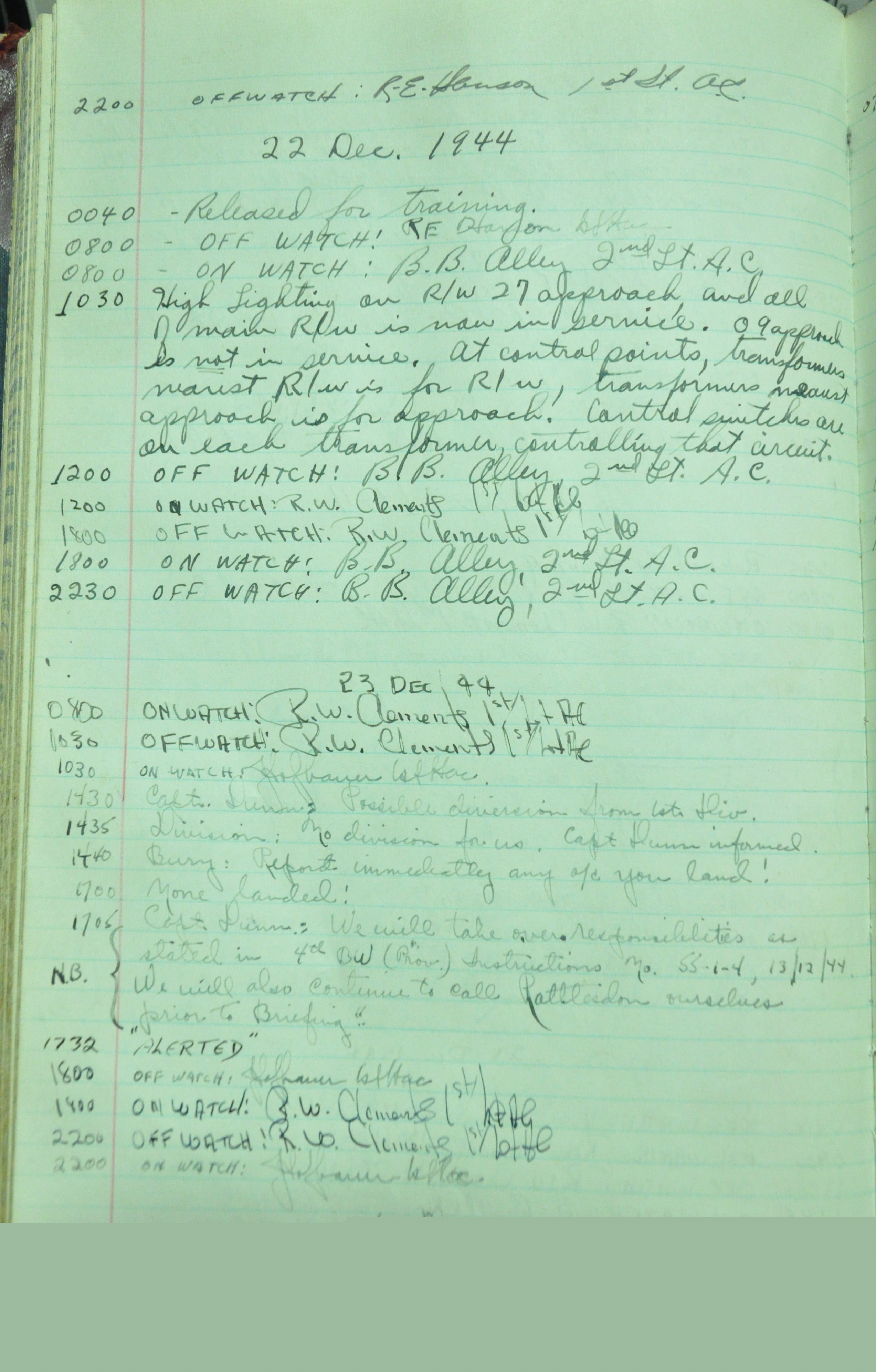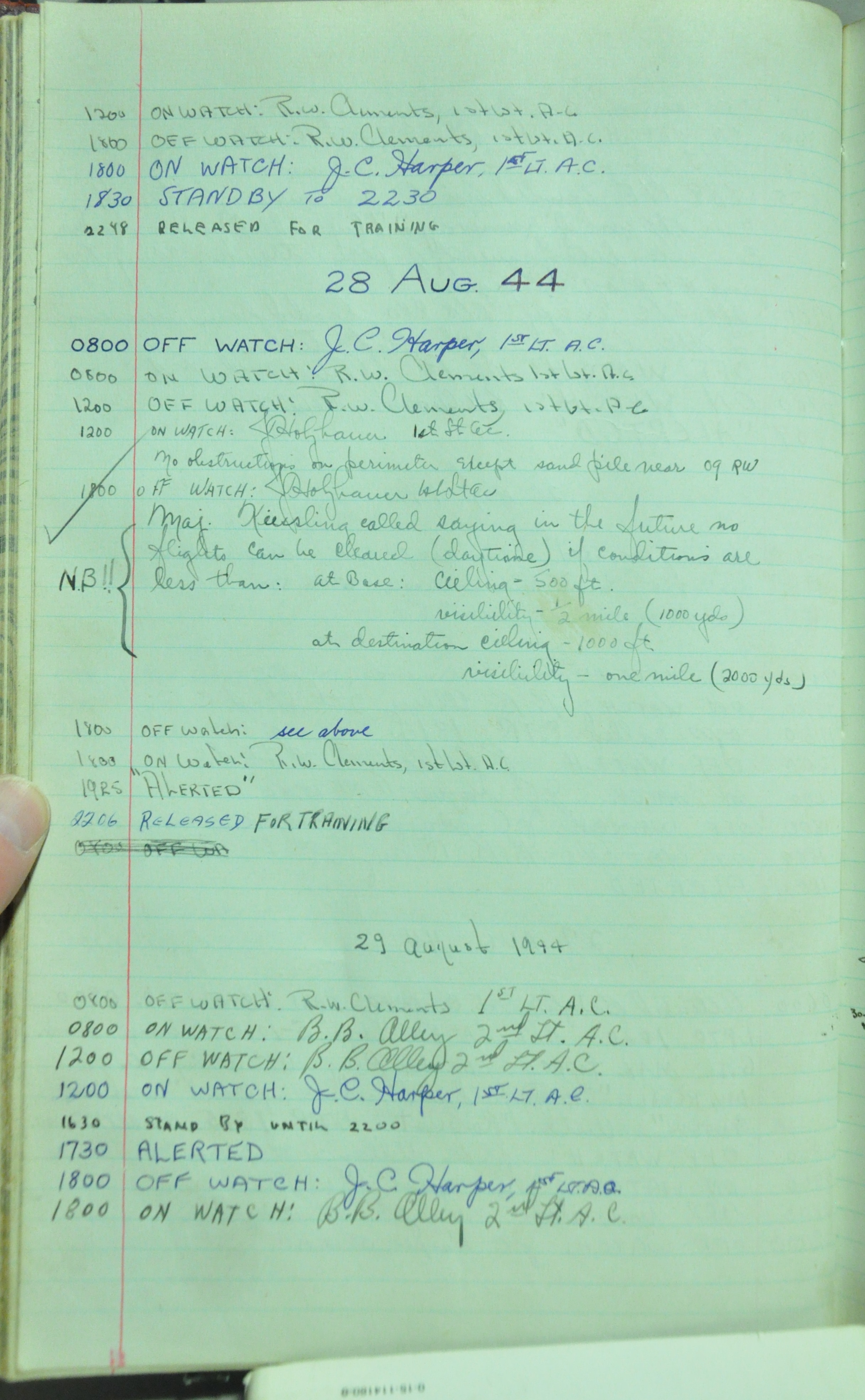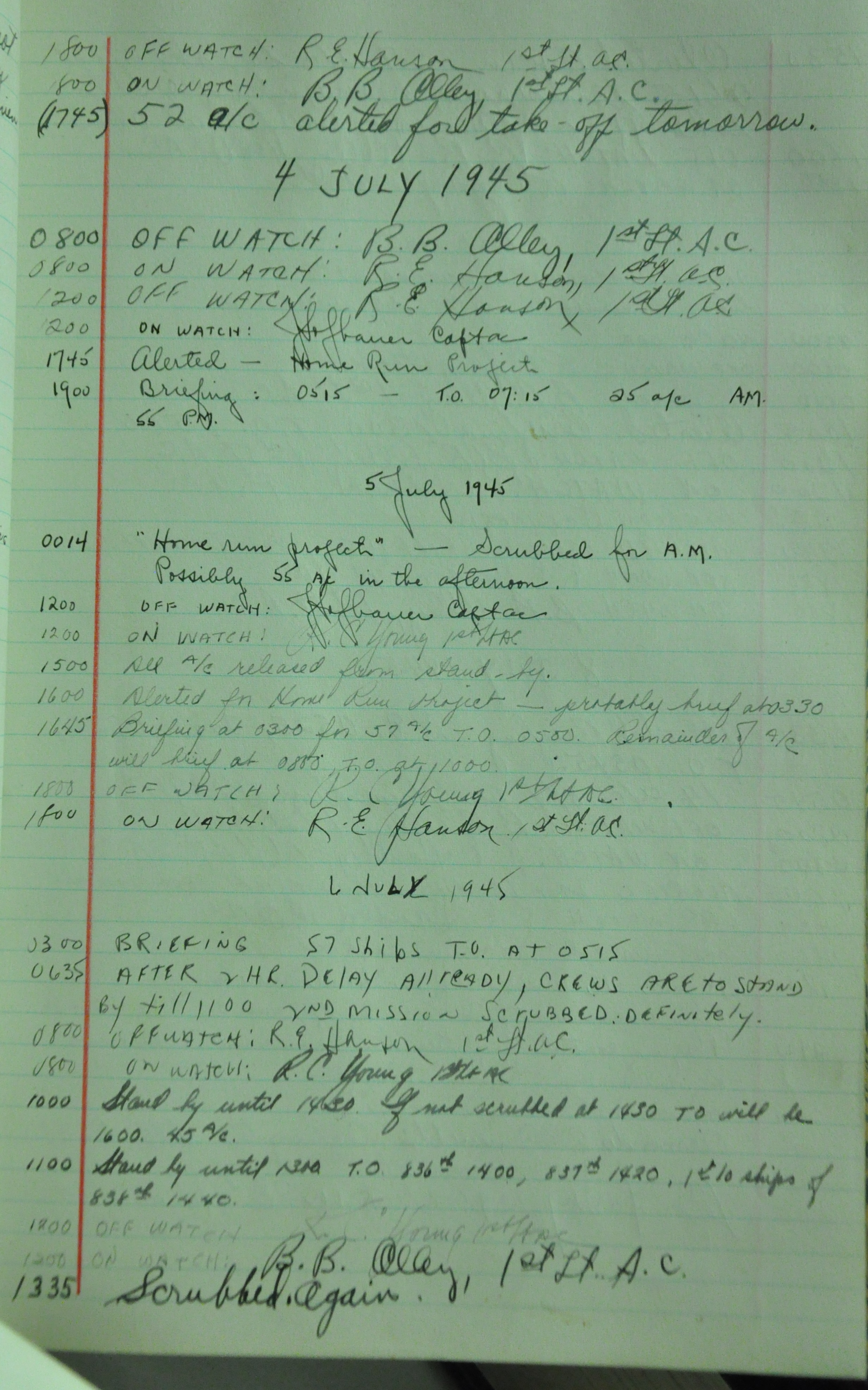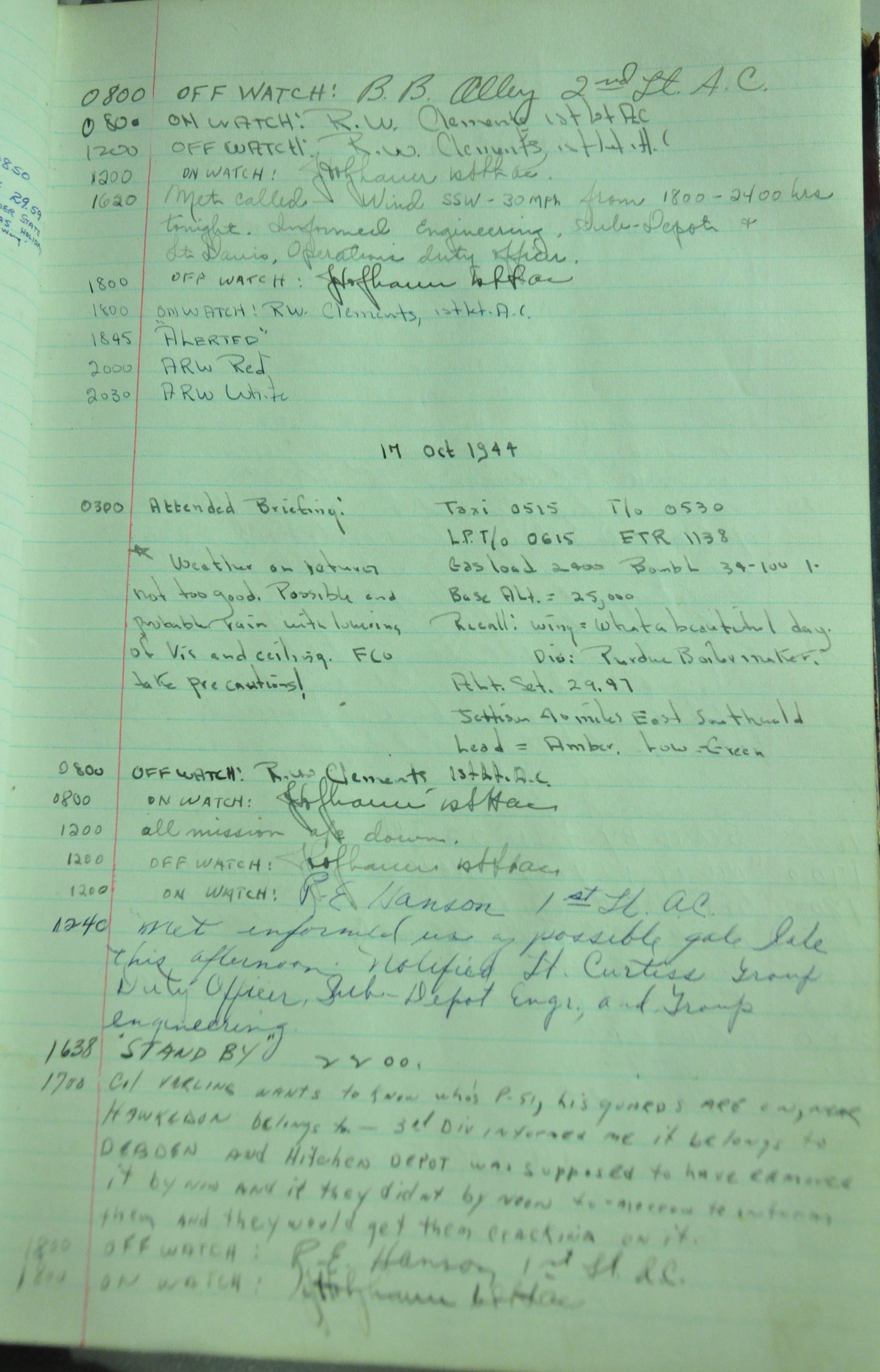 the pages of the 487th Tower Log book that is at the museum. It contains notes by the control tower officers relative to operations