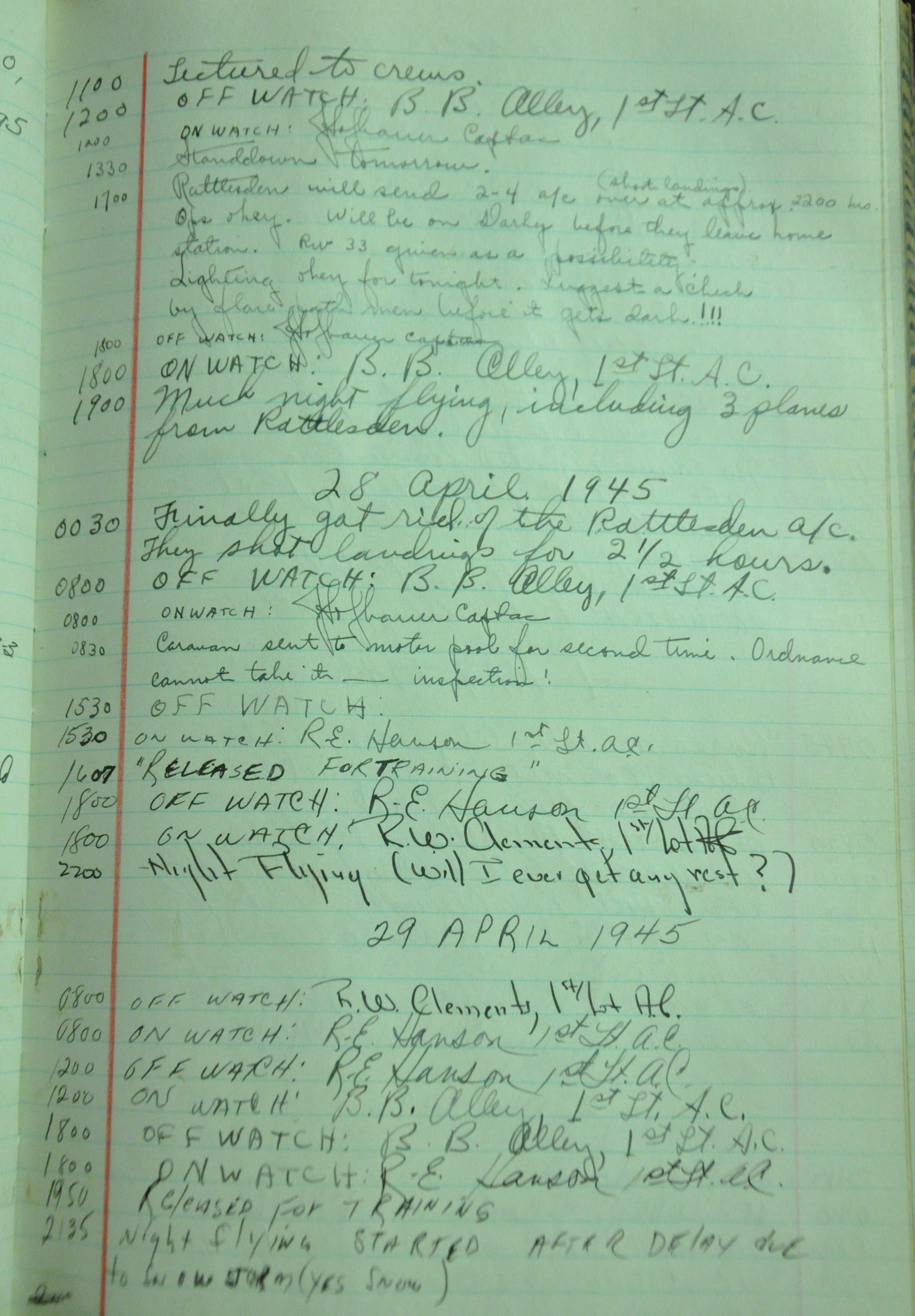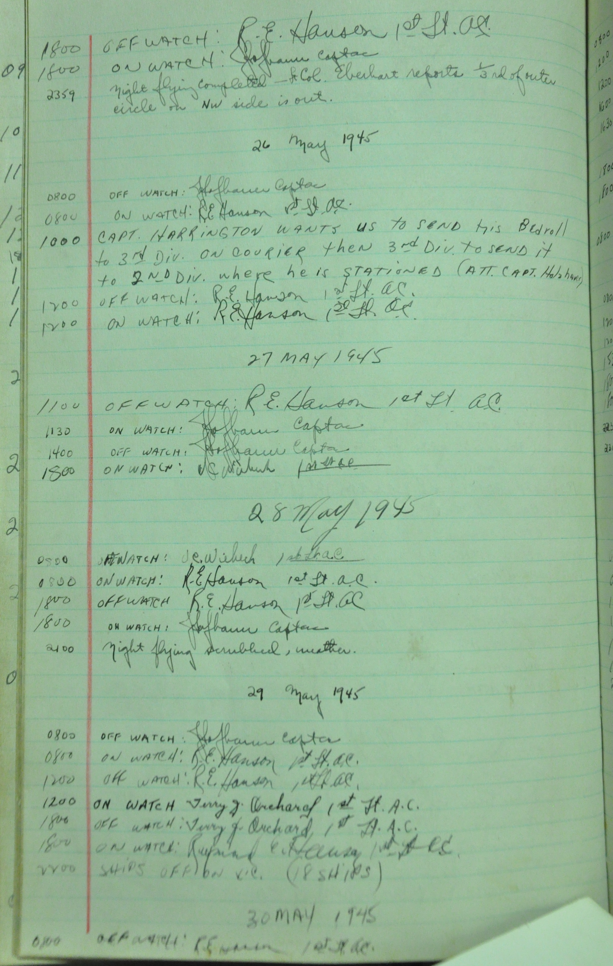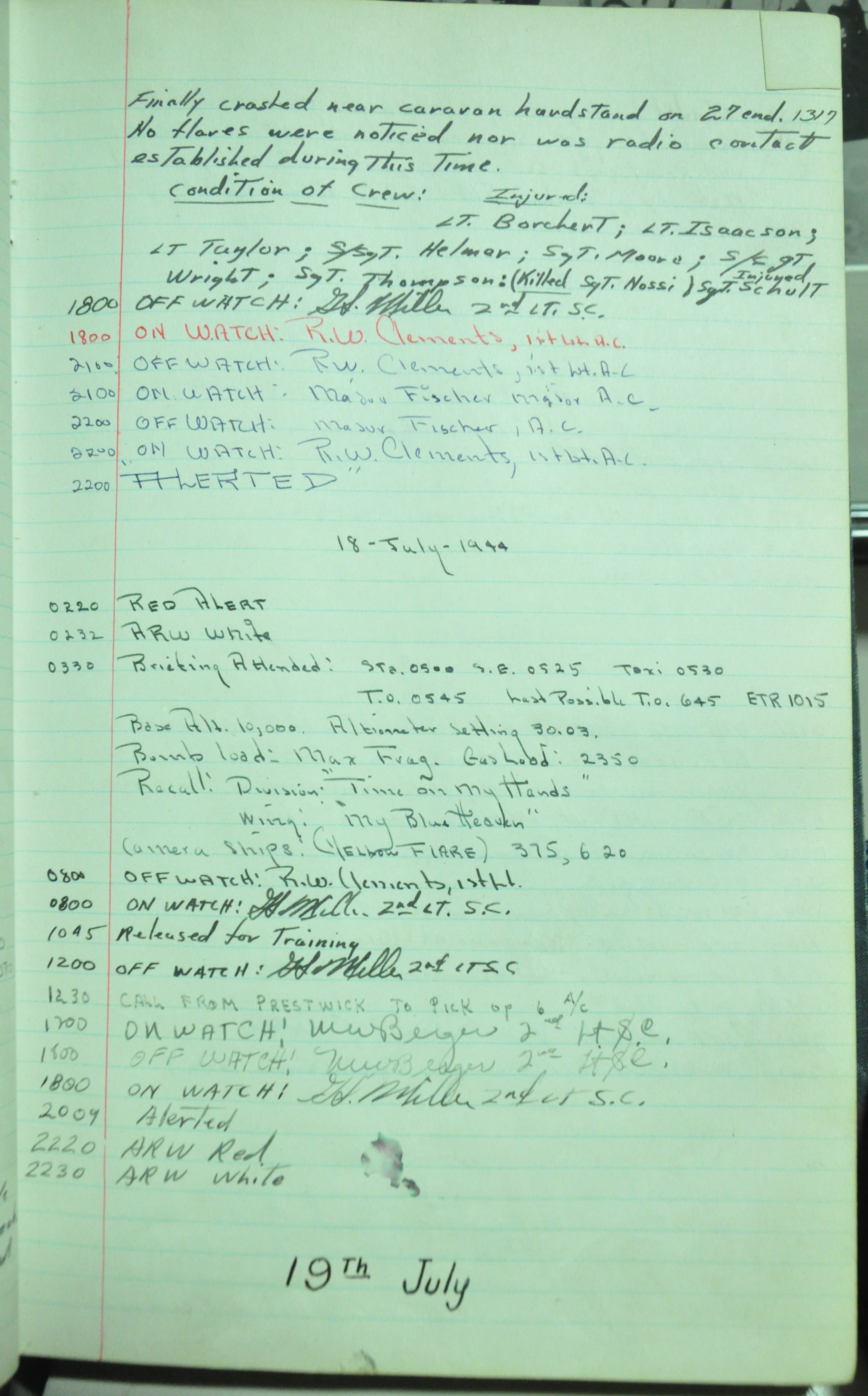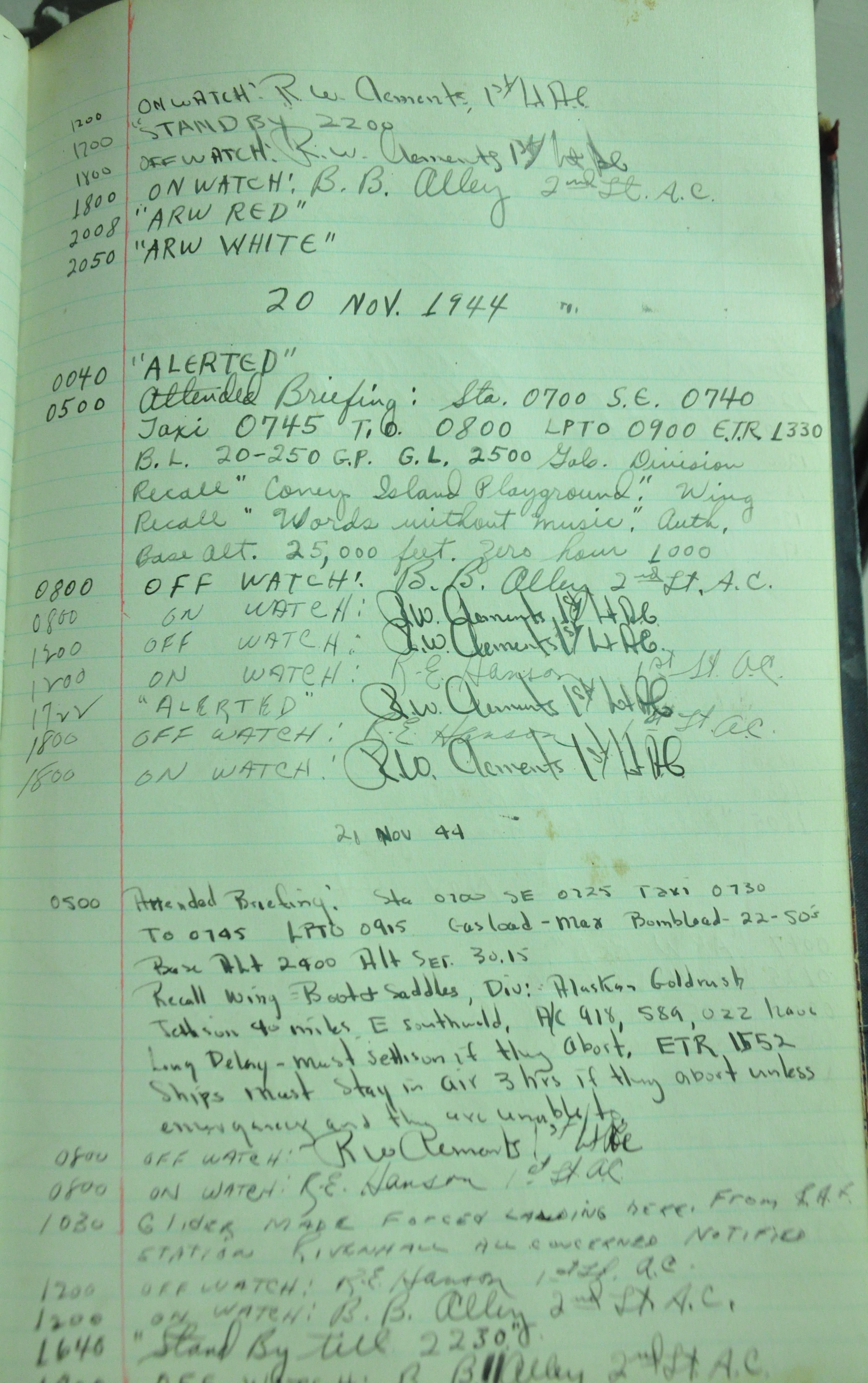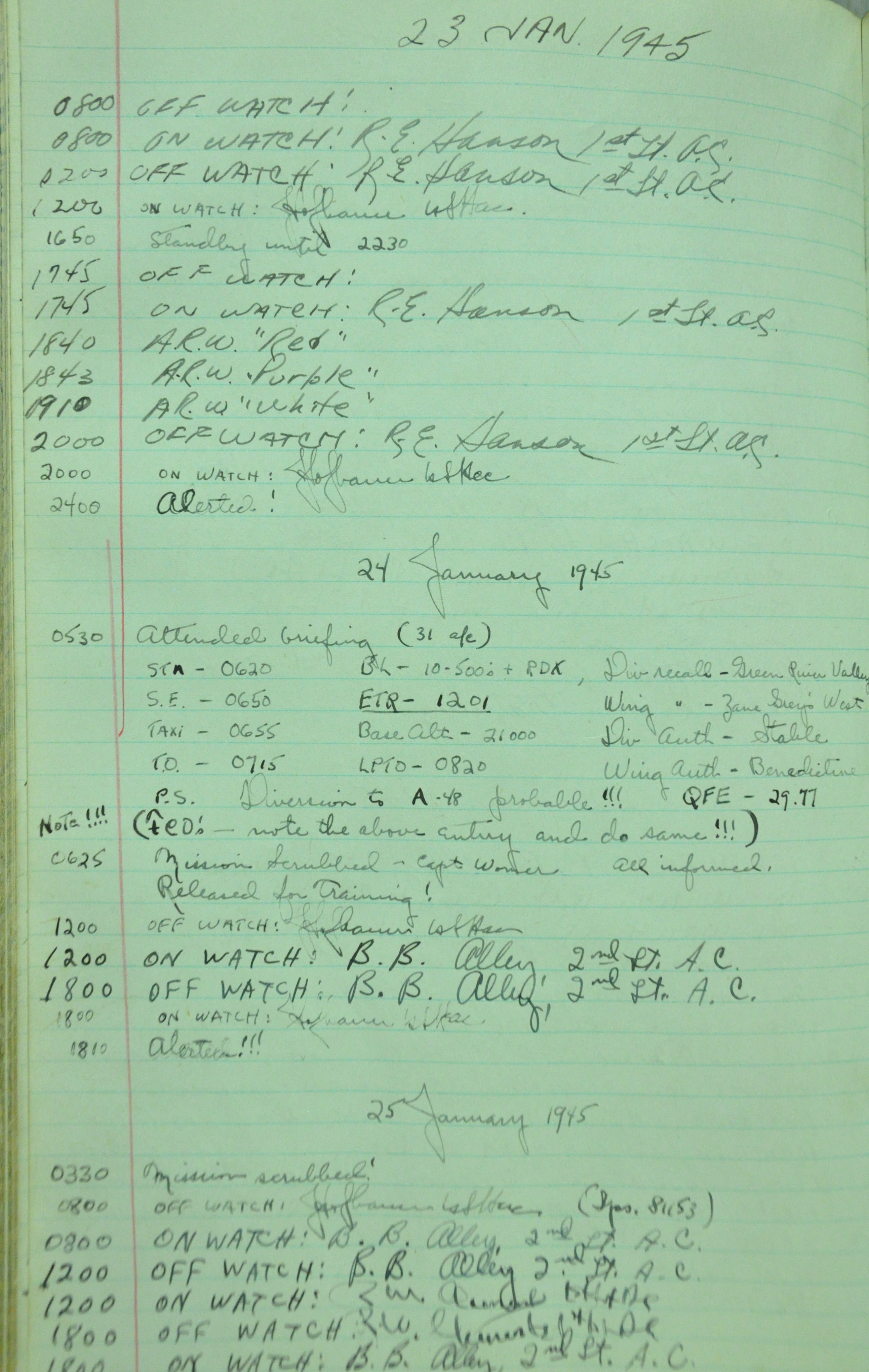 the pages of the 487th Tower Log book that is at the museum. It contains notes by the control tower officers relative to operations