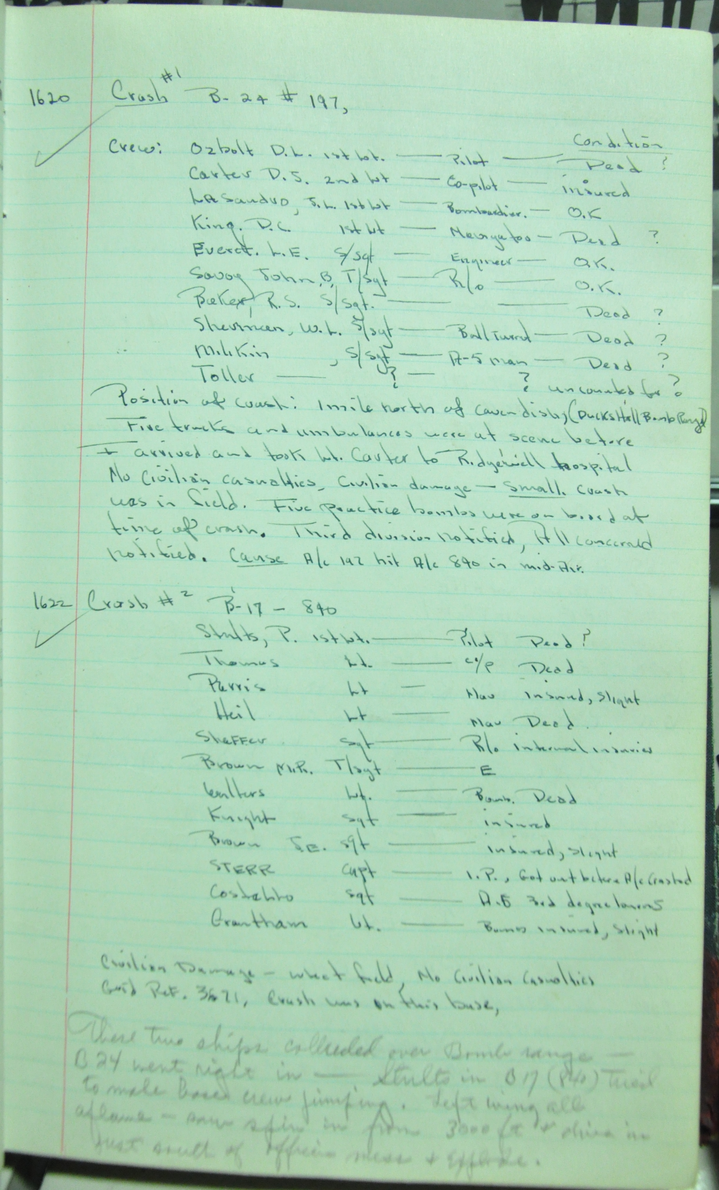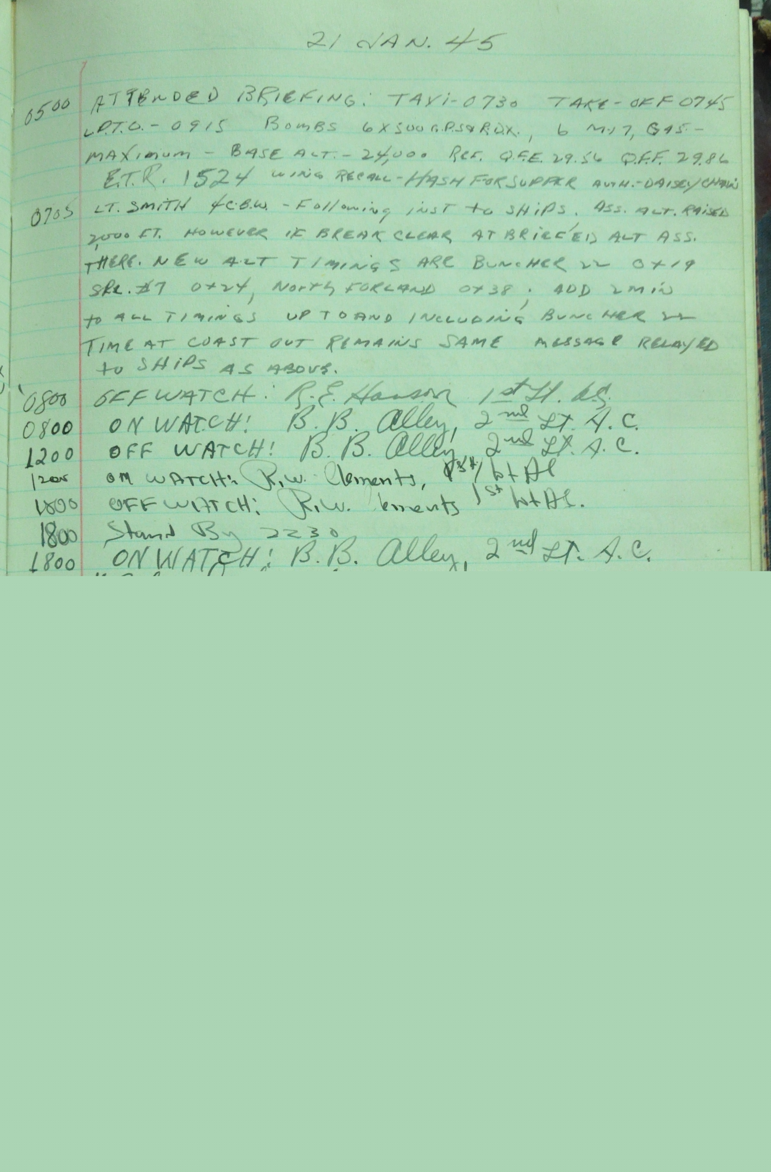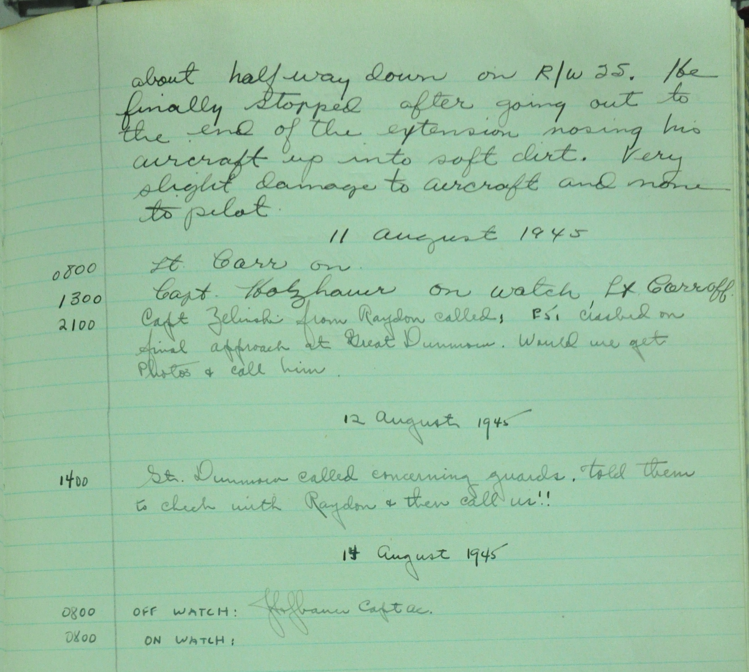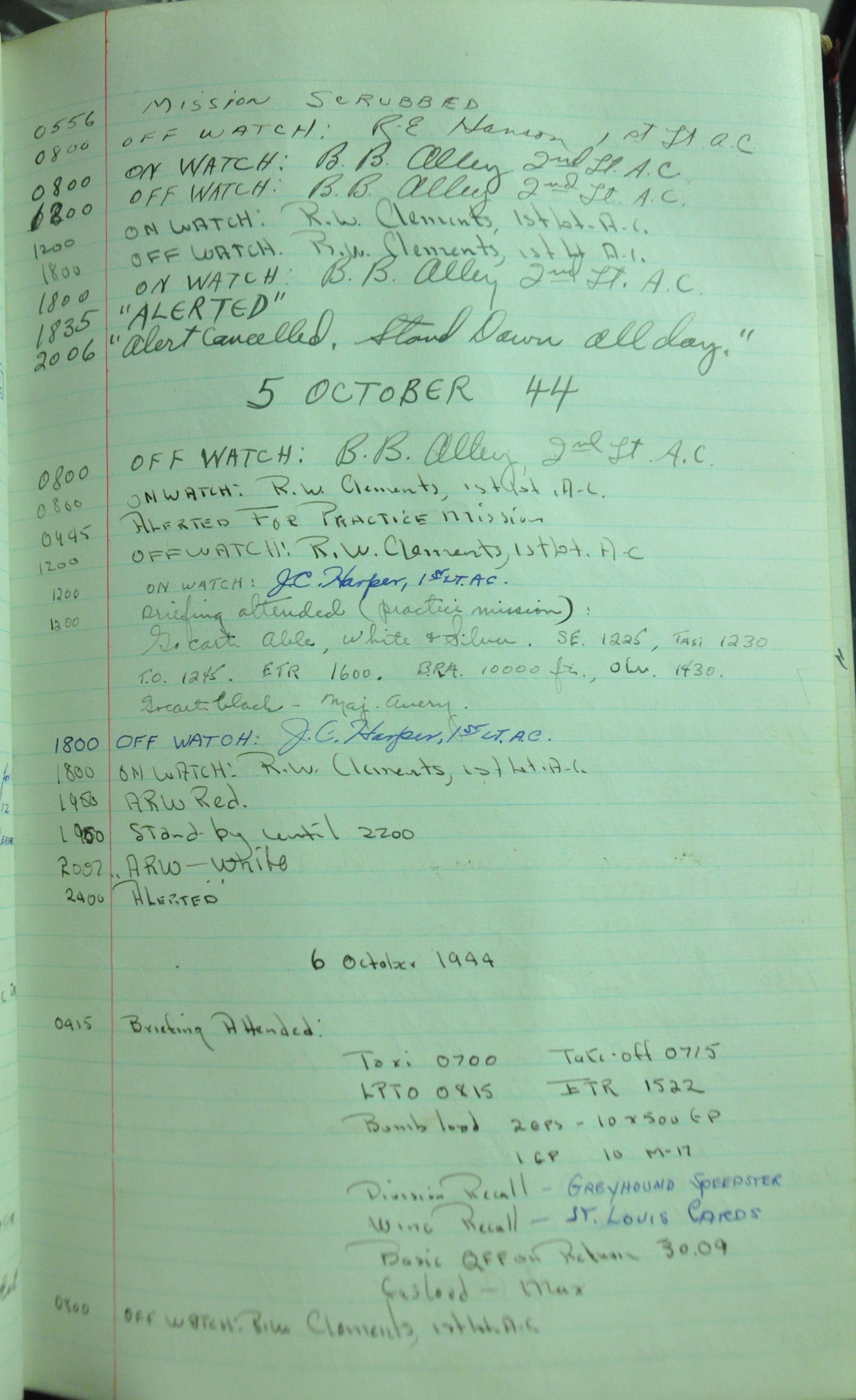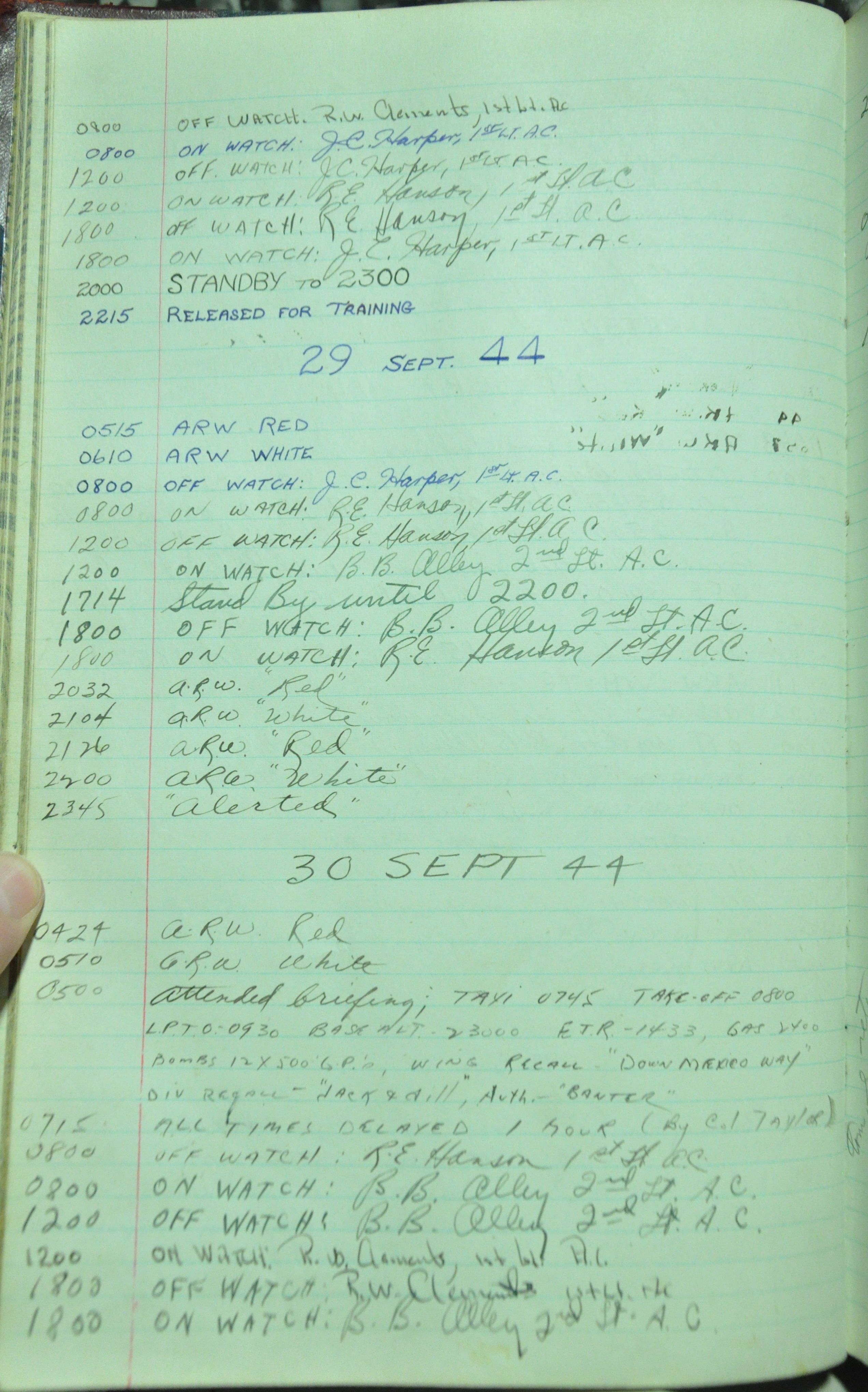 the pages of the 487th Tower Log book that is at the museum. It contains notes by the control tower officers relative to operations