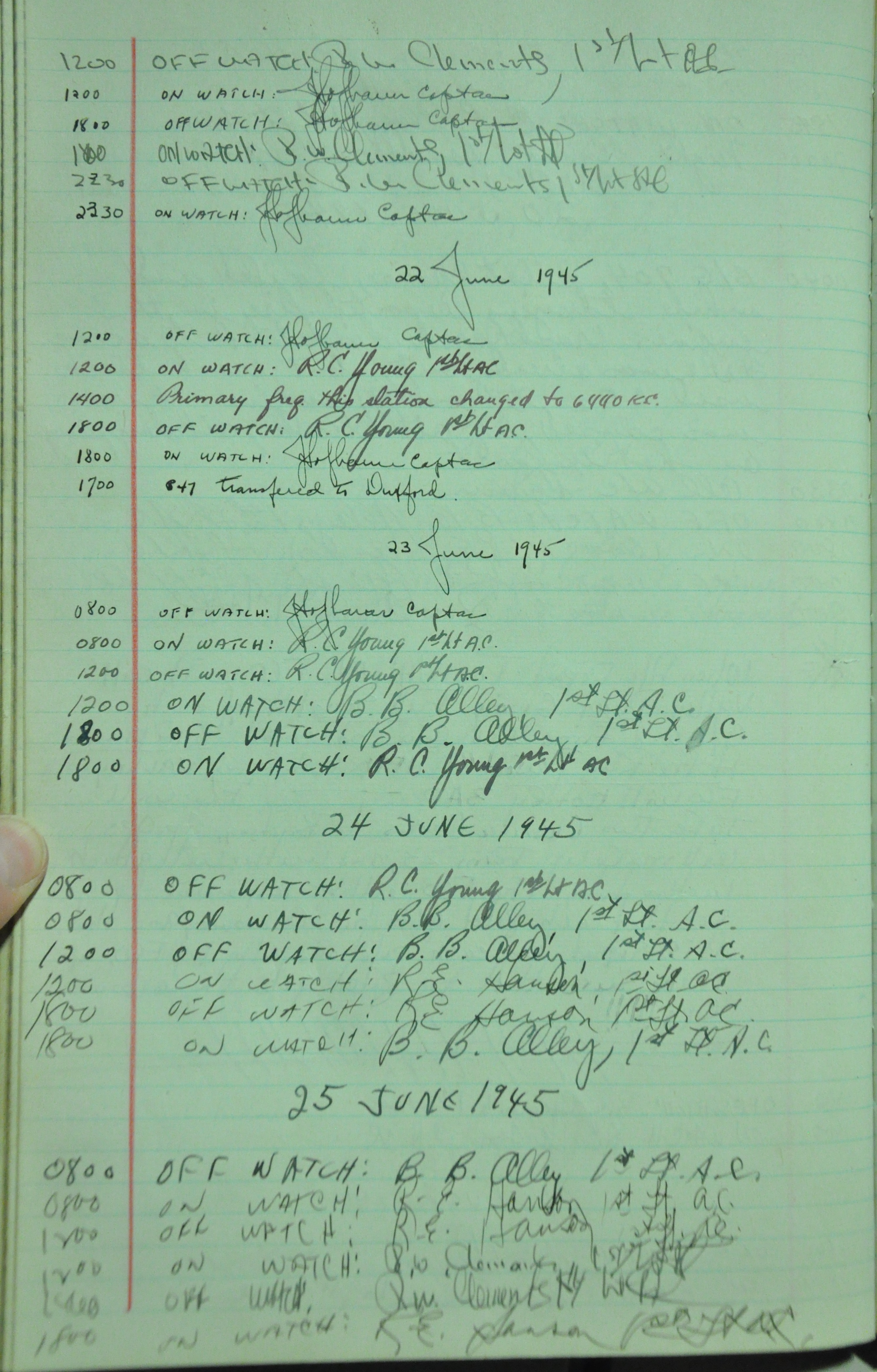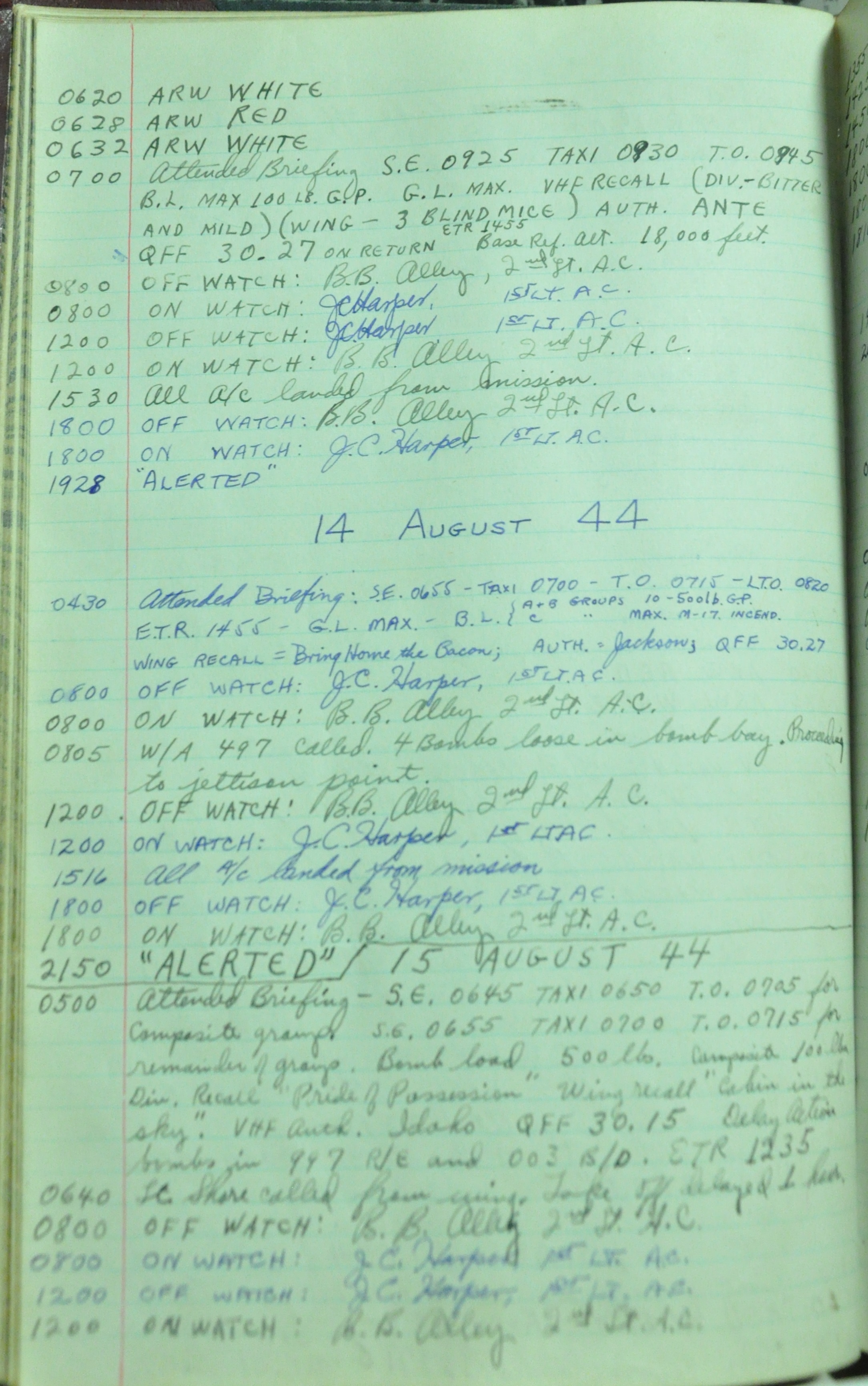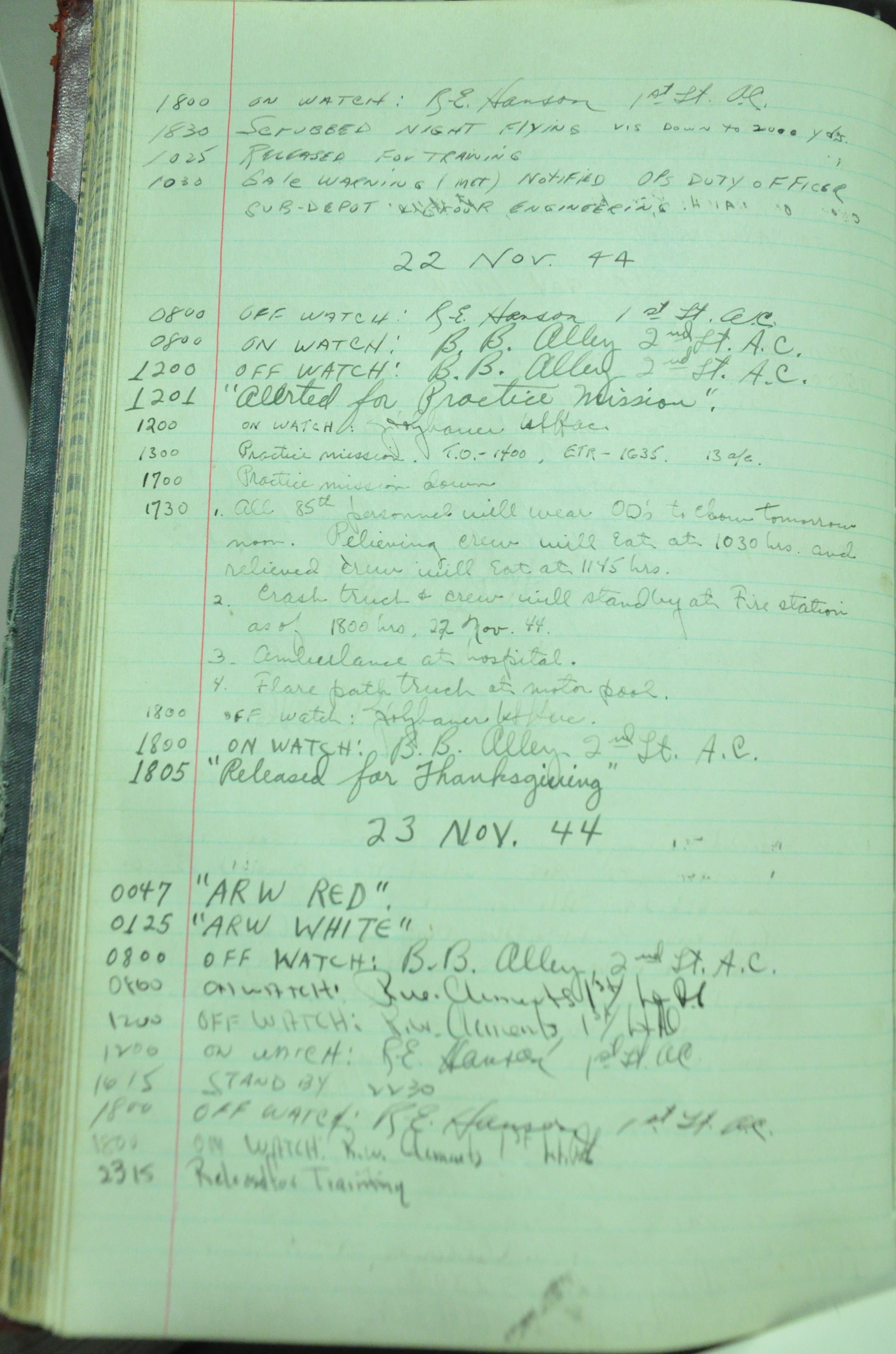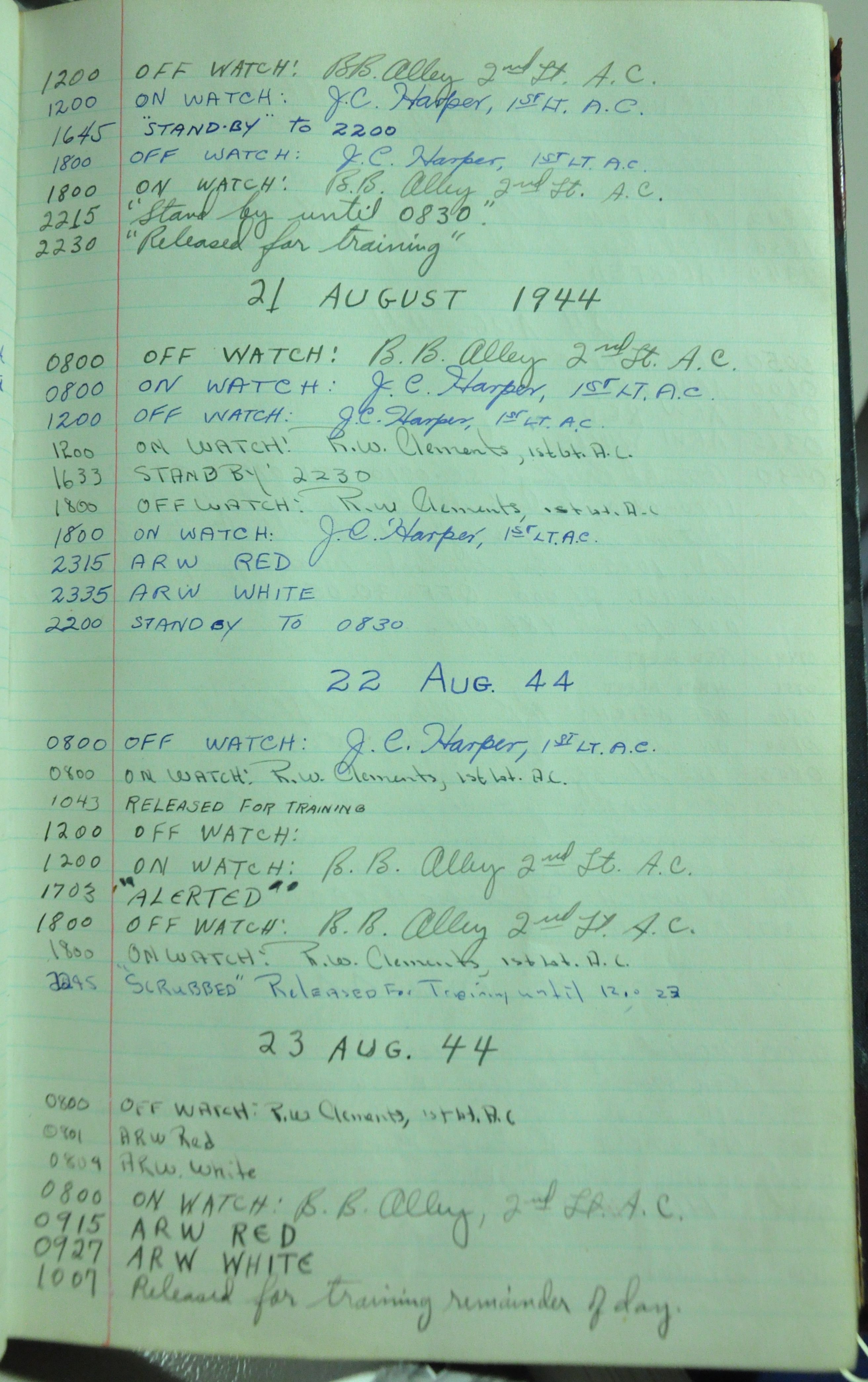 from 12-Apr-1944 to 22-Aug-1945. Later the log book was used at some reunions to record those who attended reunion events.