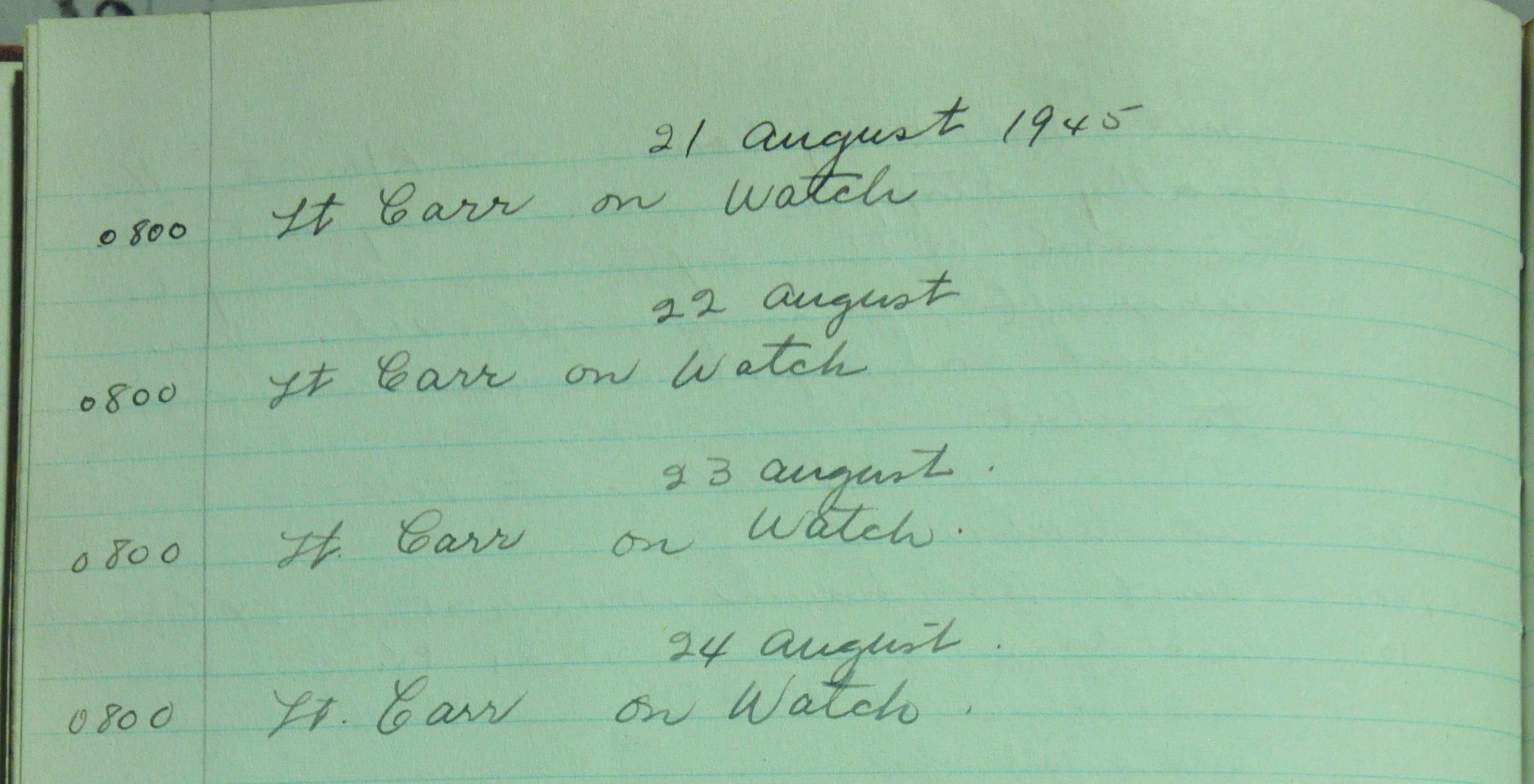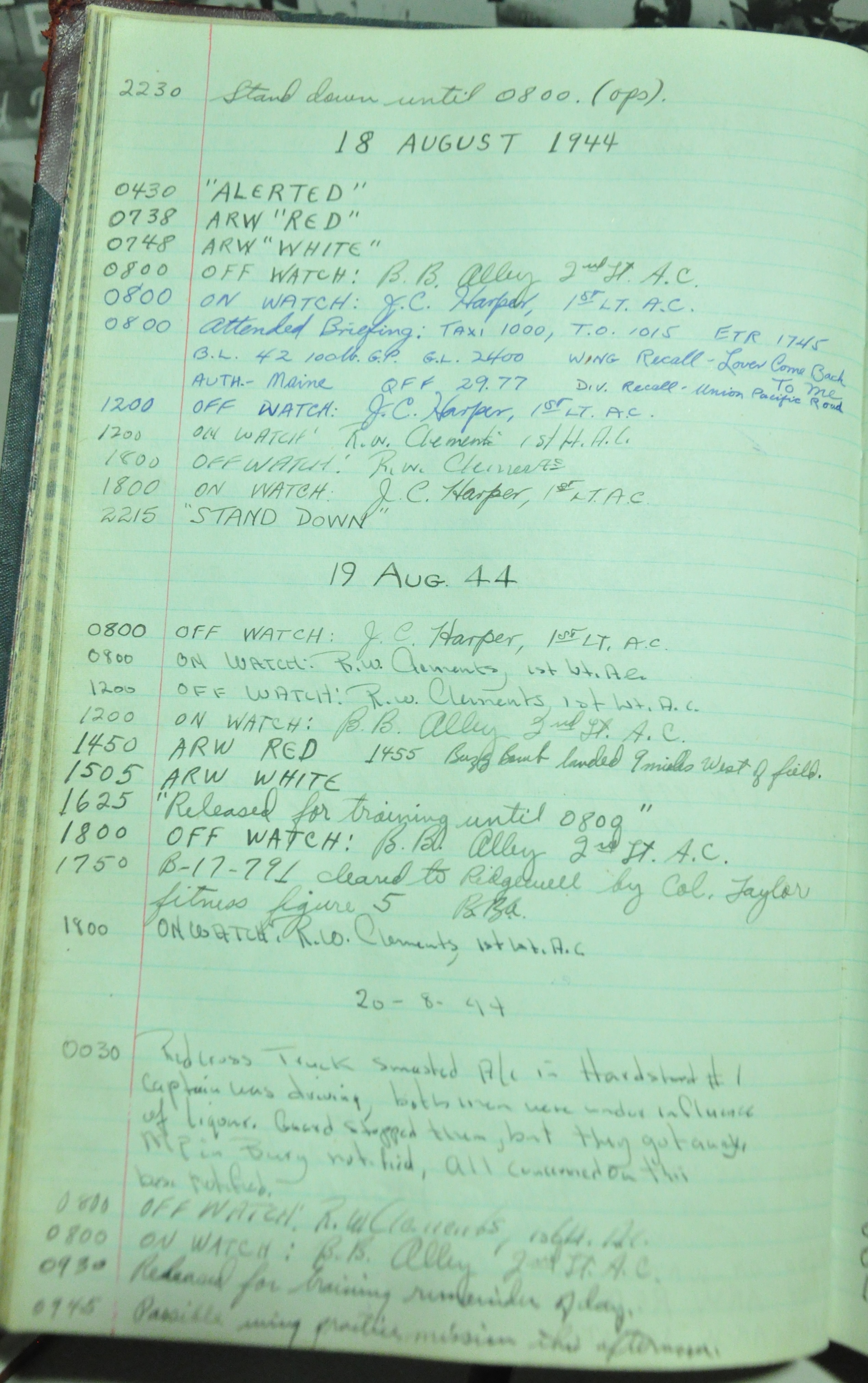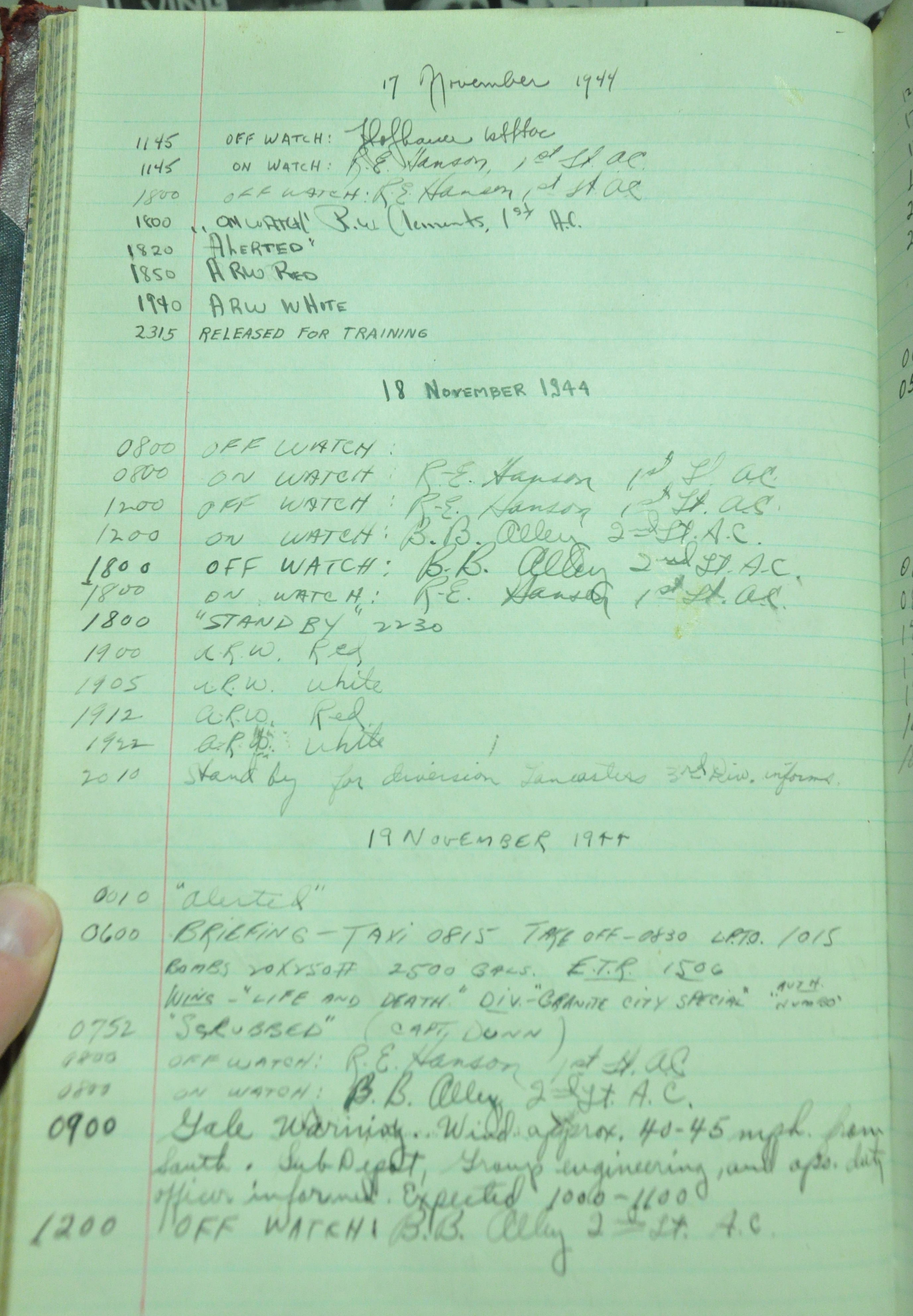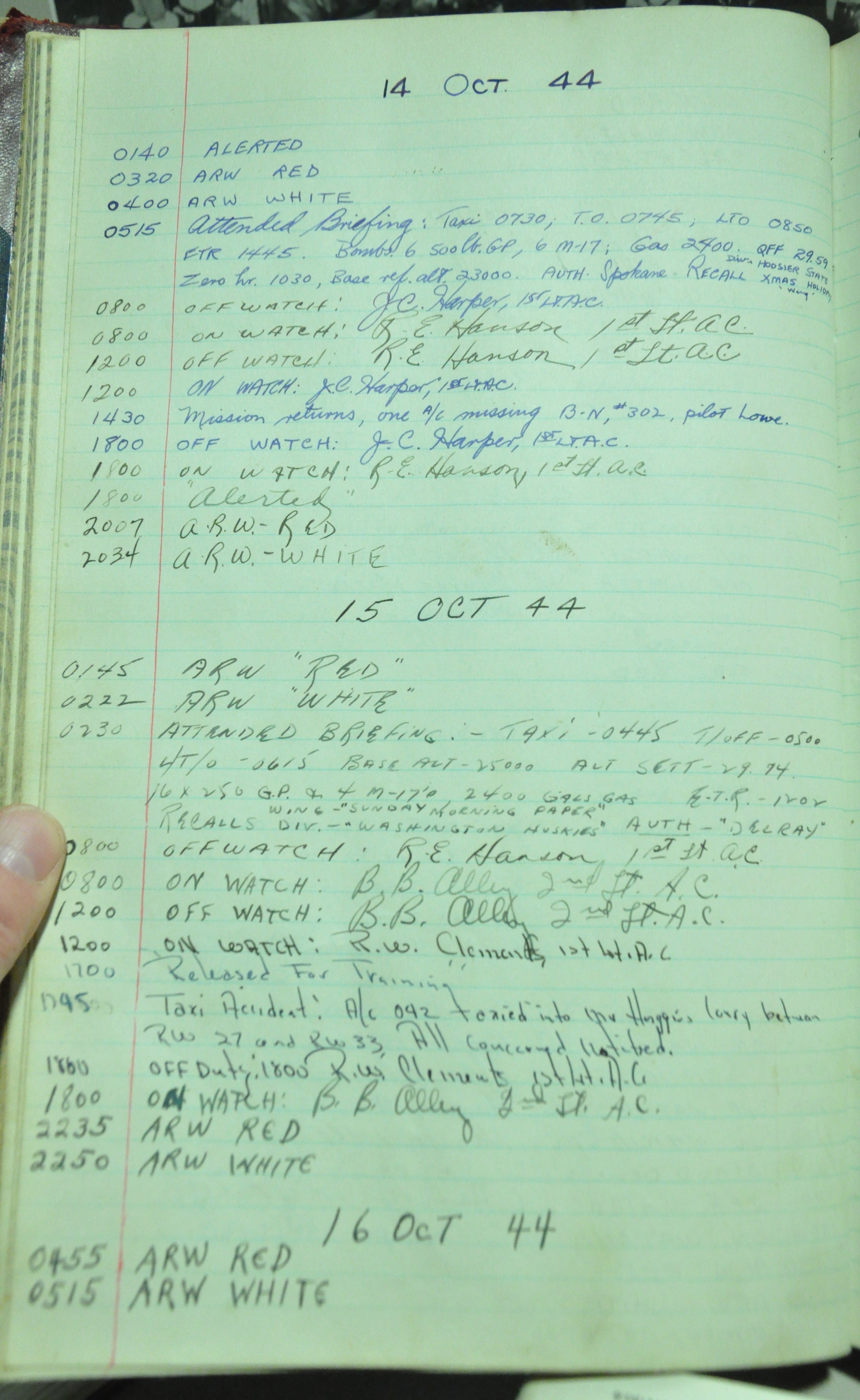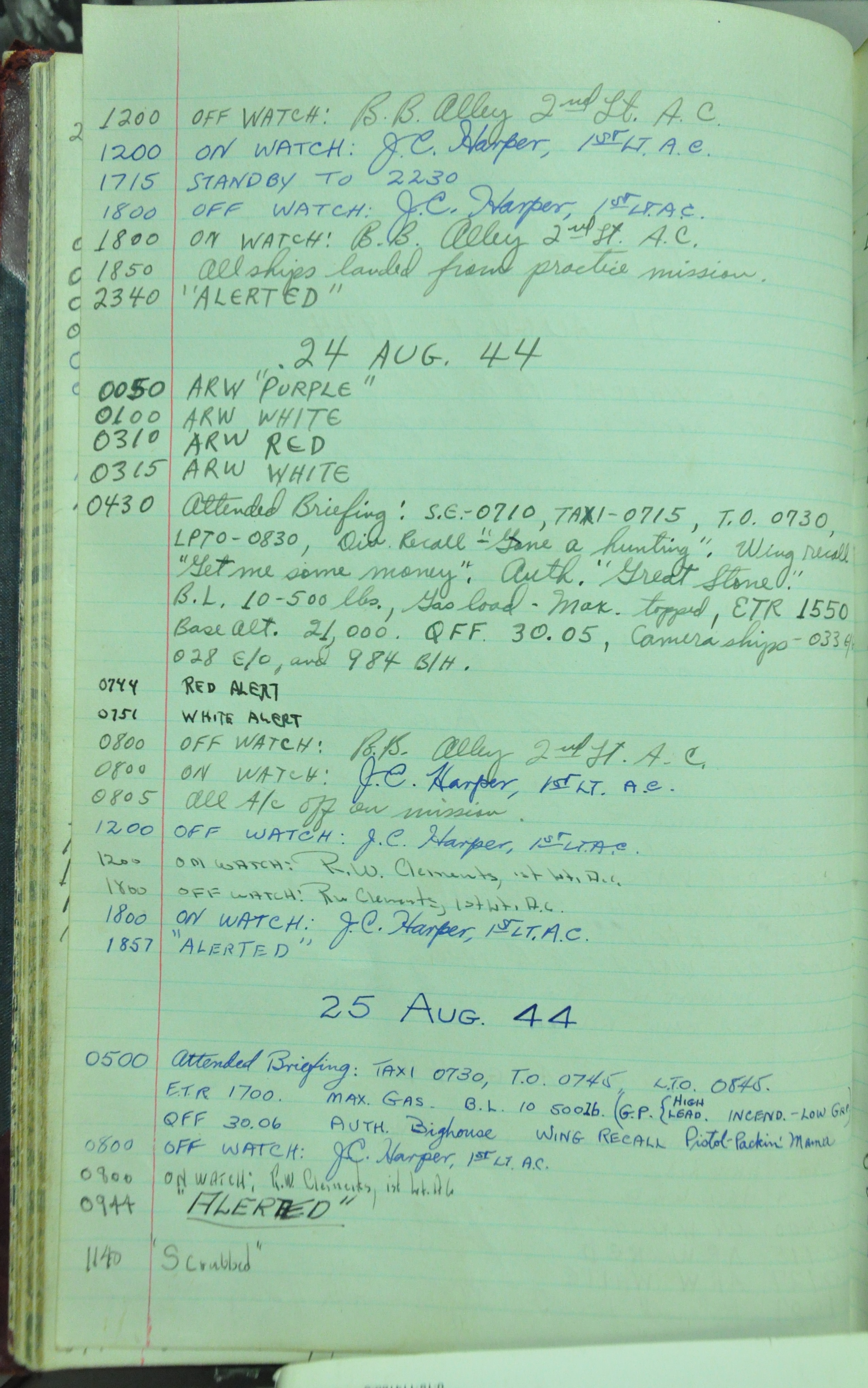from 12-Apr-1944 to 22-Aug-1945. Later the log book was used at some reunions to record those who attended reunion events.