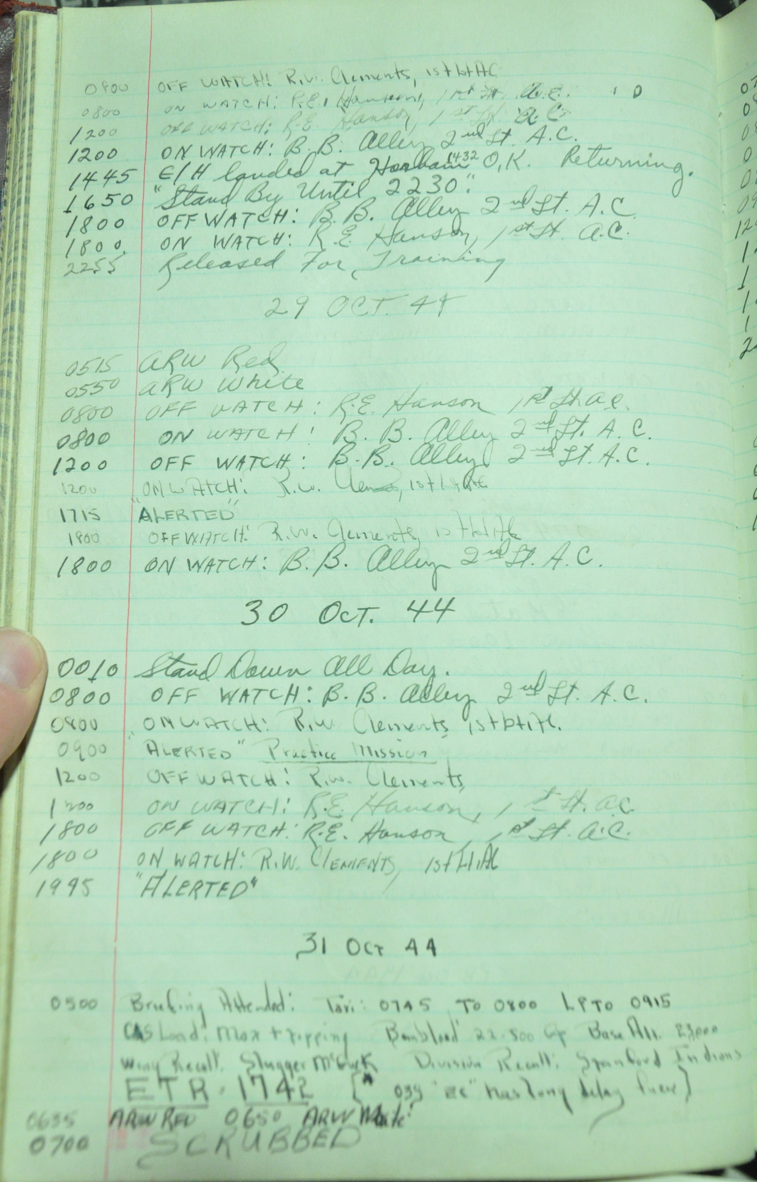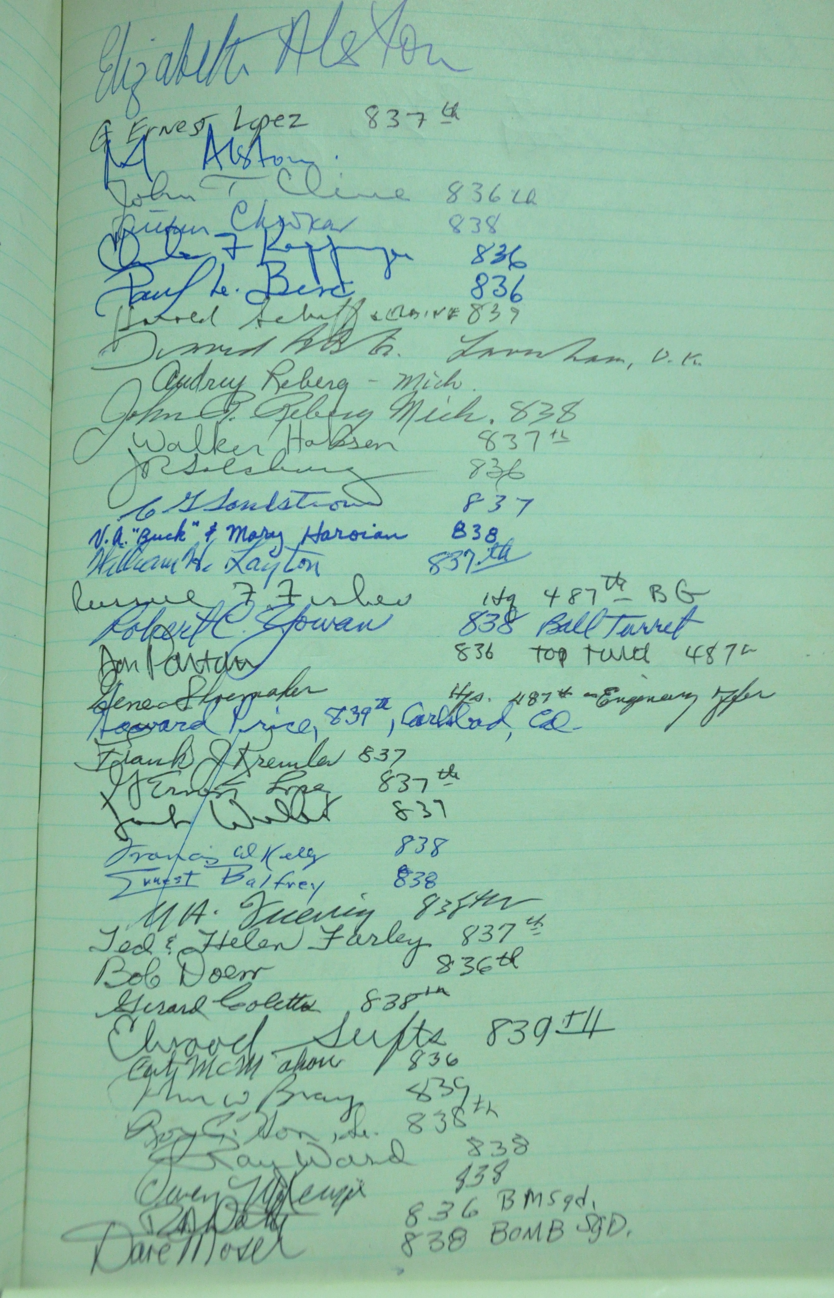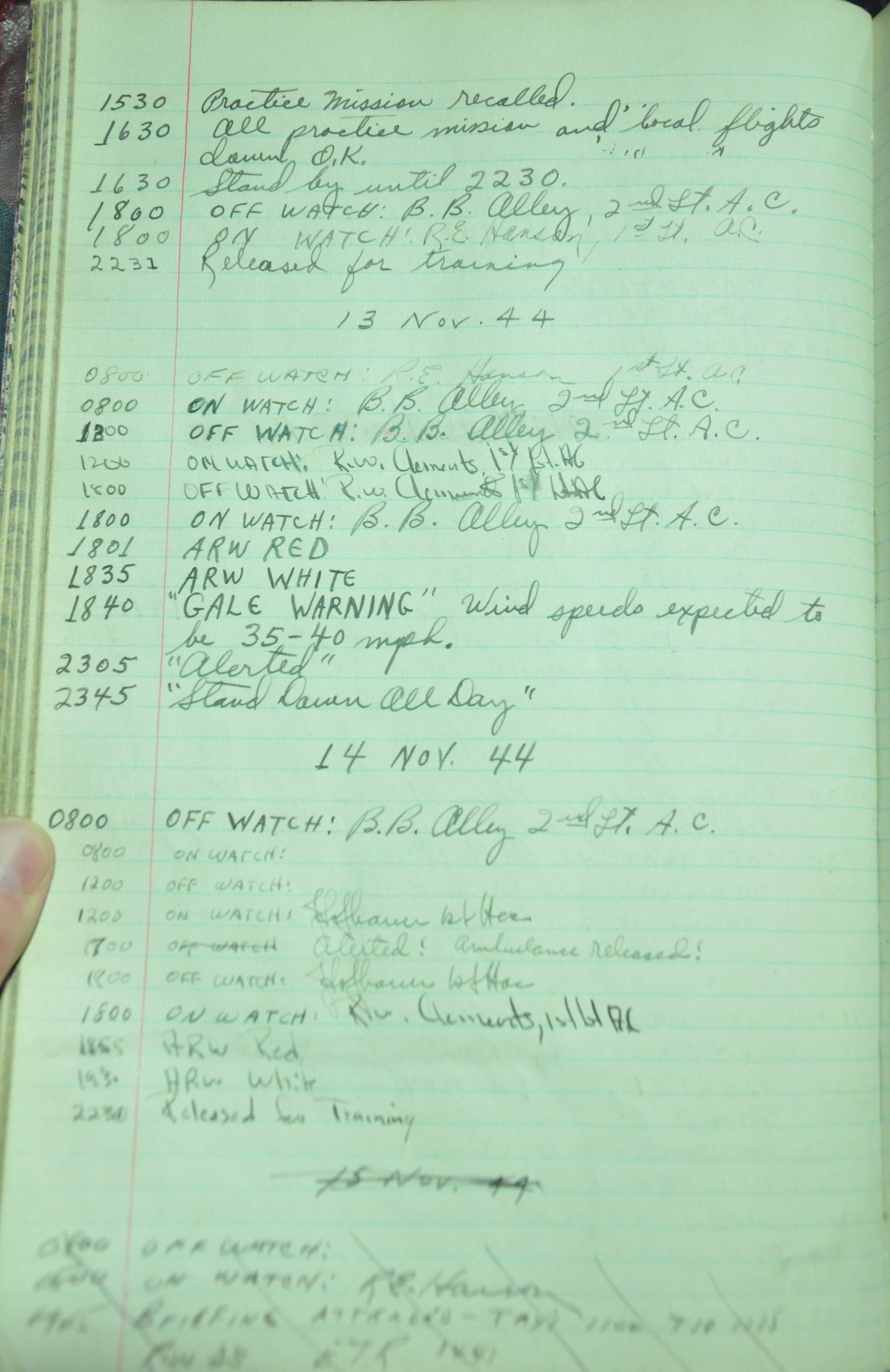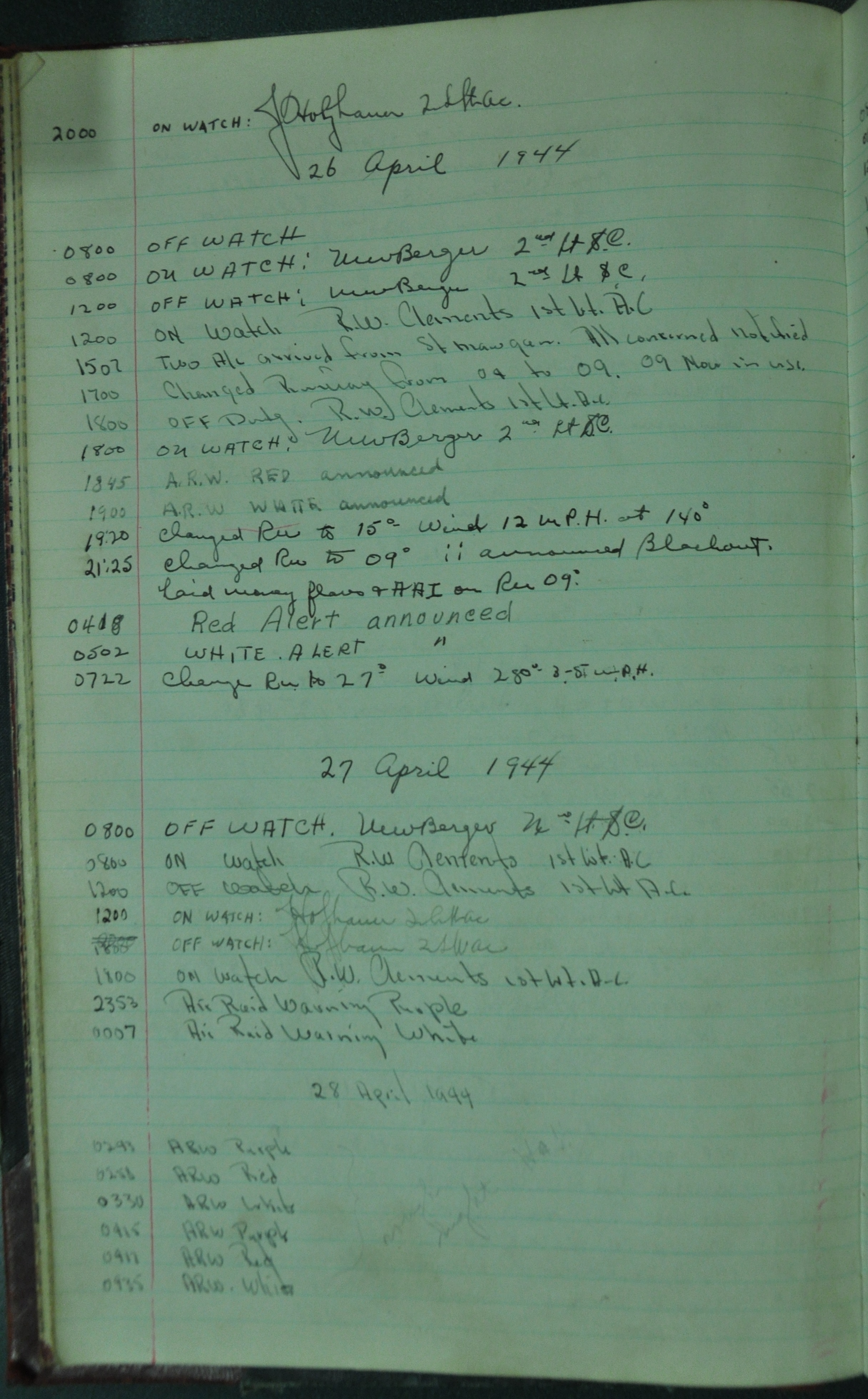 from 12-Apr-1944 to 22-Aug-1945. Later the log book was used at some reunions to record those who attended reunion events.