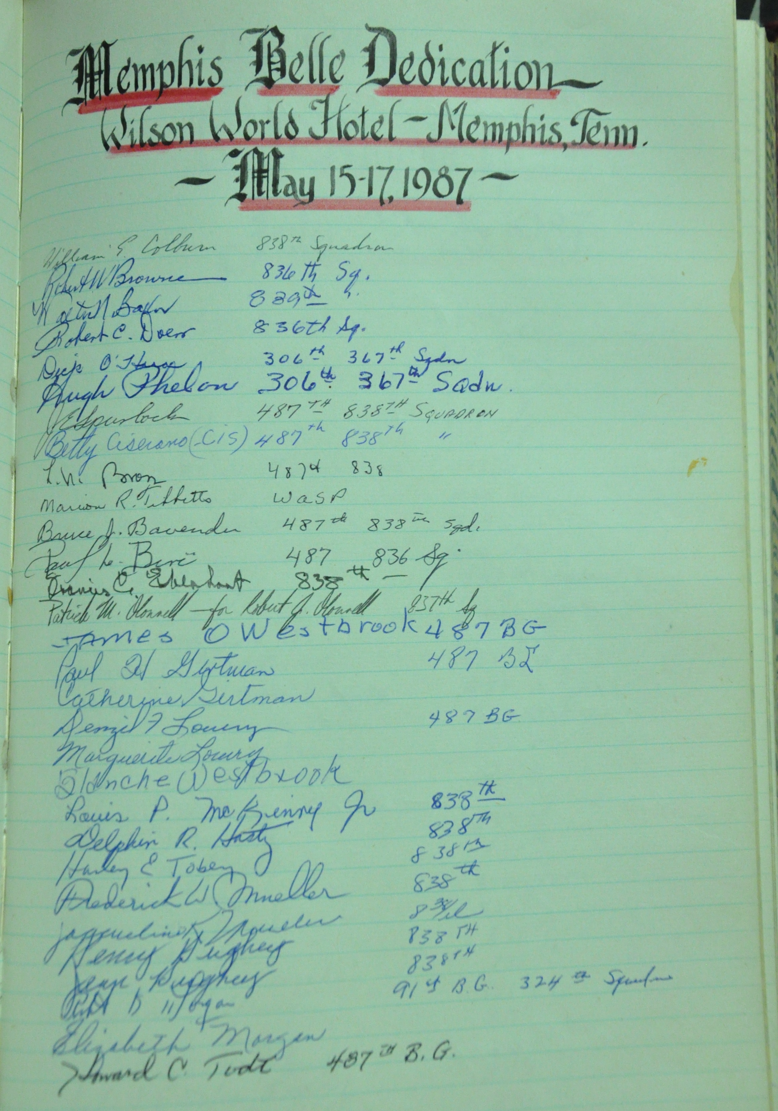 487th Bomb Group (H) Tower Logbook